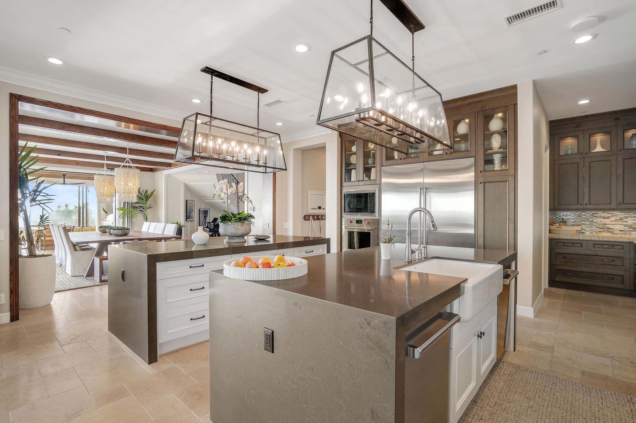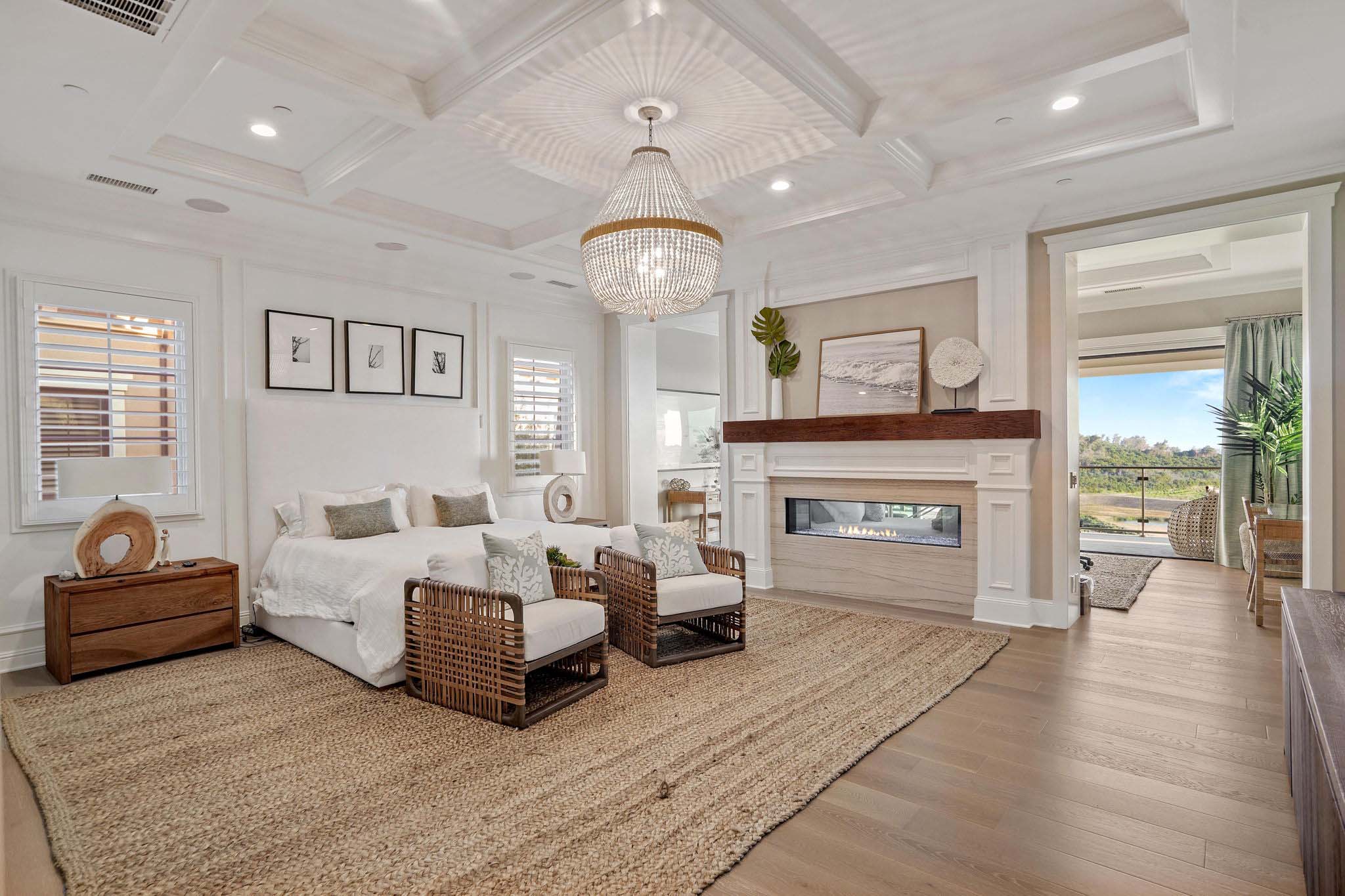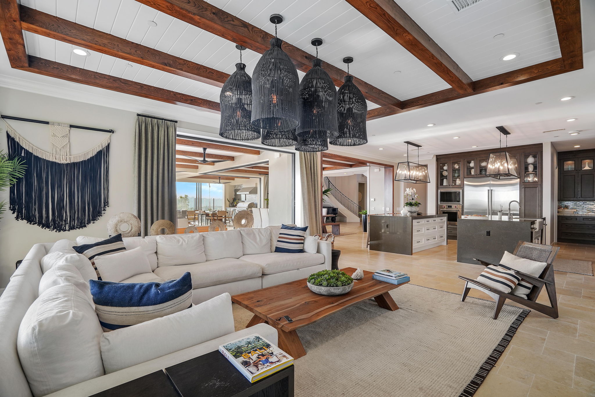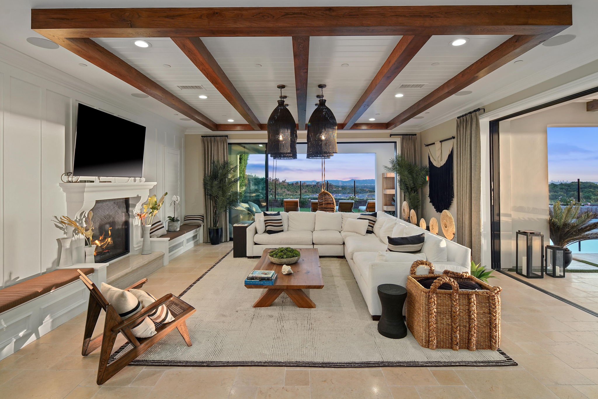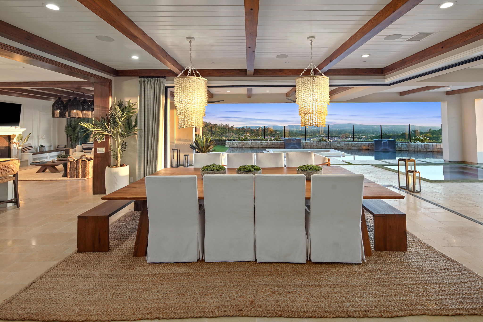 Arguably the most impressive property ever built in Irvine. An exceptional offering that combines the ultimate in interior finishes and exterior amenities, all located within the prestigious 24-hour gated community of The Grove at Orchard Hills. Recently built in 2019 on a corner lot with only one neighbor, the home impresses with a soaring foyer with dual curved staircases framed by incredible panoramic city and canyon views. Rustic exposed wood-beamed ceilings highlight the open living and dining areas, with sliding floor-to-ceiling allowing a plethora of natural light. An unparalleled transition of indoor/outdoor living, the current owners spent $1.5 million on a one-of-a-kind entertainer's yard boasting a conversation pit with built-in fireplace surrounded by a massive wrap-around infinity-edge resort-style pool and spa, multiple fire features, grassy yard, outdoor kitchen, and multiple lounging areas. The chef's kitchen is replete with dual islands with built-in breakfast bar seating and top-of-the-line Wolf appliances. Upstairs the oversized primary retreat showcases a see-through dual-sided fireplace with separate living area, stunning coffered ceilings, private balcony, and a spa-like ensuite bathroom with double vanity sinks and large custom walk-in closet. 4 additional guest bedrooms with ensuite baths and ample space, all of which are centered by a generous bonus room and covered view deck. Experience the utmost in contemporary living within a convenient location, top-rated schools, unmatched quality and design, and high-efficiency upgrades including solar panels. 4-car garage.