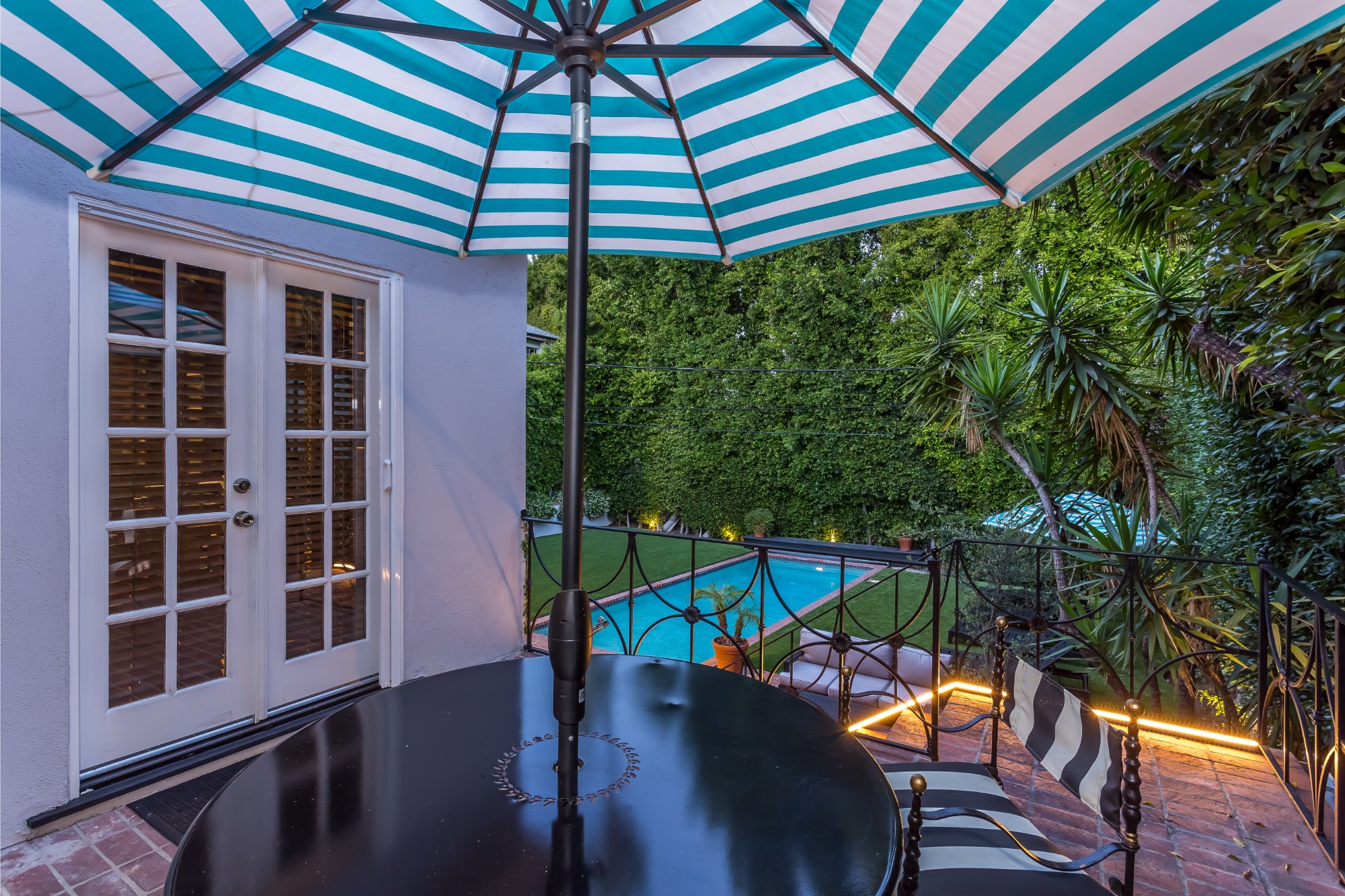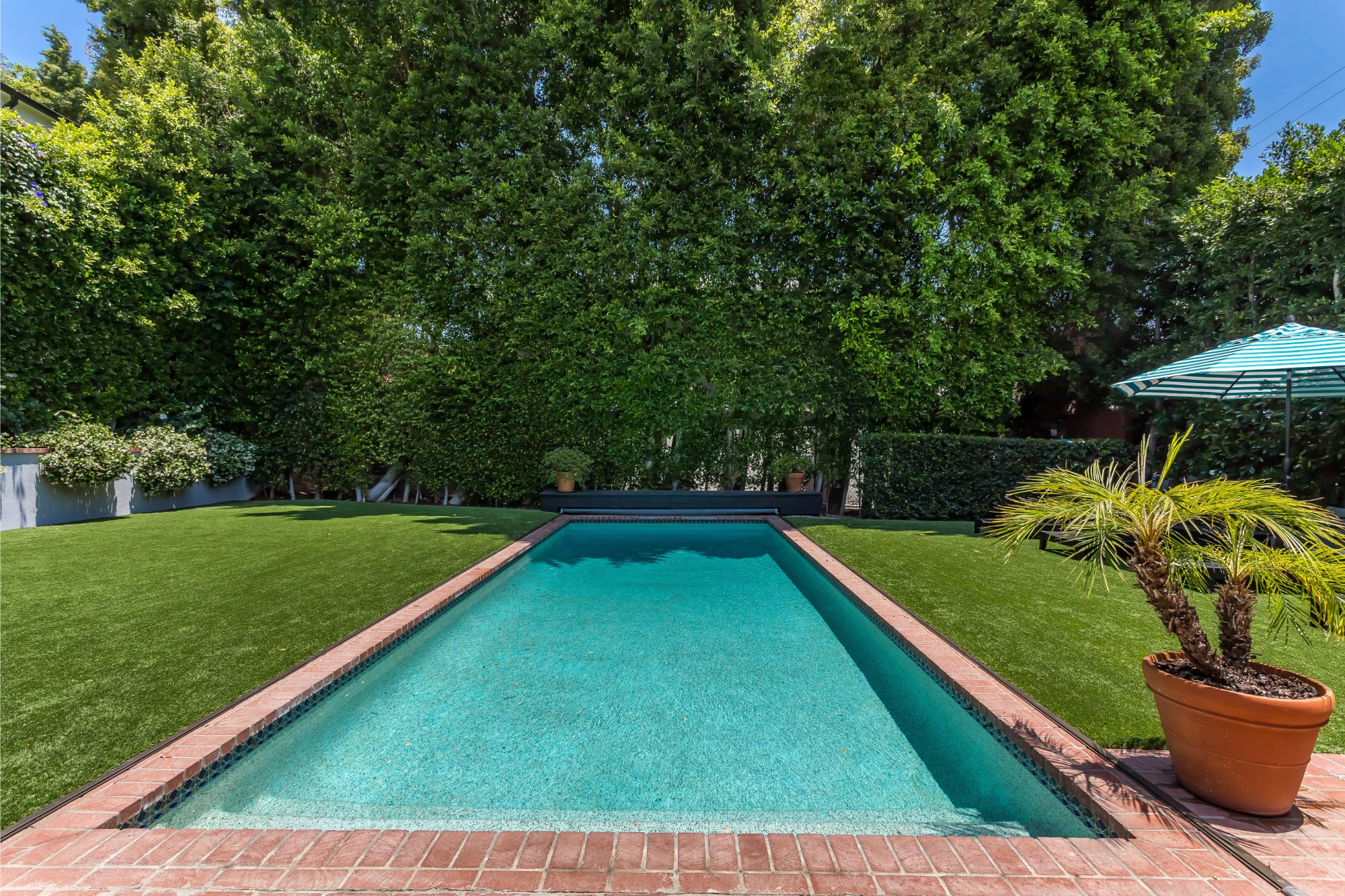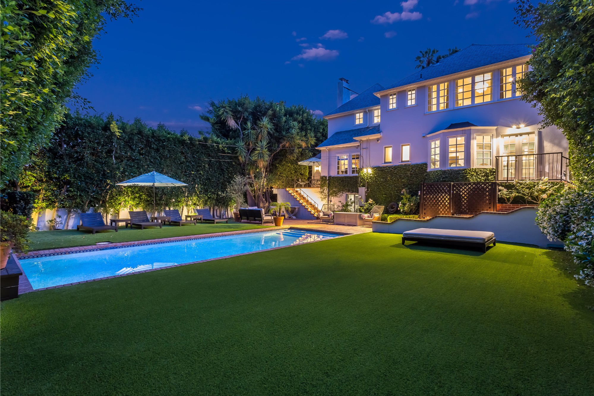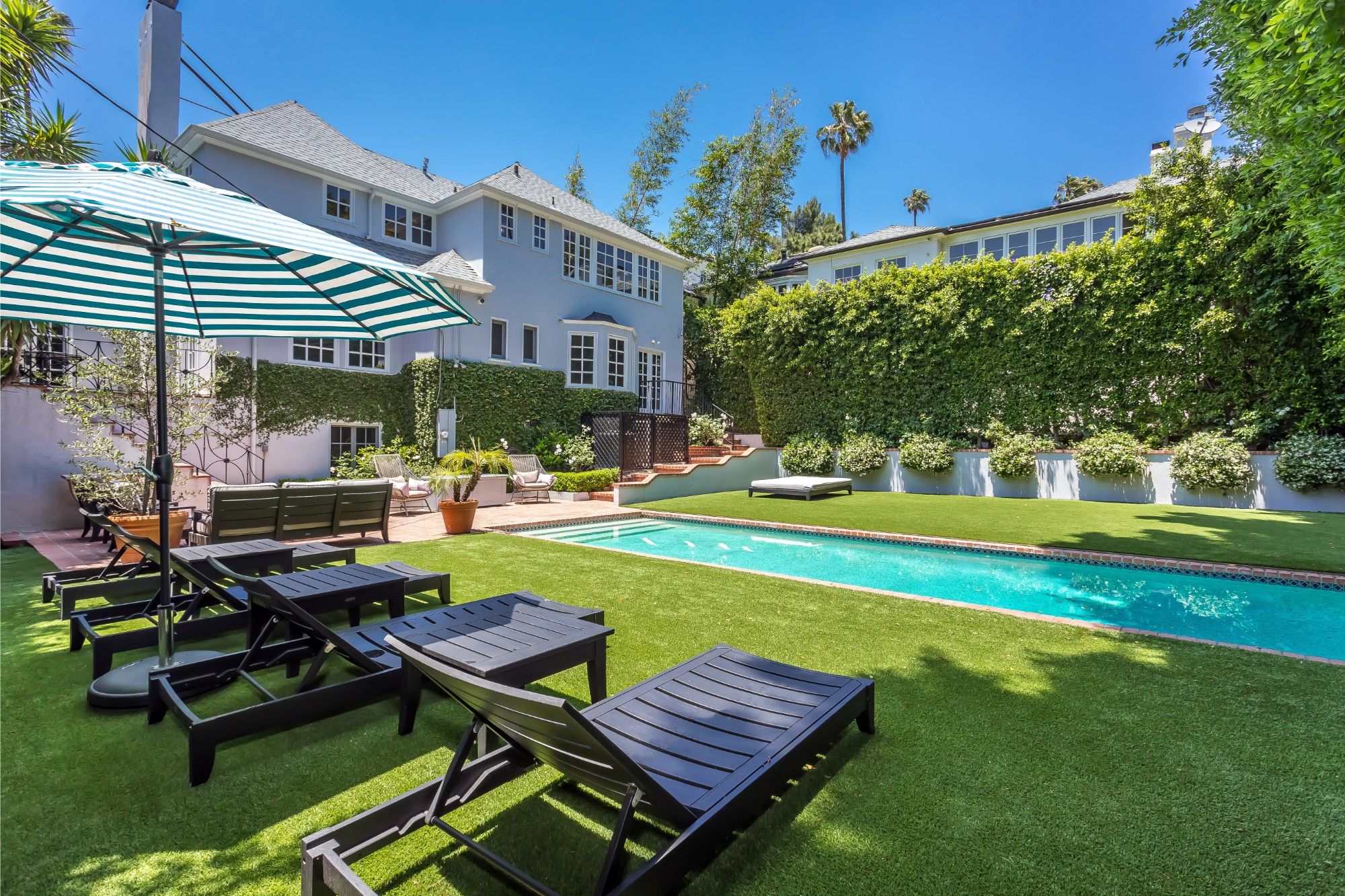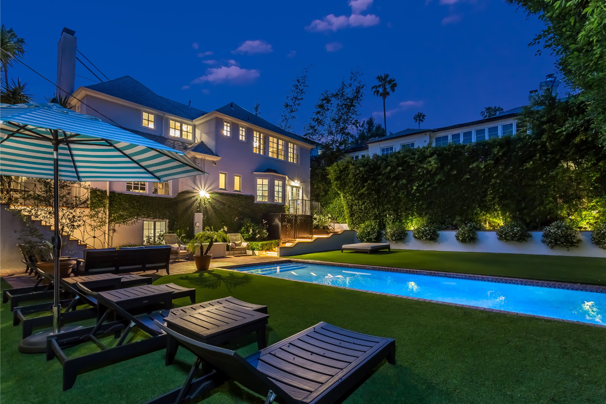 Immaculately remodeled, this gated and private traditional estate is located walking distance to the world famous Sunset Strip restaurants, shopping, and cafes. With 3,440+ sq. ft. of designer curated finishings, this home features a bright and airy floor plan with elegant foyer, well-appointed living room with patio, formal dining room that opens to a grassy front yard, and custom chef’s kitchen with Wolf and Miele appliances. A separate bedroom/office with French doors leads to an expansive entertainer’s yard with large patio and grassy field, swimmer’s saltwater and solar-heated pool, and mature hedging. Upstairs the spacious owner’s suite features custom cabinetry, dual closets, and luxurious spa-like marbled bath with heated floors. Additional en-suite bedrooms also feature marbled bathrooms and custom vanities. Parking includes a garage with additional driveway space.