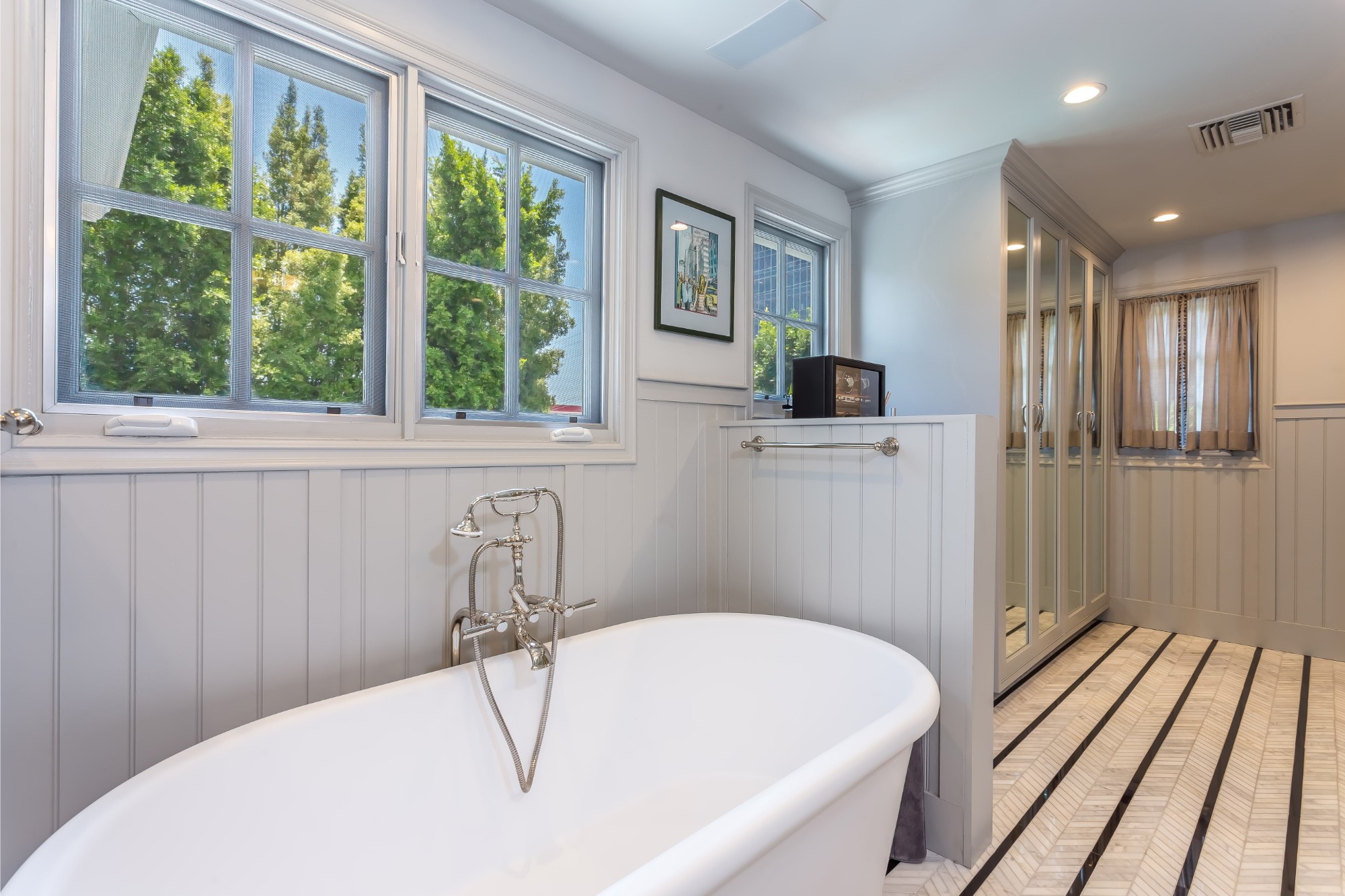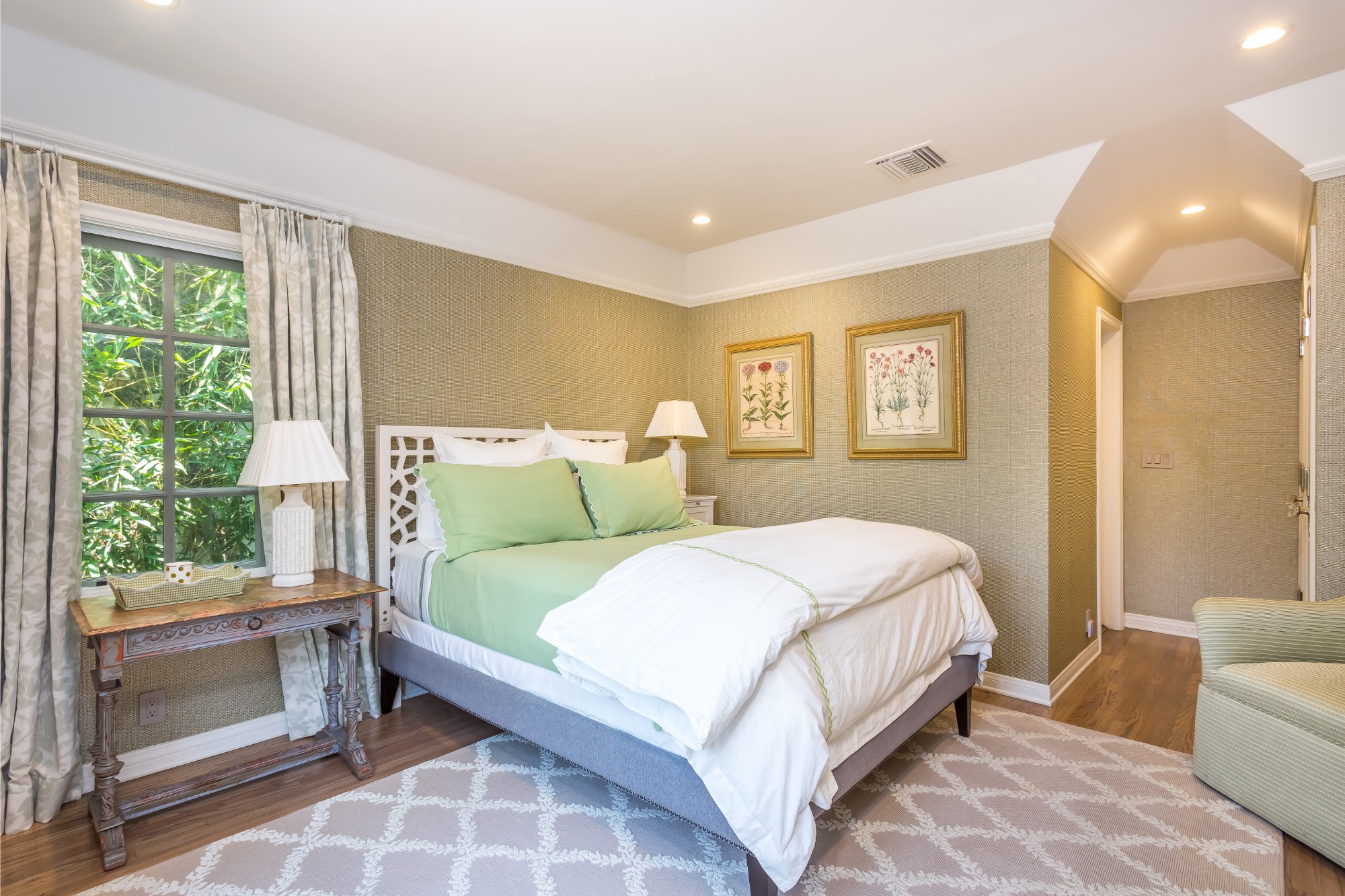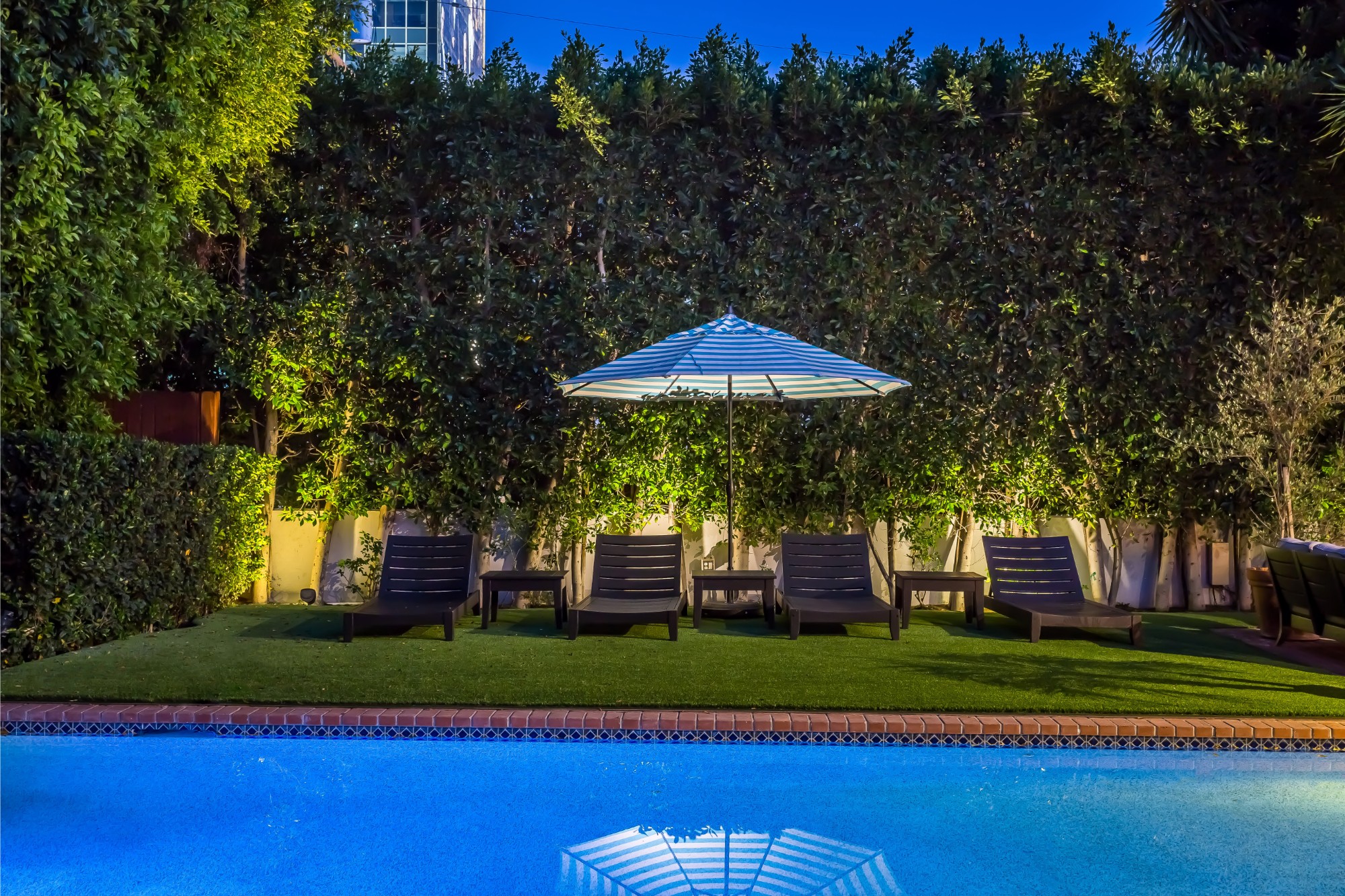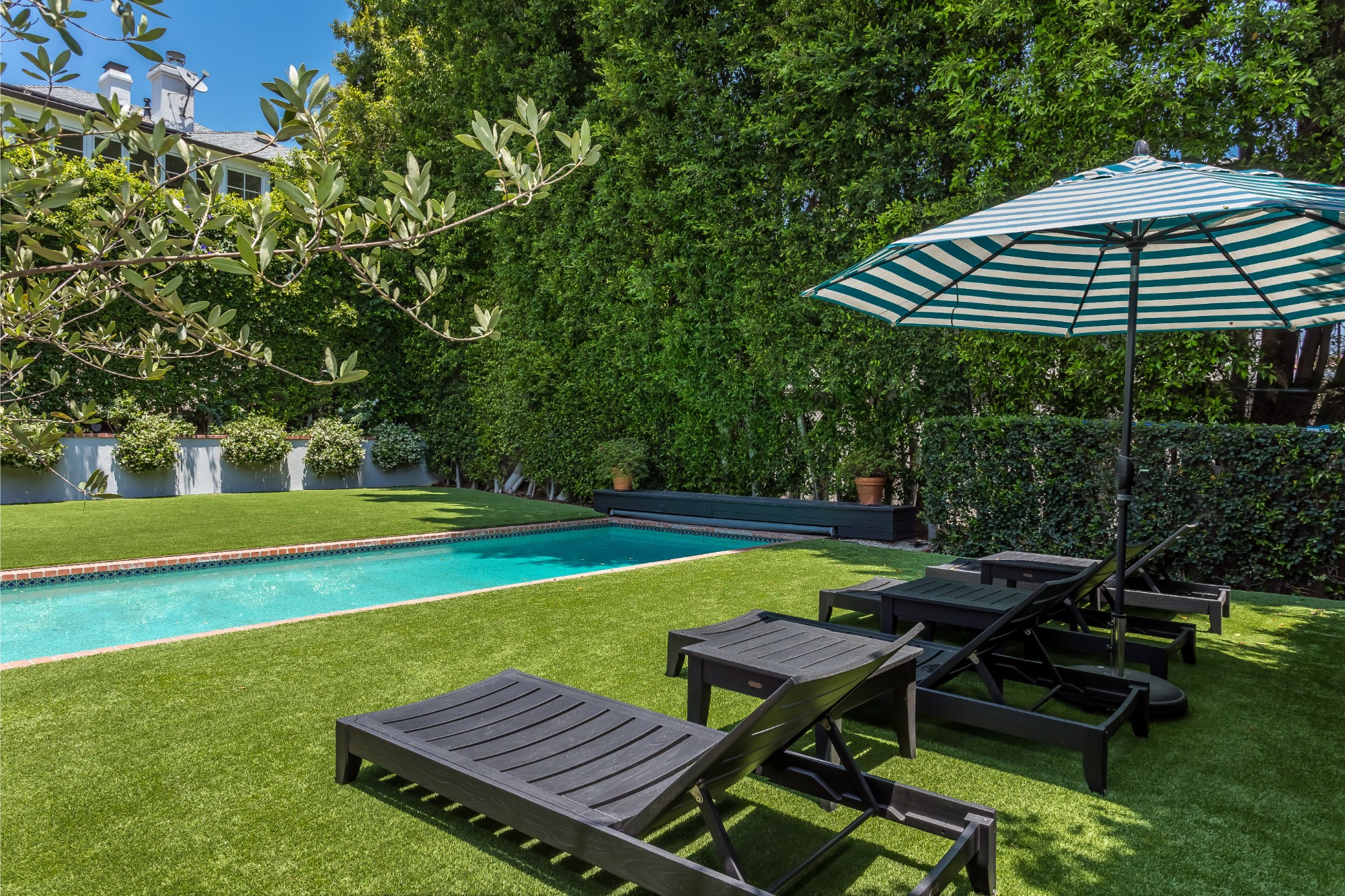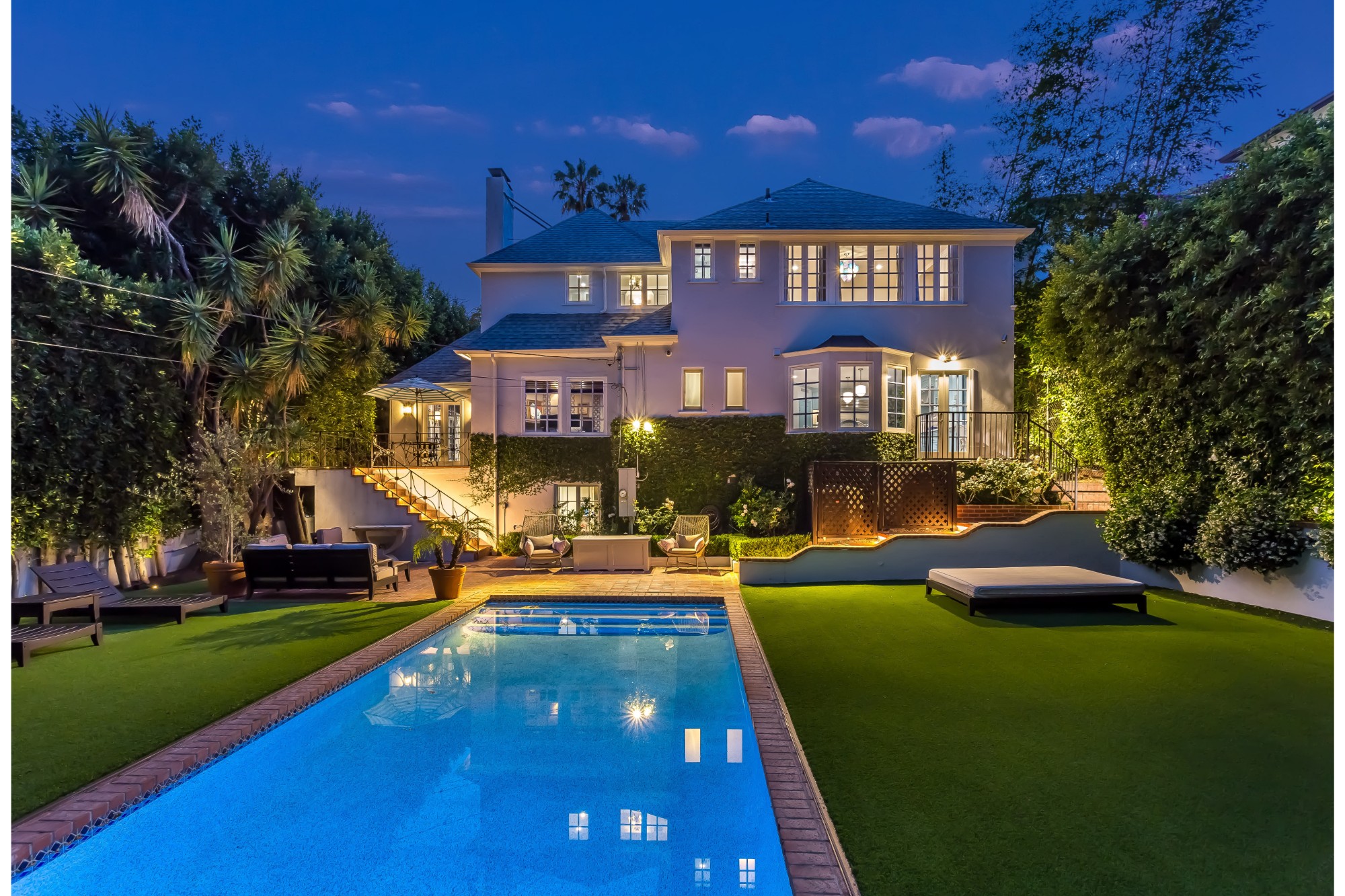 Immaculately remodeled, this gated and private traditional estate is located walking distance to the world famous Sunset Strip restaurants, shopping, and cafes. With 3,440+ sq. ft. of designer curated finishings, this home features a bright and airy floor plan with elegant foyer, well-appointed living room with patio, formal dining room that opens to a grassy front yard, and custom chef’s kitchen with Wolf and Miele appliances. A separate bedroom/office with French doors leads to an expansive entertainer’s yard with large patio and grassy field, swimmer’s saltwater and solar-heated pool, and mature hedging. Upstairs the spacious owner’s suite features custom cabinetry, dual closets, and luxurious spa-like marbled bath with heated floors. Additional en-suite bedrooms also feature marbled bathrooms and custom vanities. Parking includes a garage with additional driveway space.