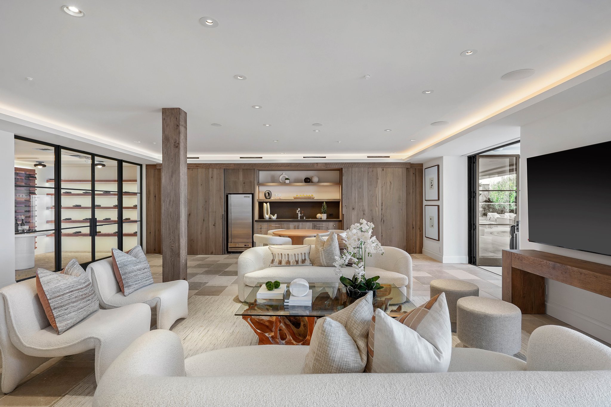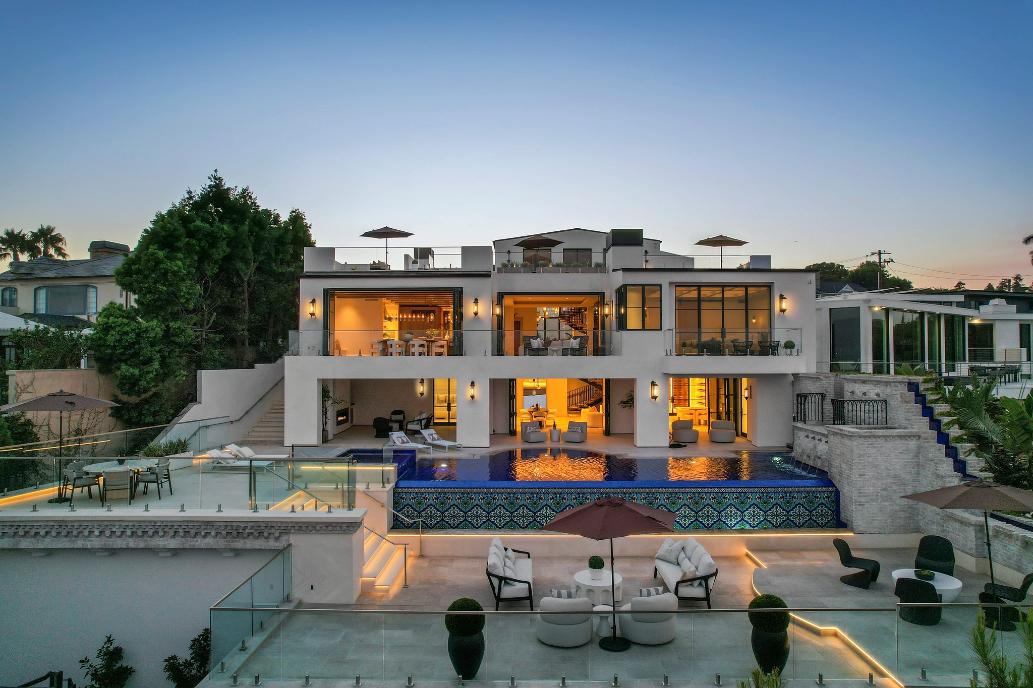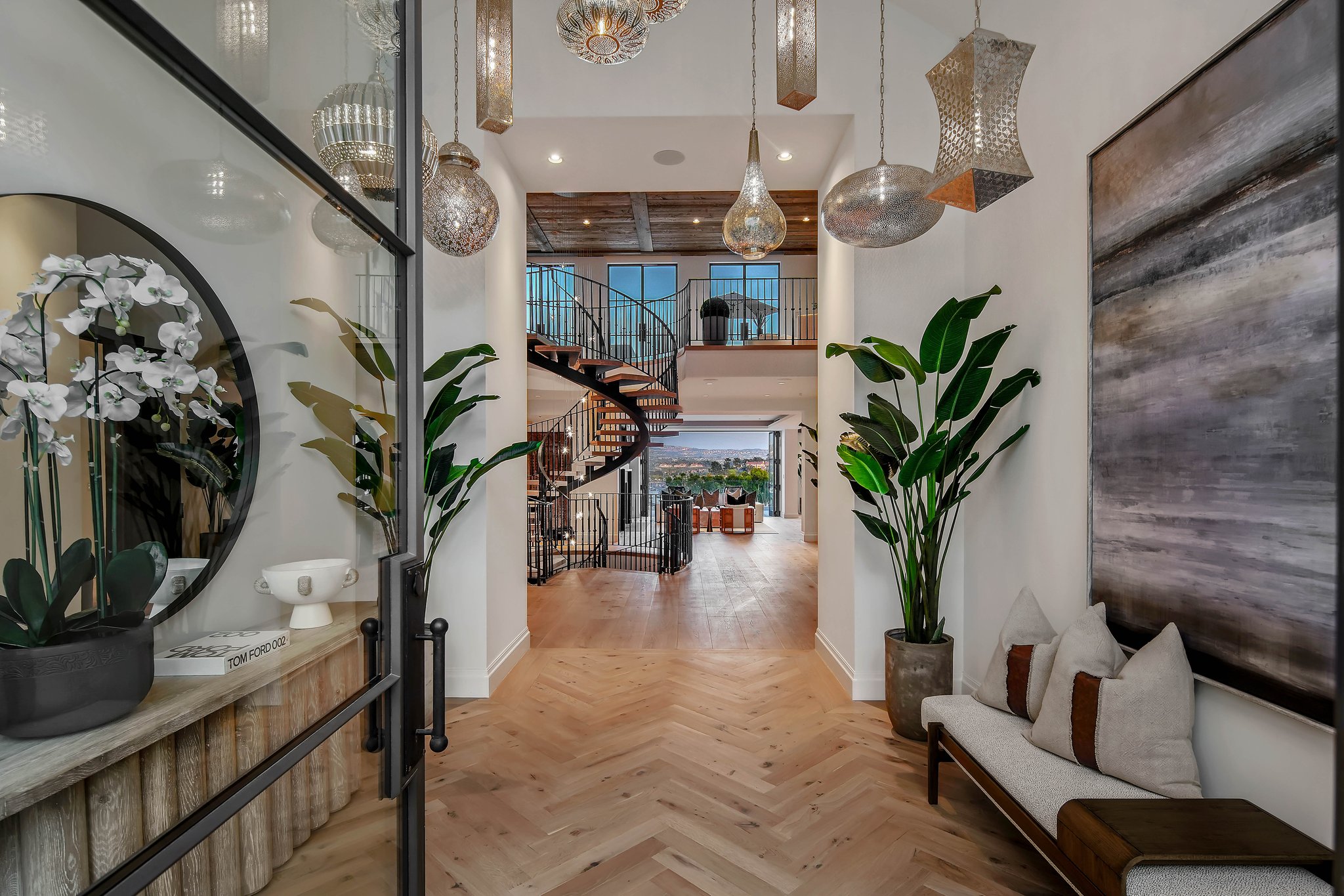Enter a realm of unmatched luxury and sensual allure with this newly crafted sanctuary, where the timeless grace of Andalusian and Moroccan influences entwine with the sleek sophistication of contemporary design. This architectural jewel is perched to command mesmerizing views of the bay and ocean from every level, offering an exquisite retreat for those who seek the extraordinary. As you step inside, you're greeted by an awe-inspiring entryway, where your eyes are drawn to a breathtaking spiral staircase that ascends through all three levels, a sculptural masterpiece in its own right. Just beyond, exotic Andalusian doors beckon, their intricate designs a gateway to the treasures that lie within. The main level unfolds like a dream, with four opulent bedrooms, a serene office, and a state-of-the-art kitchen with an additional Lg. prep (dirty) kitchen—all opening onto an expansive ocean-view balcony, where the sunsets set the world aflame. Descend to the lower level, a haven of entertainment and revelry, where an expansive wine room encased in glass showcases your collection, and a sophisticated bar invites intimate conversations. A secluded bedroom and bath ensure your guests enjoy the ultimate in privacy and comfort. Outside, a sprawling covered patio overlooks an infinity pool that seems to melt into the horizon—a paradise for both intimate gatherings and lavish soirees. A private staircase leads down to a versatile sports court and a room that awaits your imagination, be it a man cave, game room, or gym. On the third level, ascend to the pinnacle of luxury where panoramic views stretch as far as the eye can see. Here, an expansive terrace whispers of tranquility, with the ocean and bay spread out like a shimmering tapestry before you. A secluded casita, accessible by its own private staircase, offers a haven of privacy and comfort for cherished guests or family members. Every inch of this extraordinary residence is adorned with the finest finishes and fixtures, meticulously crafted with an artist's eye for detail. This is not just a home—it is a sensual experience, a seductive blend of old-world charm and modern elegance that transcends the ordinary. Welcome to your private paradise, where every moment is infused with the magic of the extraordinary.