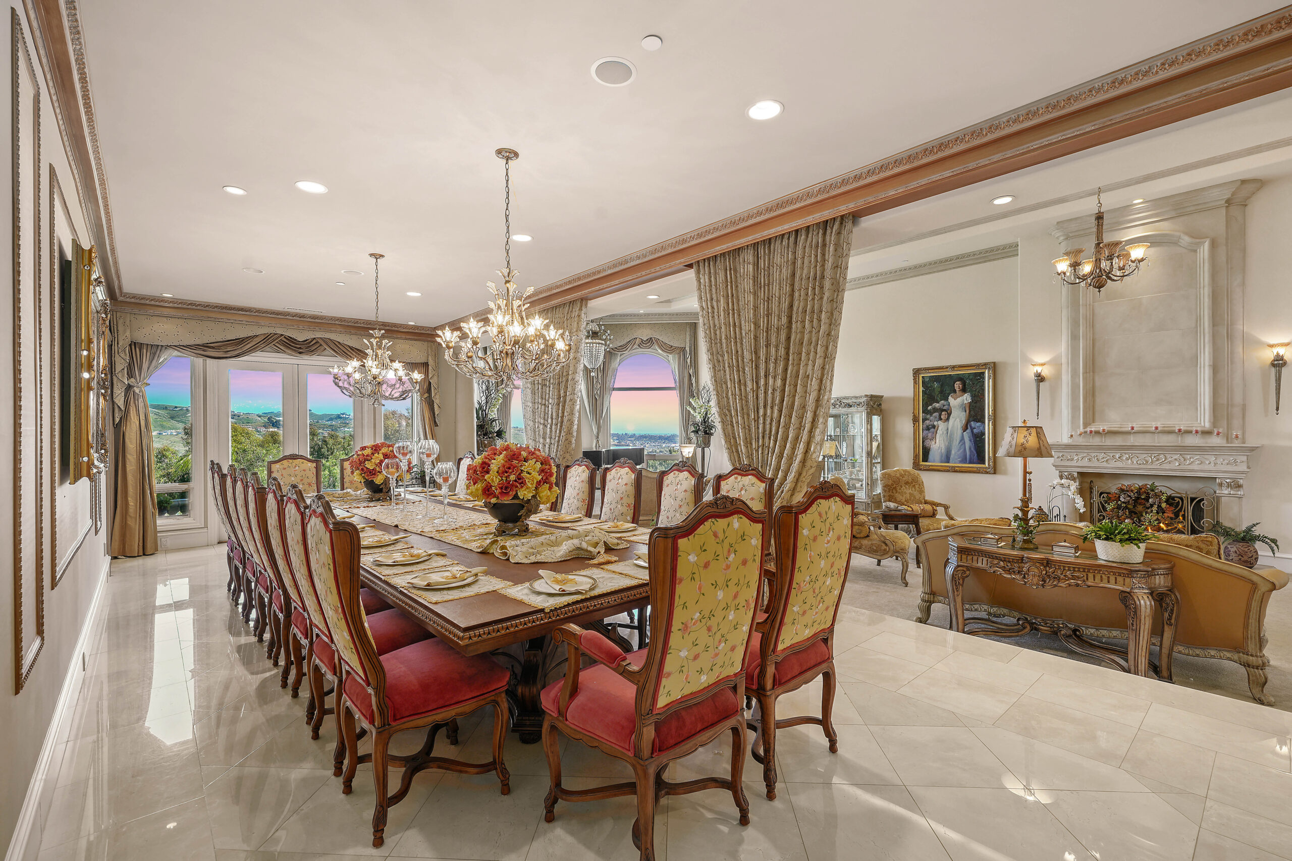 Nestled within the exclusive gated community of Bear Brand Ranch in Laguna Niguel, this magnificent estate illustrates luxury living. This stunning property was rebuilt, boasting 10 bedrooms, 11.5 bathrooms, and an estimated 13,500 square feet of living space on a sprawling 1.41-acre lot, Offering the ultimate in privacy and elegance. Upon entry, you are greeted by a grand foyer with soaring ceilings and exquisite custom woodwork throughout, setting the stage for the unparalleled craftsmanship found throughout the home. The spacious living areas are bathed in natural light and feature custom-designed furniture, creating an ambiance of sophistication and comfort. The gourmet kitchen is a chef's delight, featuring top-of-the-line appliances, custom cabinetry, and a large island, all accented by custom woodwork. The adjacent dining room offers a perfect setting for formal meals, while the cozy family room with a fireplace provides a warm and inviting space to relax. The luxurious primary suite is a private sanctuary, complete with a spa-like bathroom, a sitting area, and a private balcony overlooking the meticulously landscaped grounds. Each additional bedroom is generously sized and features its own en-suite bathroom, providing comfort and privacy for family and guests alike. Outside, the resort-style grounds are an entertainer's dream, featuring a tennis court, a fully renovated pool and spa, and multiple outdoor seating areas. The expansive lawn is perfect for hosting events or simply enjoying the serene surroundings in total privacy. Additional features of this exceptional estate include a six-car garage, a wine cellar, a home theater, and a gym. Located just minutes from world-class beaches, shopping, dining, and entertainment, this is a rare opportunity to own a truly exceptional property in one of Orange County's most coveted communities. Experience the embodiment of luxury living in Bear Brand Ranch. Schedule a private tour today and discover the extraordinary lifestyle that awaits you!