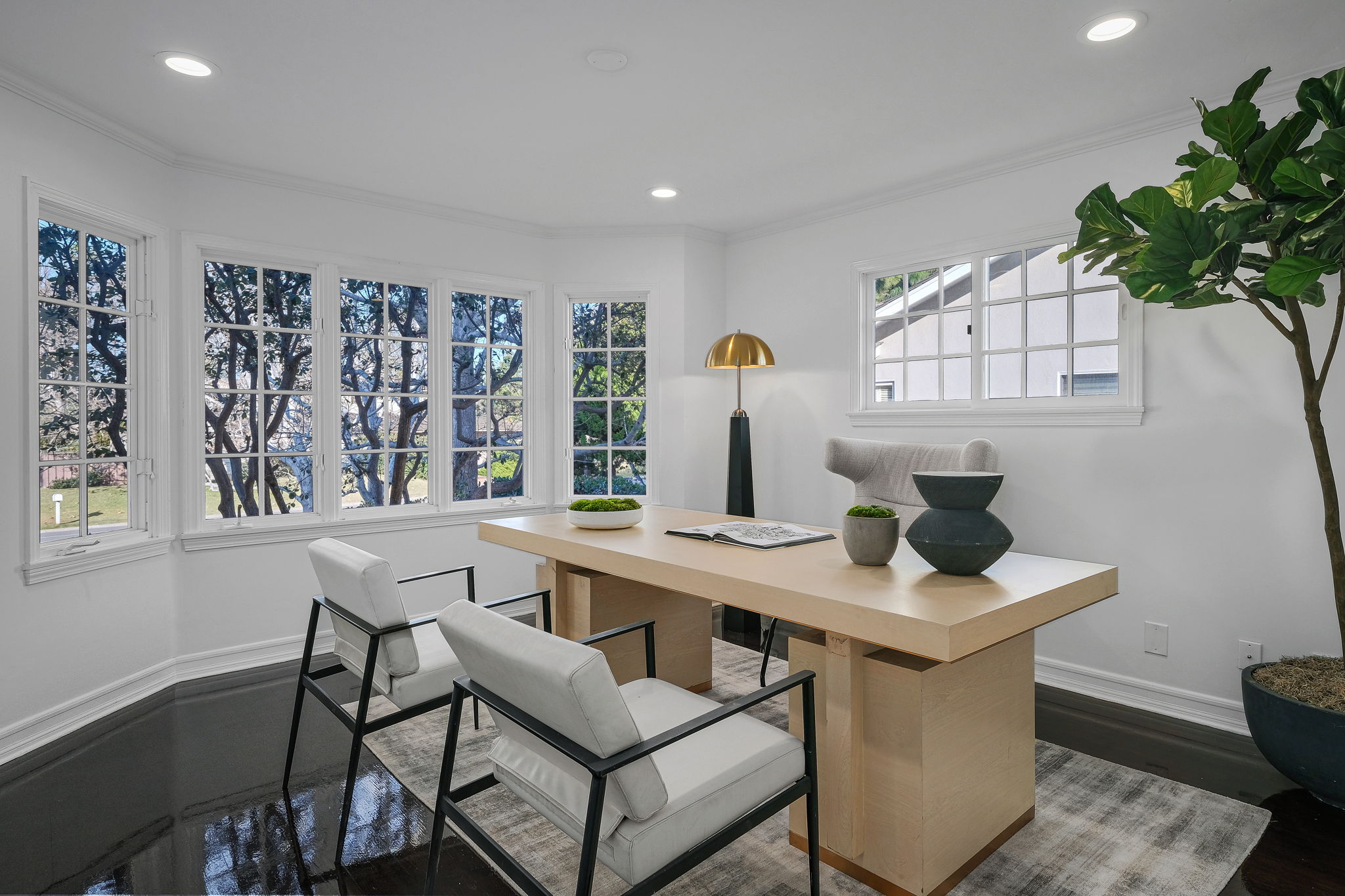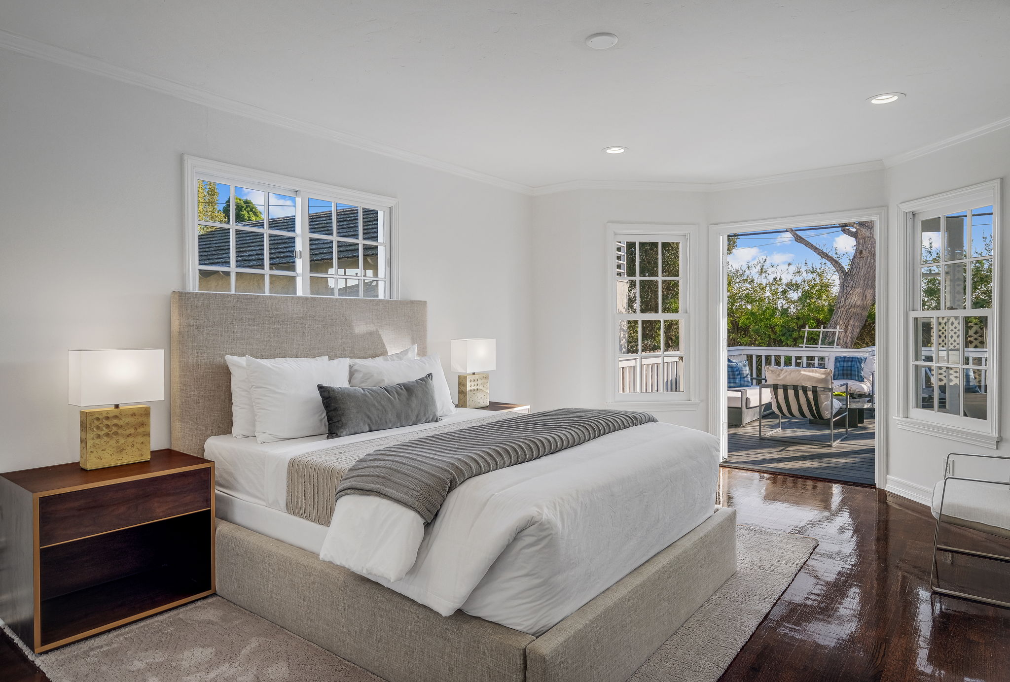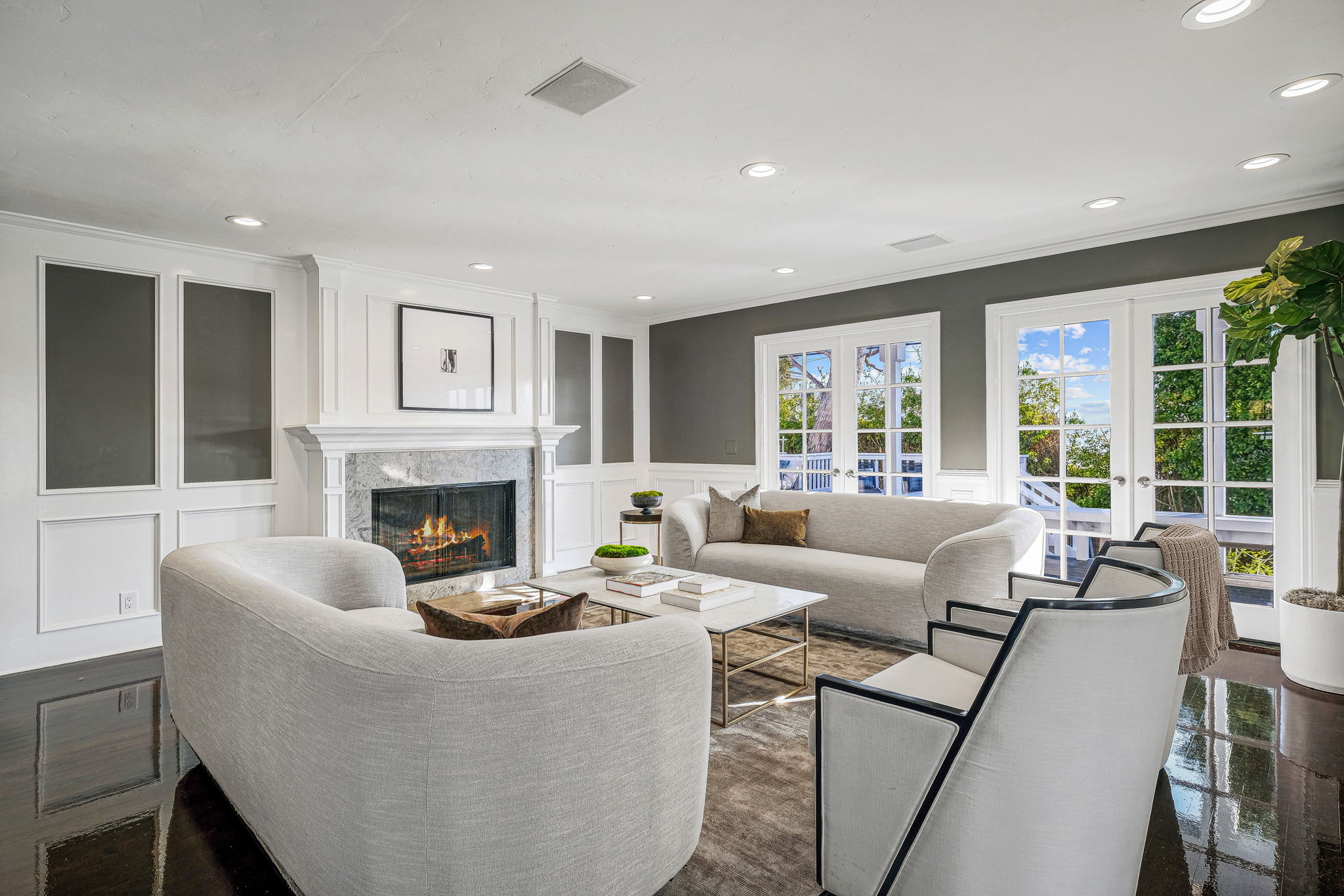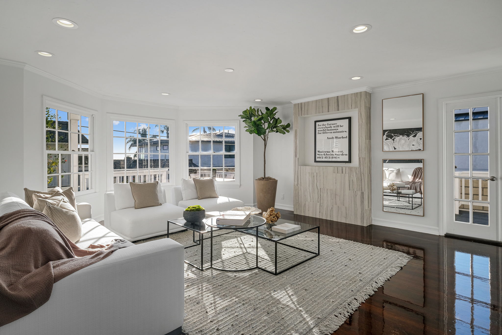 Beautiful 4-bed, 4-bath residence, with a potential fifth bedroom currently used as an office. The sun-filled kitchen boasts a large island, stainless steel appliances, and a breakfast nook. Adjacent to the kitchen is the large family room with a bar and built-in bookcases. The spacious owner's suite includes a private deck with ocean views, a separate sitting area, two spacious walk-in closets, and a marble-clad bathroom with a tub. Fully enclosed by mature trees, the grassy yard features a wrap-around deck, outdoor kitchen/BBQ area, and spa. An oversized three-car garage and a laundry/service porch complete the residence. Located close to Ensign Elementary School and Newport Harbor High School.