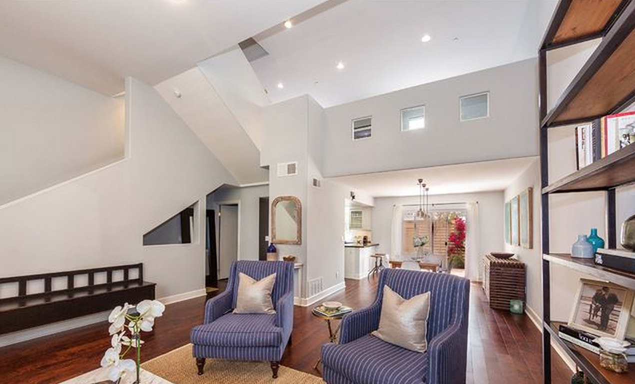 Santa Monica lover's dream townhouse! 2 bed 3 bath multi-story townhome including attached garage with lighting, which can double as a gym. Beautiful layout featuring high ceilings, newly installed dark wood floors, and recessed lighting throughout. Spacious living room with natural light pouring in includes newly installed wood blinds. Dining area leads to a quaint back patio and includes custom imported UK 'Rowan and Wren' tarnished silver pendant light fixtures. Master bed ft.'s recessed lighting, and walk-in closet. Master bath is equipped with both a stand-up shower and American Standard spa-tub. 2nd bedroom has mirrored closet doors and all bedrooms include a patio to enjoy the Santa Monica sunshine! Top level a newer high-efficiency W/D, and a newly painted rooftop patio.