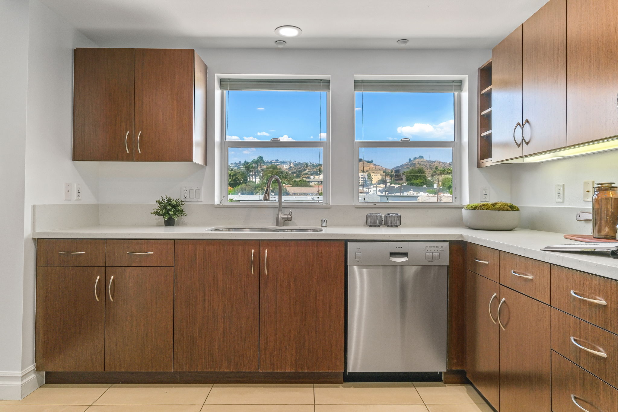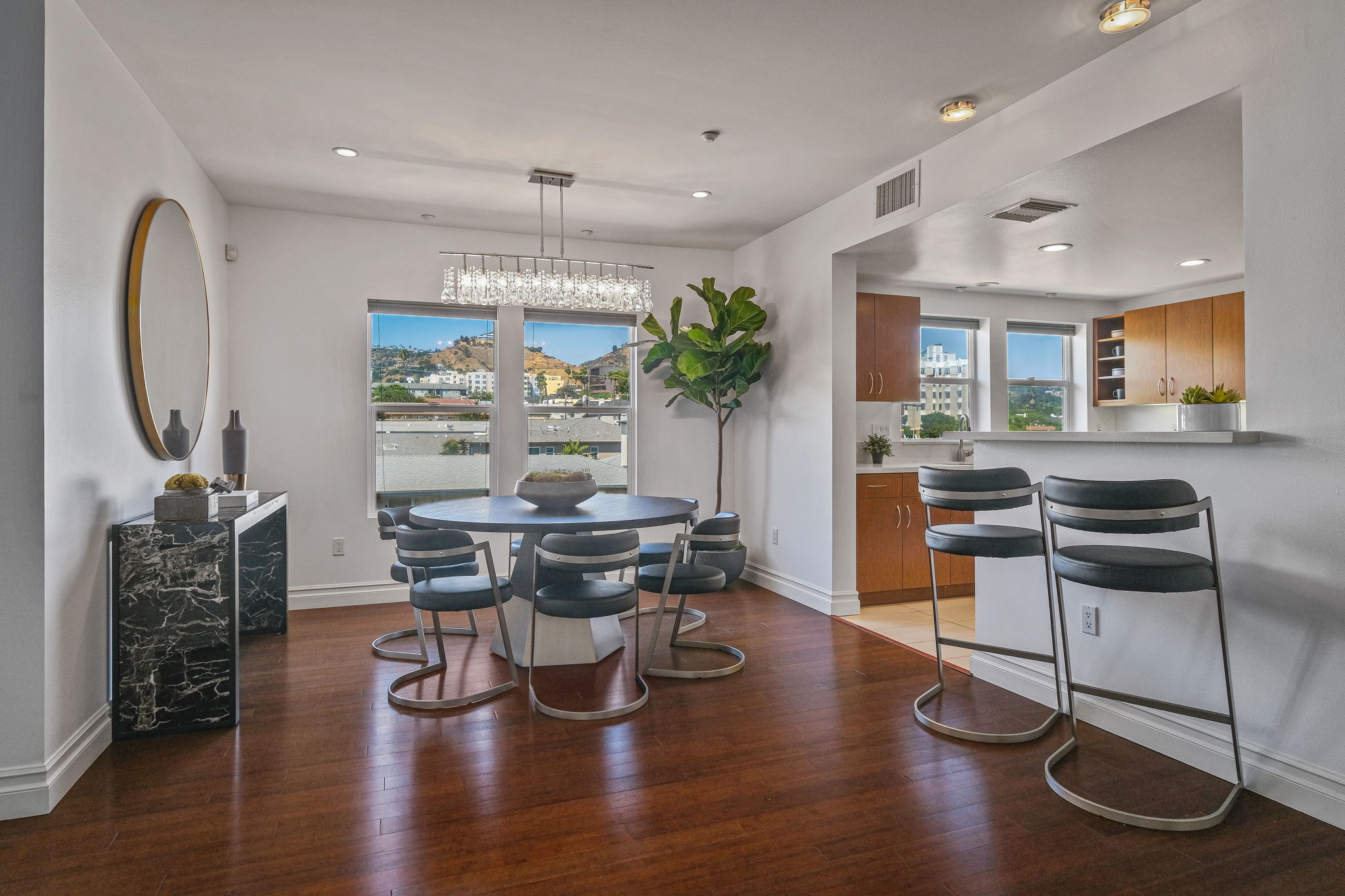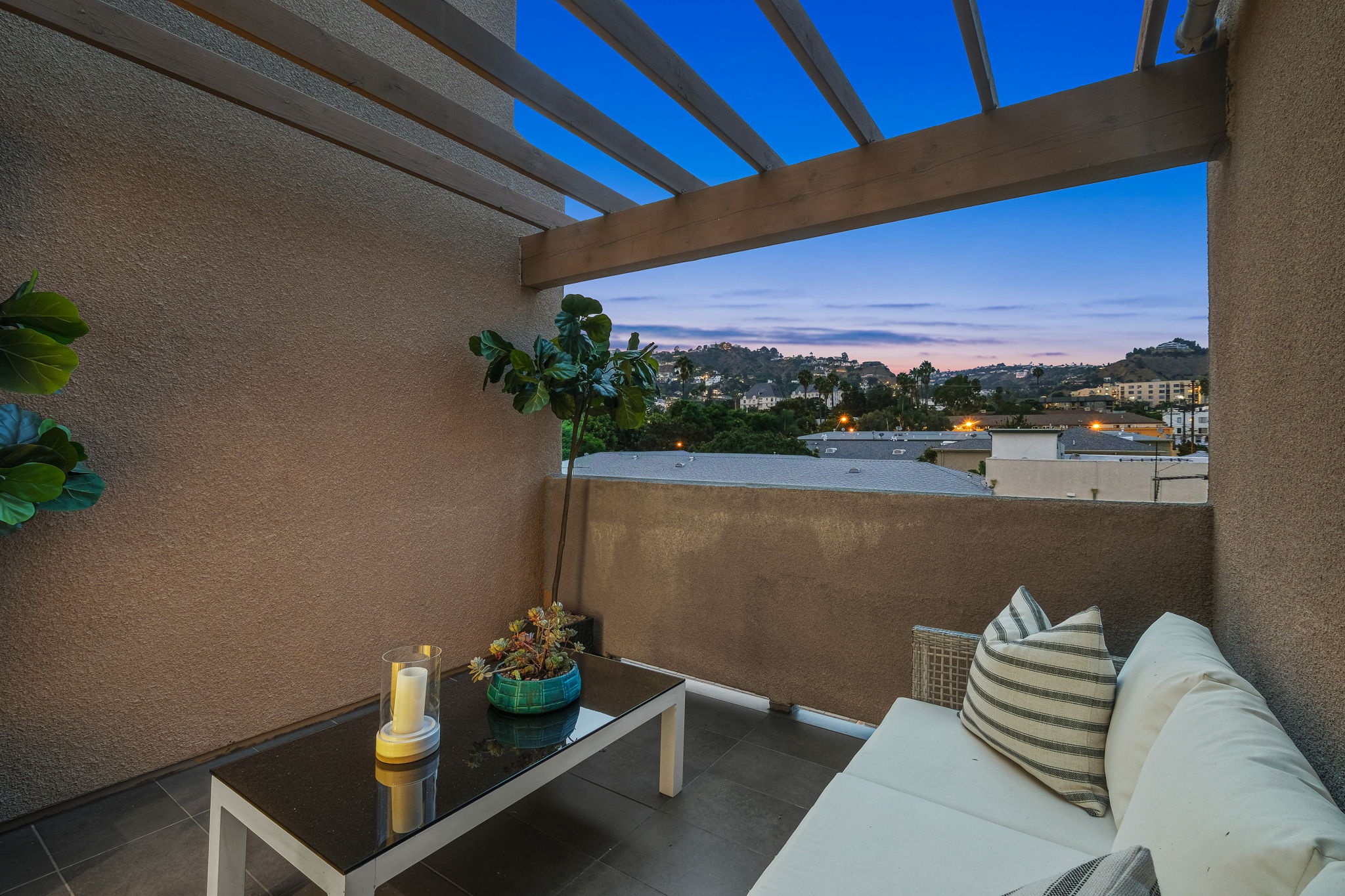 A beautiful penthouse in a quiet and well-maintained 16-unit building with stunning views of the Hollywood Hills. This generously sized 2 bed / 2 bath condo features an open floor plan with a plethora of natural light, a spacious living and dining room with fireplace, gourmet chef's kitchen, and two private balconies off the living room and owner's suite. The oversized owner's suite is replete with a walk-in closet and a luxurious ensuite bathroom with soaking tub and separate rainfall shower. Low HOA dues, in-unit washer and dryer, and 3 parking spots complete this amazing opportunity in the heart of West Hollywood.