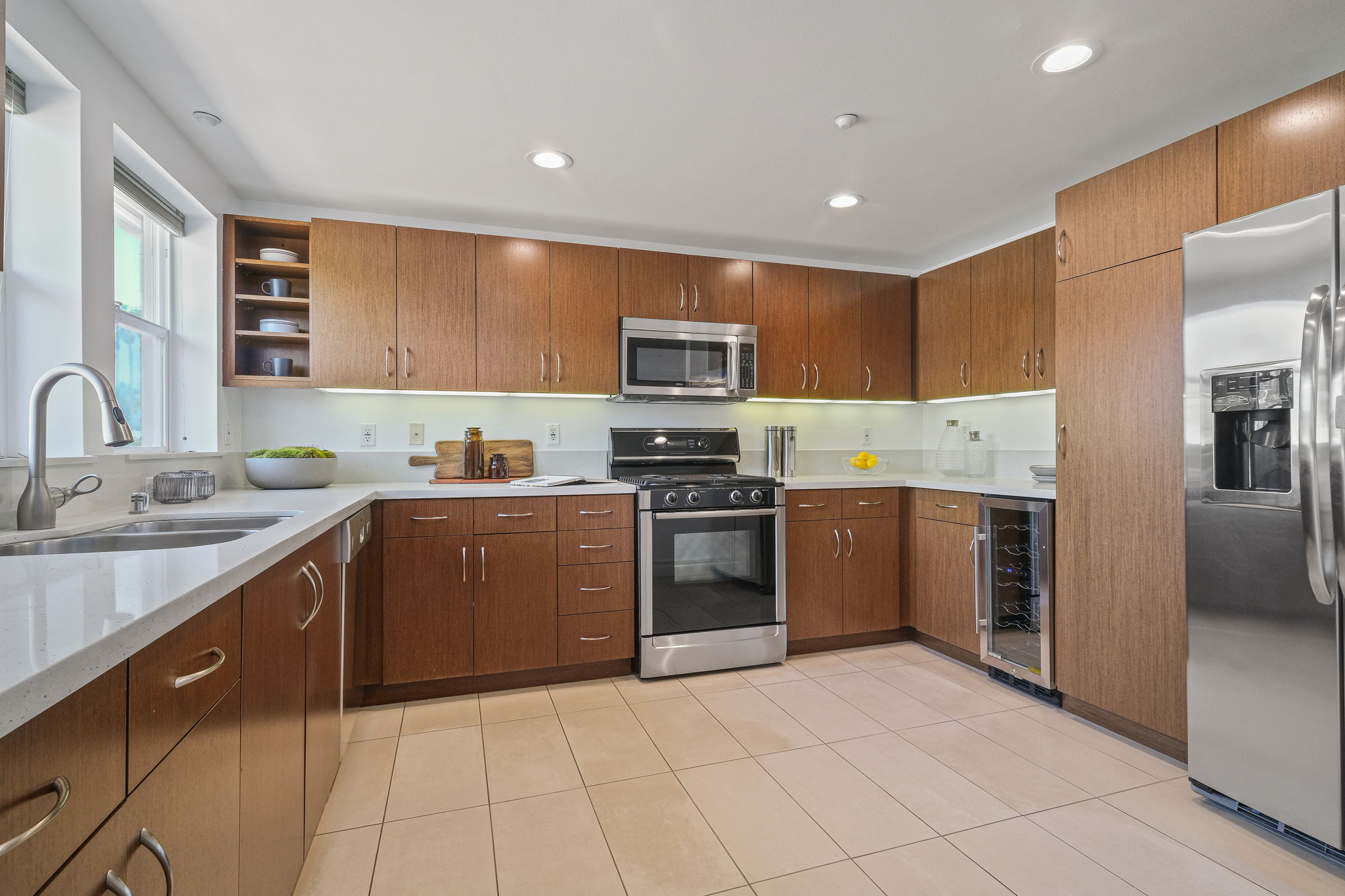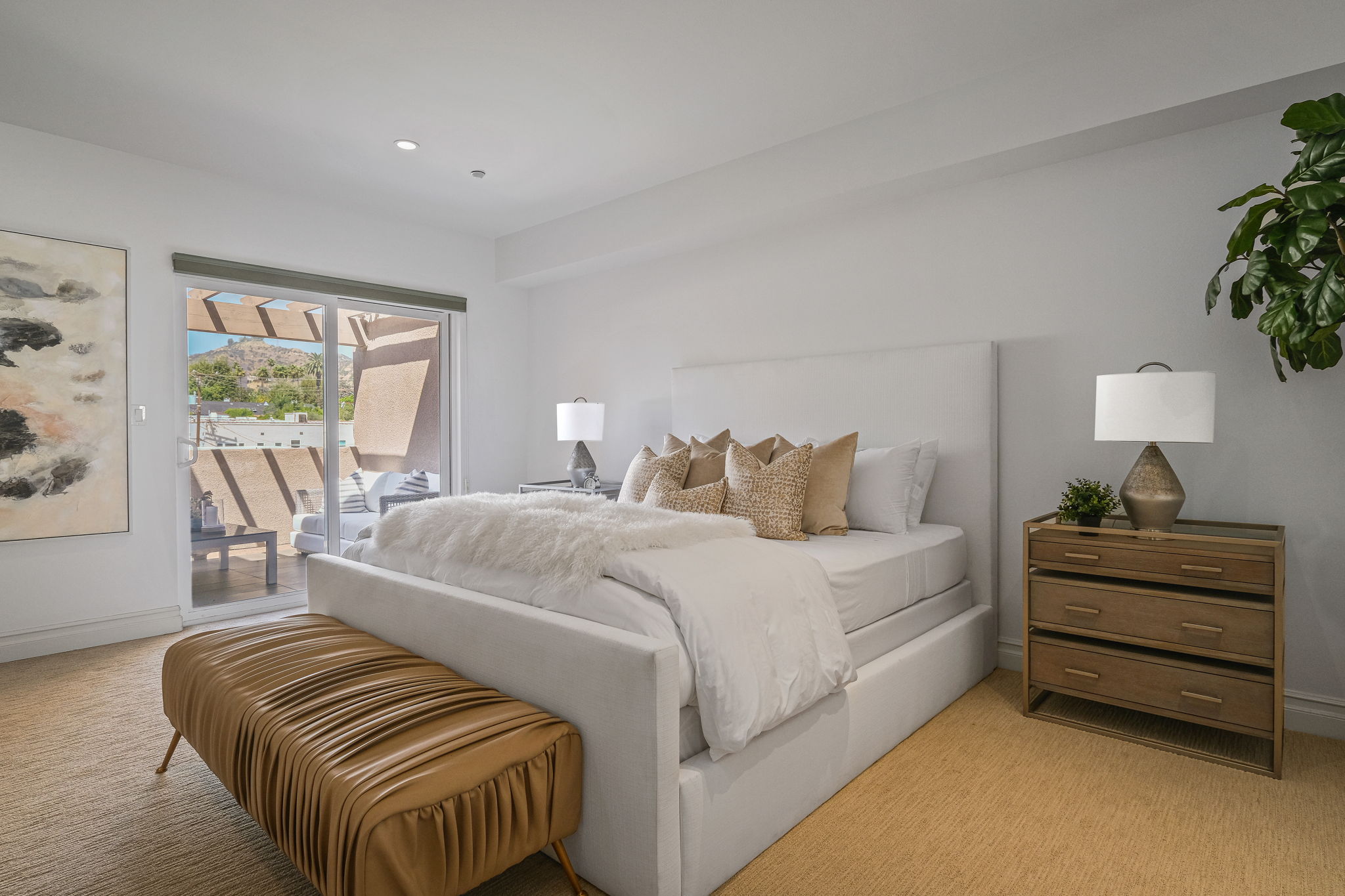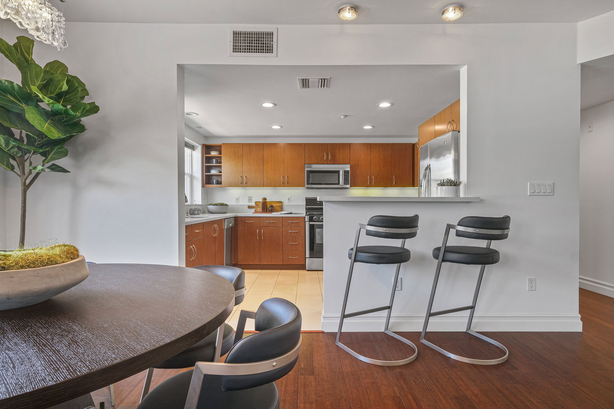 A beautiful penthouse in a quiet and well-maintained 16-unit building with stunning views of the Hollywood Hills. This generously sized 2 bed / 2 bath condo features an open floor plan with a plethora of natural light, a spacious living and dining room with fireplace, gourmet chef's kitchen, and two private balconies off the living room and owner's suite. The oversized owner's suite is replete with a walk-in closet and a luxurious ensuite bathroom with soaking tub and separate rainfall shower. Low HOA dues, in-unit washer and dryer, and 3 parking spots complete this amazing opportunity in the heart of West Hollywood.