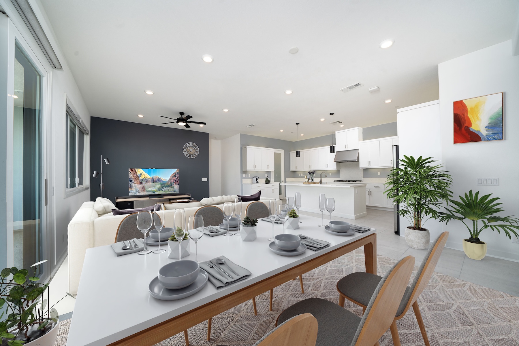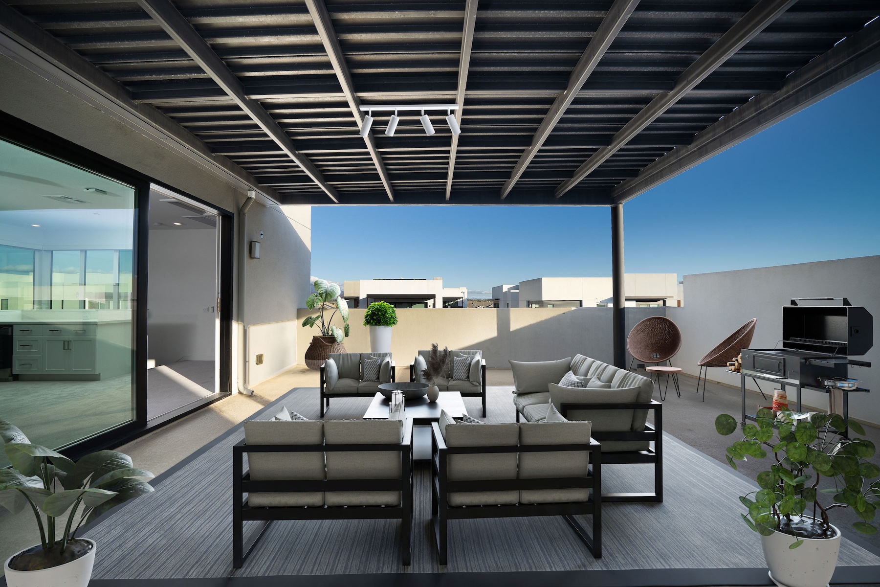 Experience modern sophistication and top-tier upgrades in this nearly brand-new Velocity Residence 3 home, built in 2020, located in the highly sought-after Tustin Legacy community. This stunning three-story, single-level-living flat offers 3 bedrooms, 3 bathrooms, a versatile third-level entertainment space, a spacious rooftop deck, and a 2-car garage with extra storage. Step inside to discover an elegantly upgraded interior, featuring premium flooring throughout and automatic window shades on all windows for effortless comfort. The open-concept main level seamlessly connects the great room, dining area, and gourmet kitchen, which boasts a large center island and custom pantry closet—perfect for both entertaining and everyday living. The main level also features all three bedrooms, including a luxurious owner’s suite with a walk-in closet, spa-inspired bathroom, dual vanities, and a walk-in shower. A secondary master bedroom offers its own ensuite bathroom for added privacy and convenience. The well-appointed third bedroom provides easy access to a full bathroom. On the third level, a spacious entertainment room offers the perfect space for a home theater, game room, gym, or lounge—tailored to fit your lifestyle needs. Just beyond, the expansive rooftop deck is an entertainer’s dream, ideal for outdoor dining, hosting gatherings, or simply enjoying the California sunsets. Residents of Tustin Legacy enjoy access to The Connection, a premier 0.6-acre community recreation center featuring a swimming pool, spa, barbecues, and more. With high-end upgrades, smart-home features, and incredible rental potential, this is a rare opportunity to own a move-in ready, nearly new home in one of Tustin’s most desirable communities.