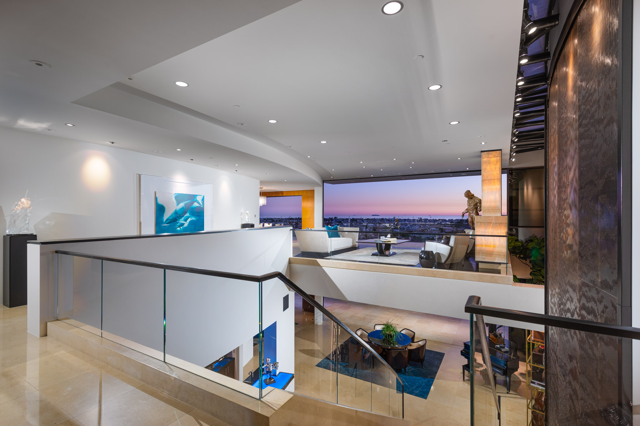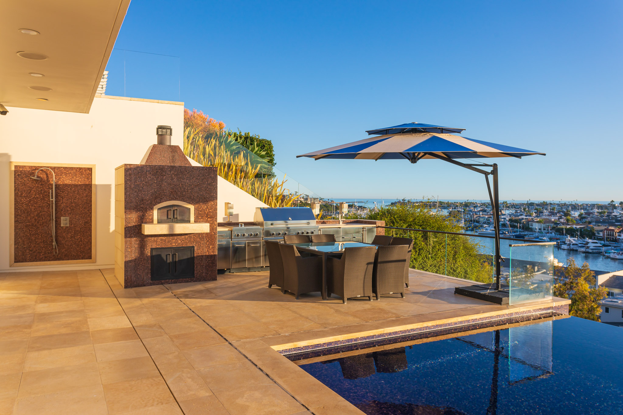 This estate boasts unparalleled design and unrivaled construction quality, with explosive front-row panoramic views of the harbor. Sitting on more than 1/3 of an acre, the 11,000+ sq. ft. home is one of the largest private residences in all of North America to be certified LEED Platinum, and includes a $1m+ custom 14-seat theater/2 channel audiophile listening room designed by Keith Yates, a commercial full-size elevator by Kone, a full-size professional bar, full automation system by Savant, security cameras, a gym, 4-car garage, basement playroom that is readily convertible to a wine cellar, an infinity pool with Jacuzzi, outdoor entertainment area complete with grill, refrigerator, ice maker, and full-size wood burning pizza oven, and much more. No expense was spared in the construction as it comprises 1 million pounds of heavy steel and 17,000 yards of concrete (no wood was used), solid bronze windows, 14,000 sq. ft. of Jerusalem stone, Venetian plaster, resting on caissons extending down 25 feet into bedrock. A 26.5KW solar array providing a large percentage of the home’s energy requirements, a 100% water treatment process can re-process and recycle all the water needs for the home, a separate 38KW generator with a built-in fuel supply that can power the emergency functions of the house for several days. While the views are the best that Newport Beach has to offer, the home’s quality, elegance and technological sophistication are the best the world has to offer.