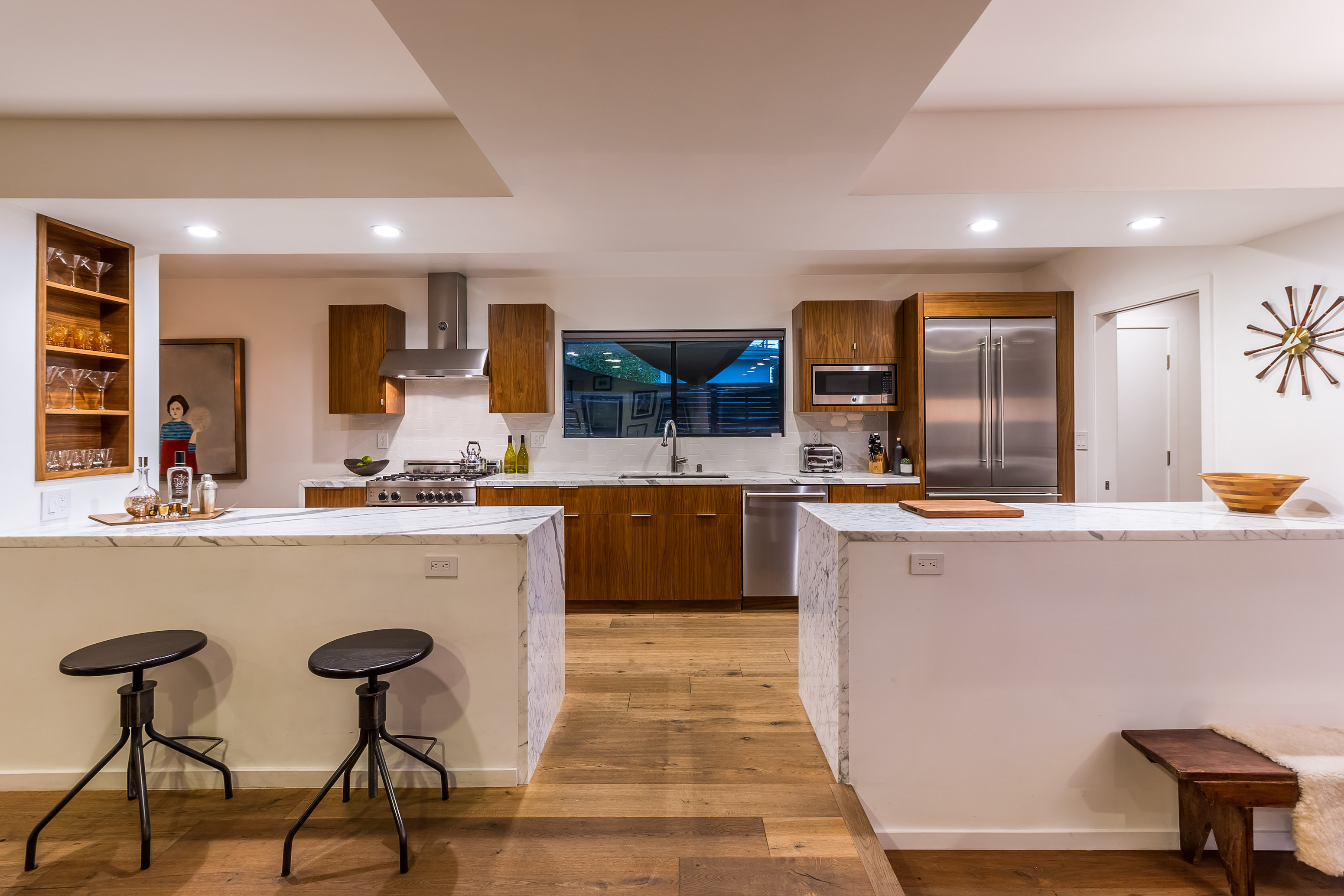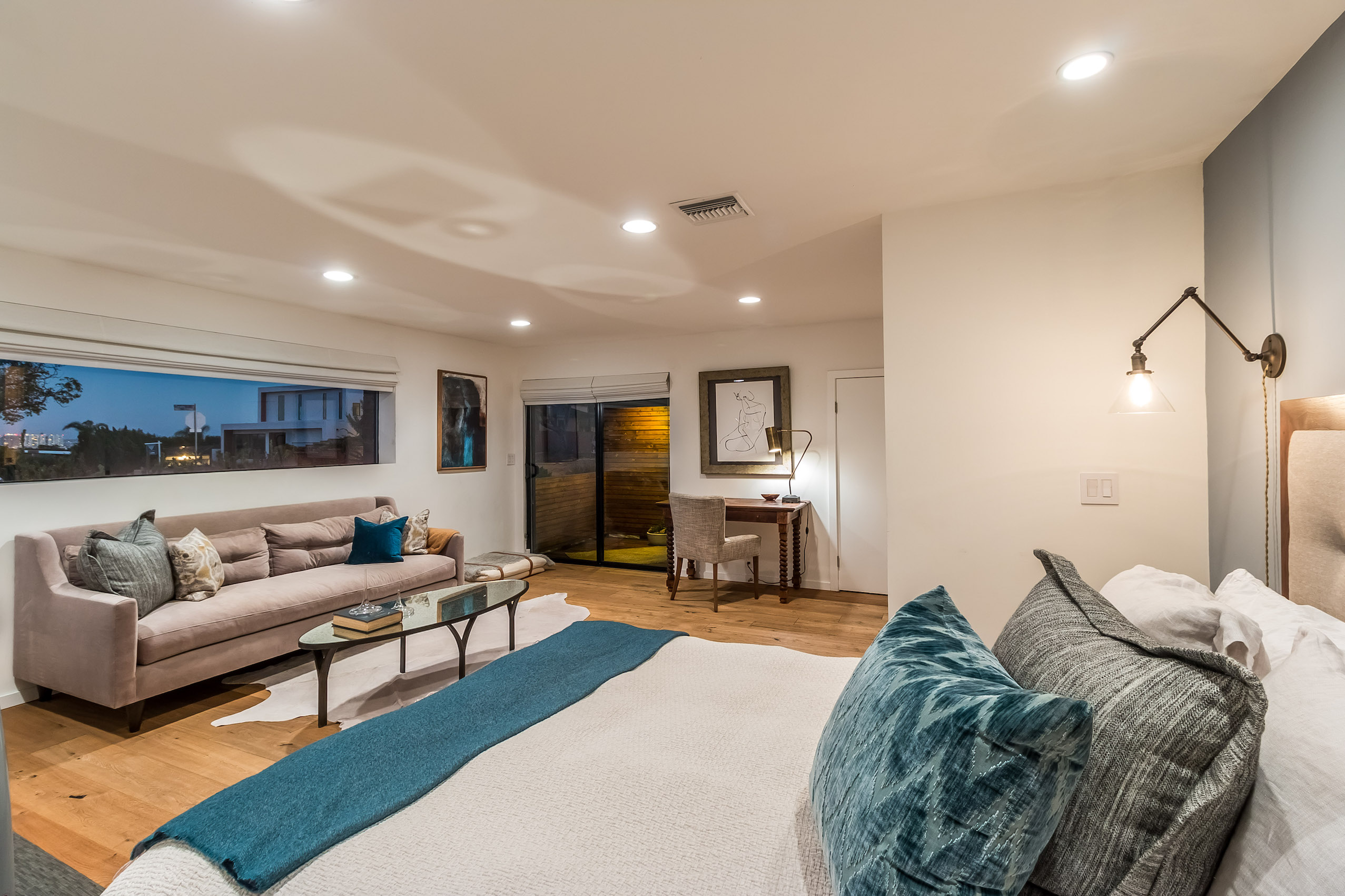 Exquisitely designed for both form and function, this mid-century home in prime Mar Vista was recently completely renovated in 2014 with no expense spared. Beautifully landscaped grounds with native drought-tolerant plants and a permeable grass paver driveway greet you as you enter into a bright and airy open floor plan. Impeccable indoor/outdoor flow throughout with artisan oak flooring and a spacious living room with large sliding doors which opens to a serene backyard. Chefs kitchen with professional-grade appliances, walnut cabinetry, and marble countertops. Four generously-sized bedrooms including an oversized master suite with private porch, walk-in closet, and spa-like bathroom with shower and bathtub. Tranquil and professionally designed backyard with mature landscaping, seating area, and fire pit. Centrally located next to Santa Monica, Venice, and the beach!