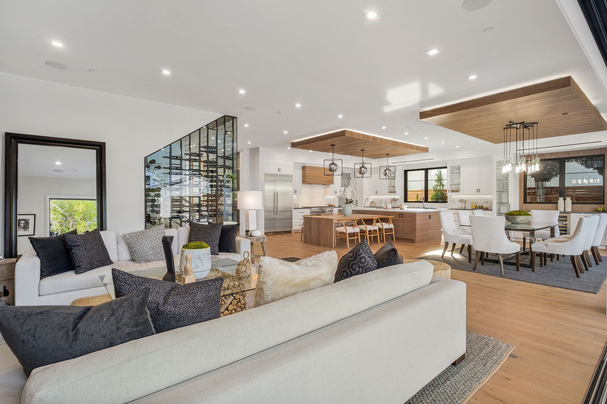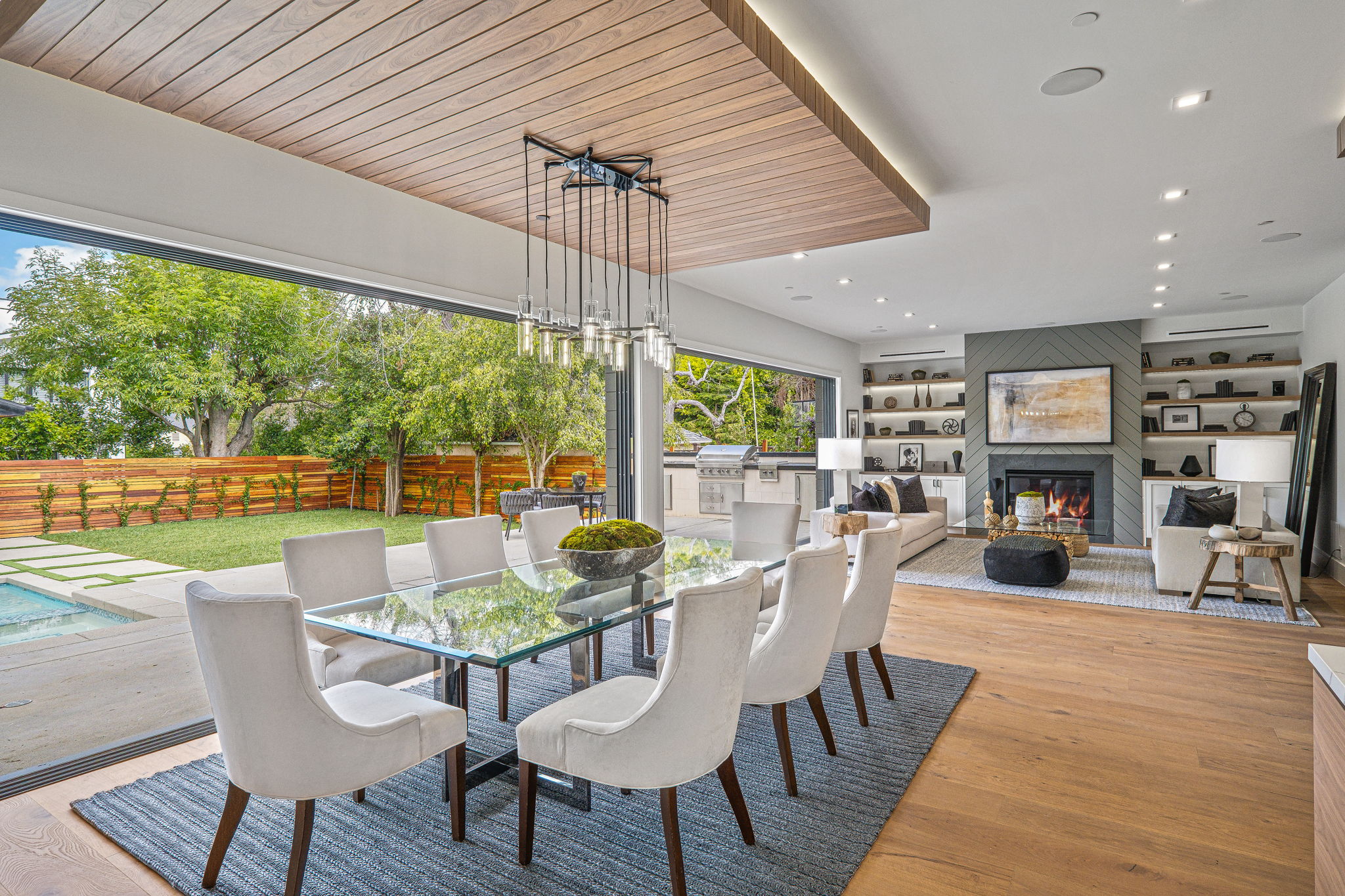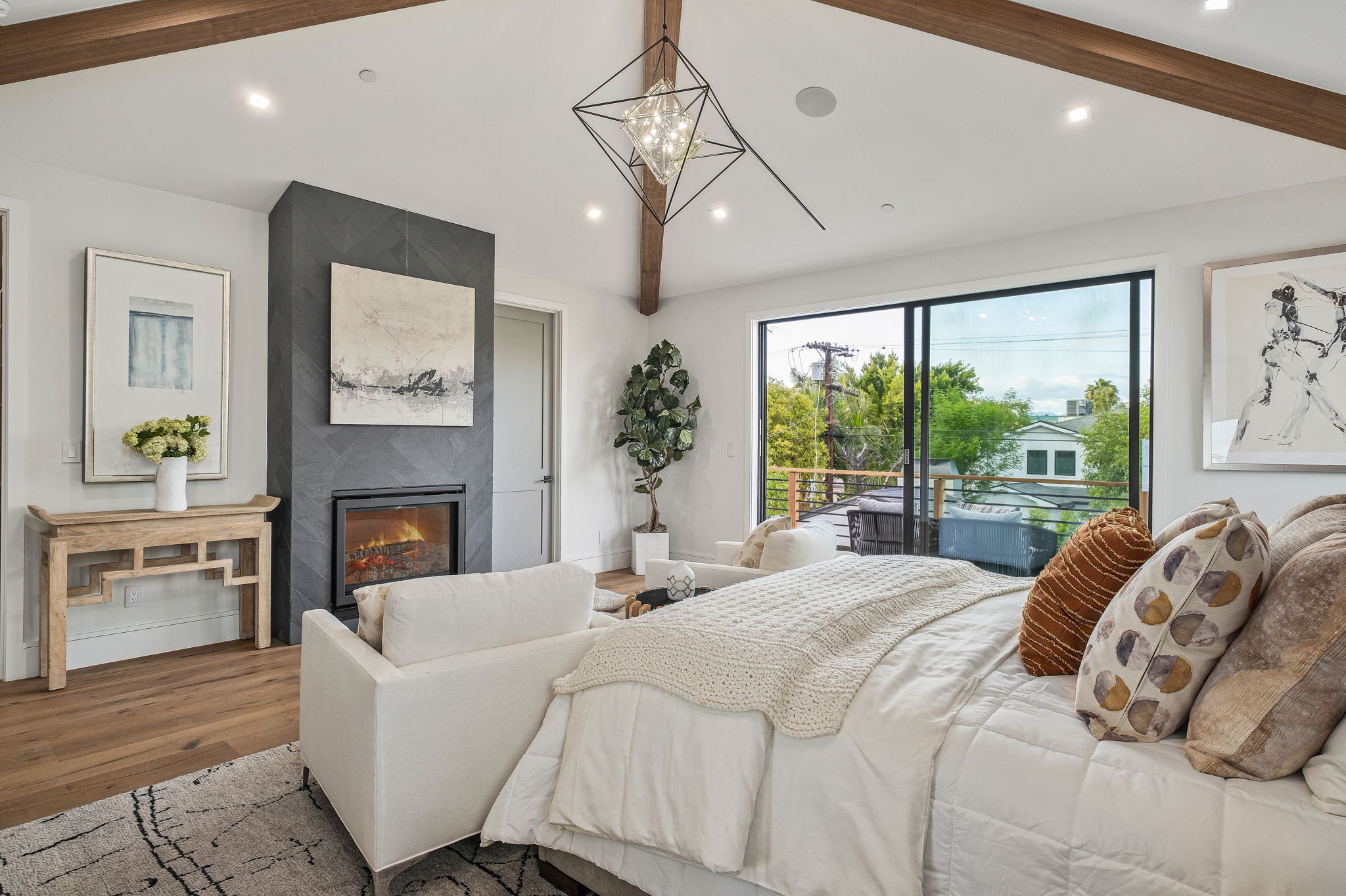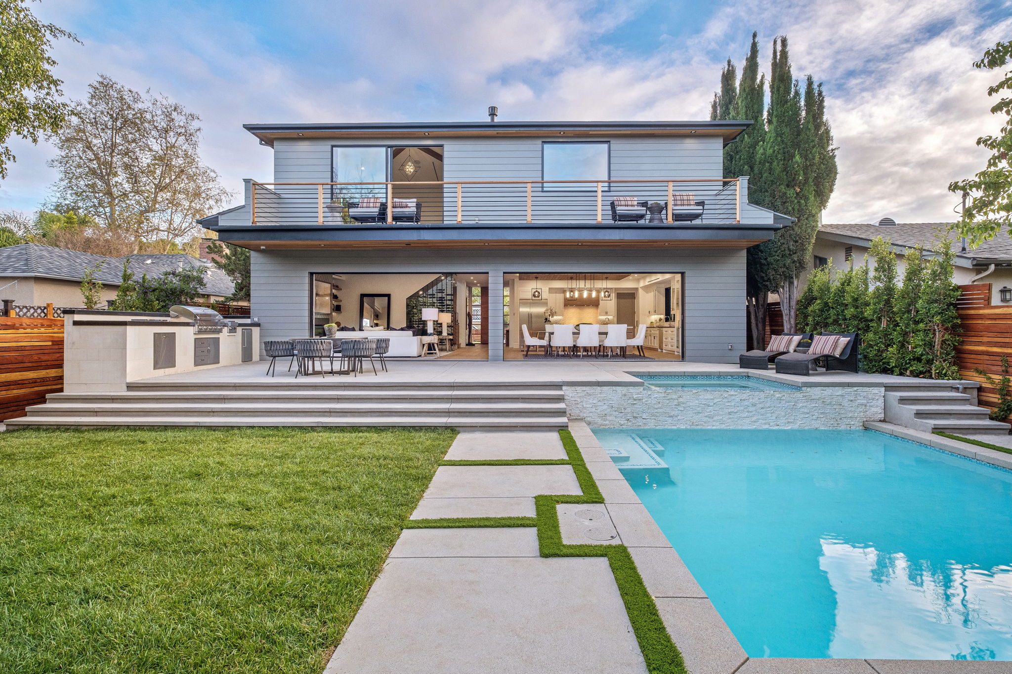 A gated, brand new construction in highly coveted Studio City just south of the Blvd. No detail has been overlooked in this impeccably designed entertainer’s paradise with unrivaled craftsmanship and the finest finishes. Expansive chef’s kitchen with top-of-the-line appliances, breakfast bar, oversized island, walk-in pantry, two sinks, and beautiful walnut cabinets. Pocket Fleetwood sliding doors in the open living room lead to the wooden sun-deck equipped with outdoor kitchen, saltwater pool, infinity hot tub, lush landscaping, covered outdoor patio and fireplace for a quintessential indoor-outdoor California lifestyle. Five bedrooms, all with ensuite bathrooms and walk-in closets, smart home automation, wide plank European oak floors, and Crittal style window accents. The master suite boasts vaulted ceilings, exposed beams, enormous custom walk-in closet and spa-like bathroom with double vanity sinks, walk-in shower, and freestanding bathtub. This forever home is a must see.