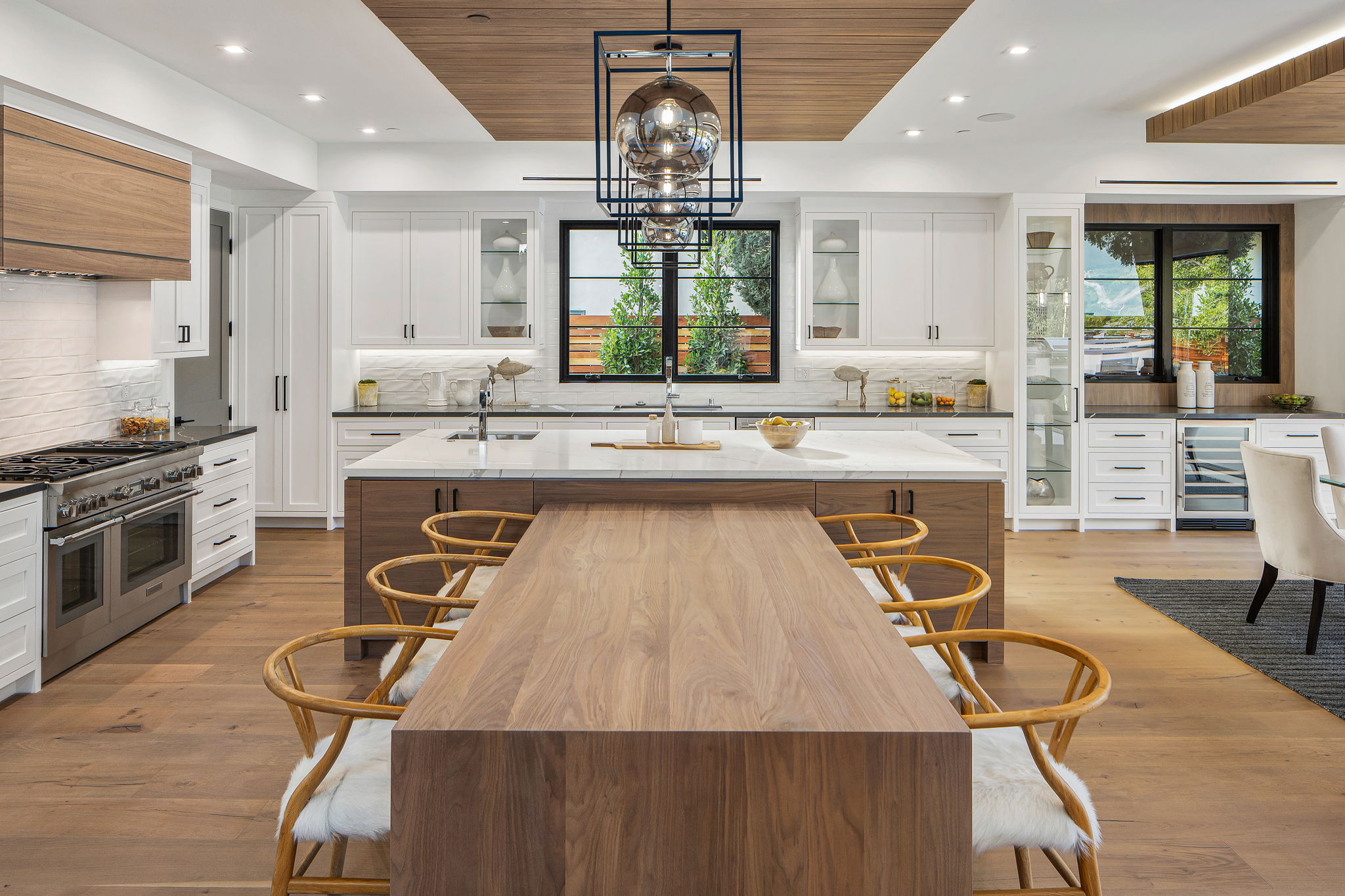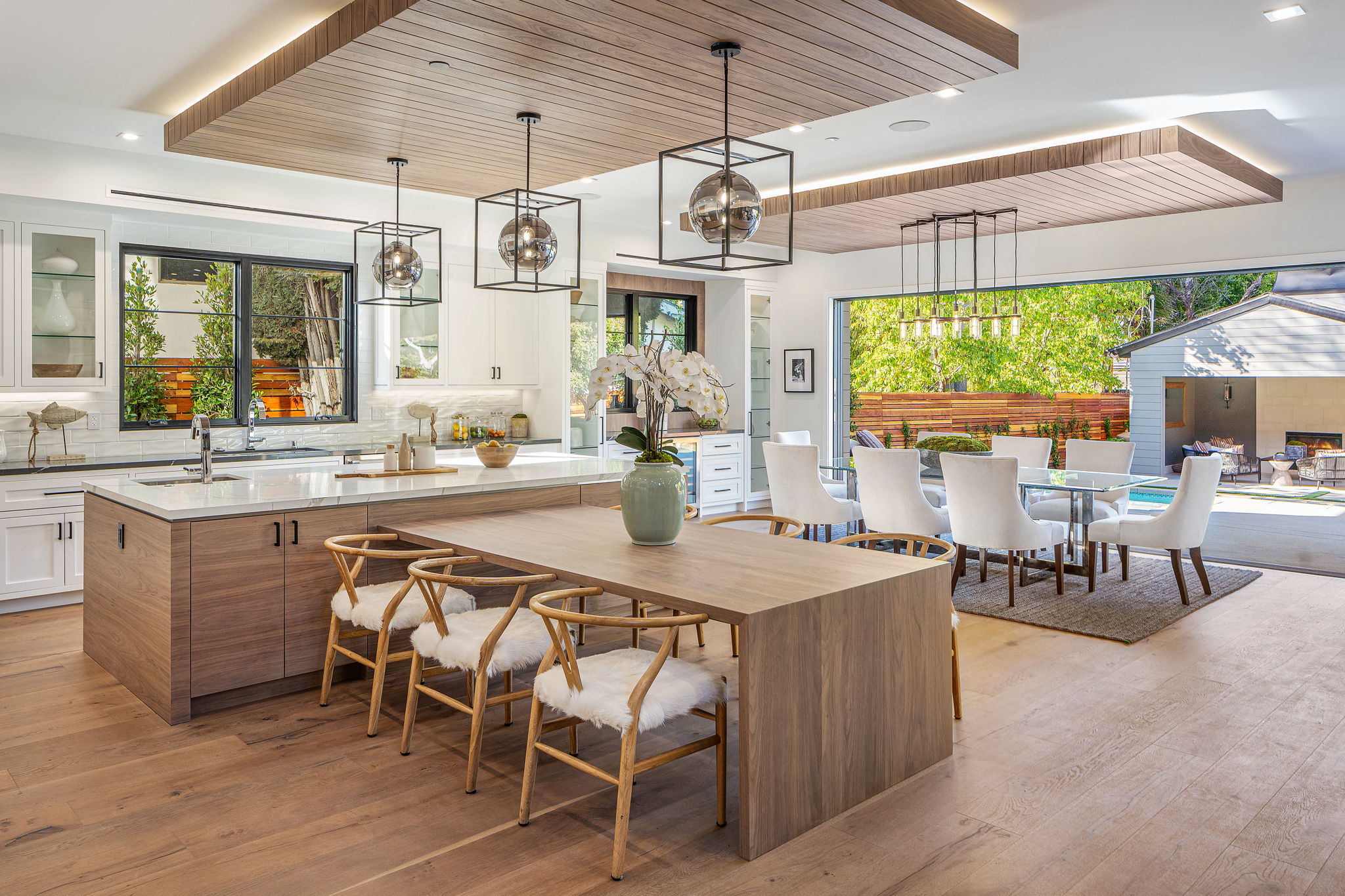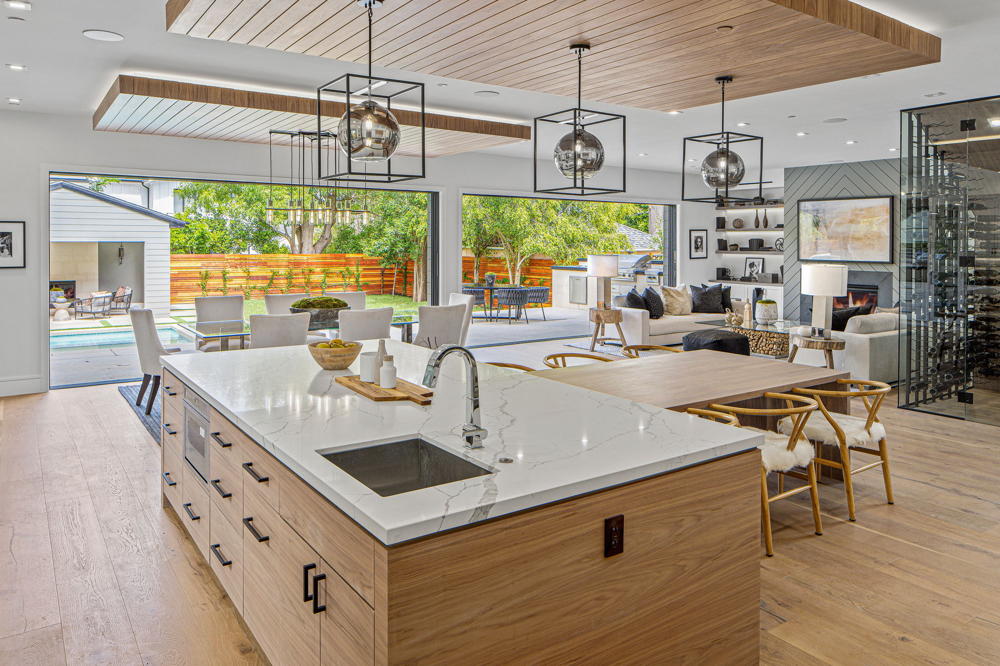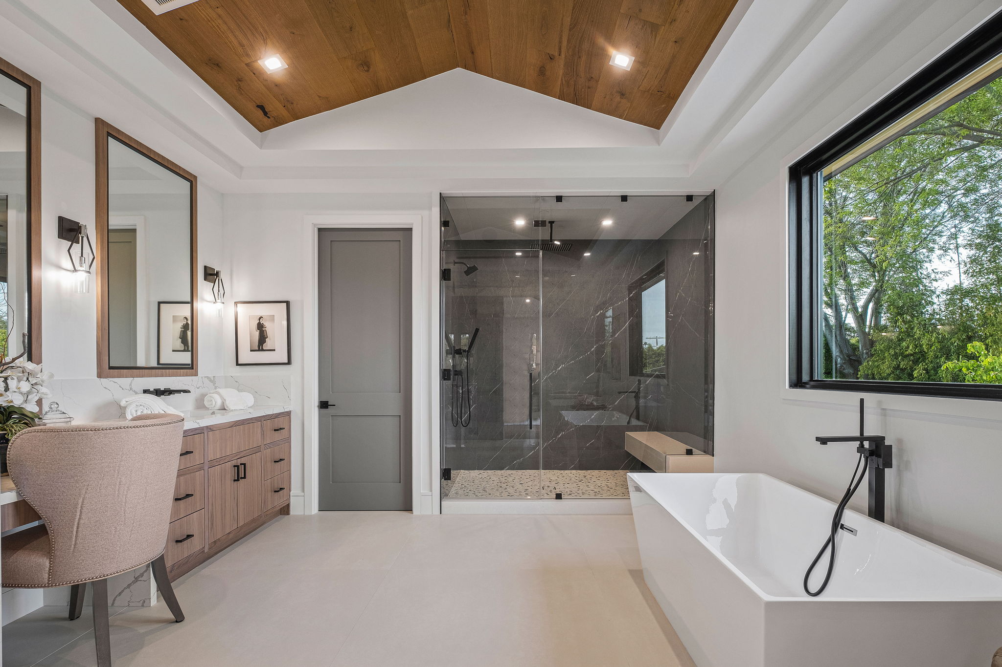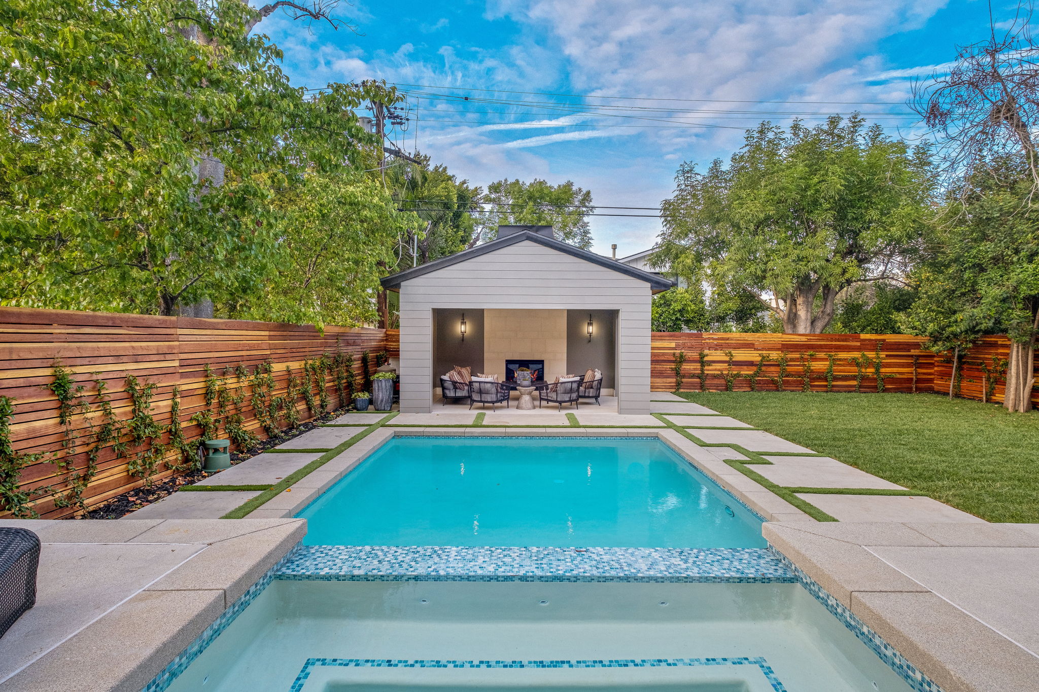 A gated, brand new construction in highly coveted Studio City just south of the Blvd. No detail has been overlooked in this impeccably designed entertainer’s paradise with unrivaled craftsmanship and the finest finishes. Expansive chef’s kitchen with top-of-the-line appliances, breakfast bar, oversized island, walk-in pantry, two sinks, and beautiful walnut cabinets. Pocket Fleetwood sliding doors in the open living room lead to the wooden sun-deck equipped with outdoor kitchen, saltwater pool, infinity hot tub, lush landscaping, covered outdoor patio and fireplace for a quintessential indoor-outdoor California lifestyle. Five bedrooms, all with ensuite bathrooms and walk-in closets, smart home automation, wide plank European oak floors, and Crittal style window accents. The master suite boasts vaulted ceilings, exposed beams, enormous custom walk-in closet and spa-like bathroom with double vanity sinks, walk-in shower, and freestanding bathtub. This forever home is a must see.