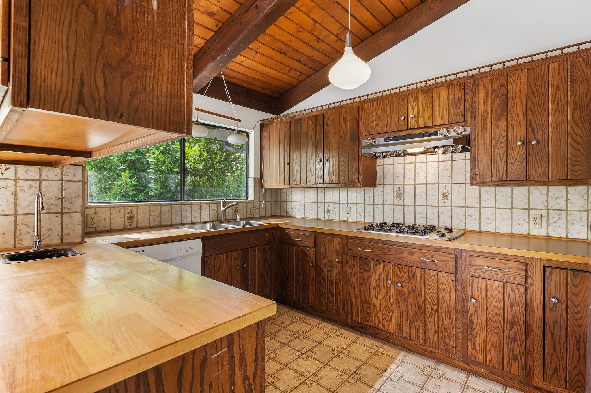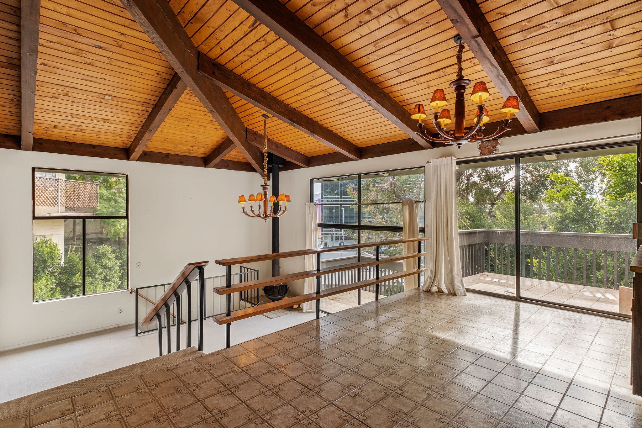 An architectural home nestled directly above the Sunset Strip., walking distance to West Hollywood's trendiest eateries, shopping, and nightlife. Sunny and bright, the property offers 3 bedrooms, with some city views from three balconies. A large yard offers enough room to build an approx. 1,100 sq. ft. guesthouse, or finish the impressive zero-edge pool and spa. One-car garage, one-car carport, and two additional uncovered parking.