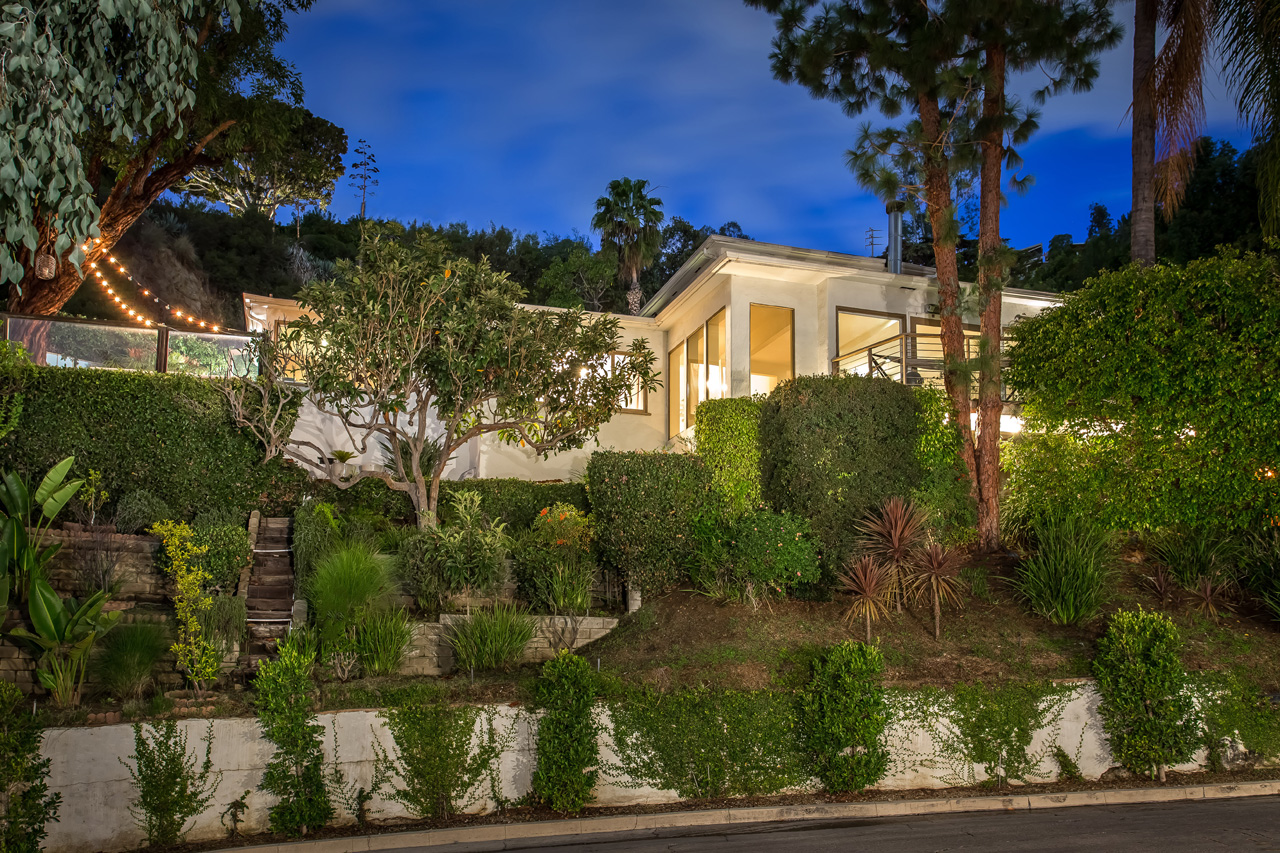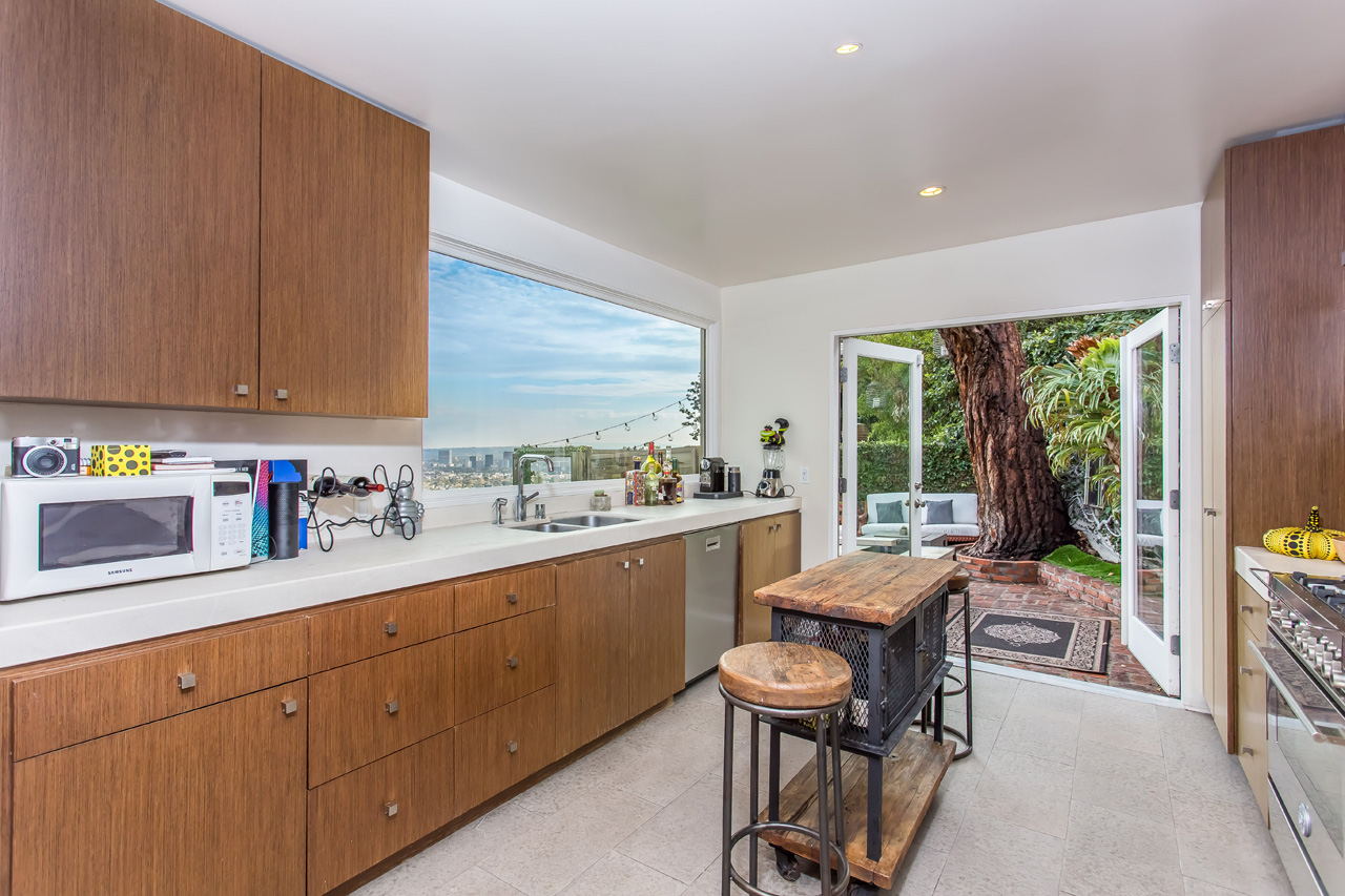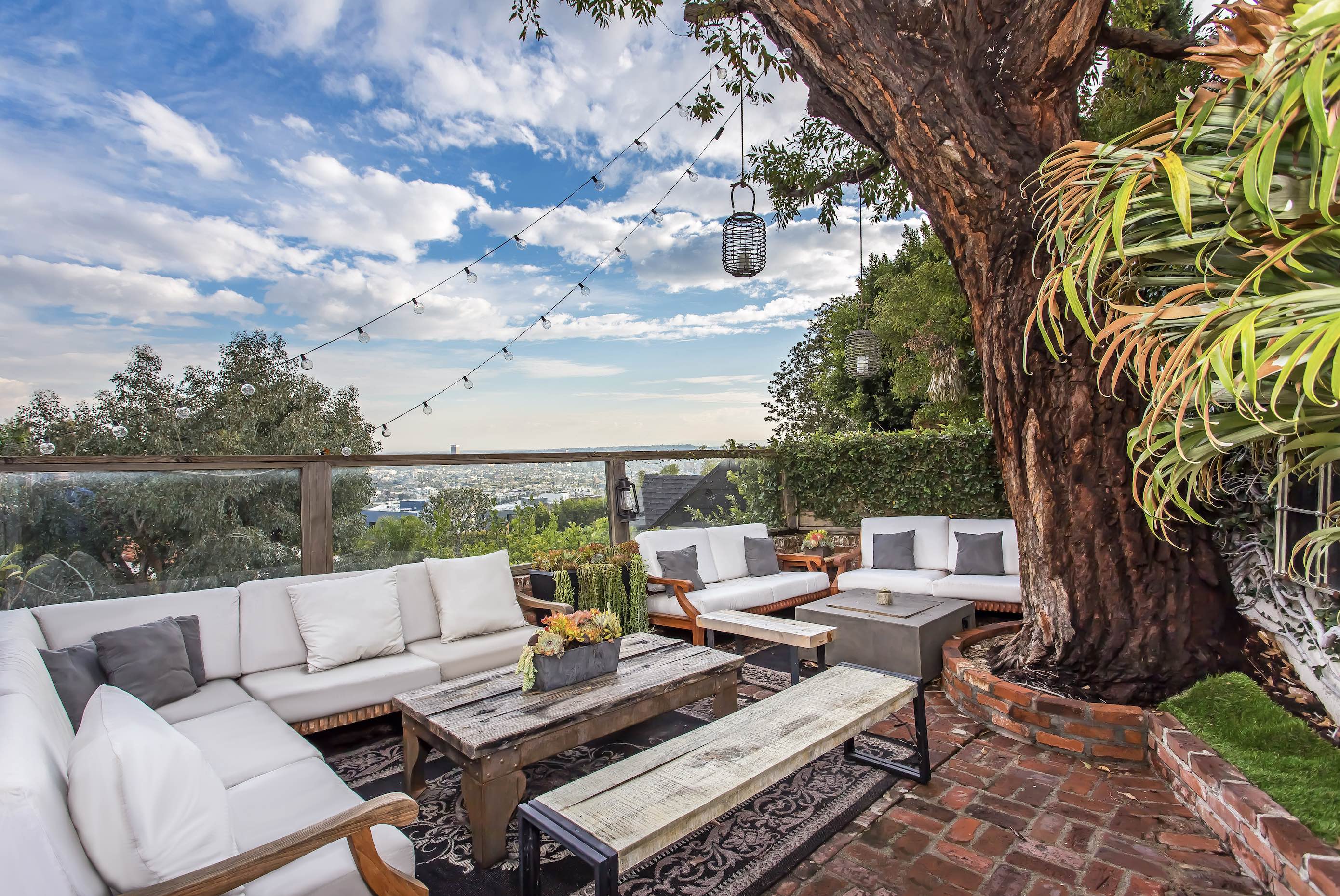 A spectacular architectural home nestled quietly above the Sunset Strip with picturesque city-lights and ocean views. Located just steps away from world class shopping, restaurants, and entertainment, this home boasts 3 Bedrooms and 3 Bathrooms, two timber decks perfect for casual entertaining, plus a private lower level bedroom suite, equipped with its own kitchen and bath. Recently renovated by Tim Campbell Studio, this home comes together with clean-lines and cutting edge designs, featuring a luxurious master suite, with a rain shower head and soaking tub, family room, dining area, and a spacious living room with an attached den/library centered by a two-sided fireplace. The stylishly modern kitchen features Viking appliances and a Bertazzoni Professional Series range, and extends freely to a generously scaled deck, making this home truly an entertainer's delight.