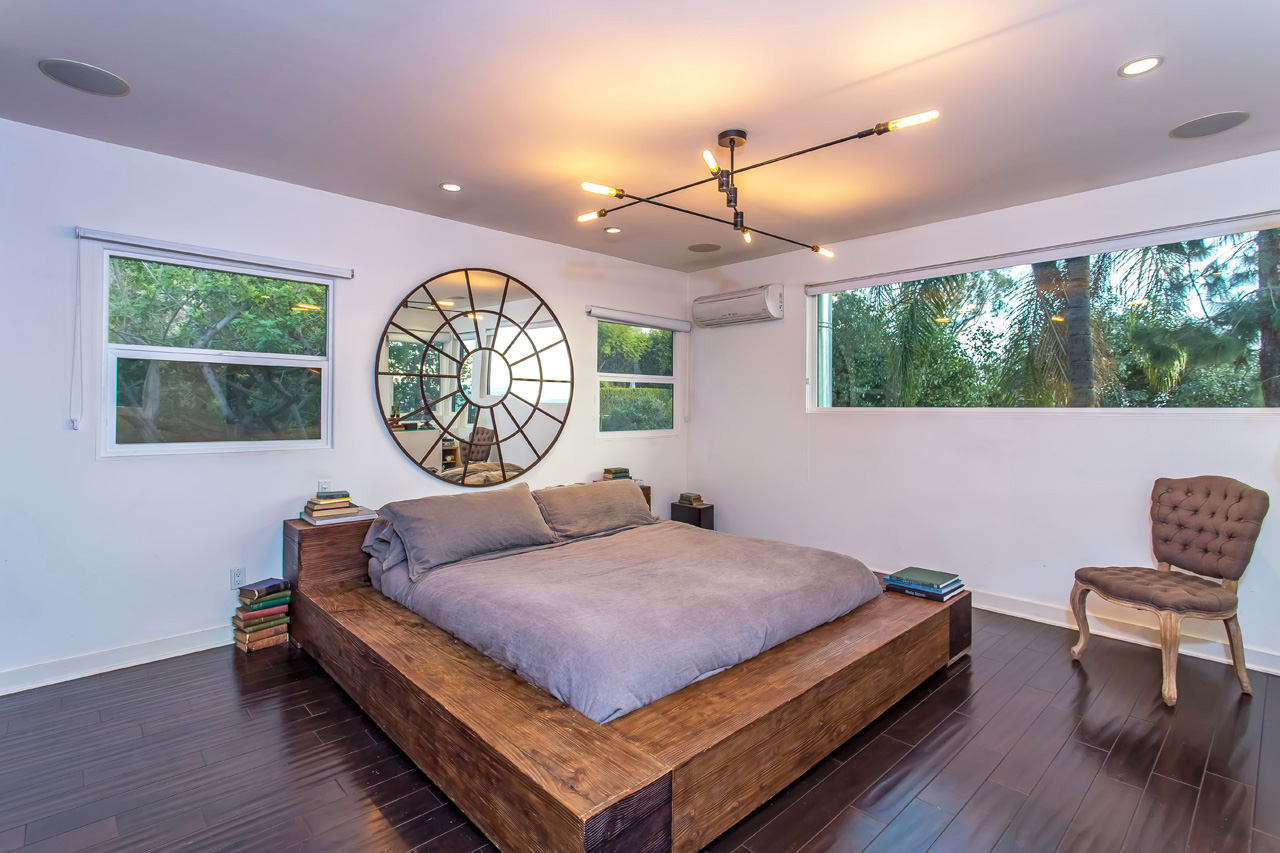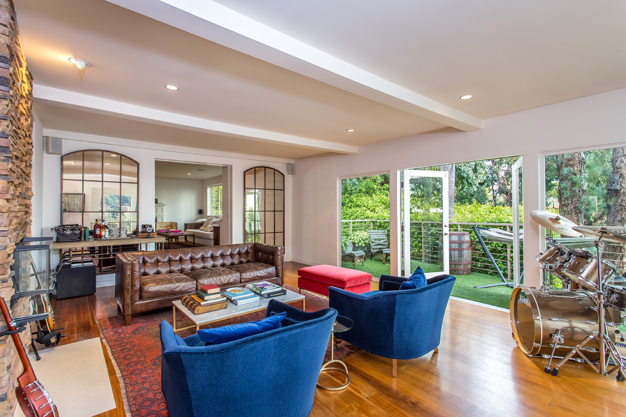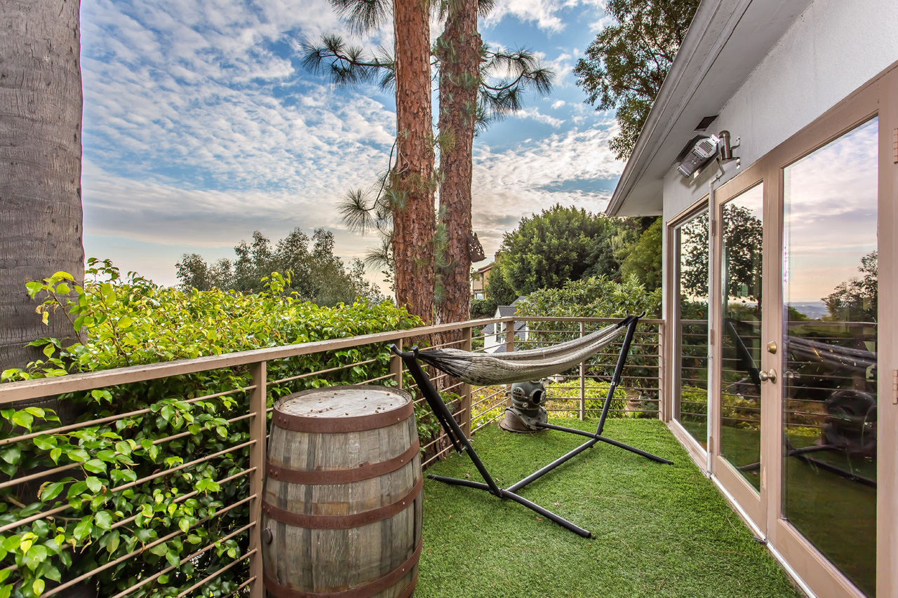 A spectacular architectural home nestled quietly above the Sunset Strip with picturesque city-lights and ocean views. Located just steps away from world class shopping, restaurants, and entertainment, this home boasts 3 Bedrooms and 3 Bathrooms, two timber decks perfect for casual entertaining, plus a private lower level bedroom suite, equipped with its own kitchen and bath. Recently renovated by Tim Campbell Studio, this home comes together with clean-lines and cutting edge designs, featuring a luxurious master suite, with a rain shower head and soaking tub, family room, dining area, and a spacious living room with an attached den/library centered by a two-sided fireplace. The stylishly modern kitchen features Viking appliances and a Bertazzoni Professional Series range, and extends freely to a generously scaled deck, making this home truly an entertainer's delight.