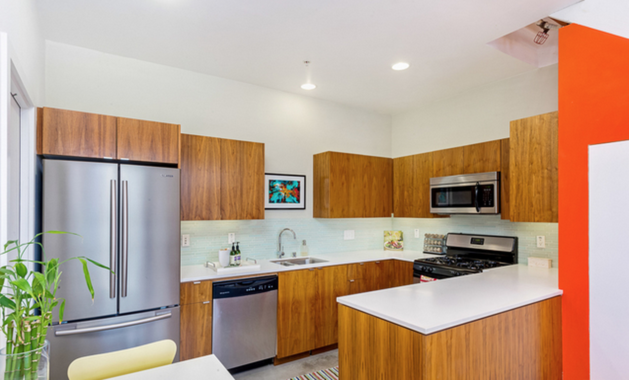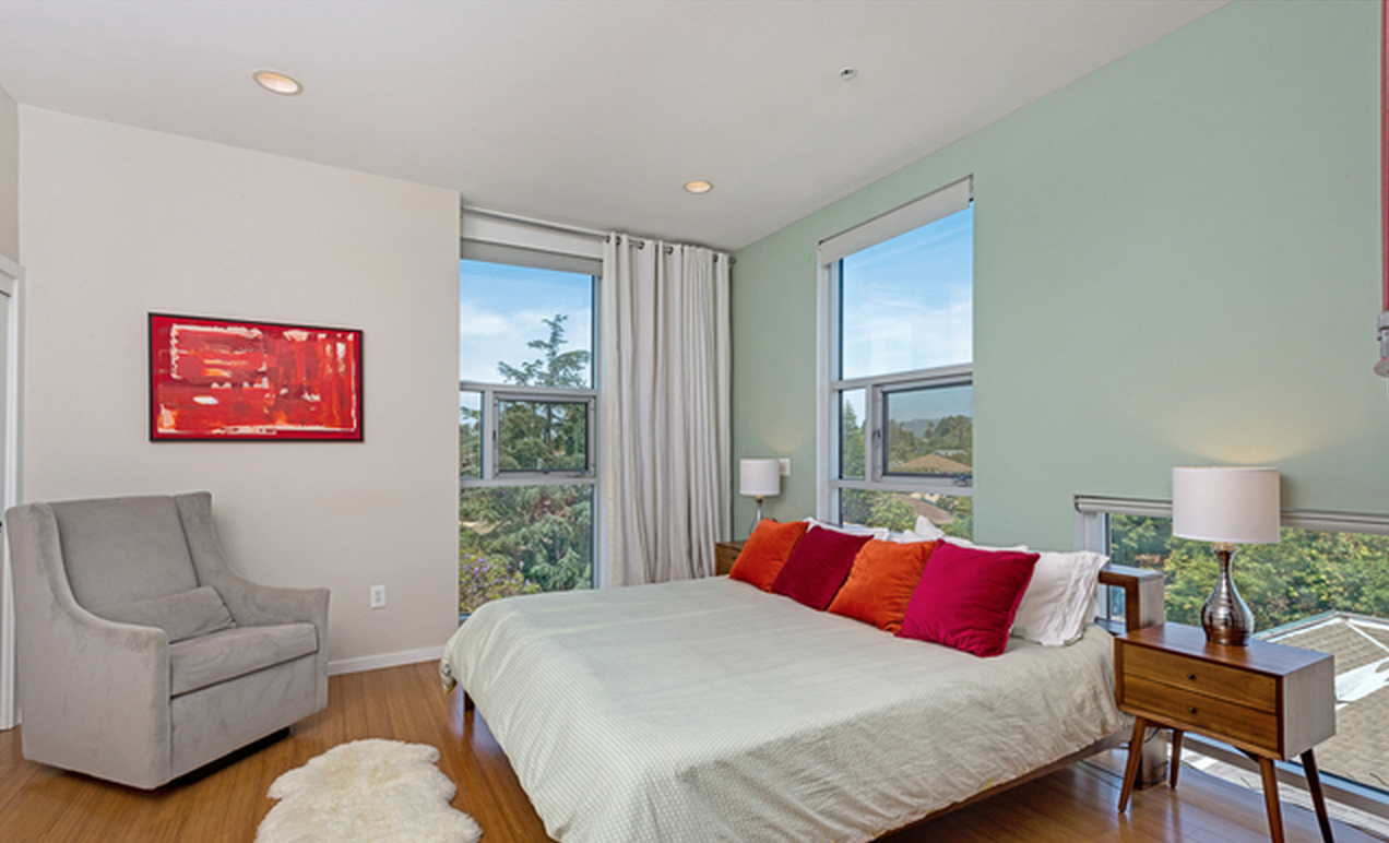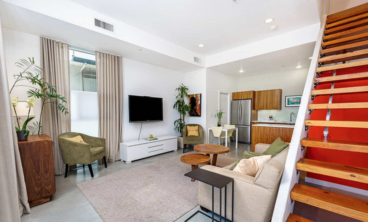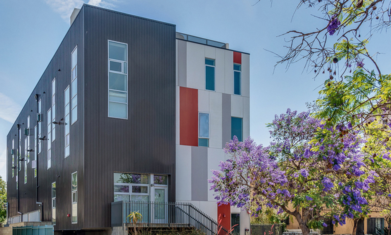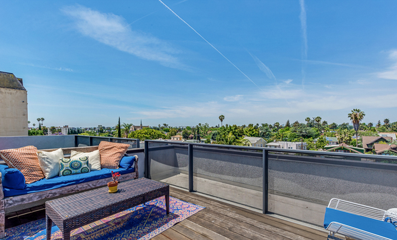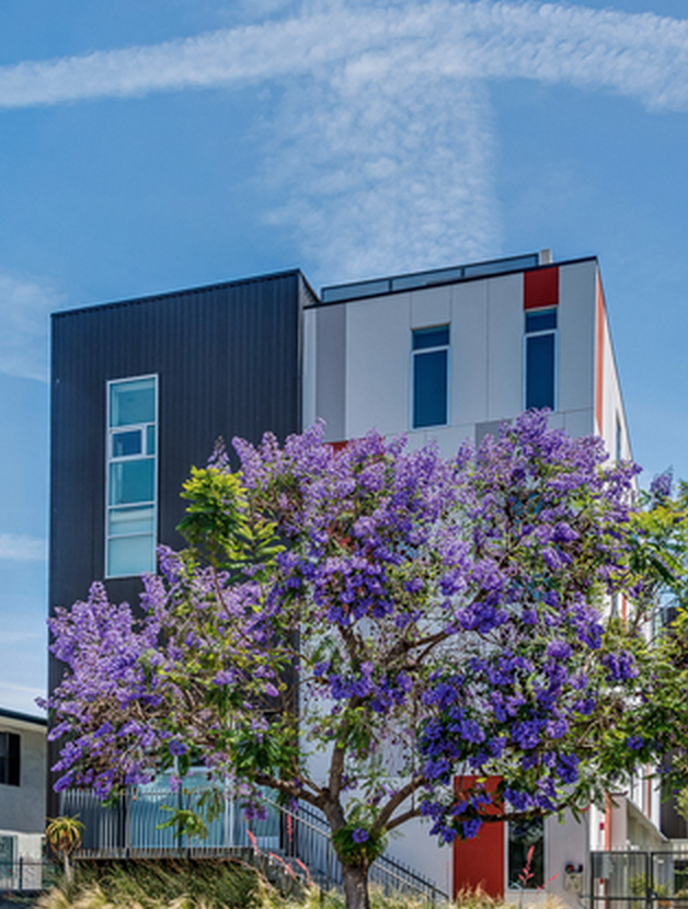 Modern Loft townhome in Gramercy Row, designed by award winning Assembledge+, AIA. Premiere front unit with private entrance. 2 Bedrooms, 2.5 Bathrooms. High ceilings, walls of glass, concrete and bamboo flooring. First Level: Living/Dining, Chef's Kitchen & powder Rm. 2nd Level: Guest bedroom Suite. 3rd Level: Luxurious Master Retreat. Top: Panoramic Views from private rooftop terrace. Sustainable Modern Living set amongst the charm of a historic residential neighborhood, just a short stroll to Larchmont Village Restaurants, Cafes and Shopping.