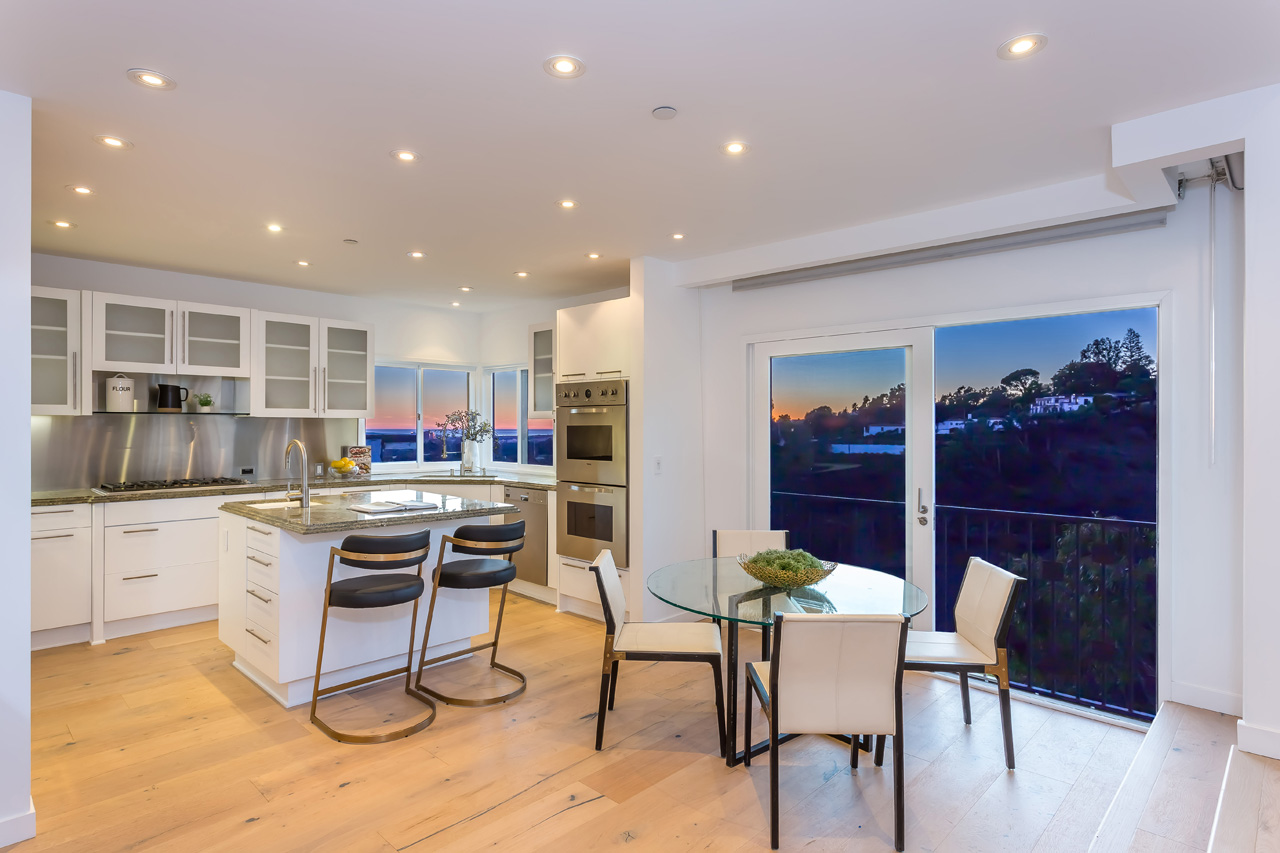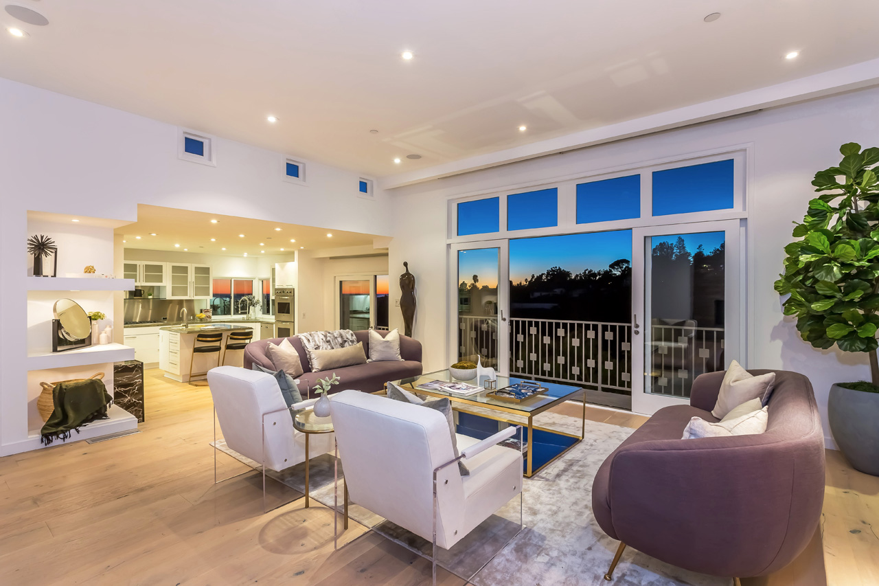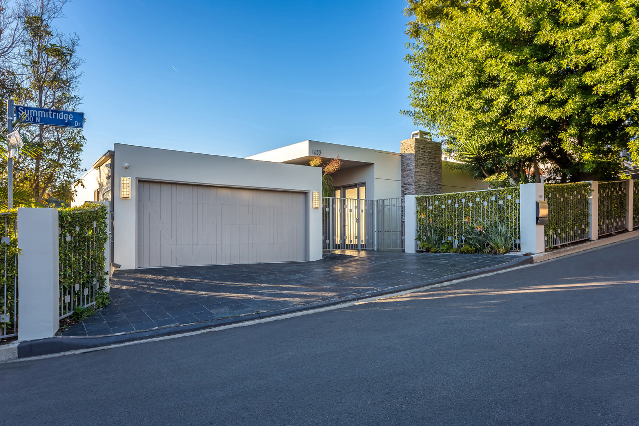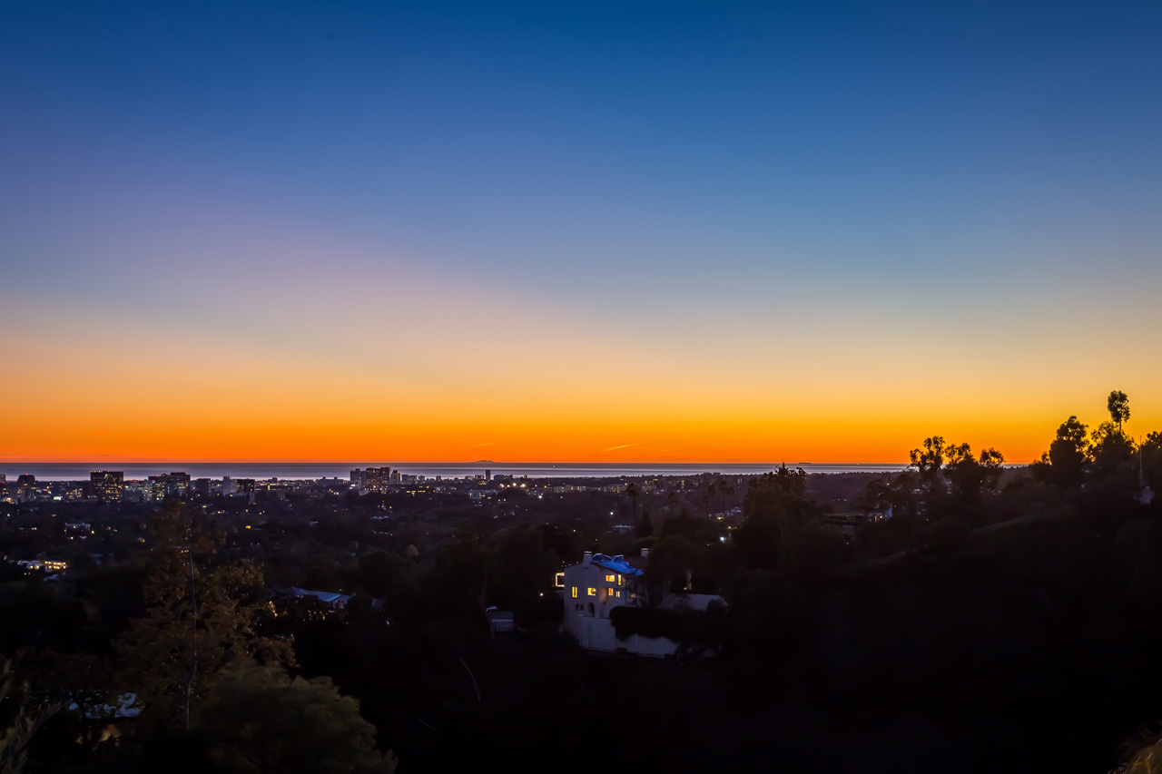Completely renovated home in lower BHPO with unobstructed, panoramic canyon, city and ocean views from every floor. Oversized windows throughout flood this modern home with ambient, natural light from sunrise to sunset. The two large, covered decks on the bottom and middle floor are ideal for entertaining and offer the perfect indoor-outdoor living space with a built-in outdoor spa. The bottom level doubles as an independent guest quarters or home office complete with an ensuite bathroom and separate entrance. Equipped with a home security system, Nest thermostats, electric shades, built-in speakers, and a solar panel system which has been leased and prepaid for the next 16 years. Full sized, two car garage with built in storage cabinets and two additional parking spaces in the beautifully custom tiled driveway.