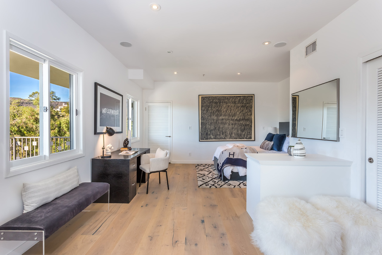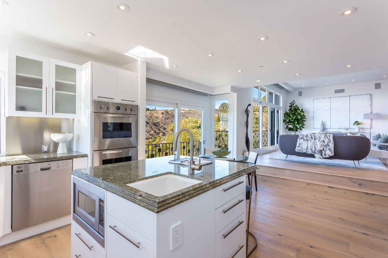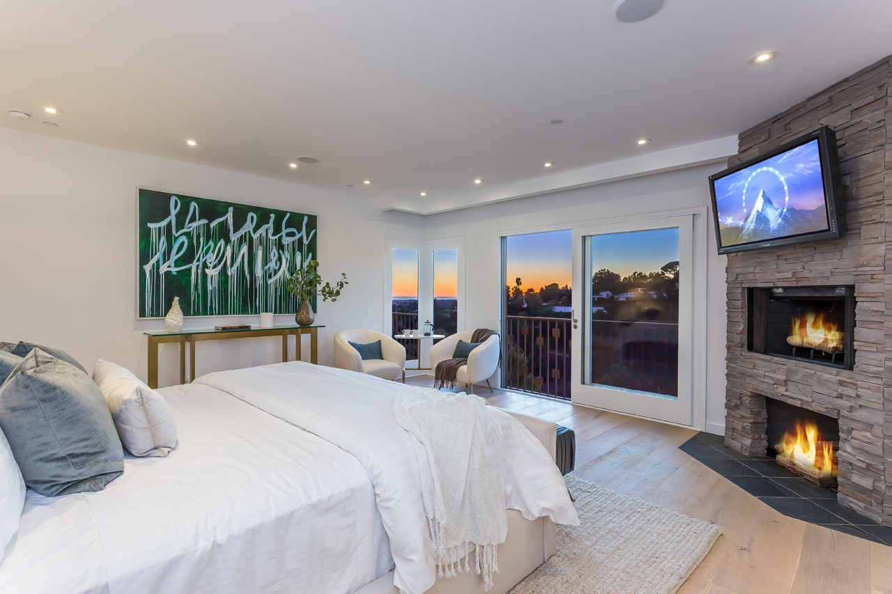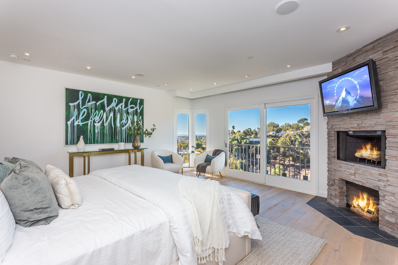 Completely renovated home in lower BHPO with unobstructed, panoramic canyon, city and ocean views from every floor. Oversized windows throughout flood this modern home with ambient, natural light from sunrise to sunset. The two large, covered decks on the bottom and middle floor are ideal for entertaining and offer the perfect indoor-outdoor living space with a built-in outdoor spa. The bottom level doubles as an independent guest quarters or home office complete with an ensuite bathroom and separate entrance. Equipped with a home security system, Nest thermostats, electric shades, built-in speakers, and a solar panel system which has been leased and prepaid for the next 16 years. Full sized, two car garage with built in storage cabinets and two additional parking spaces in the beautifully custom tiled driveway.