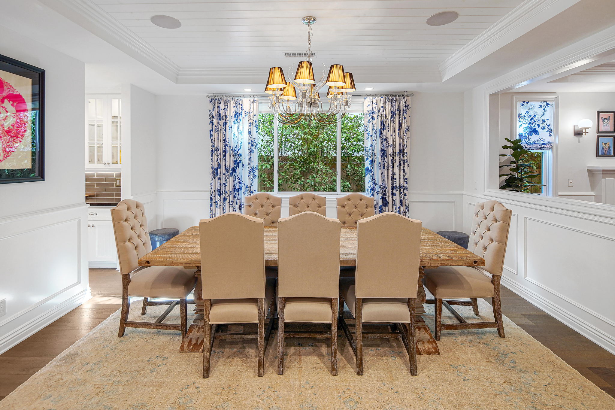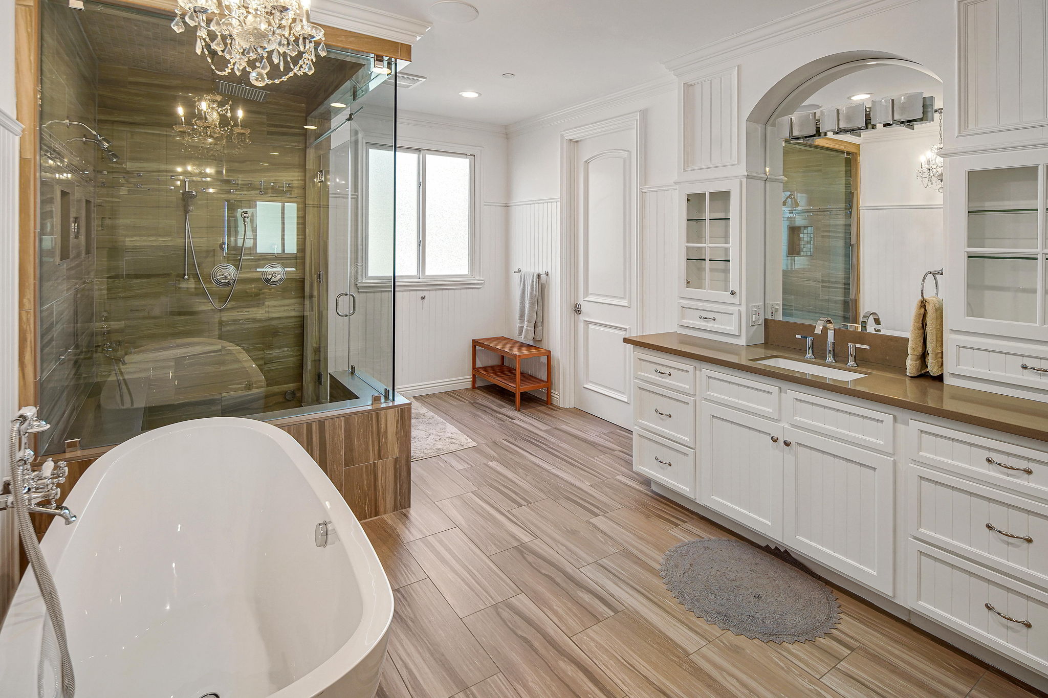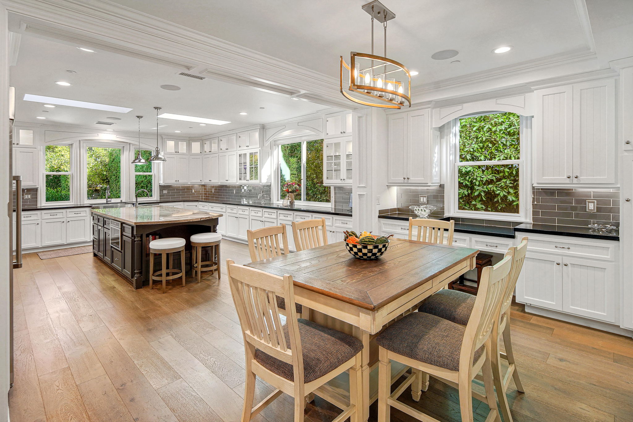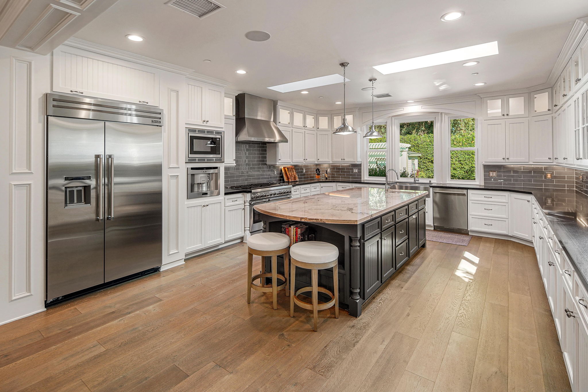 Nestled in prime Sherman Oaks just south of Ventura Blvd., this Cape Cod estate sits tucked away behind private gates and a lush front yard. Enter through the grand foyer boasting double-height ceilings, into the beautiful home replete with stunning white oak floors and custom built-in finishes and fixtures throughout. Large windows allow for abundant natural light to stream into the living room with a fireplace. There is ample space to cook and eat in the chefs kitchen with a center island and breakfast nook, which includes modern stainless steel appliances. The primary suite boasts a fireplace and expansive en-suite bathroom with a separate soaking tub and walk-in shower, as well as a double vanity. Enjoy the pool and spa in the private backyard with cabana, fire pit, and dining area perfect for relaxing or entertaining. New solar system, converted gym, automated smart home Crestron system, and gated driveway parking with 2-car garage complete this impressive offering.