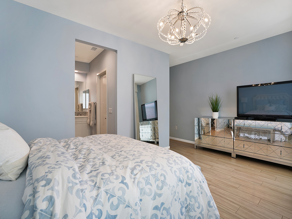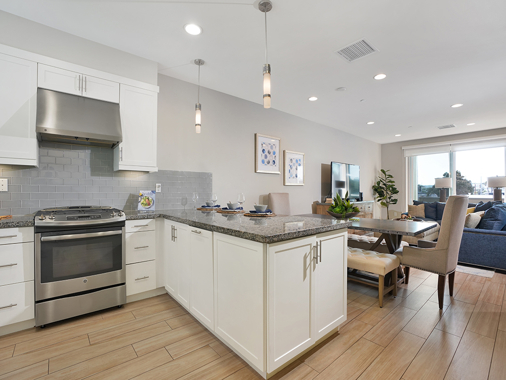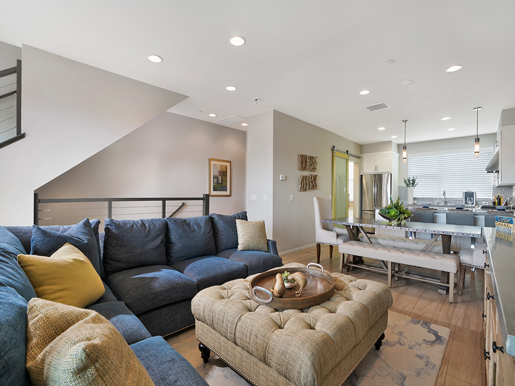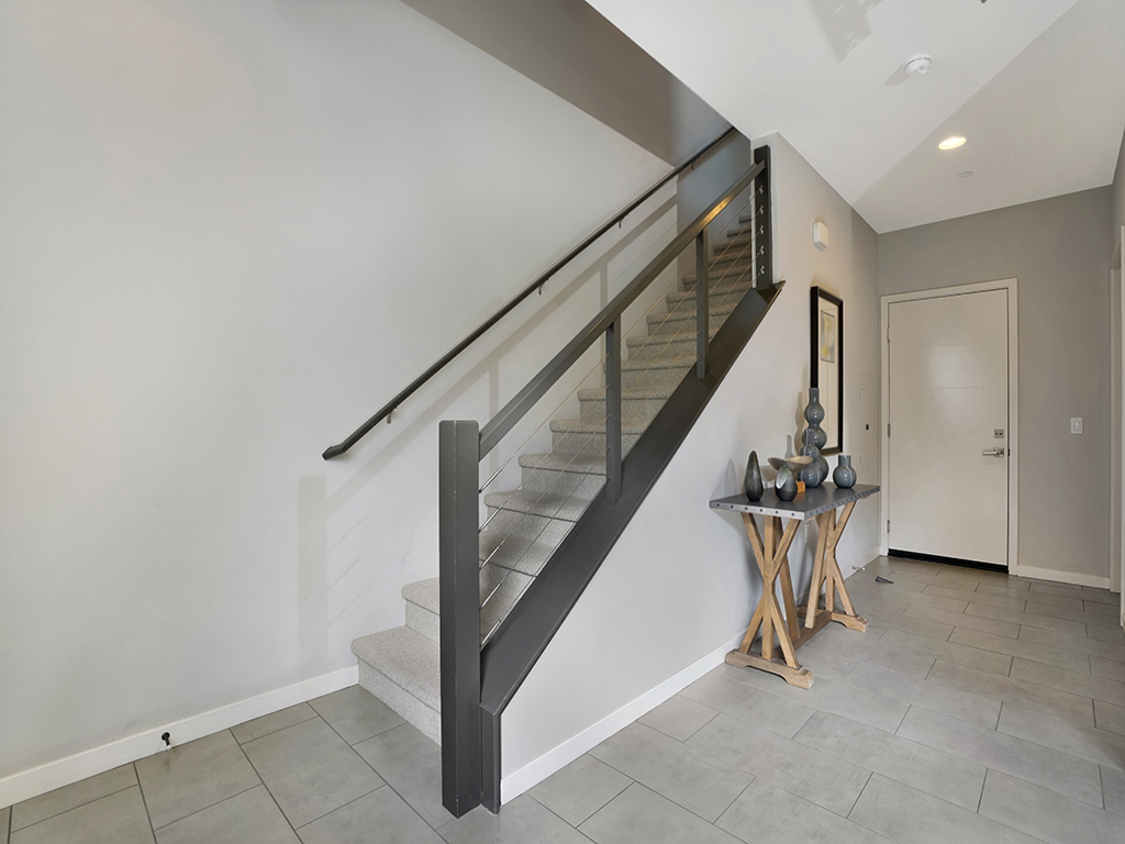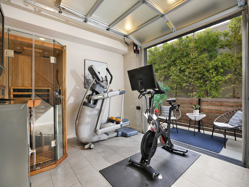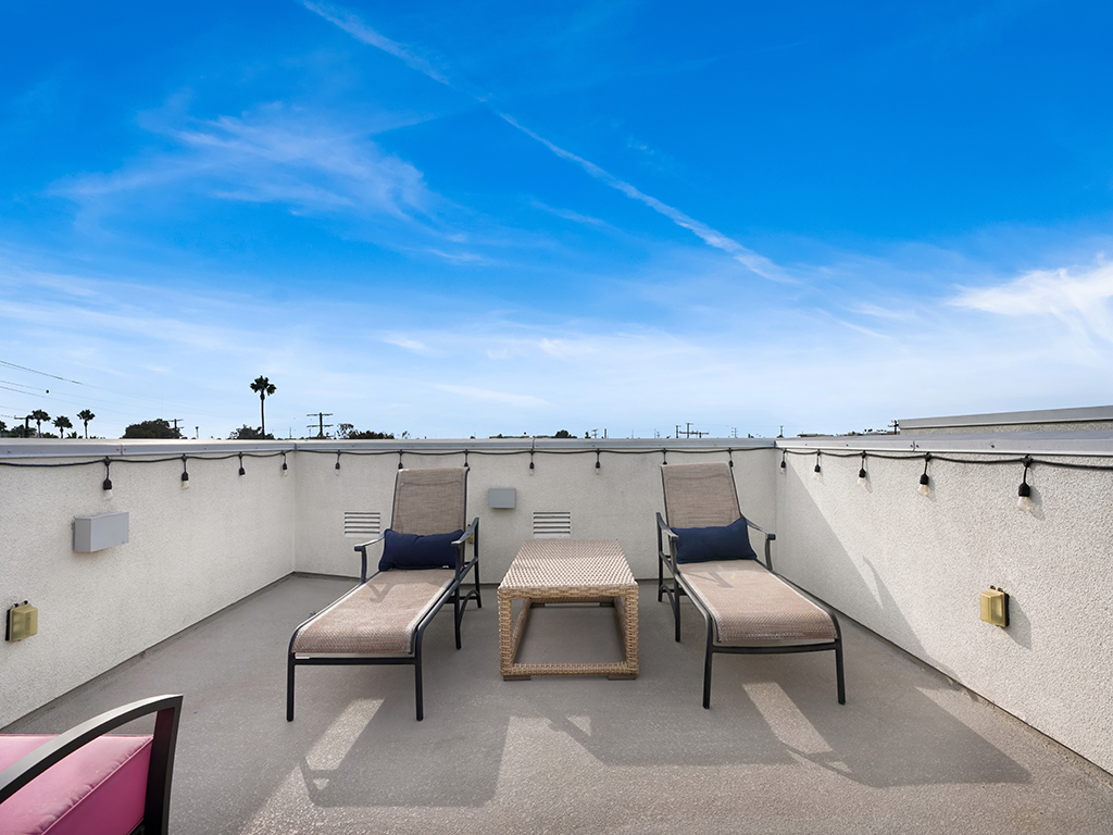 This stunning contemporary home boasts floor-to-ceiling windows, and spectacular panoramic views of the surrounding mountains, city lights, and ocean. The perfect modern home for entertaining or relaxing alike, the 3-level home offers a private 2-car garage, home office, and gym with a fully ADA-compliant bathroom on the first floor; upstairs, on the thoughtfully designed main level, the open-concept kitchen/living/dining includes stainless steel appliances, granite countertops, and access to a spacious balcony. The upper level comes complete with a bright and airy owner's suite which enjoys a walk-in closet, en-suite bathroom with double vanity, and walk-in shower. The second bedroom is generous in size, with separate laundry. A large rooftop deck delivers breathtaking views day and night.