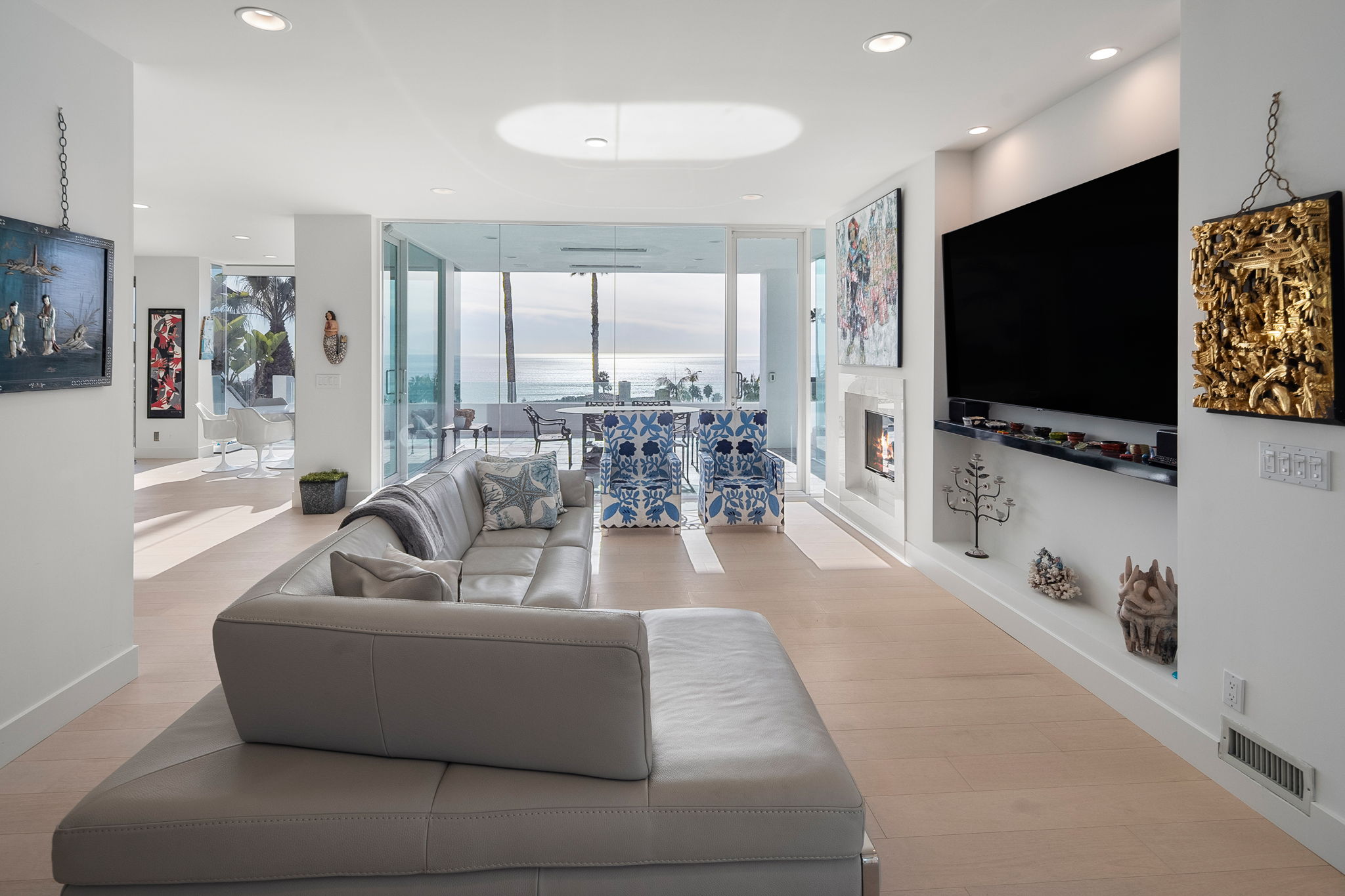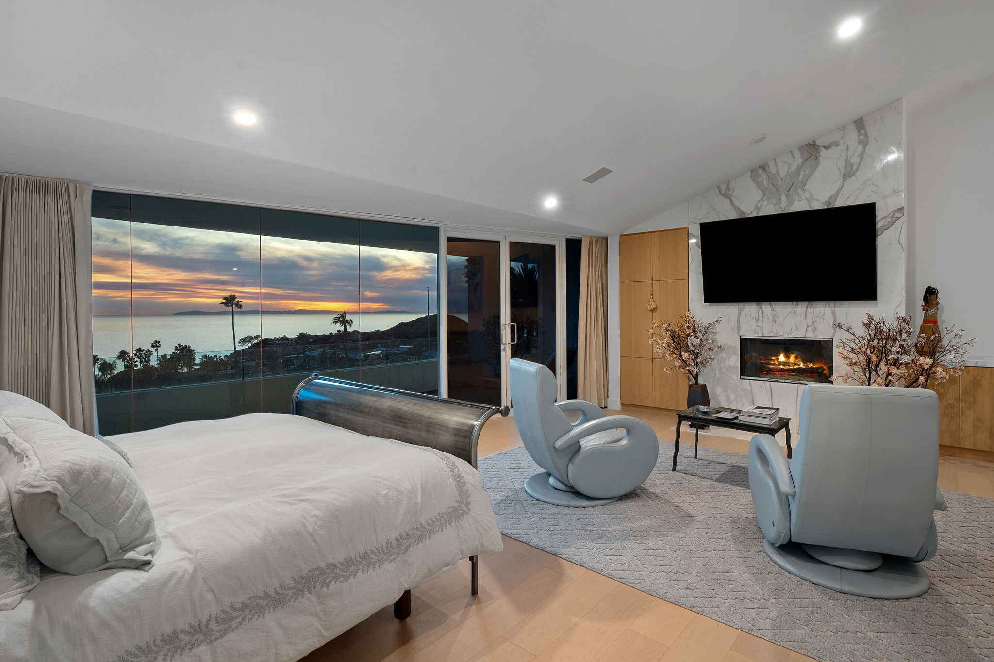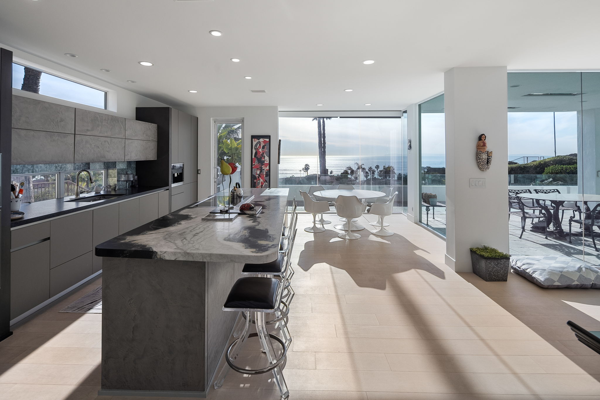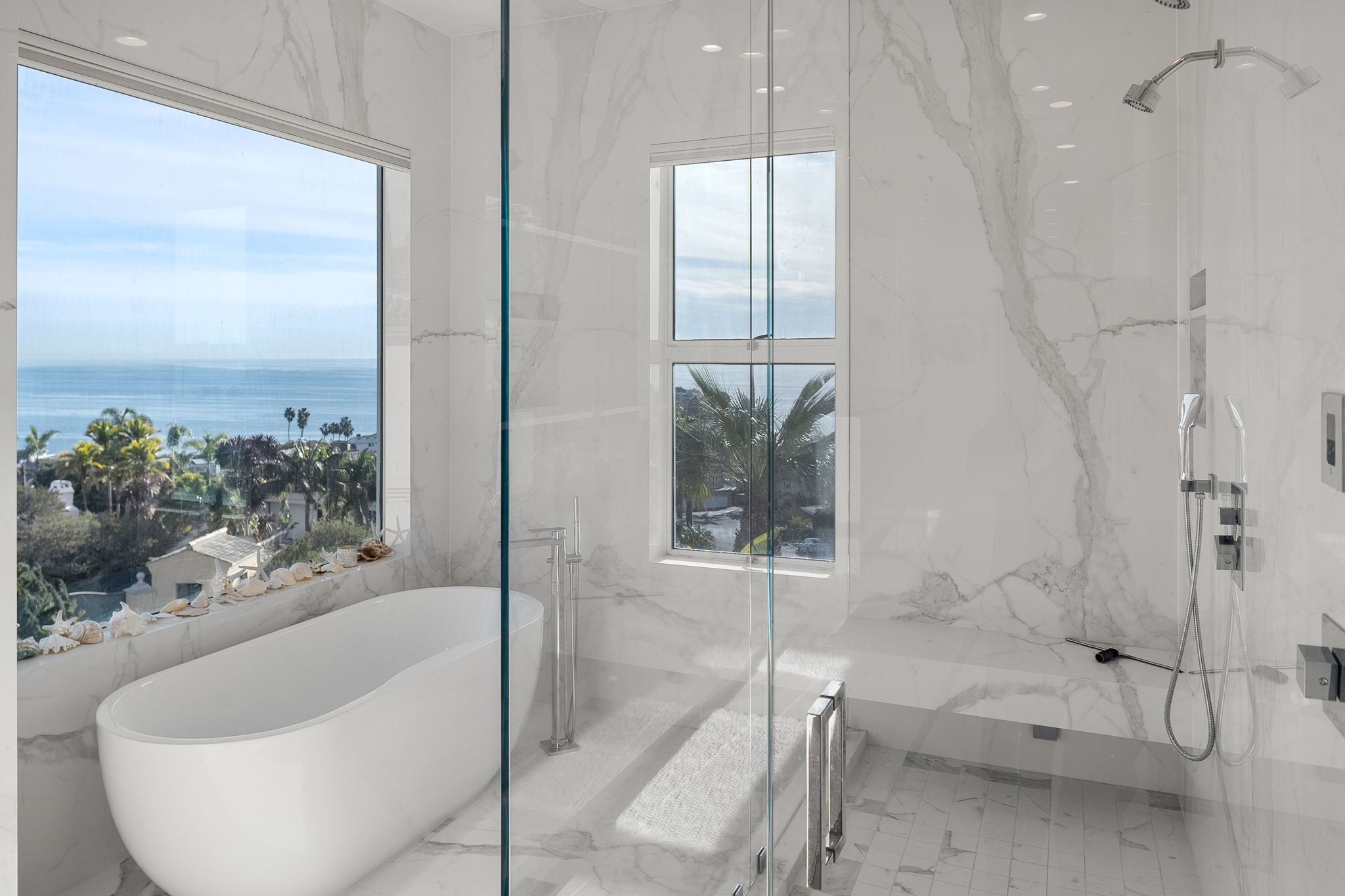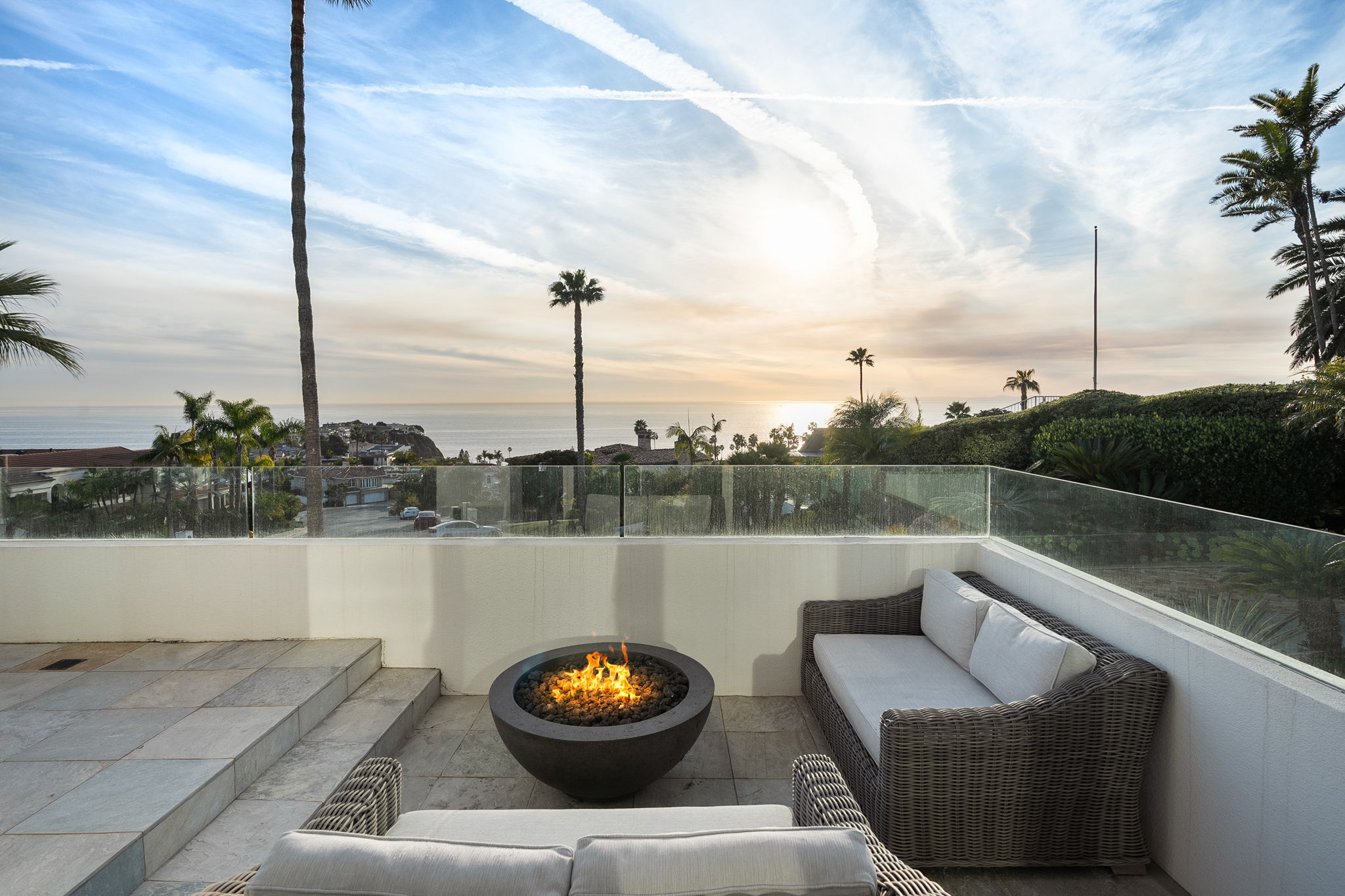 A masterpiece of modernist design, this North Laguna Beach sanctuary is where art and ocean converge in perfect harmony. Hidden within the prestigious, guard-gated enclave of Irvine Cove, this architectural gem by Mark Singer invites you to experience unparalleled privacy and breathtaking ocean views. Encompassing approximately 5,500 square feet of refined elegance, this 4-bedroom estate (plus a dedicated office) boasts six lavish bathrooms, a private elevator to all levels, and the distinction of a home that feels as timeless as the tides. Tucked away behind its own gate, the estate’s clean lines and modern design blend seamlessly with walls of glass and soaring ceilings, inviting the panoramic Pacific into every room. The sleek, contemporary kitchen is a culinary work of art, featuring electric-hinged custom cabinetry, state-of-the-art Miele appliances, and a built-in Miele coffee maker. On the main level, discover two serene bedrooms, including one with direct access to the backyard, where an ocean-view plunge pool/spa awaits for moments of relaxation. This level also includes a fully equipped office, easily transformed into a private retreat, and a dedicated laundry room with two sets of washers and dryers. The upper level hosts two additional bedrooms, including the primary suite—a haven of indulgence. The primary suite boasts sweeping ocean views, a cozy seating area with a fireplace, and a private balcony that gazes endlessly into the horizon. Adding to its opulence is a personal refrigerator, ensuring chilled beverages are always within reach. The spa-like ensuite bathroom features an ocean-view shower and a luxurious steam sauna, offering a rejuvenating escape with every use. A second upstairs bedroom, complete with an en suite bath, provides comfort and style for your guests. Additional highlights include a spacious four-car garage and a 6-seater golf cart for easy access to the private beach, where a resort-style park and pristine sands await. The community also features tennis courts, hiking trails, and proximity to a vibrant coastal lifestyle. Indulge in world-class dining at nearby favorites like Mastro's Ocean Club, Javier's, and the chic A’s restaurant, or explore the luxury boutiques of Fashion Island. Conveniently located 20 minutes from John Wayne Airport, this exclusive retreat is available now through June 2025.
