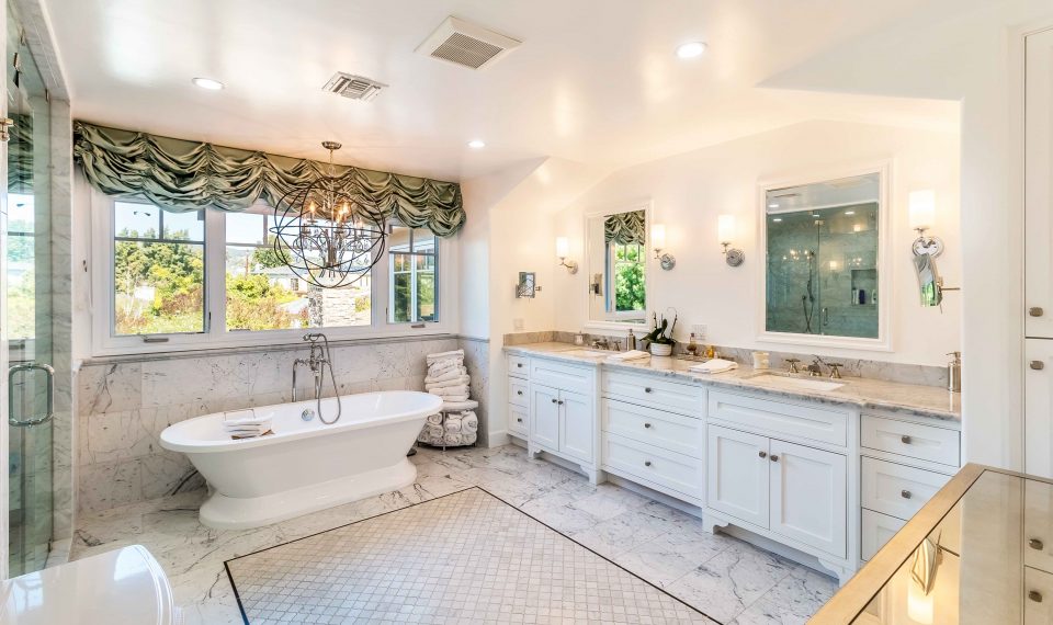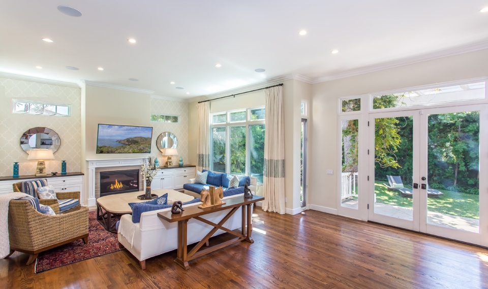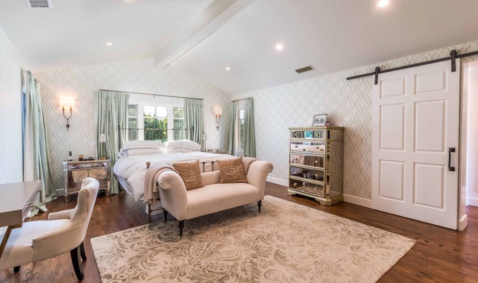 This exquisitely charming five-bedroom traditional home with mountain views is nestled on a spacious 8,360 lot in the prestigious Pacific Palisades El Medio Bluffs. Entering the home, you are welcomed by a beautifully landscaped and gated courtyard, complete with an outdoor fireplace and sitting area. Through the beautifully decorated formal living room and dining room, enter the impeccably remodeled chef's kitchen and family room, with soaring ceilings, an open floor plan, and french doors leading to a large and private backyard with plenty of room for a pool - perfect for entertaining. The spacious home features 2 bedrooms on the main level, 2 additional bedrooms with Jack-and-Jill bath on the second level, as well as an office area offering stunning mountain views, and an impressive master suite with large walk-in closet and beautifully designed master bath, complete with state-of-the-art steam shower.