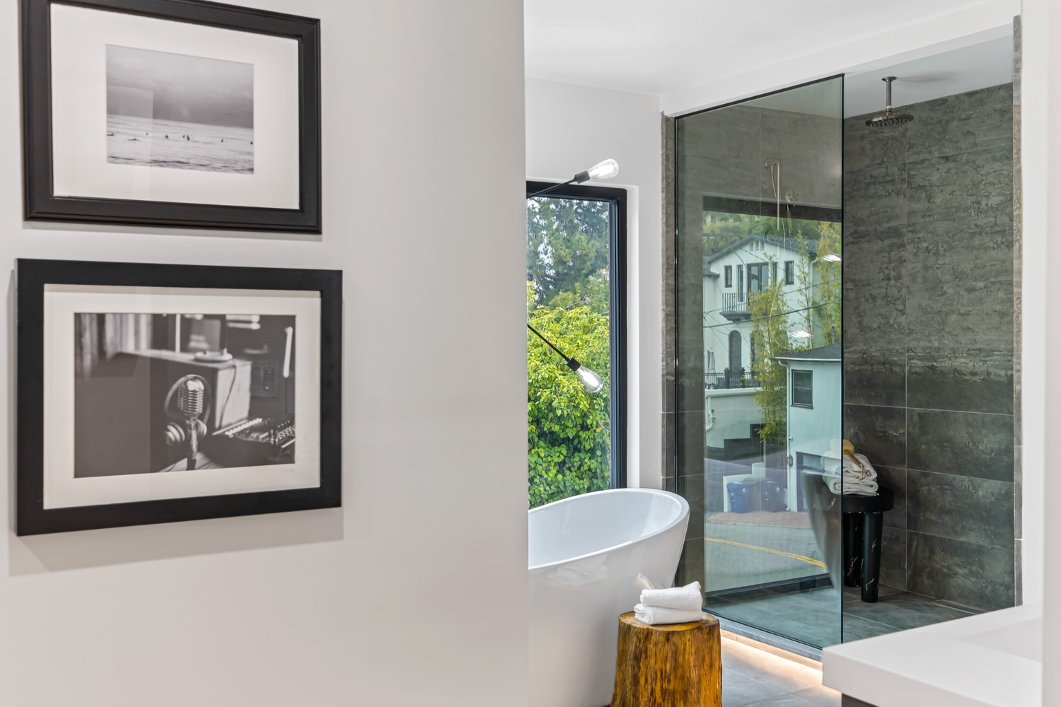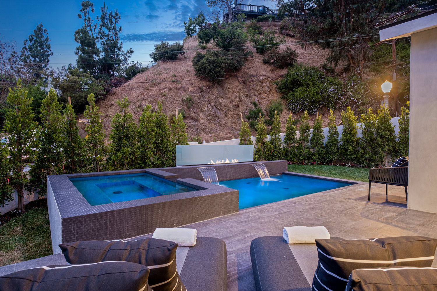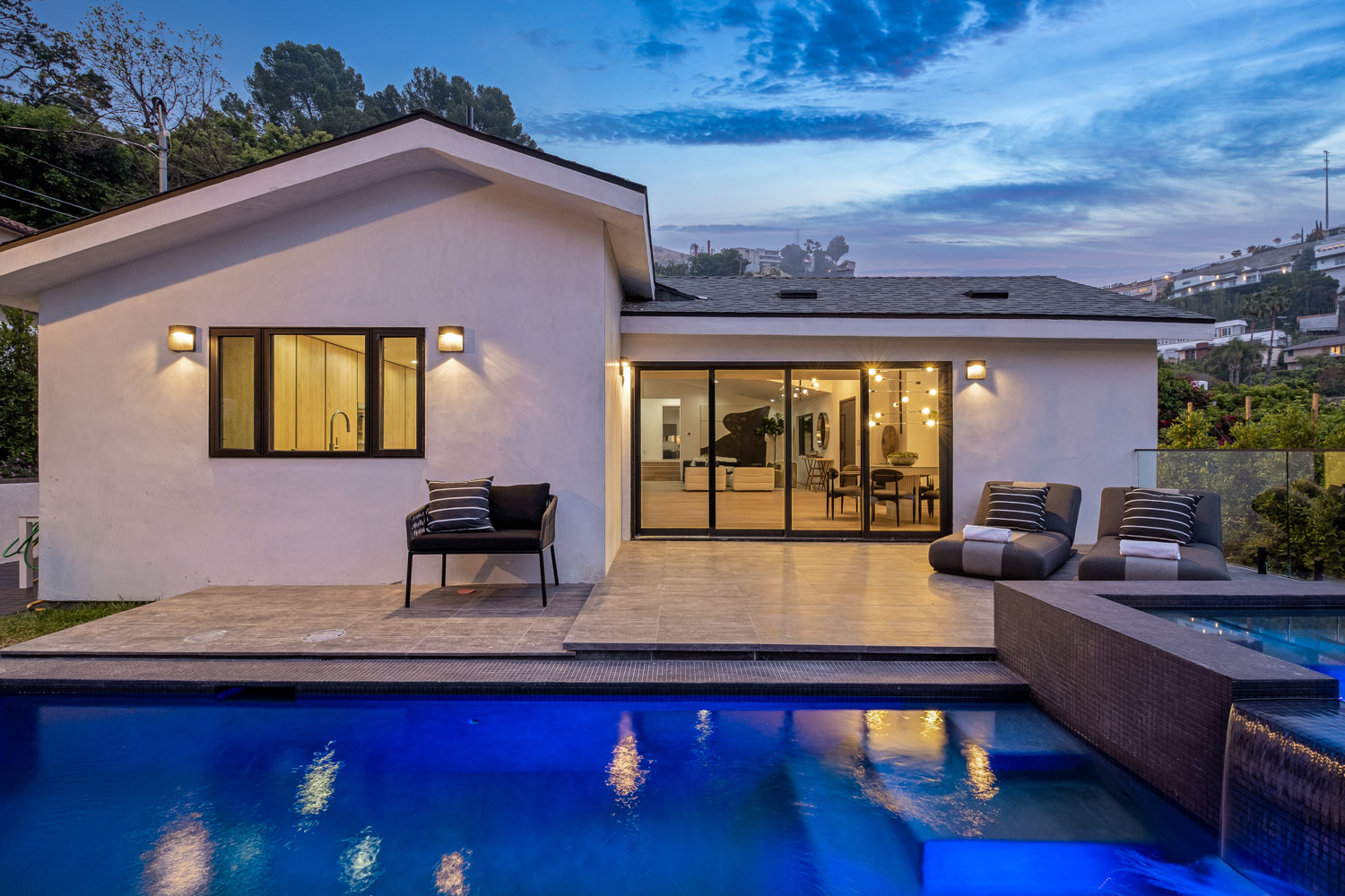 Situated on coveted lower Sunset Plaza just above the Sunset Strip, this stunning and newly remodeled 3,000+ home offers an open floor plan, vaulted ceilings, separate guest apartment, and designer finishes throughout. The bespoke kitchen and main living areas lead through fleetwood pocket doors to a beautiful pool and spa, BBQ, and small grassy area perfect for pets. The main level offers two spacious bedrooms with ensuite baths, plus a bright and expansive master-suite with lounging area, a private back patio, and an impeccably designed master bathroom with walk-in closet. An additional 500sf+ lower level guest apartment with kitchenette and separate entrance is perfect for an overnight guest or to lease for additional income. 2-car garage.