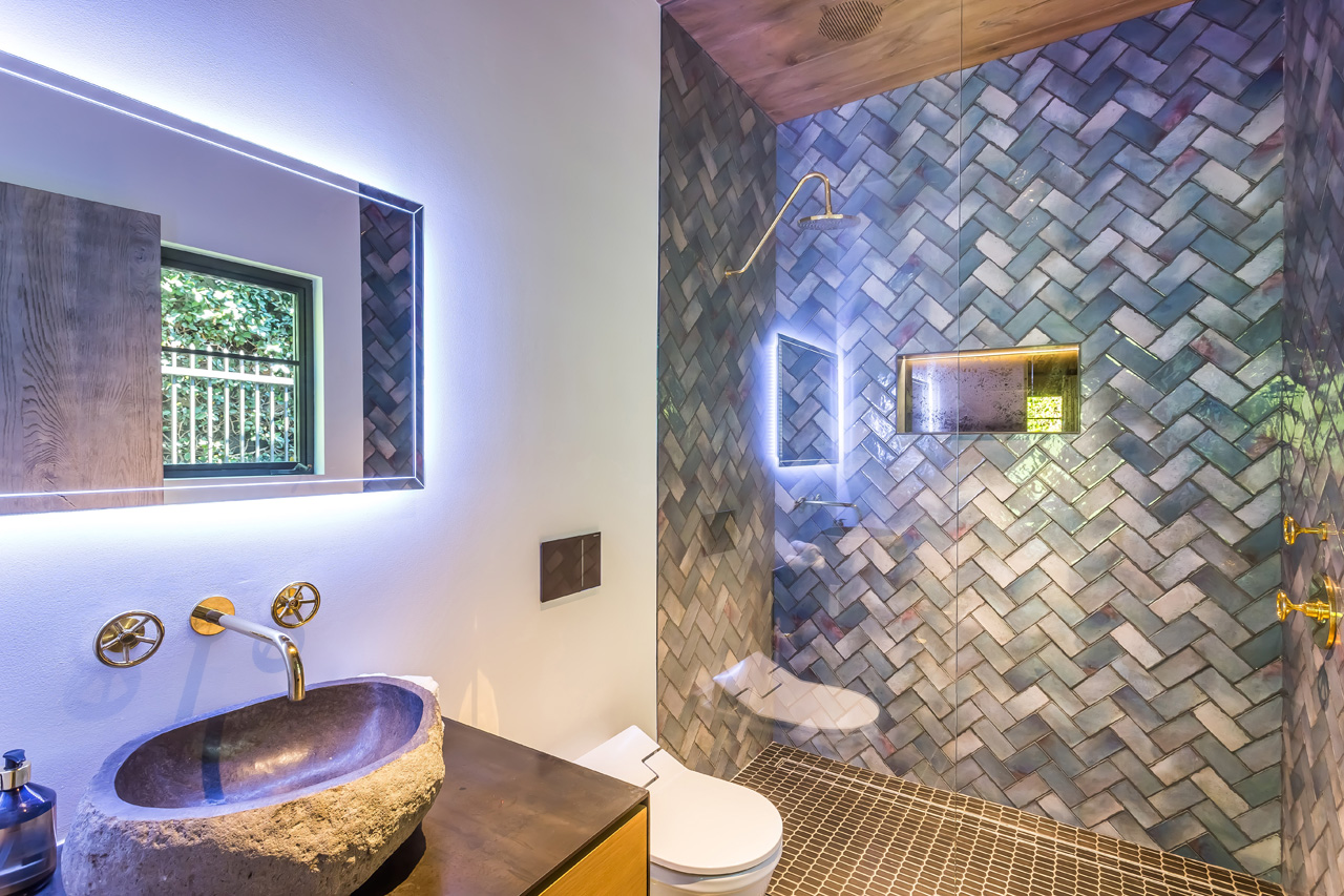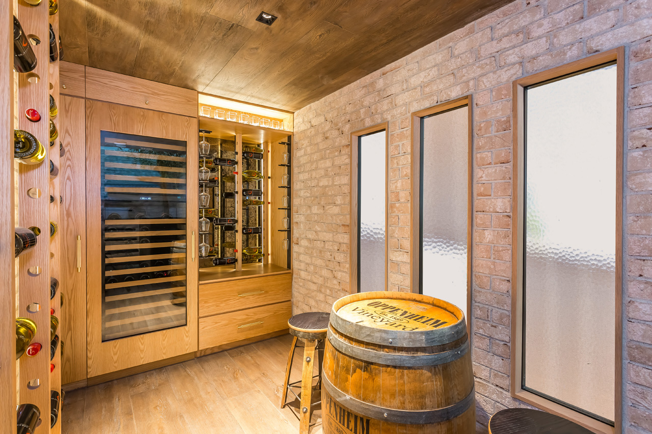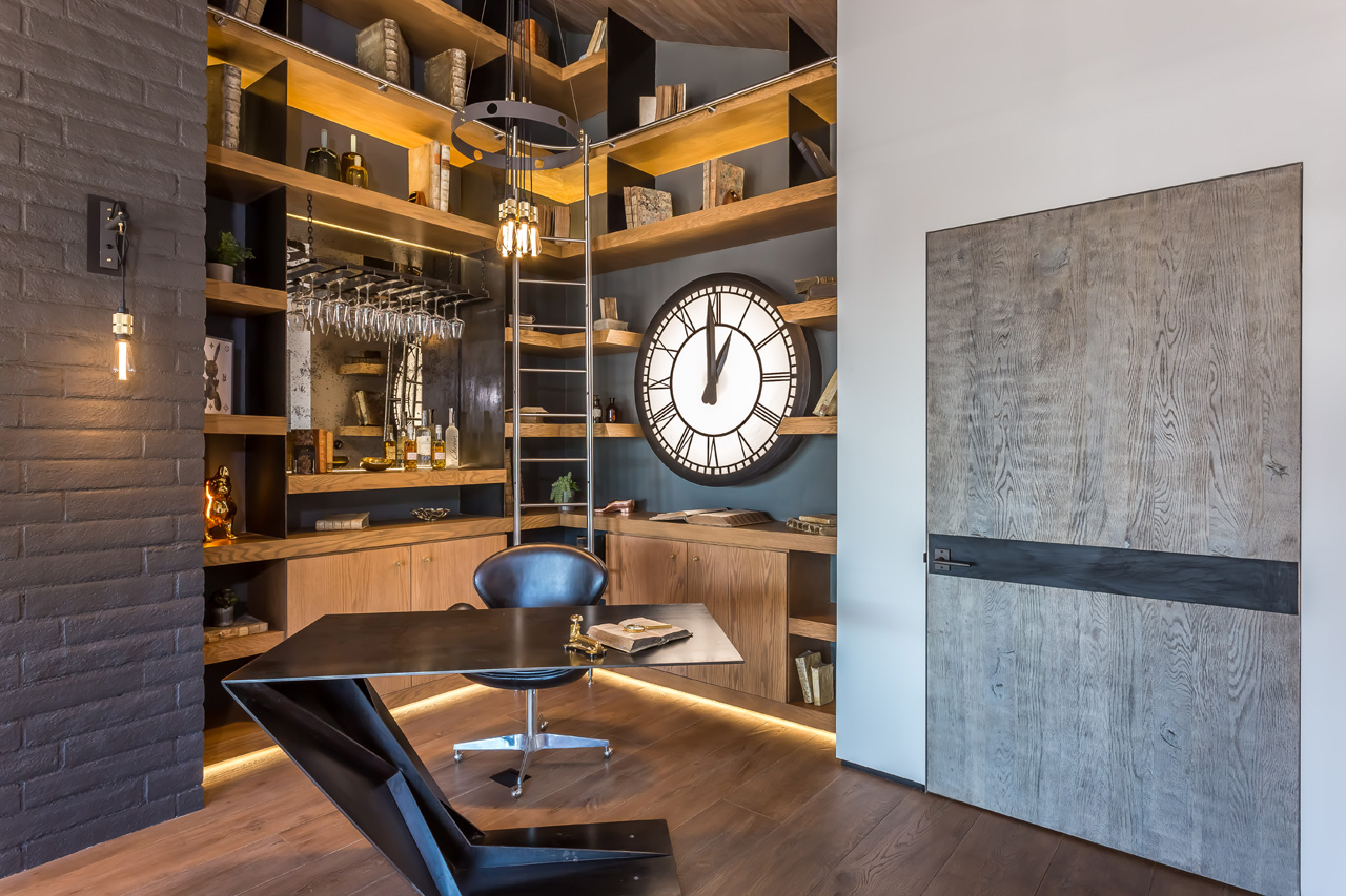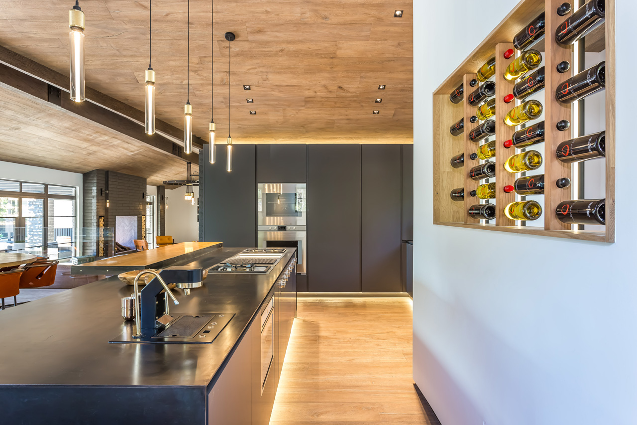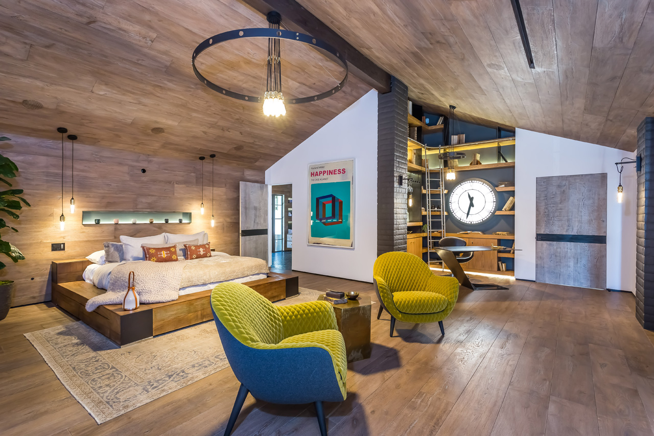 The most exquisitely conceived single-story estate with city/ocean/canyon views on one of the most sought after streets in the Hills. The owner spent more than $4.5M to remodel the home for himself, crafting a timeless masterpiece with soaring wood-lined vaulted ceilings, a master bedroom that turns into a movie theater, private library with a working bell-tower clock, master bath with 15 ft. dual-shower and unlacquered brass fixtures, custom sauna, copper outdoor tub, countertops and vanities made from solid steel, custom built and suede-lined walk-in closets, a hidden 85" living room TV that comes up from a concrete bunker under the house, floating stairs to a wine cellar, copper/steel custom bar with recessed steel and leather niches, four fireplaces, outdoor BBQ/bar, LED lighting and smart home technology throughout. An unrivaled chef's kitchen replete with Gaggenau appliances, Leicht imported German cabinetry, and Mavam coffee maker. Lighting throughout from Buster + Punch, London.