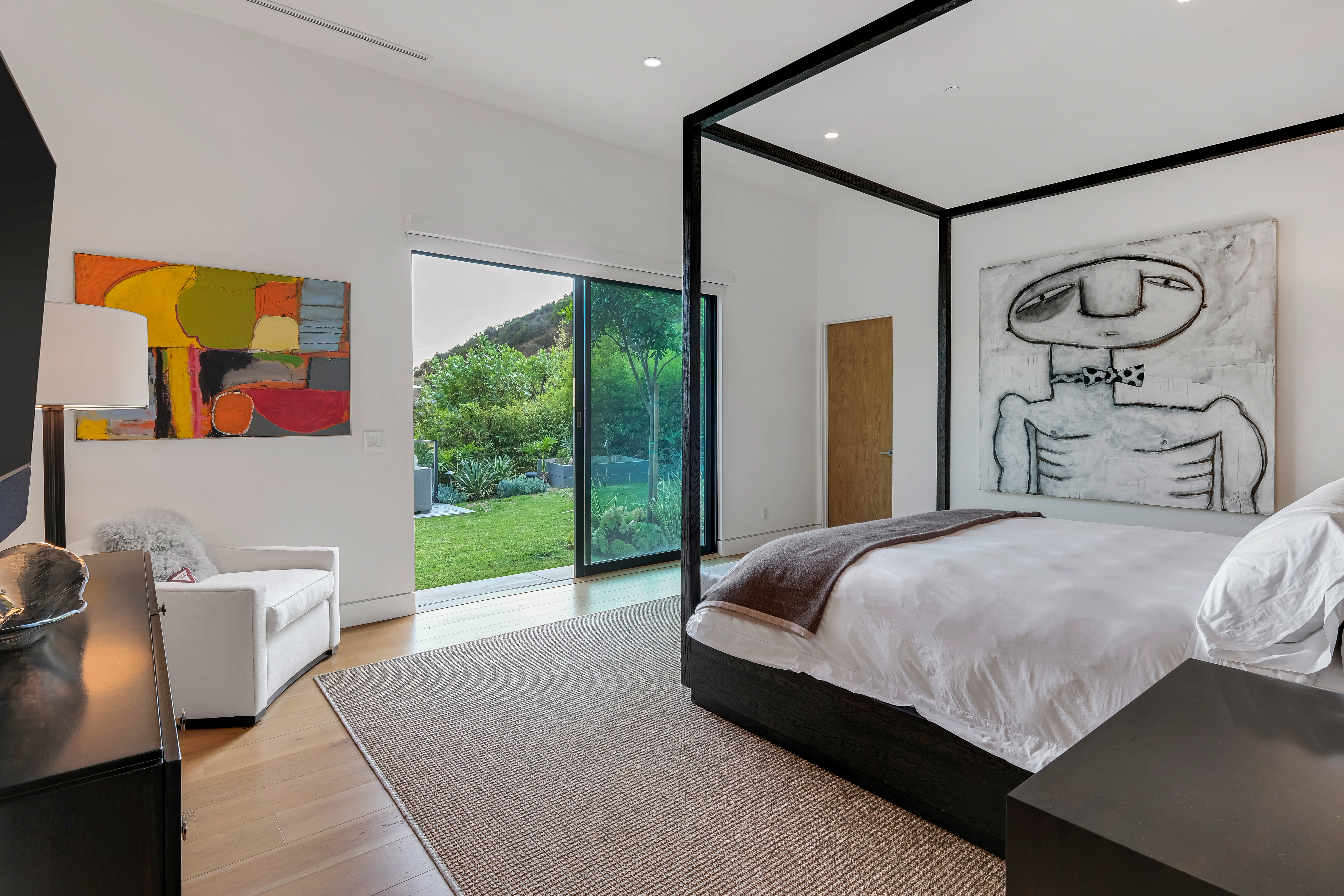 Set behind private gates on one of the Bird Street's most coveted cul-de-sac streets, this contemporary estate offers complete seclusion while boasting stunning city-to-ocean and canyon views. An open floor plan with soaring ceilings lined by massive Fleetwood doors boasts exceptional indoor-outdoor living and abundant natural light. A sleek Chef's kitchen comes replete with an impressive island, dual copper sinks, Miele appliances, and custom cabinetry with black marble countertops. The owner's suite occupies the entire upper level and includes an art gallery, a double-bath suite, dual walk-in closets, and multiple terraces to soak in the breathtaking views. The expansive backyard is a tranquil retreat with large pool and spa, grassy yard, outdoor bbq/kitchen, and ample space for entertaining.