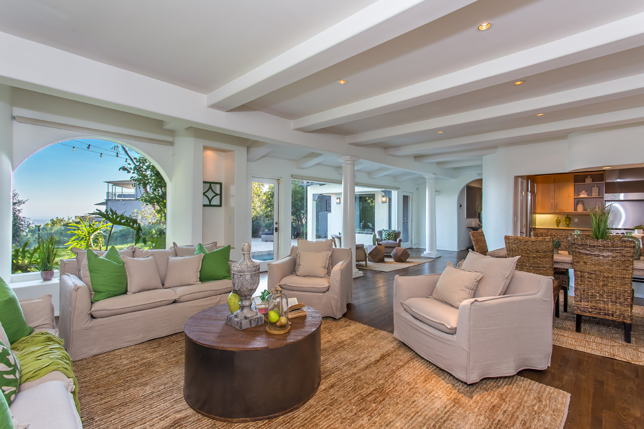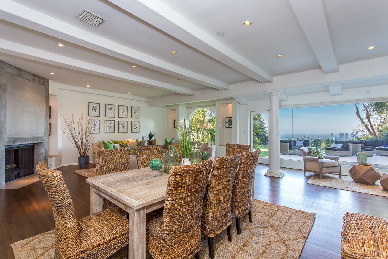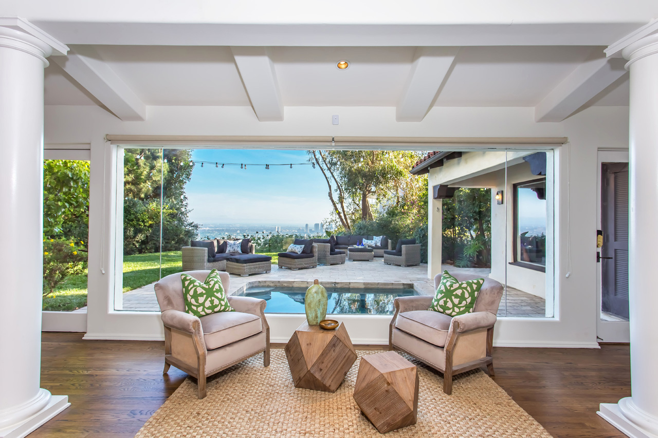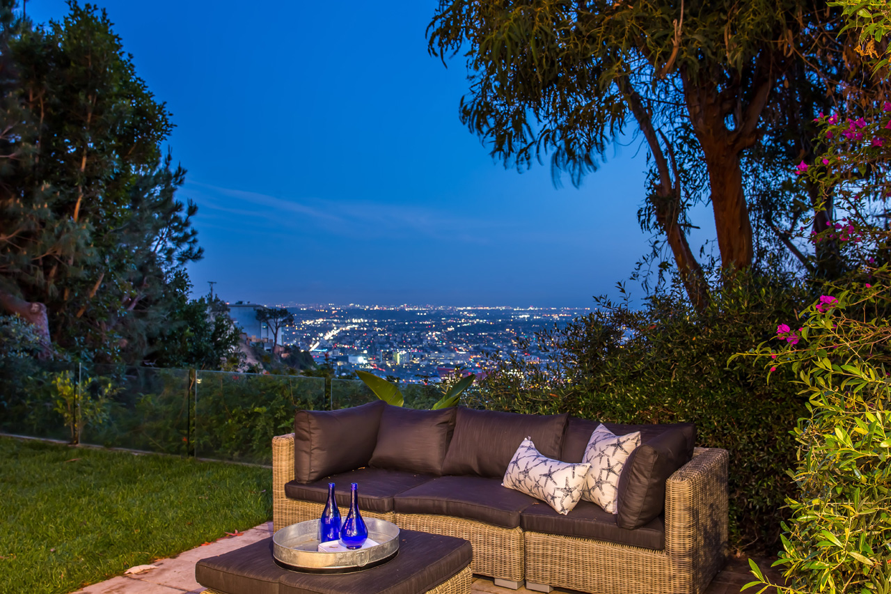 Reminiscent of Old Hollywood glamour, this romantic celebrity hideaway exudes grace and elegance, providing breathtaking panoramic views from the Pacific Design Center to Century City and the ocean. Situated on a cul-de-sac street and a private bluff above Sunset Plaza, this enchanting property boasts vistas from every room, a welcoming open floor-plan lined with oak hardwood floors, gourmet chef's kitchen, and brilliant picture windows throughout. Dual master bedrooms feature tons of closet space, and cozy fireplaces; one of them, boasting a private balcony, and shared bath, while the other suite offers vaulted ceilings, a walk-in closet and private bath with soaking tub.
