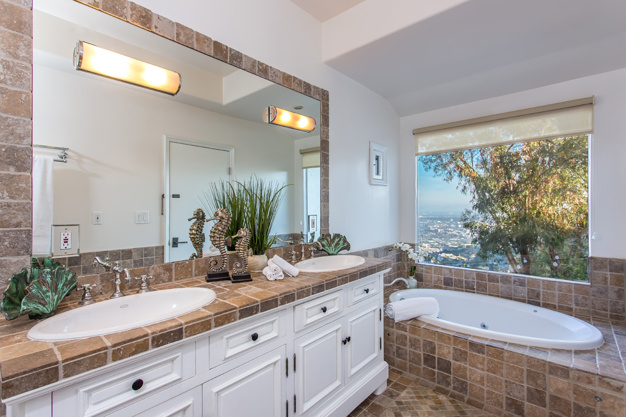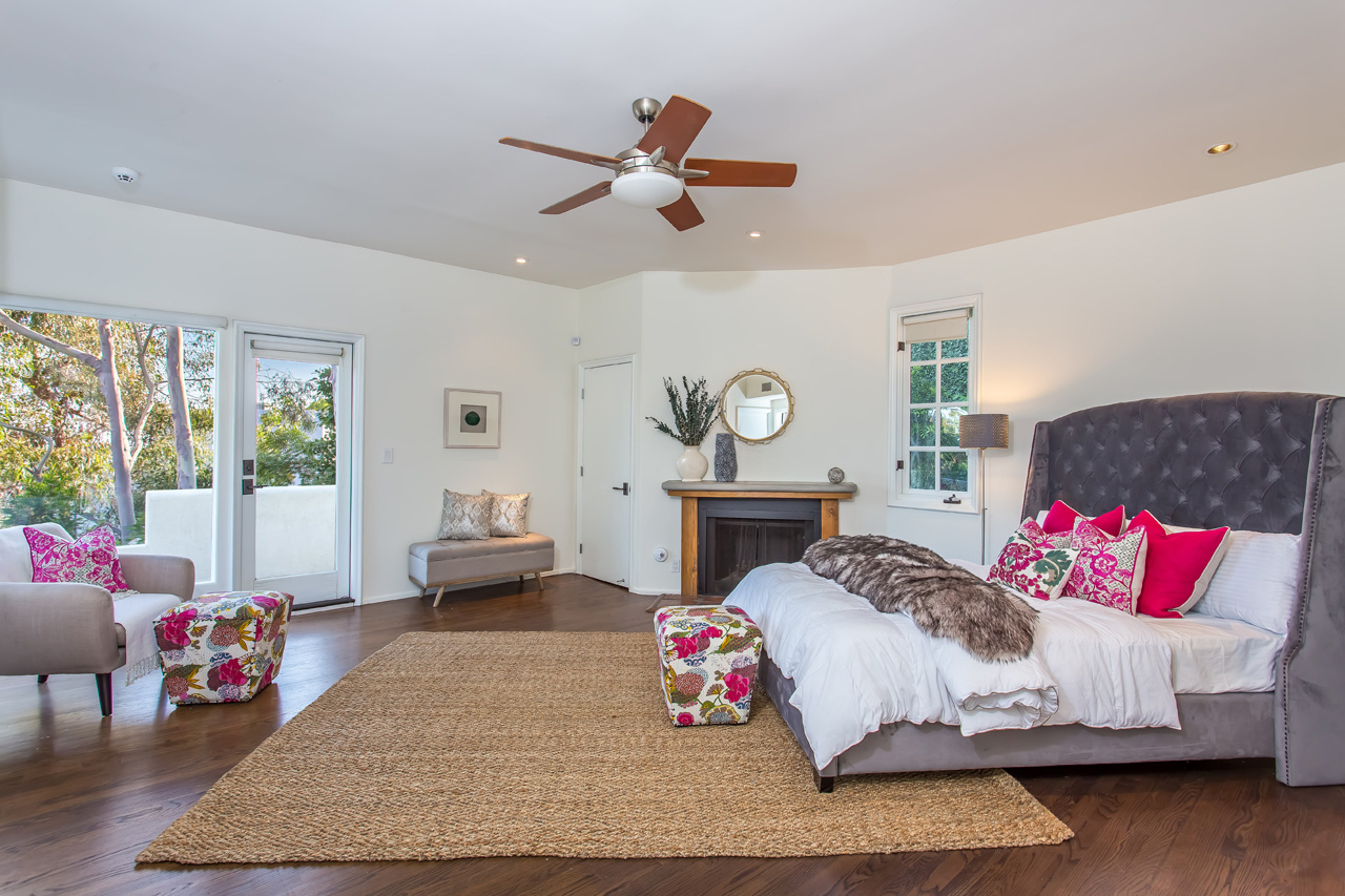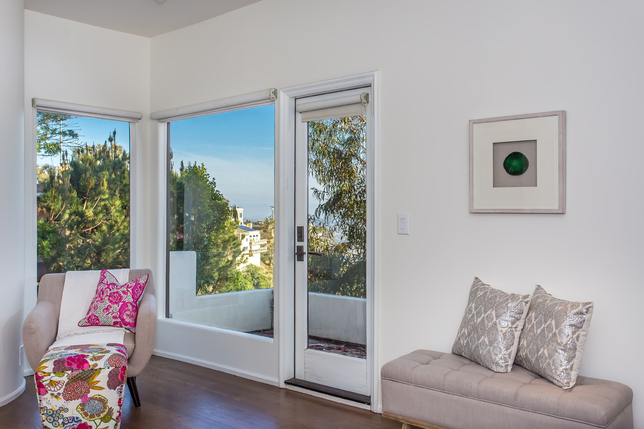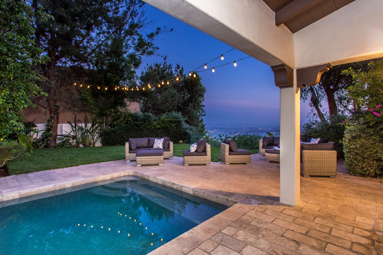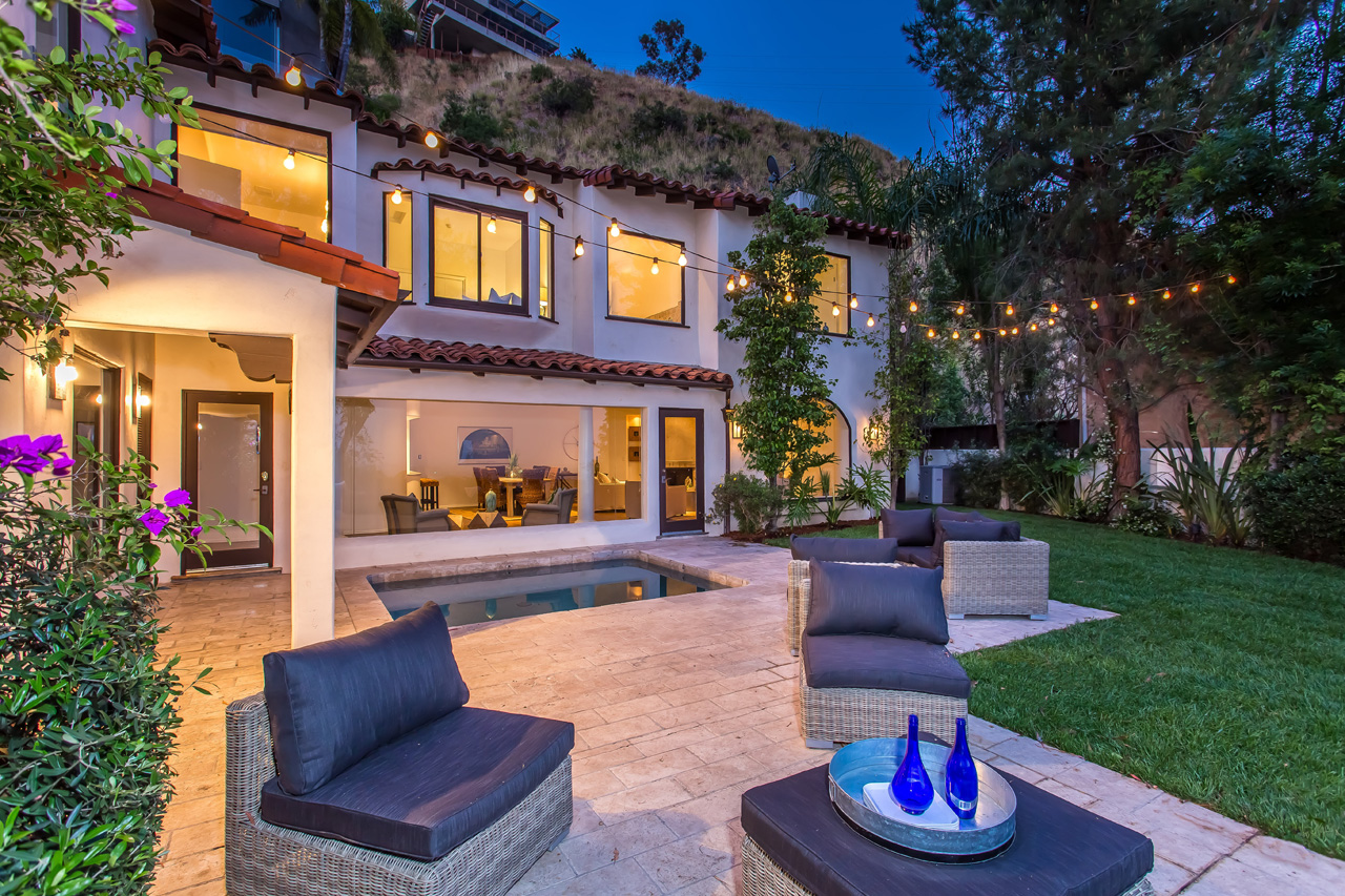 Reminiscent of Old Hollywood glamour, this romantic celebrity hideaway exudes grace and elegance, providing breathtaking panoramic views from the Pacific Design Center to Century City and the ocean. Situated on a cul-de-sac street and a private bluff above Sunset Plaza, this enchanting property boasts vistas from every room, a welcoming open floor-plan lined with oak hardwood floors, gourmet chef's kitchen, and brilliant picture windows throughout. Dual master bedrooms feature tons of closet space, and cozy fireplaces; one of them, boasting a private balcony, and shared bath, while the other suite offers vaulted ceilings, a walk-in closet and private bath with soaking tub.