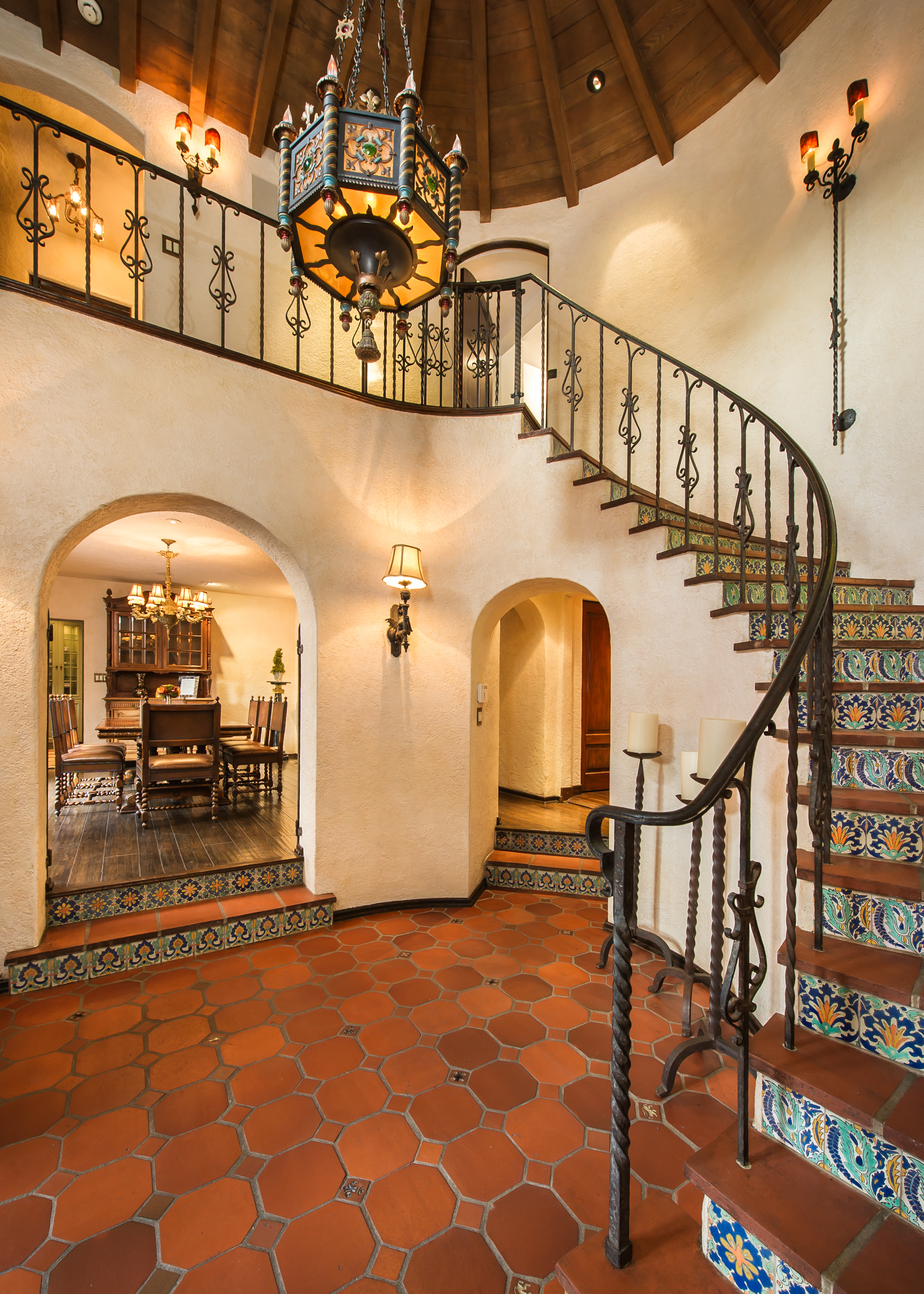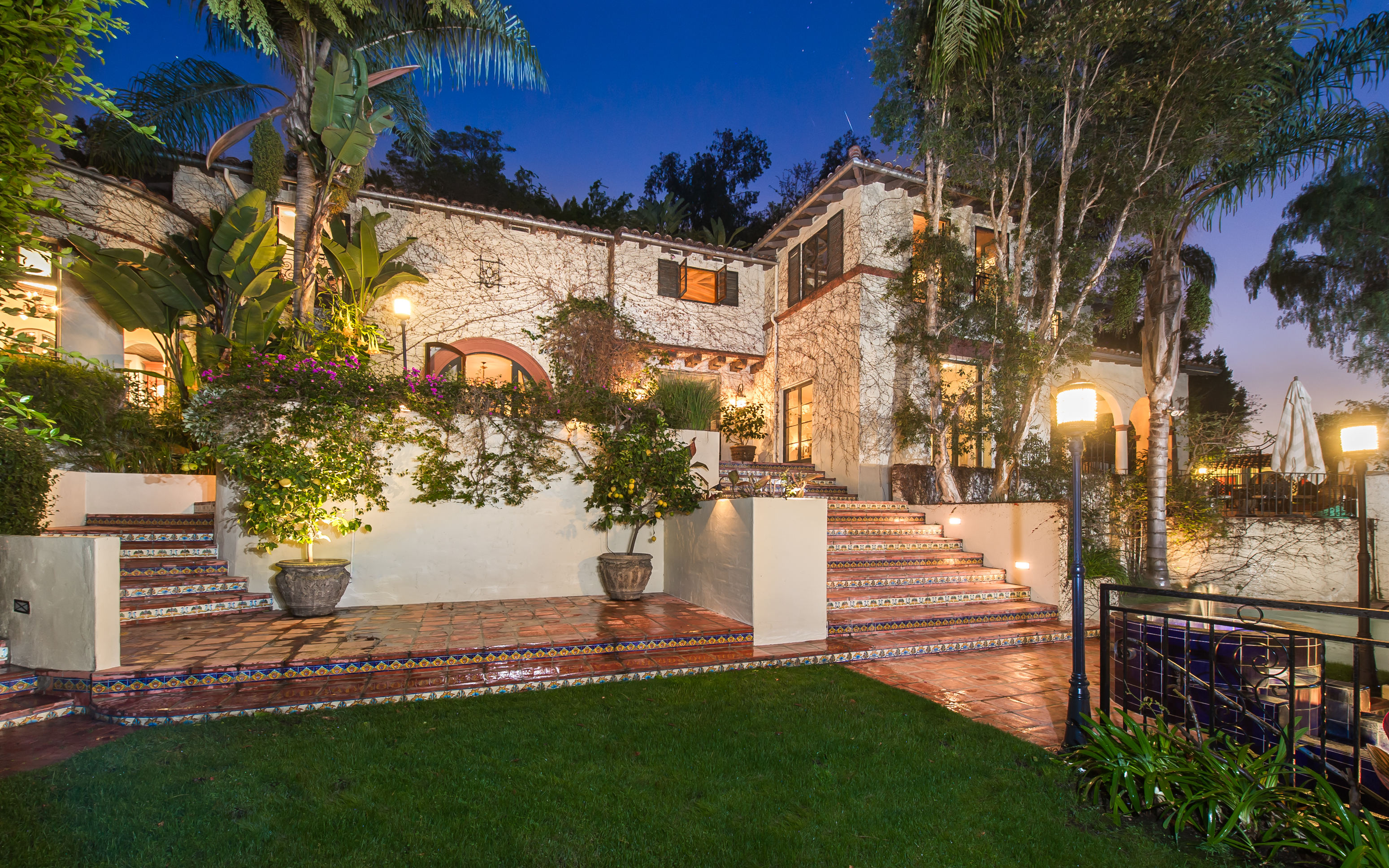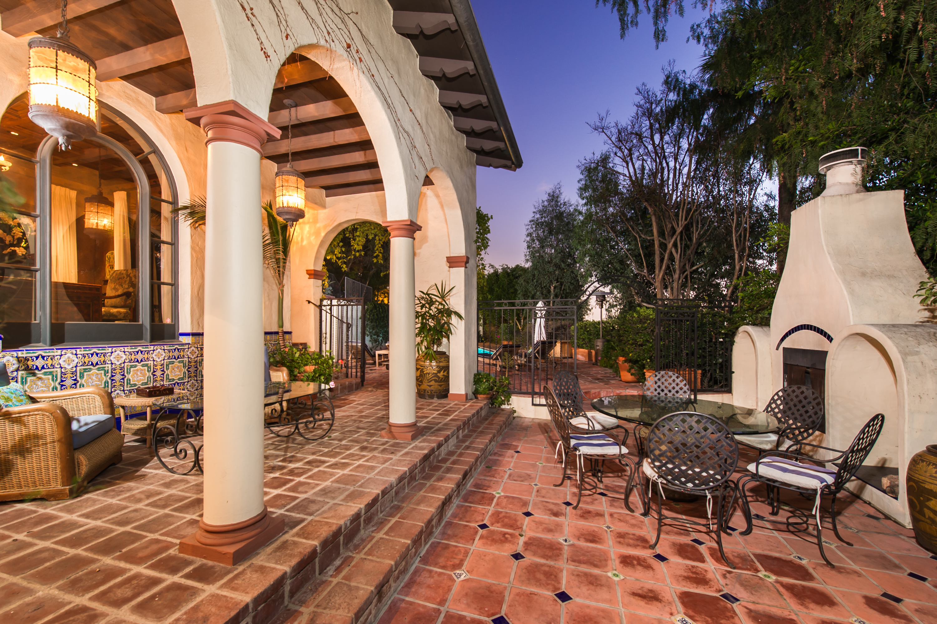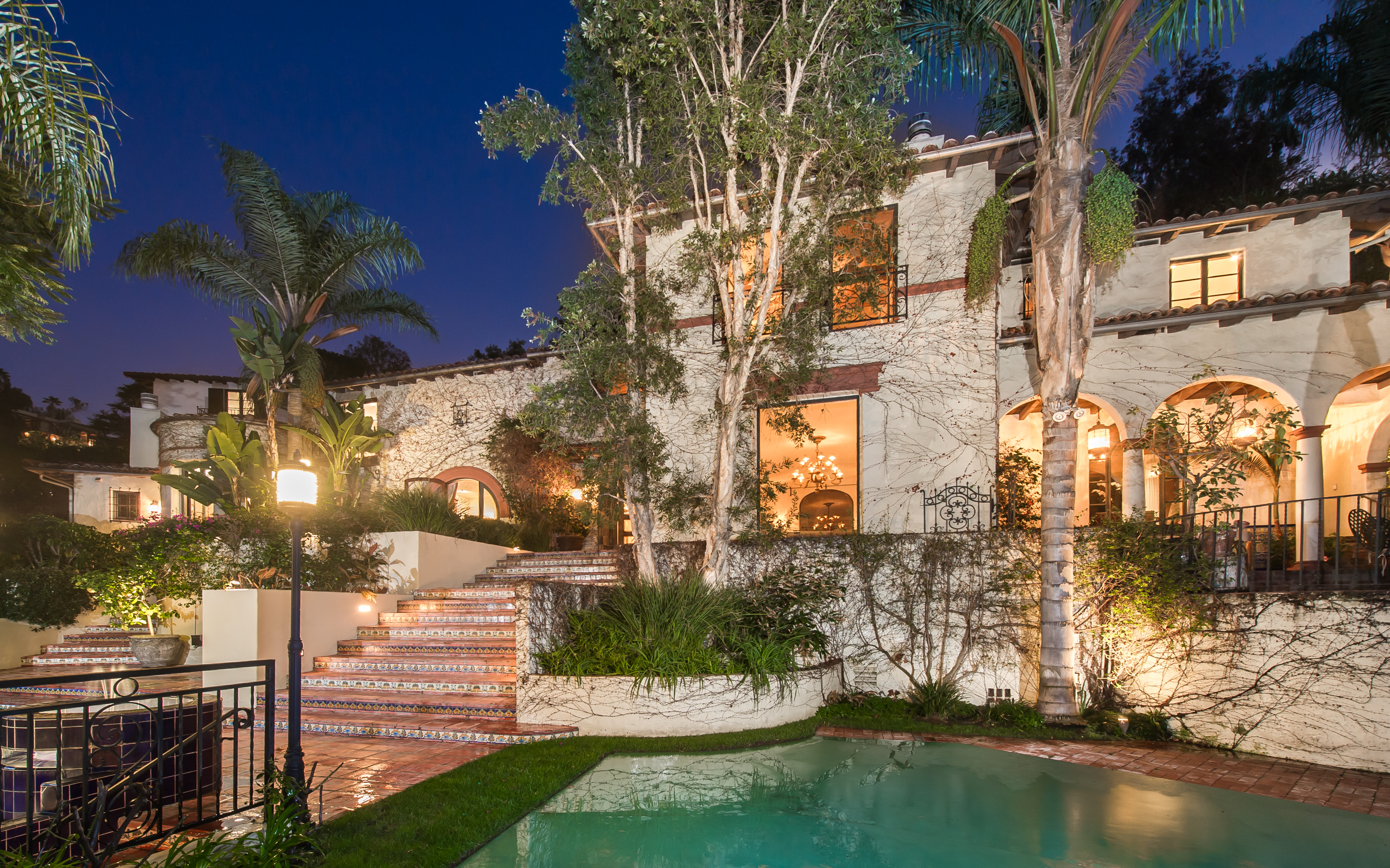 An impressively refined, majestically authentic Mediterranean villa, nestled behind privacy gates and a beautifully tiled fountain. Stately rooms display heavy beams, intricate ironwork, stone and hardwood floors, coffered ceilings and endless character details that collectively define the epitome of classic early California living. A large pool w/cabana and city views, courtyard embellished with antique Spanish tile and fireplace, sports court, grassy lawn, al fresco grilling terrace, state-of-the-art movie theatre, waterfall and more. Meticulously renovated, the estate boasts all modern convenience systems, high-quality appliances and current technology advancements. Although renovated, the effort preserved each historic element and authentic flourish of detail. A truly unique home for the most discerning client