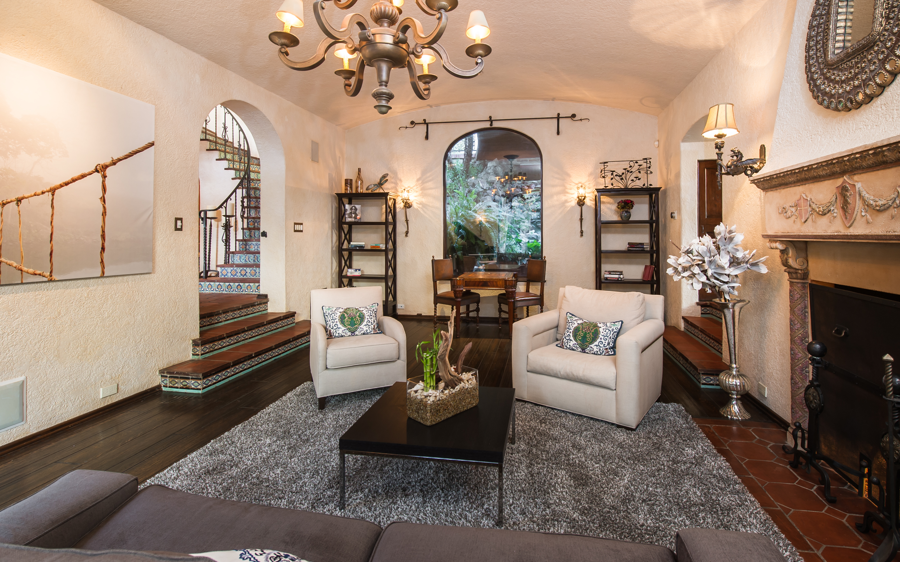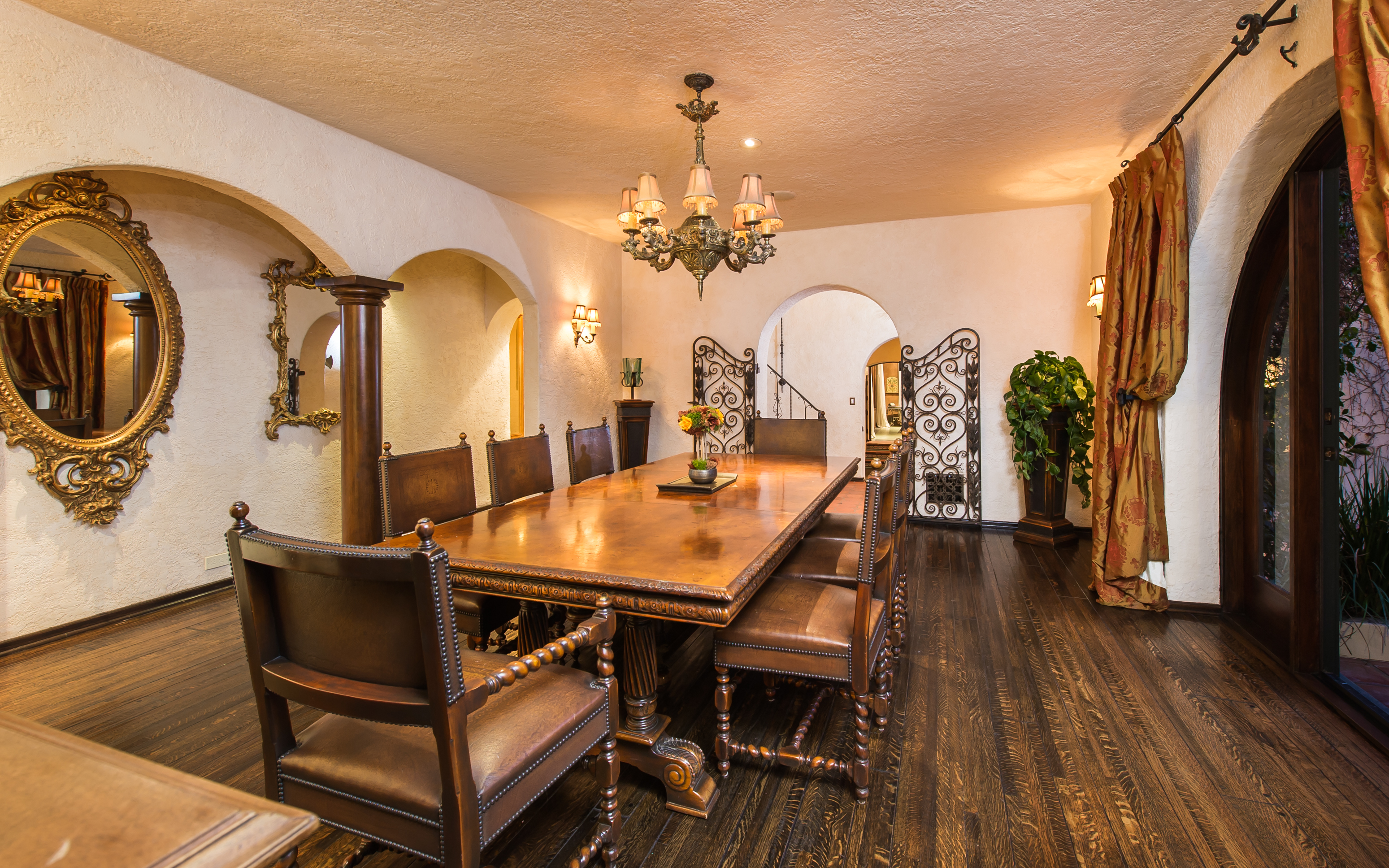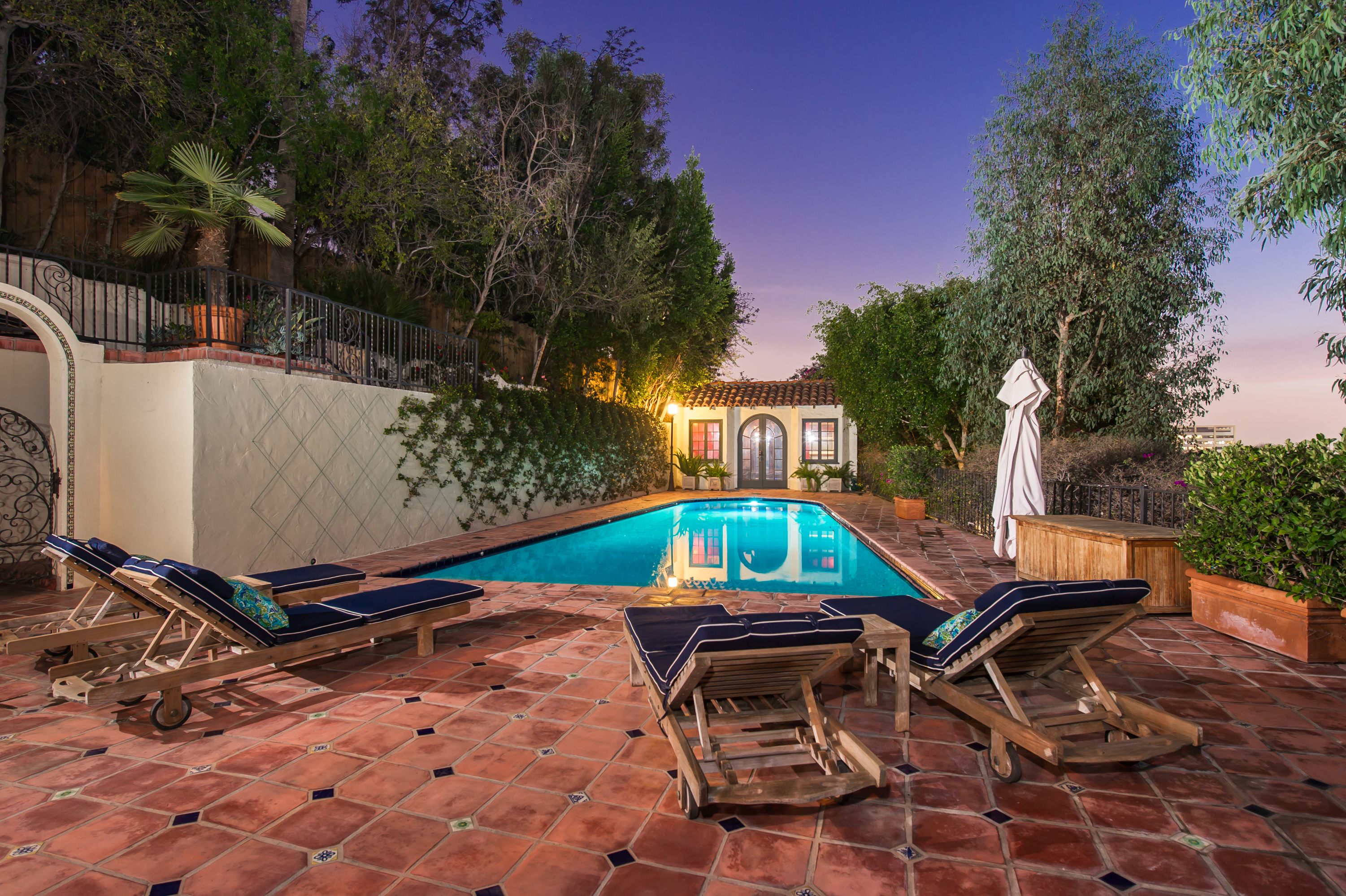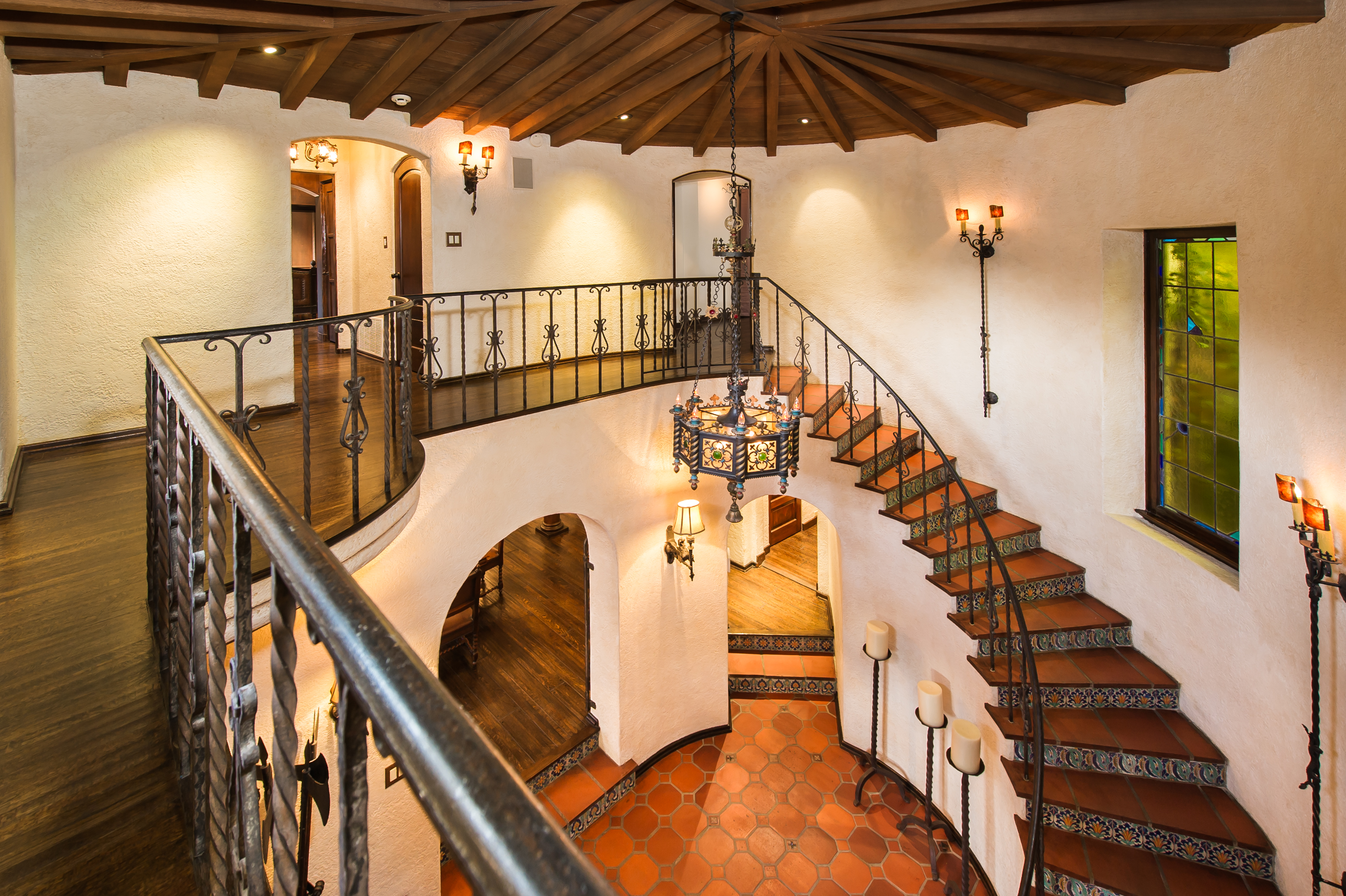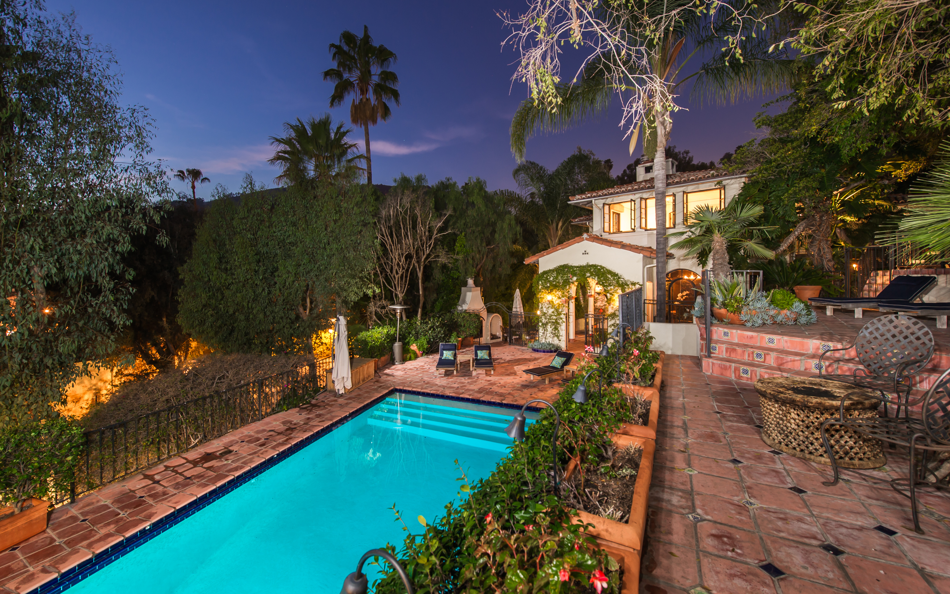 An impressively refined, majestically authentic Mediterranean villa, nestled behind privacy gates and a beautifully tiled fountain. Stately rooms display heavy beams, intricate ironwork, stone and hardwood floors, coffered ceilings and endless character details that collectively define the epitome of classic early California living. A large pool w/cabana and city views, courtyard embellished with antique Spanish tile and fireplace, sports court, grassy lawn, al fresco grilling terrace, state-of-the-art movie theatre, waterfall and more. Meticulously renovated, the estate boasts all modern convenience systems, high-quality appliances and current technology advancements. Although renovated, the effort preserved each historic element and authentic flourish of detail. A truly unique home for the most discerning client