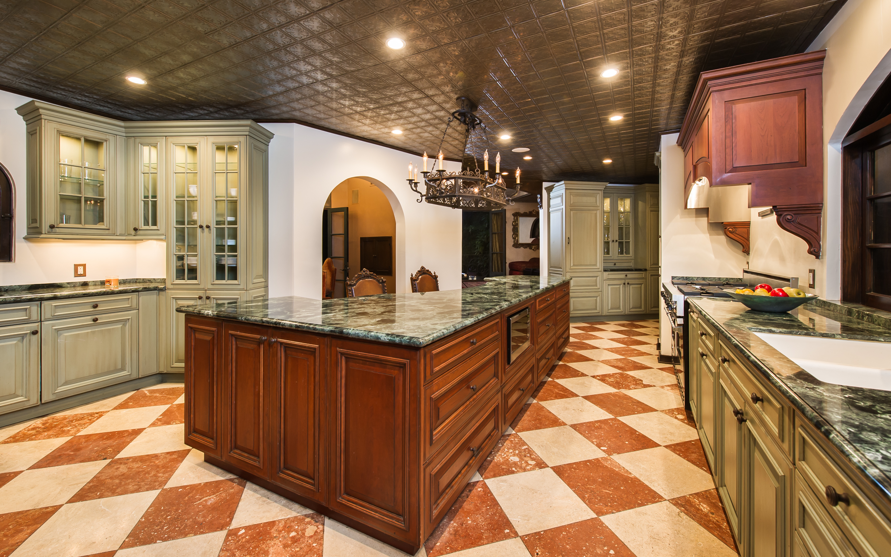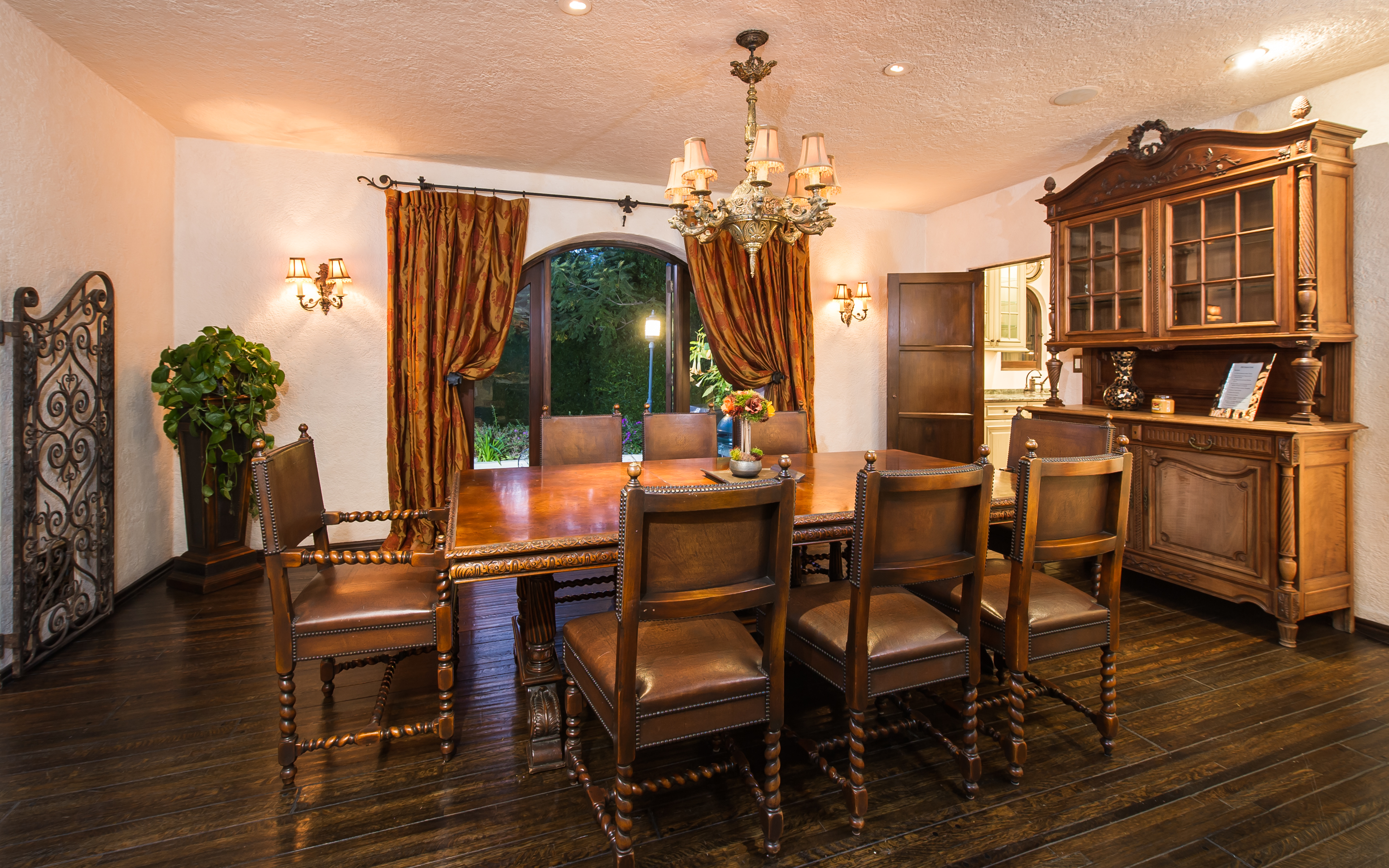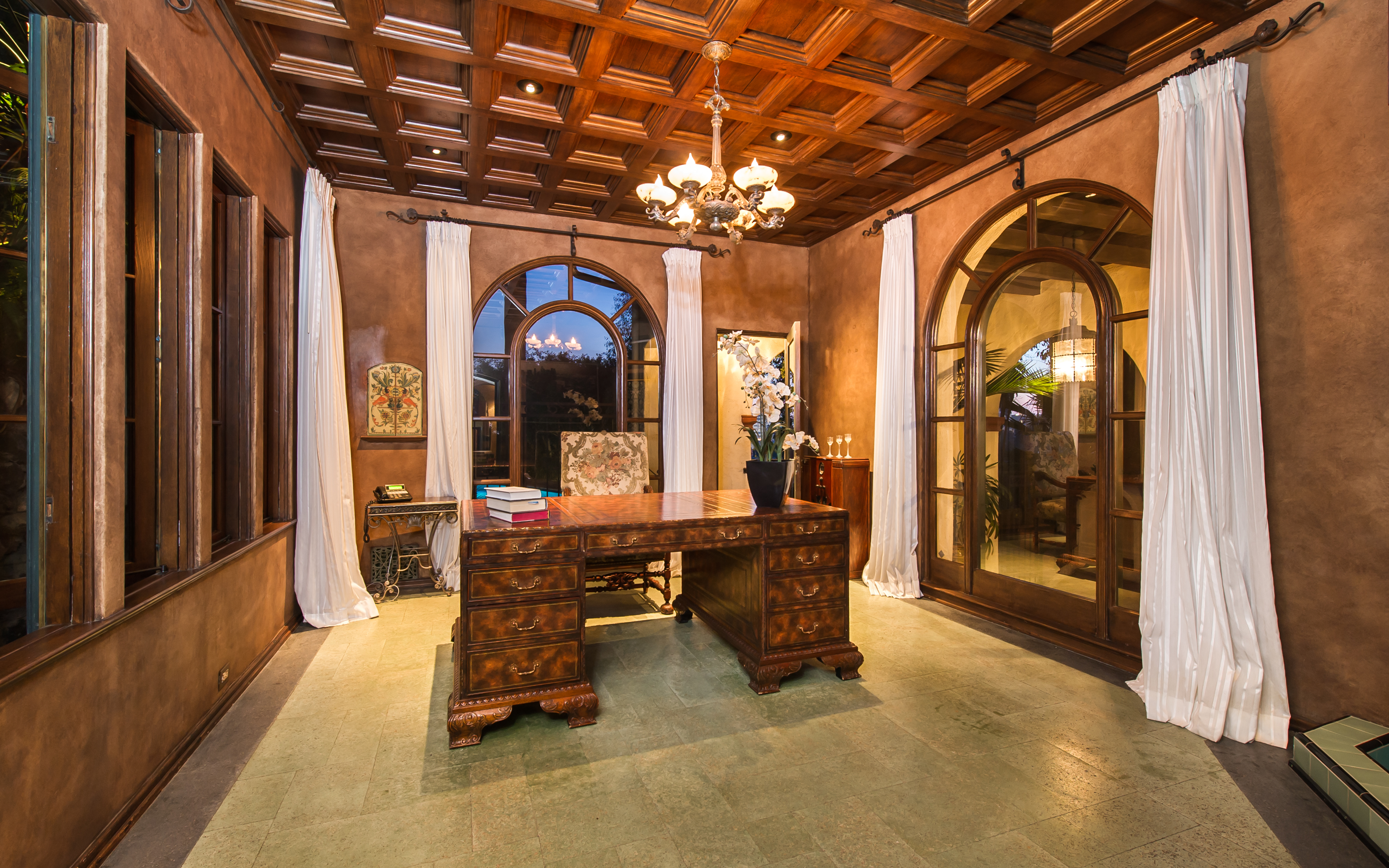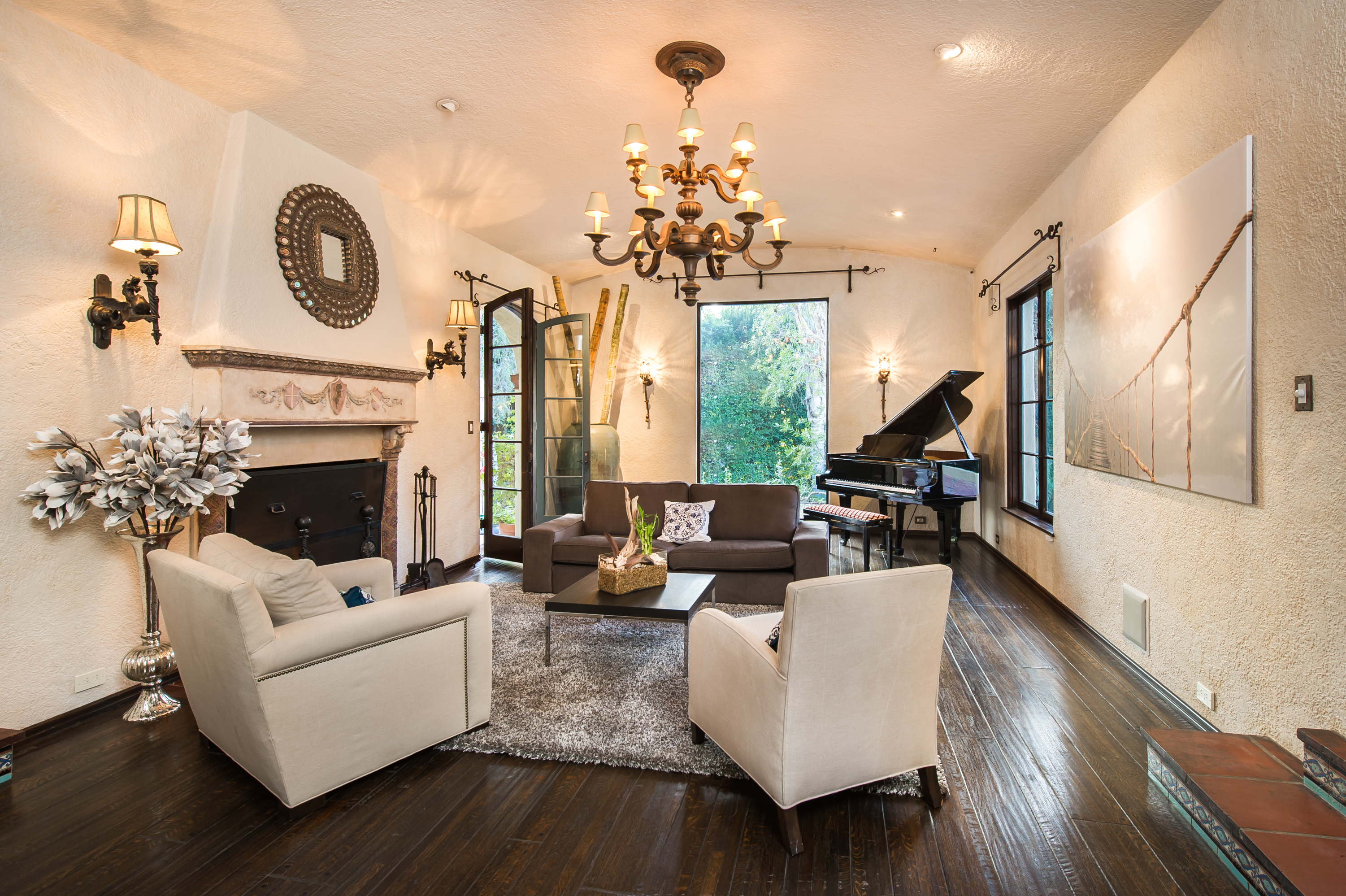 An impressively refined, majestically authentic Mediterranean villa, nestled behind privacy gates and a beautifully tiled fountain. Stately rooms display heavy beams, intricate ironwork, stone and hardwood floors, coffered ceilings and endless character details that collectively define the epitome of classic early California living. A large pool w/cabana and city views, courtyard embellished with antique Spanish tile and fireplace, sports court, grassy lawn, al fresco grilling terrace, state-of-the-art movie theatre, waterfall and more. Meticulously renovated, the estate boasts all modern convenience systems, high-quality appliances and current technology advancements. Although renovated, the effort preserved each historic element and authentic flourish of detail. A truly unique home for the most discerning client
