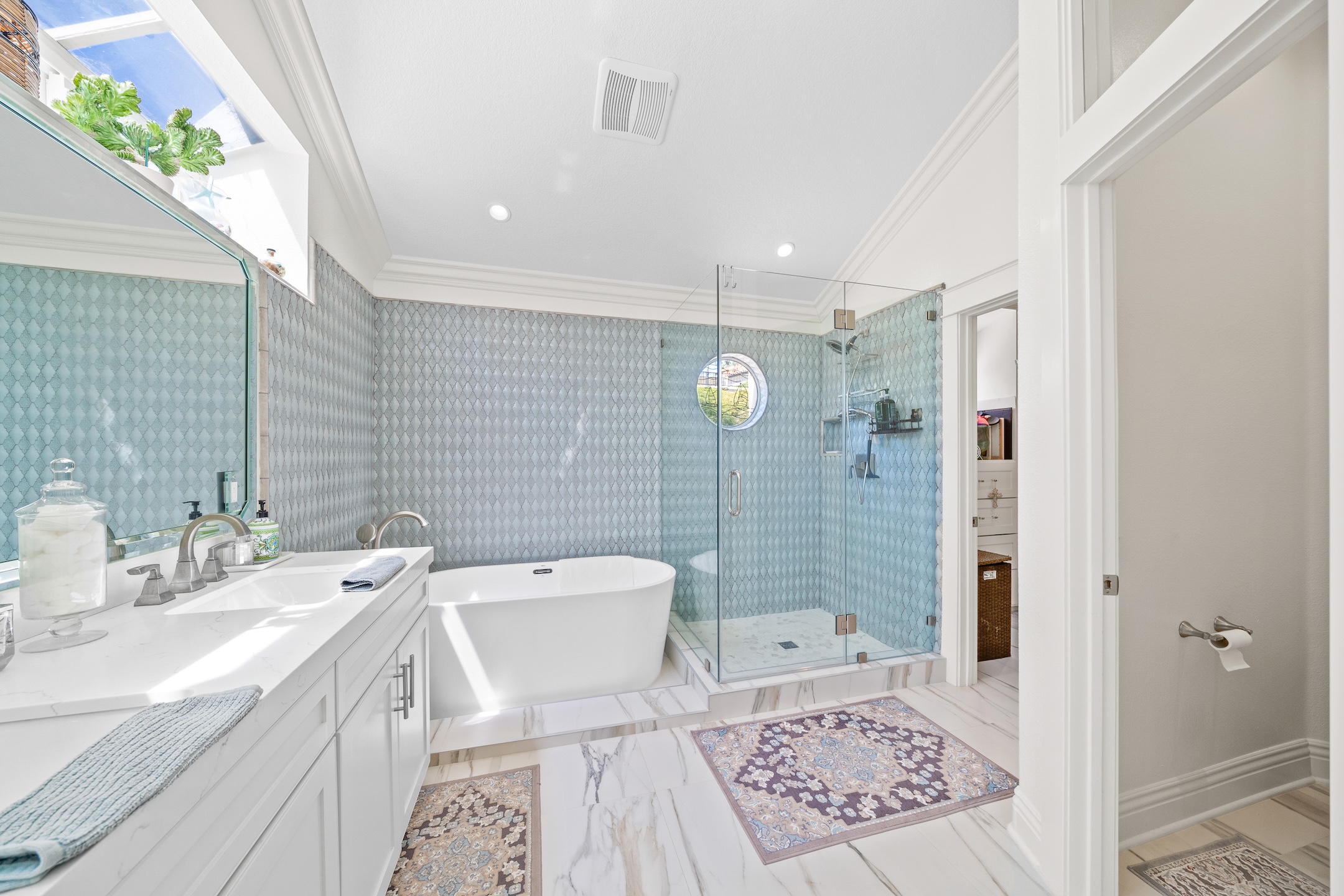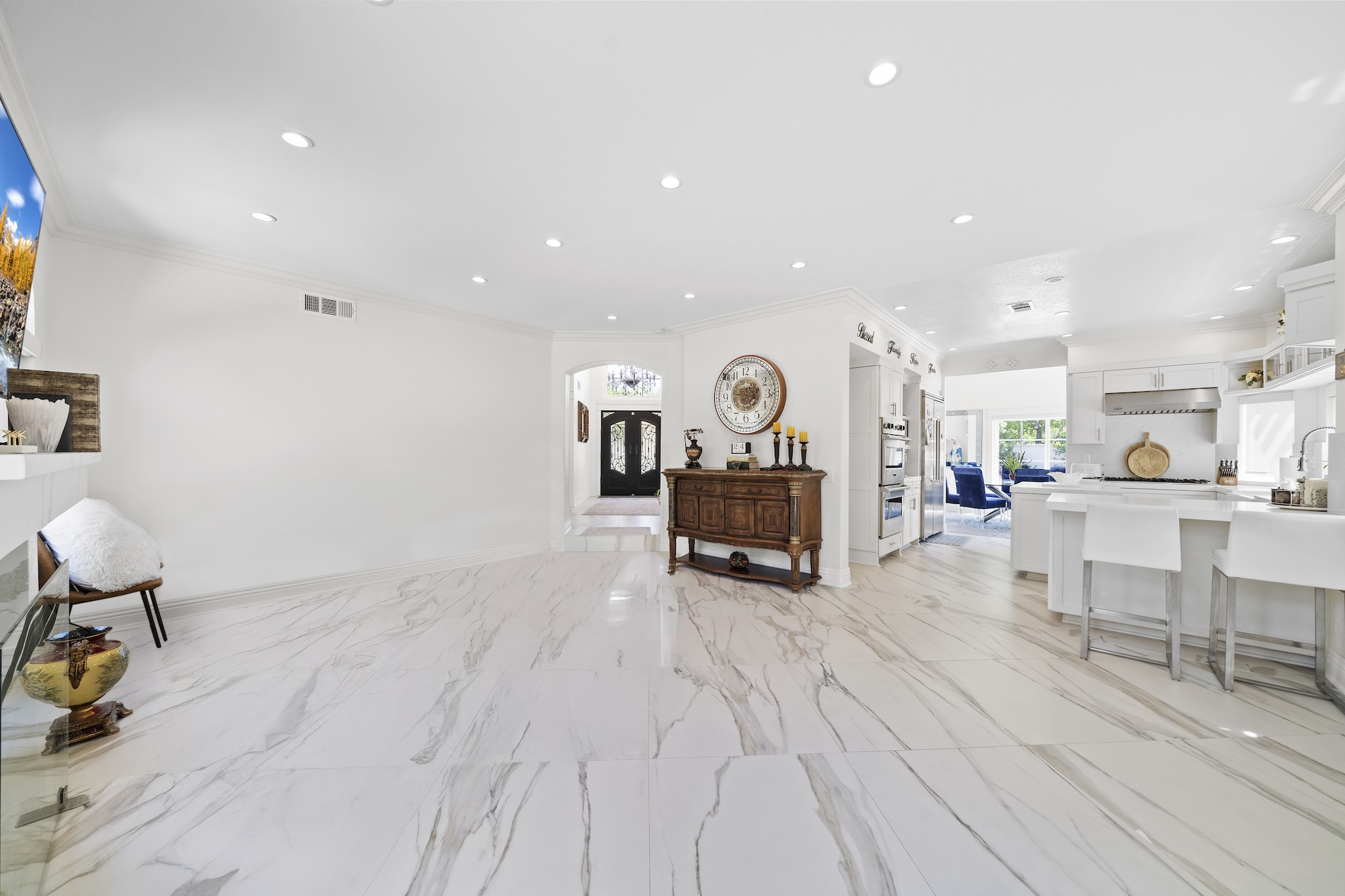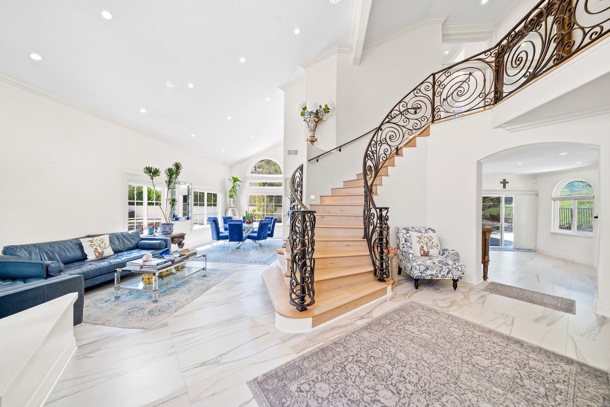 Absolutely breathtaking renovated residence situated on an interior end of a single loaded cul-de-sac street on a landmark expansive lot that encompasses nearly 20,000 square feet and includes a stunning entertainer’s wrap around pool and spa patio yard and space enough to comfortably park your RV, boat, or your latest project custom car. Truly exceptional for Marina Hills and is a must see triumph for the community. Starting with picture perfect curb appeal including high-end artificial turf, welcoming mature planting beds in a truly inviting front porch with a set of custom, elegant double doors. Stepping inside you are greeted by an elegant foyer featuring a sweeping curved custom staircase which is open to the striking light and bright formal living and dining rooms that feature great space and an abundance of natural light from large windows. Next are the completely updated chef’s kitchen and a spacious family room. With updated professional grade stainless steel appliances, bright white quartz counters – including a convenient center prep island, recessed lighting and great light from a large over sink window, a large walk-in pantry and a breakfast bar peninsula that opens to the family room this kitchen will be where all the magic happens. The family room is spacious and light and features a warm focal point fireplace. A highly sought after downstairs bedroom and a fully renovated three quarter guest bath, and a clean and bright indoor laundry room, complete the lower-level living spaces. Up the sweeping custom stairs, the primary wing features a generously sized light and bright bedroom that is compliments by the completely redone spa-like ensuite with custom tile, a quartz dual sink vanity, a soaking tub, a step-in shower, a privacy water closet door and a sizable walk-in closet. Three additional guest bedrooms and a fully renovated guest bath complete the upper living spaces. Outside you’ll find an entertainer’s dream custom hardscape pool and spa yard that has ample space to relax, entertain and play in complete privacy and comfort with a large portion that is completely covered. Located in the highly sought after, near coastal, enclave of Marina Hills enjoy access to exceptional facilities including a pool and spa complex, tennis and pickleball courts, playgrounds, various parks, access to beach reaching walking and biking trails and all of this with comparatively low HOA dues! This is the one. Welcome Home!