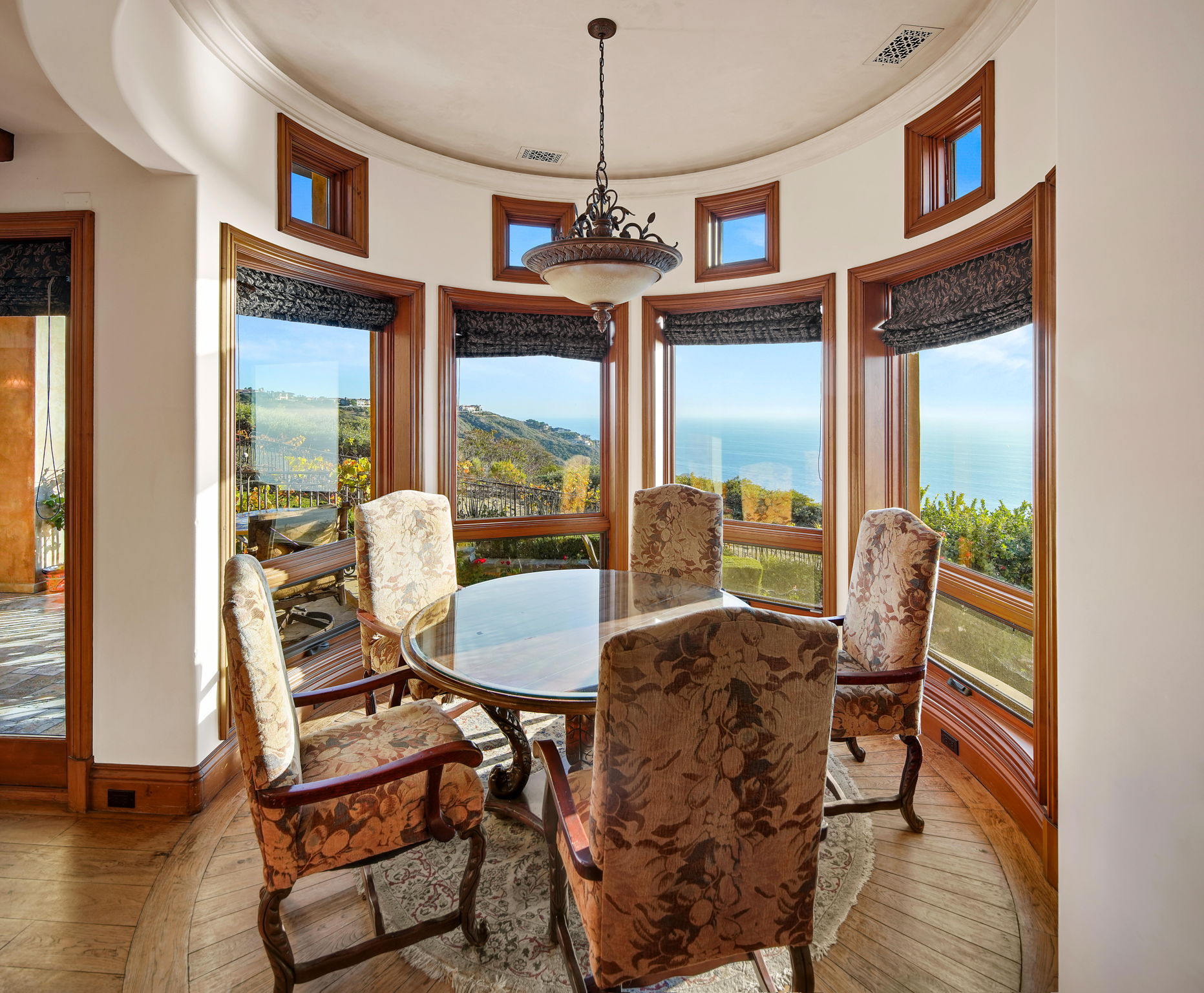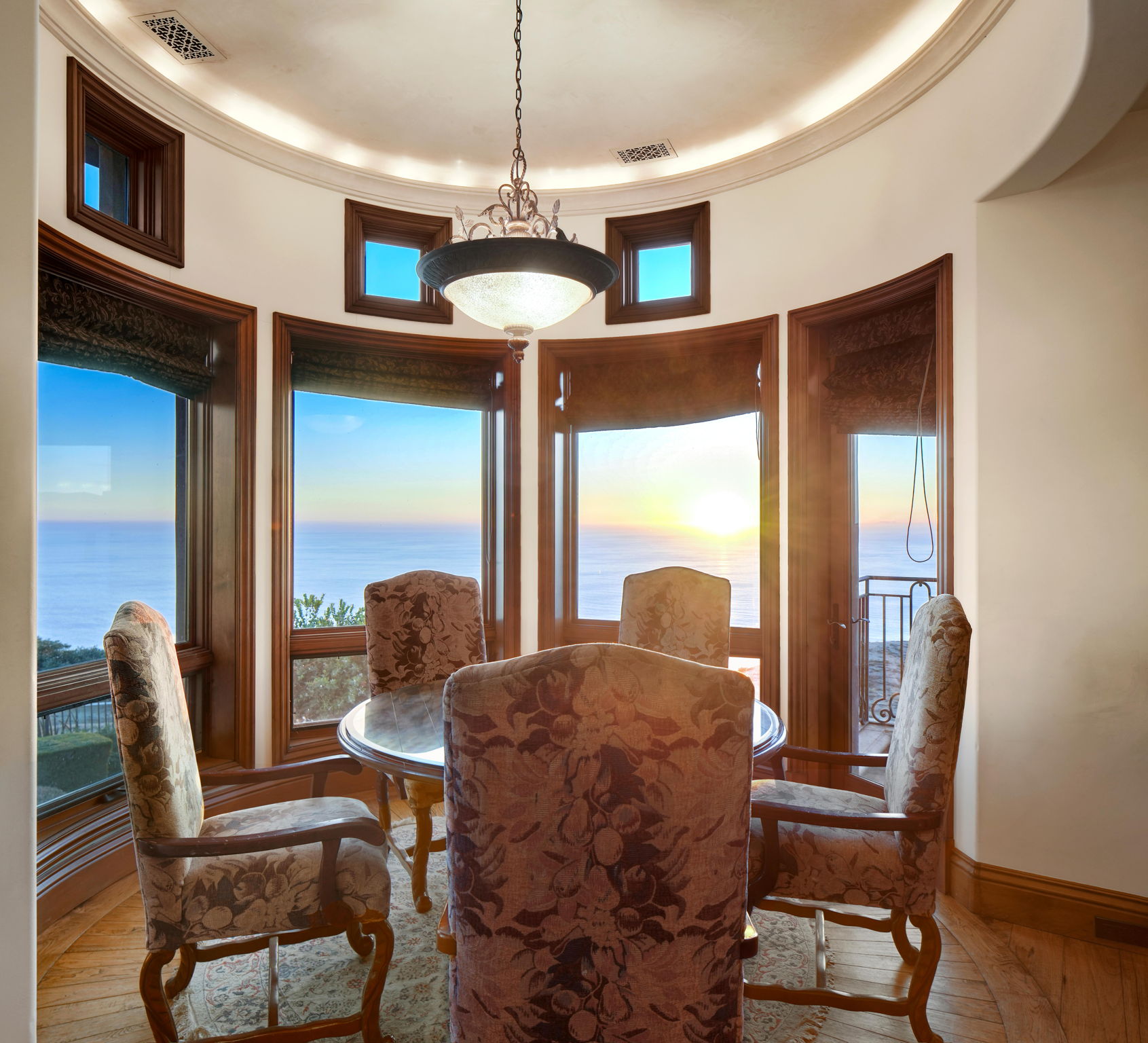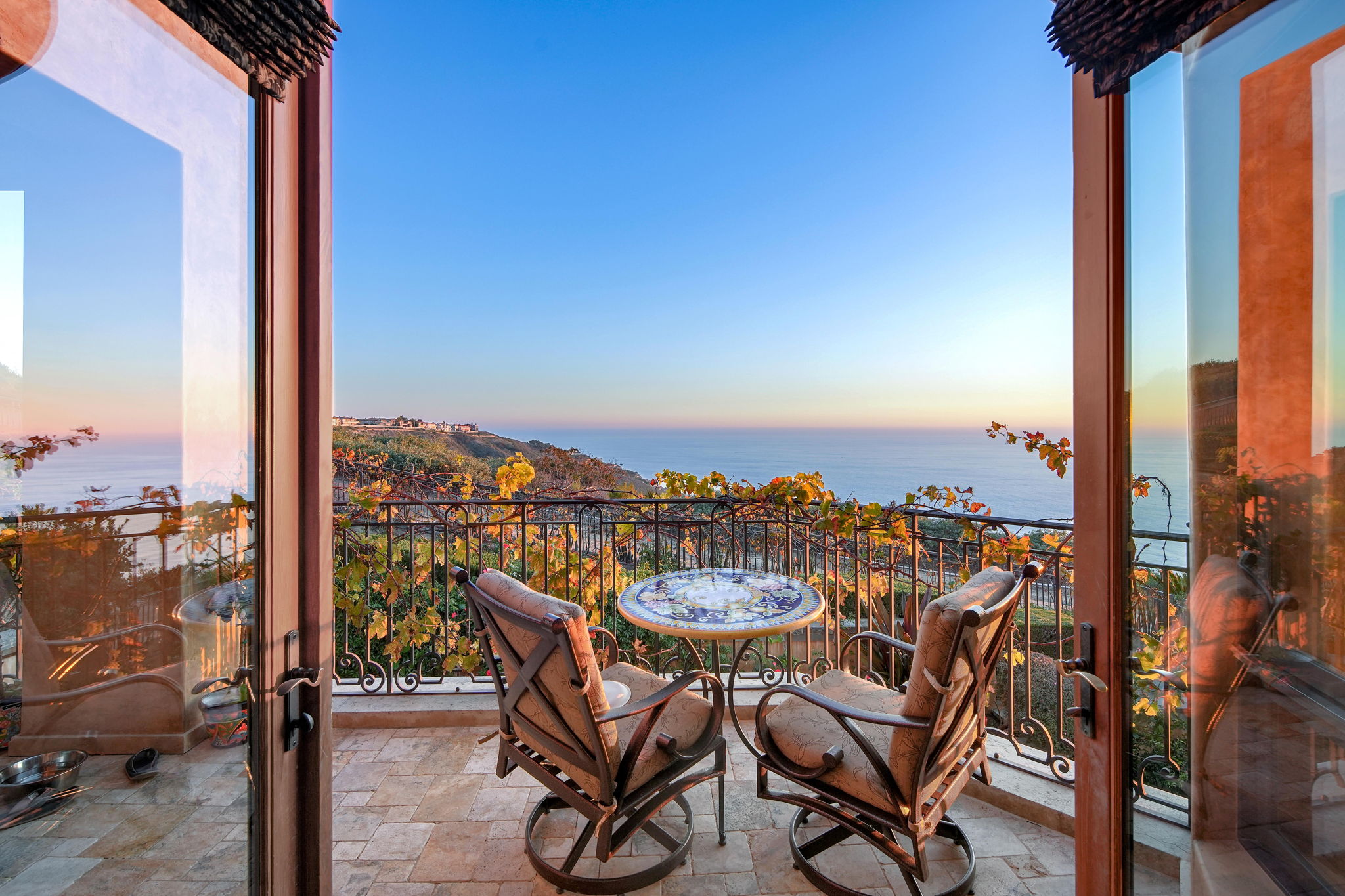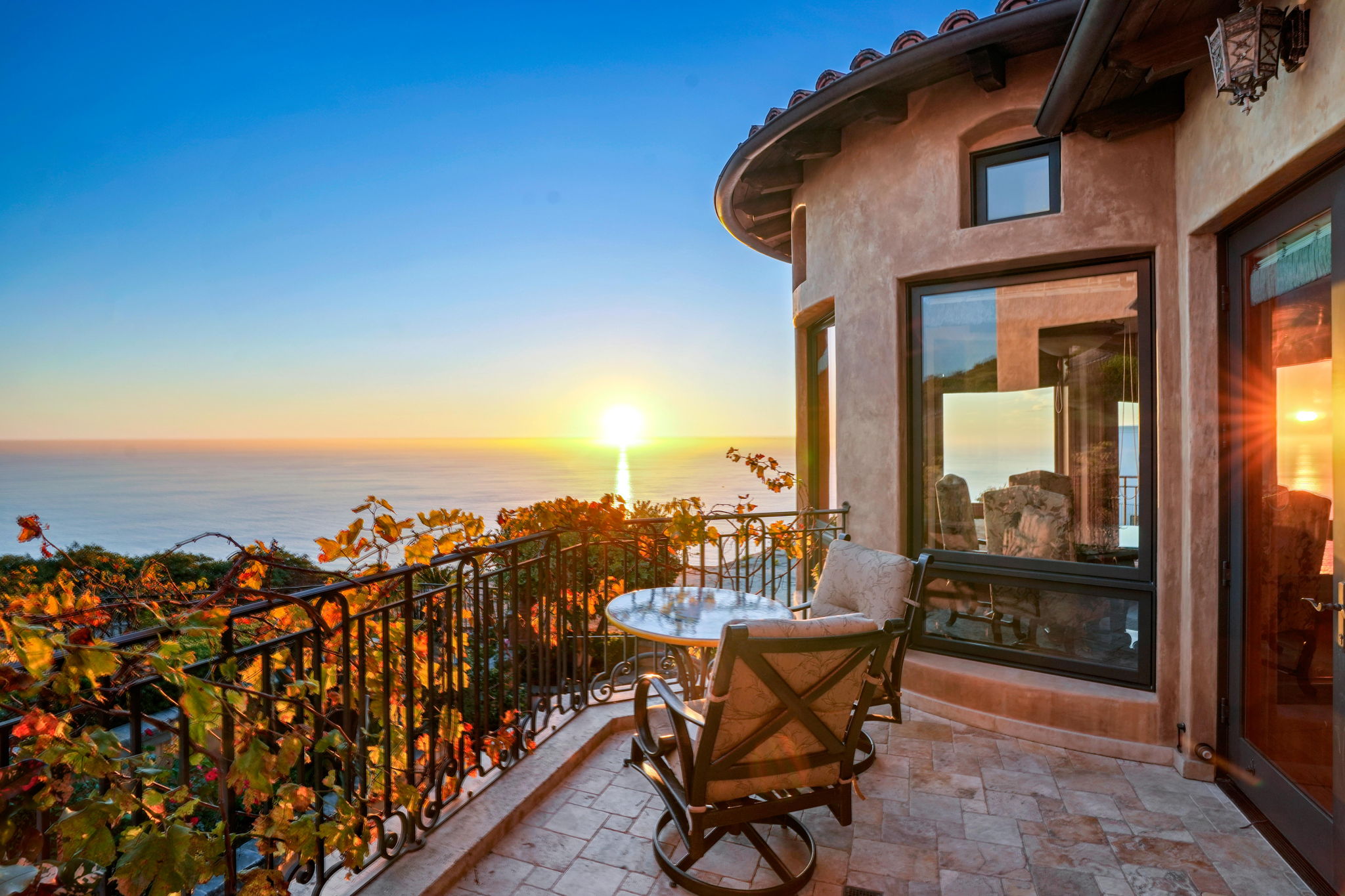 Located within the private and exclusive guard-gated community of Laguna Sur, this exquisite 5,052 sq. ft. home offers 4 beds, 6 baths, unparalleled luxury finishes throughout, and sweeping unobstructed ocean views. Built using only the finest materials worked by old-world master craftsmen, this home is an entertainer's dream featuring an impressive 8 ft. tall glass and wrought iron door, inviting you into the spacious open floor plan with beamed ceilings. Adjacent to the formal dining room, the gourmet kitchen comes replete with an oversized island, serving bar, granite countertops, custom cabinetry with artisan glass work, Miele and Subzero appliances, and a cozy breakfast nook with views of the ocean. The spacious primary suite boasts a fireplace, a private terrace with ocean views, custom built-in cabinets, and a large bathroom with a hot tub and double vanity. The grand media room has a 120" screen and an upgraded sound system. The stately office has walls covered in warm-toned paneled wood. Other features include a beautiful wrought iron spiral staircase, a large elevator, and solid hickory planked flooring and alder wood crown molding/baseboards throughout. The outdoor terrace enjoys breathtaking ocean views and provides all you need to live the dreamy California Coastal Lifestyle.