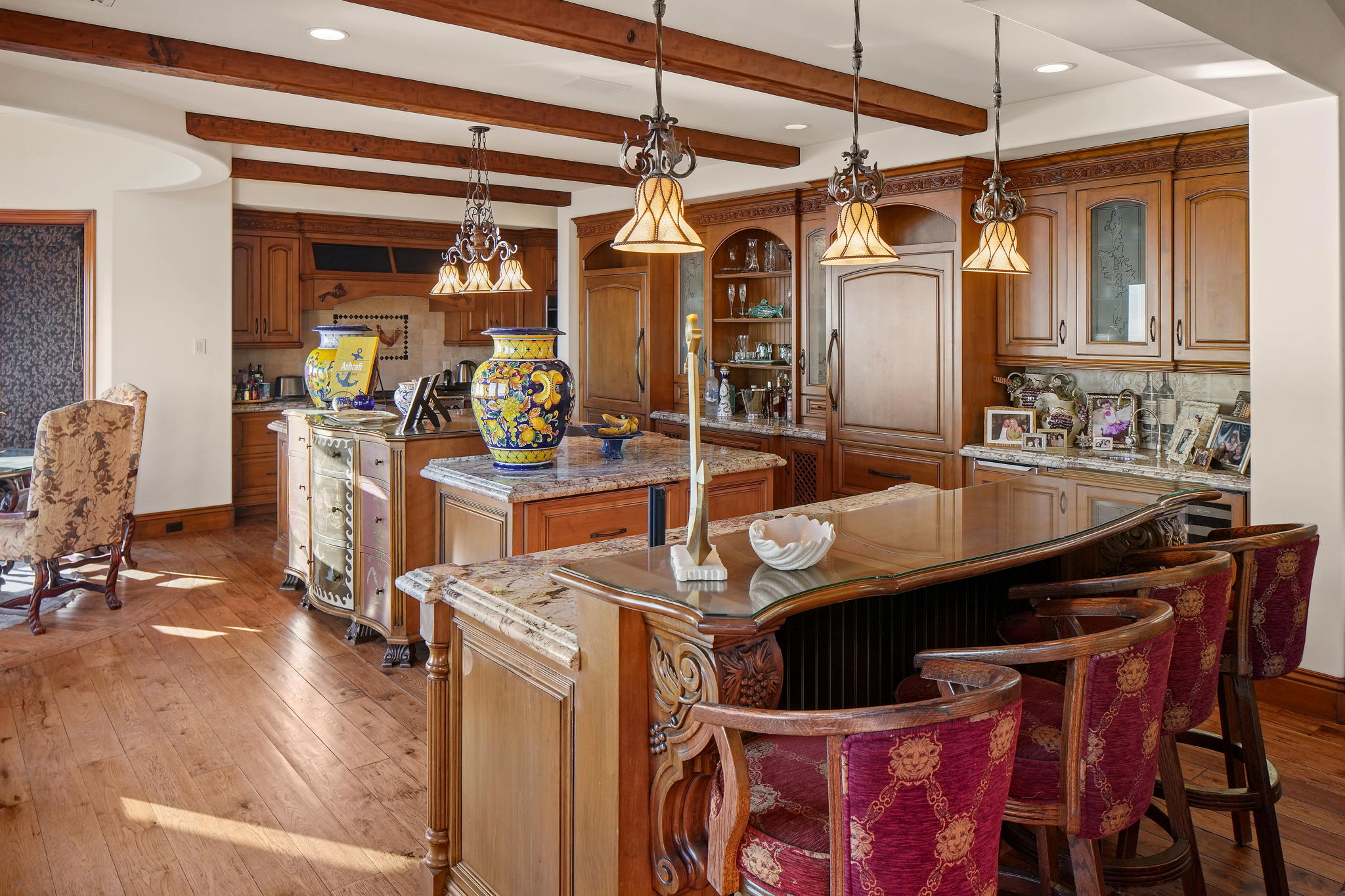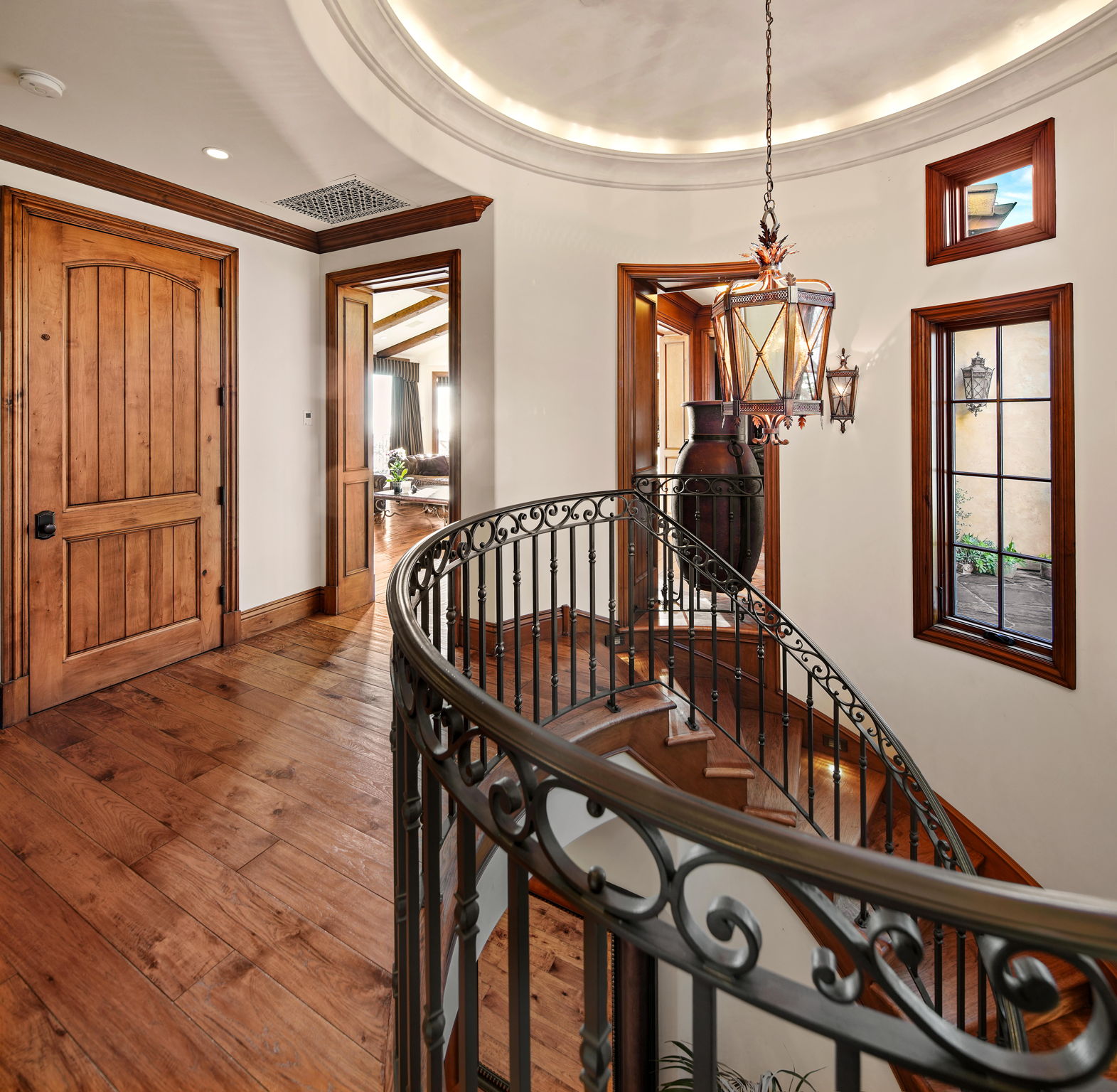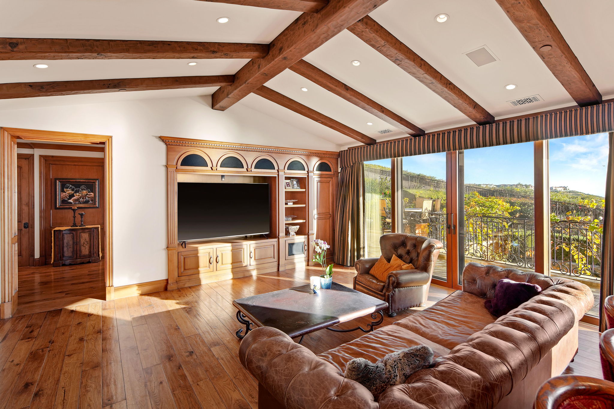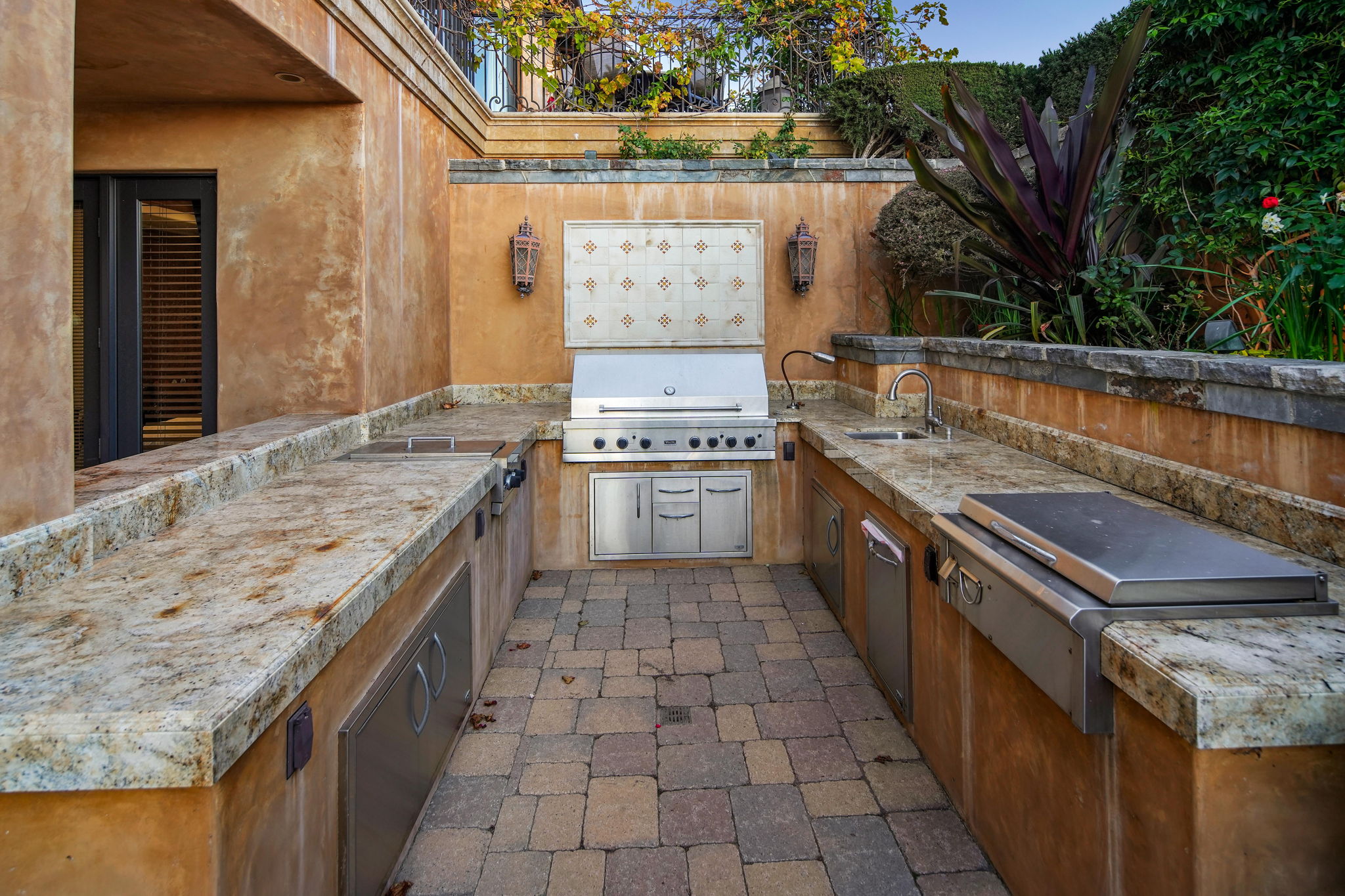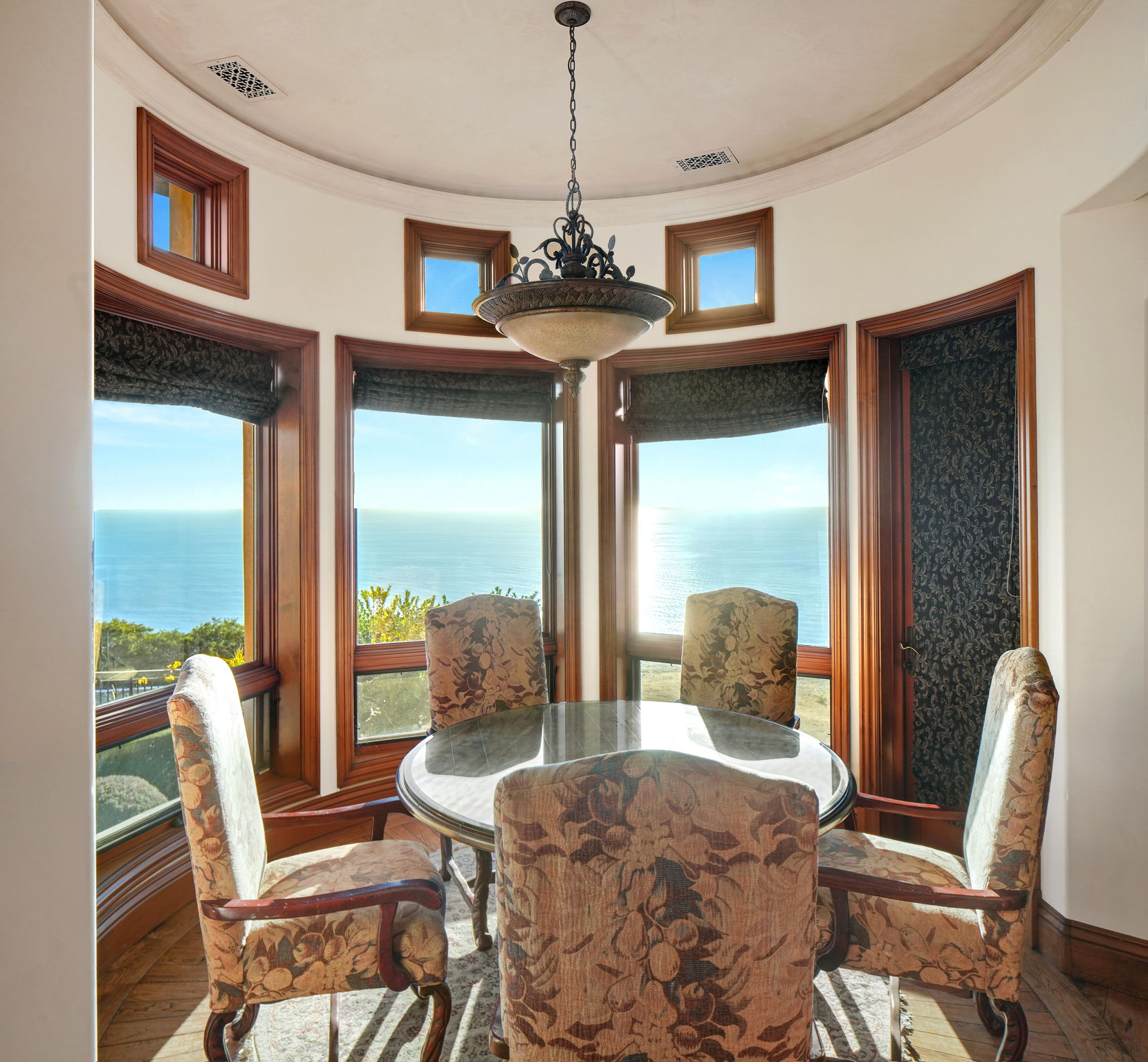 Located within the private and exclusive guard-gated community of Laguna Sur, this exquisite 5,052 sq. ft. home offers 4 beds, 6 baths, unparalleled luxury finishes throughout, and sweeping unobstructed ocean views. Built using only the finest materials worked by old-world master craftsmen, this home is an entertainer's dream featuring an impressive 8 ft. tall glass and wrought iron door, inviting you into the spacious open floor plan with beamed ceilings. Adjacent to the formal dining room, the gourmet kitchen comes replete with an oversized island, serving bar, granite countertops, custom cabinetry with artisan glass work, Miele and Subzero appliances, and a cozy breakfast nook with views of the ocean. The spacious primary suite boasts a fireplace, a private terrace with ocean views, custom built-in cabinets, and a large bathroom with a hot tub and double vanity. The grand media room has a 120" screen and an upgraded sound system. The stately office has walls covered in warm-toned paneled wood. Other features include a beautiful wrought iron spiral staircase, a large elevator, and solid hickory planked flooring and alder wood crown molding/baseboards throughout. The outdoor terrace enjoys breathtaking ocean views and provides all you need to live the dreamy California Coastal Lifestyle.