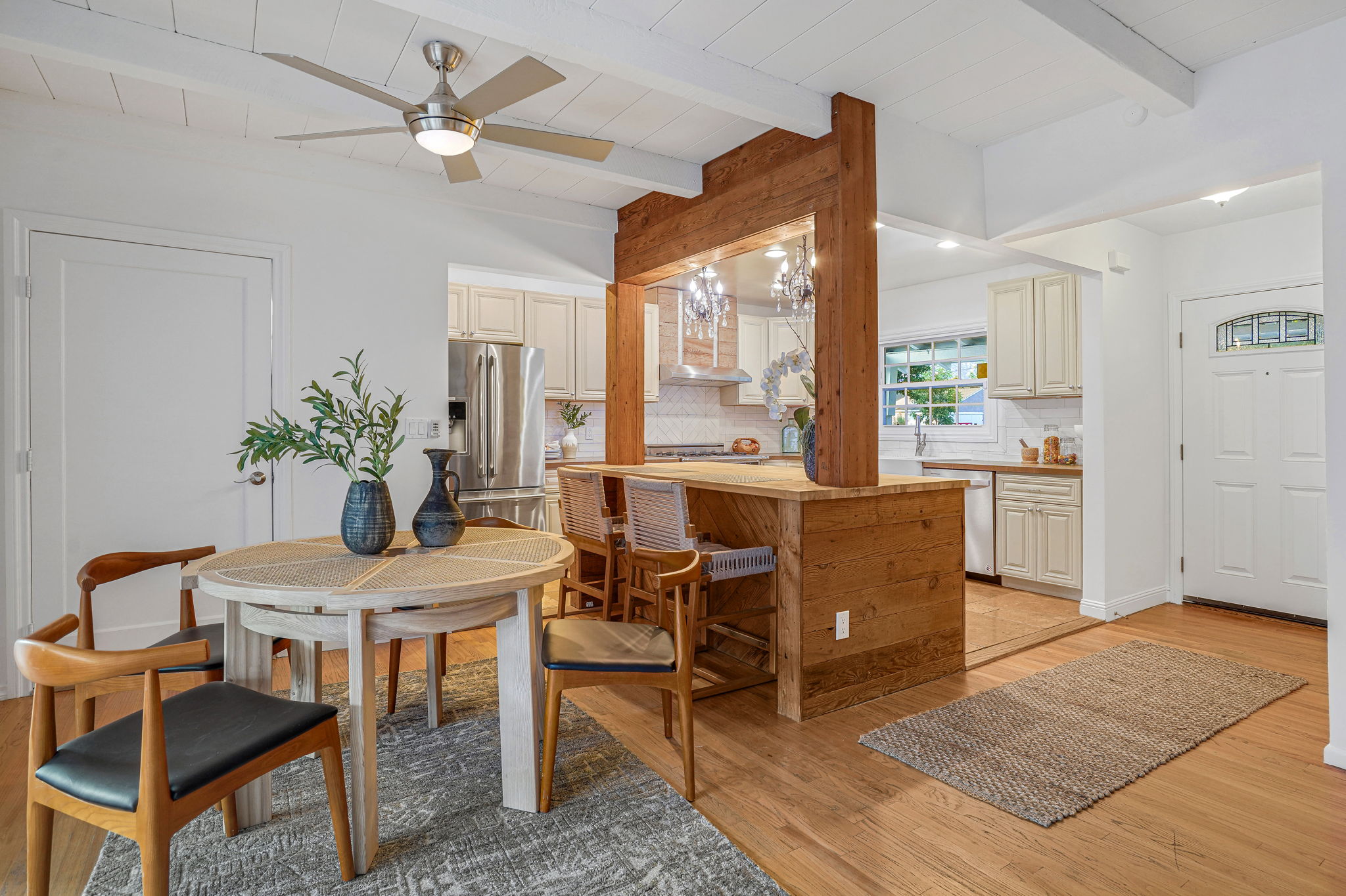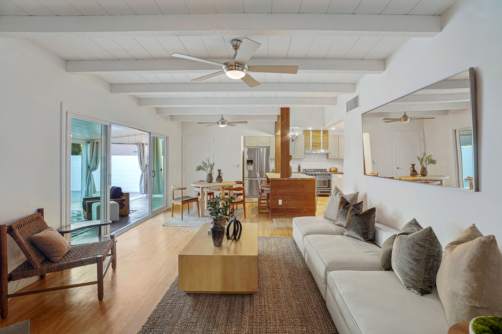 This impeccably charming 3 bed/3 bath home located in the highly desirable Rancho Adjacent neighborhood is bursting with curb appeal. The open floorplan seamlessly flows from the remodeled open kitchen to the living room with a wood beamed ceiling, original hardwood floors and an abundance of natural light. The master suite features an ensuite bathroom and a recently added, large walk-in closet. The expansive outdoor covered patio offers a quintessential indoor/outdoor California lifestyle and overlooks the lush, sprawling backyard with a mature orange and avocado tree and ample room for a pool. Gated driveway with a detached, two car garage. Separate laundry room, w/ hook-ups, is off the kitchen. Recent improvements include remodeled guest bathrooms, Ring doorbell, Nest thermostat, new paint throughout, updated plumbing, newer AC unit, upgraded main electrical panel. Move-in ready!
