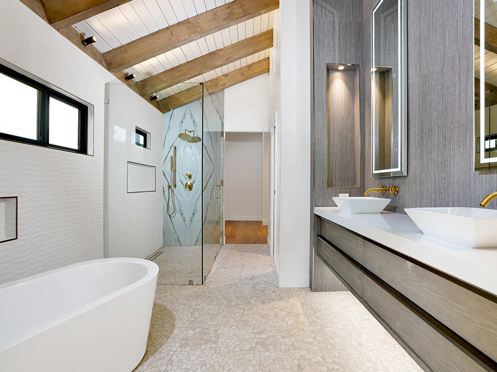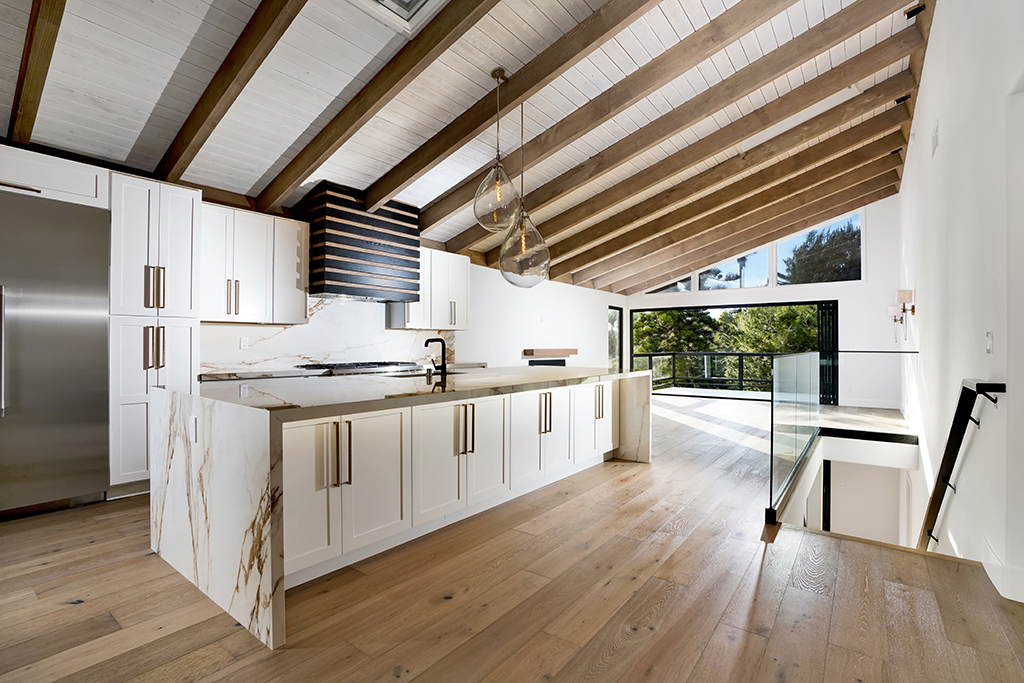 Nestled in the heart of highly desired Southwest San Clemente, this stunning 3,362 sq. ft. modern craftsman has been immaculately renovated from the ground up. The gated front entry leads into a private courtyard with a spiral staircase to the ocean view roof top deck. Through the five foot wide glass pivot front door is a stunning open floor plan complimented by 14’ vaulted ceilings. An oversized island centers the kitchen boasting porcelain counter tops, custom cabinetry highlighted with brass fixtures and top of the line Thermador appliances. The living room basques in warmth from the above skylights and stunning canyon views out the large bifold glass doors. The main level master suite is home to dual sinks, an over sized tub, shower and impressive walk in closet. All four bedrooms feature en-suite baths with an additional powder room off of the kitchen. New electrical, plumbing and dual zoned HVAC. Three car garage with additional driveway parking and just a short walk to the beach.
