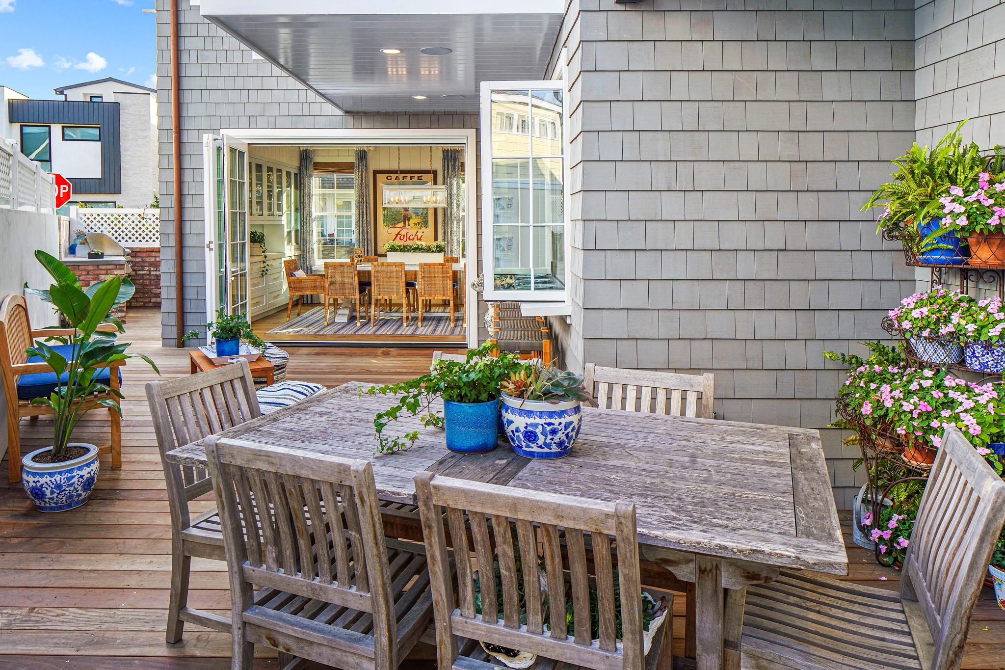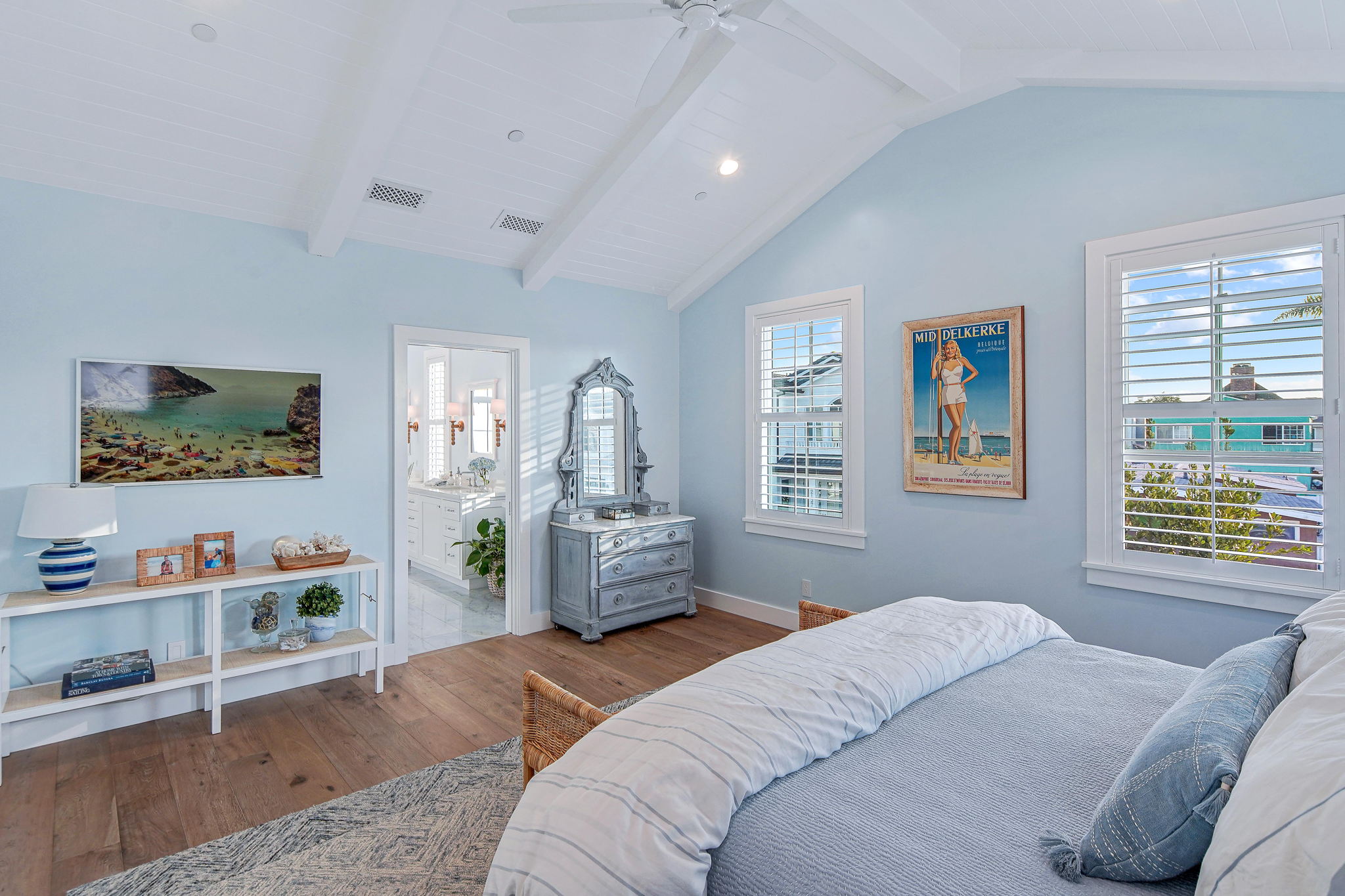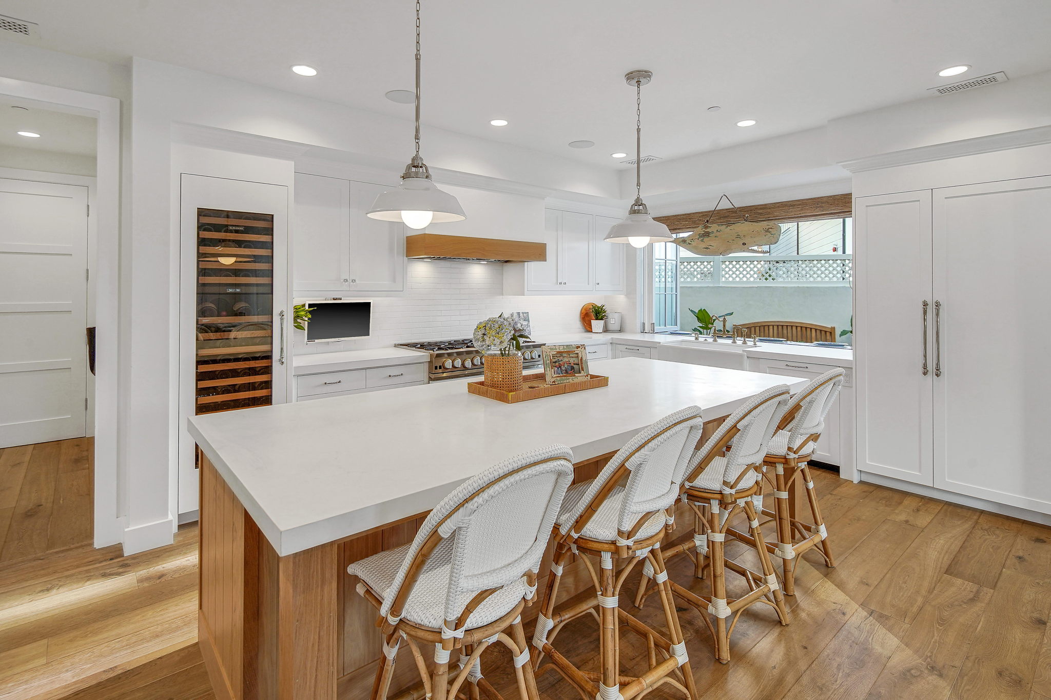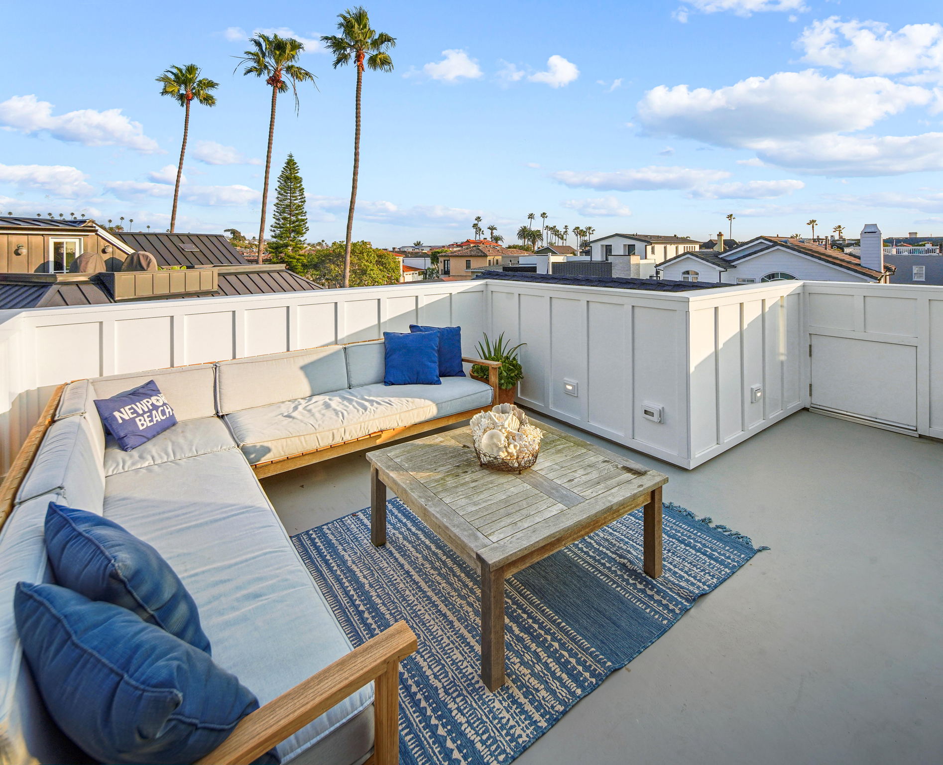 Ideally situated at the serene intersection of beachside bliss and bayfront beauty, 2132 Seville embodies coastal luxury at its finest. This distinguished residence, meticulously crafted by Graystone Builders, commands attention with its grand presence on a corner lot boasting approximately 60 feet of coveted frontage. Stepping inside, guests are welcomed into a haven of Hamptons-inspired elegance, where innovative craftsmanship and bespoke design converge. Vertical shiplap adorns the walls of the expansive living area, complemented by the warmth of authentic French Oak wood flooring underfoot. A cozy fireplace invites intimate gatherings, while custom-built shelving adds both functionality and style. The heart of the home, a chef's dream kitchen, beckons with honed quartz countertops, top-of-the-line appliances including a Sub-Zero fridge+freezer, Miele dishwasher, and a breathtaking BlueStar range. Bi-fold windows seamlessly merge indoor and outdoor spaces, inviting the gentle ocean breeze to mingle with culinary delights. Entertain with ease in the private outdoor oasis, complete with a built-in BBQ, Brazilian hardwood flooring, and a charming island bar opening to the kitchen. As day turns to night, set the perfect ambiance with the integrated sound system, enveloping both indoor and outdoor spaces in melodic harmony. Ascending the rustic brick-lined staircase, discover a sanctuary of comfort on the upper levels. Three spacious ensuite bedrooms await, each offering a retreat of tranquility and luxury. The master suite exudes sophistication, boasting a grand vaulted ceiling, dreamy blue accents, and a lavish bathroom sanctuary featuring a freestanding soaking tub and oversized shower. For elevated relaxation, ascend to the third floor where a fourth ensuite bedroom awaits, accompanied by a sprawling living area adorned with board & batten millwork. Step outside onto the scenic rooftop deck, offering panoramic views of the surrounding beauty, perfect for sunset soirées or stargazing under the night sky. Beyond its impeccable design and craftsmanship, this home provides the convenience of modern living with central vacuum on each floor, a powerful backup generator, and full audio and stereo throughout. Nestled within the coveted Balboa Peninsula Point, residents enjoy a lifestyle synonymous with coastal paradise. From world-class surfing at The Wedge to the enchanting Christmas Boat Parade and vibrant Fourth of July fireworks, every day is a celebration of seaside living. Don't miss this rare opportunity to make 2132 Seville your own, where every detail is a testament to unparalleled luxury and coastal elegance.