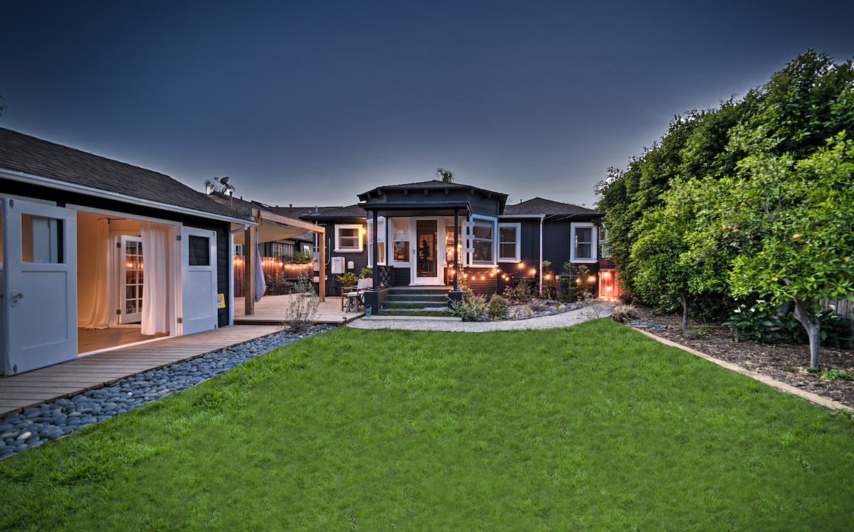 This unique Craftsman-style home has been beautifully remodeled while maintaining its turn-of-the-century elegance. Extraordinary curb appeal and landscaping welcome you into the private and gated home boasting a spacious open floor plan, 3 bedrooms, 2 bathrooms, a large formal living room, formal dining room, and office. A bright and open family room off the kitchen and separate sun room overlook the beautifully landscaped backyard, allowing for a leisurely and modern style of living. The detached garage has been impeccably remodeled into a spacious 312 sq. ft. guest house (included in property sq. ft.), complete with full bath and kitchenette. Located just a few short blocks from trendy Larchmont Village. Additional features include: Central HVAC, updated plumbing/electrical, new sewer line, fresh paint, and a private landscaped yard with fruit trees.