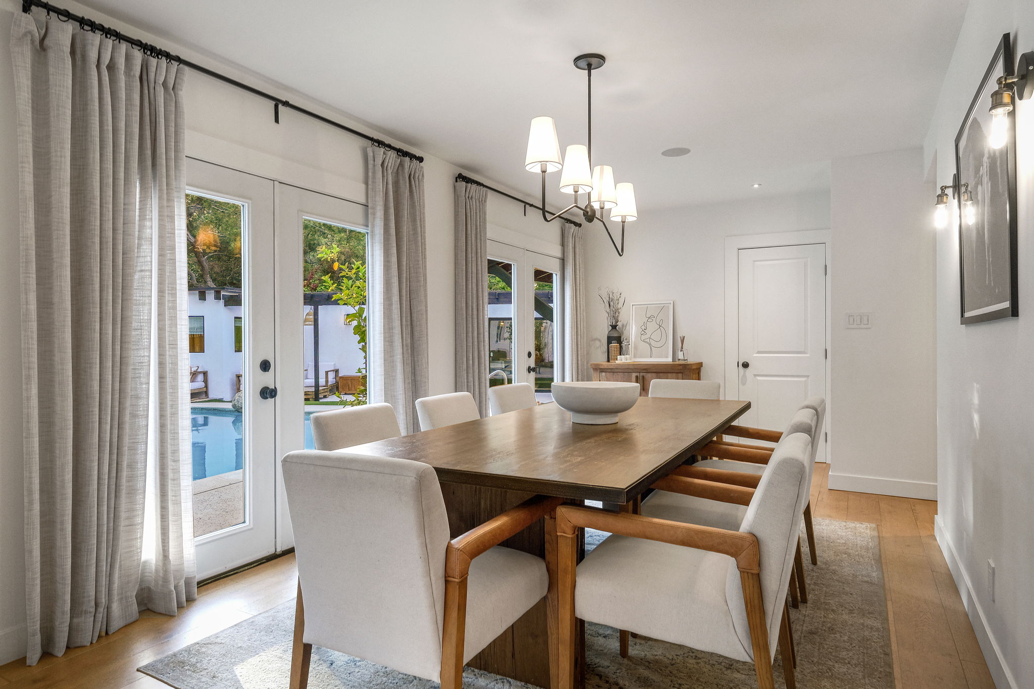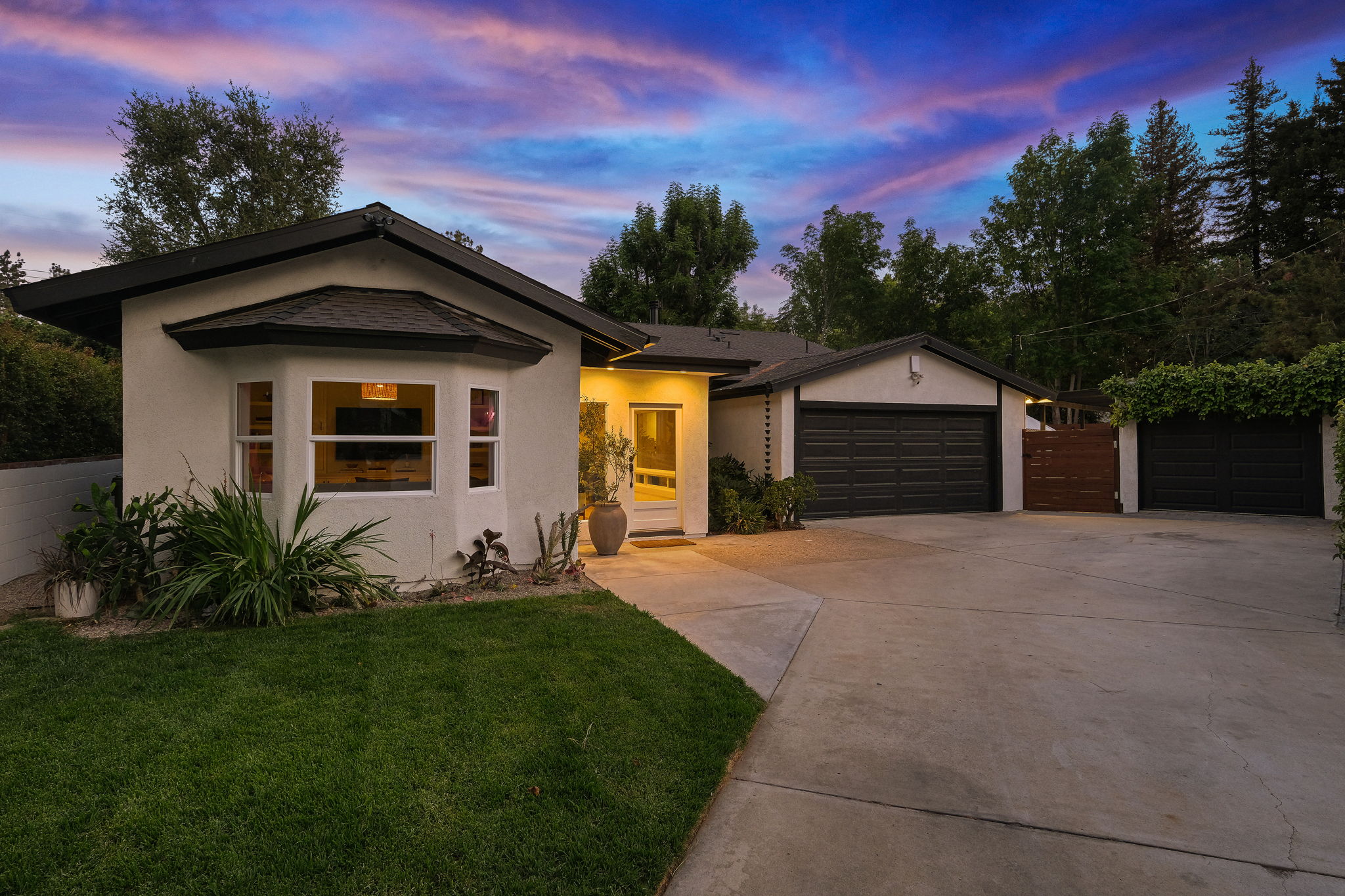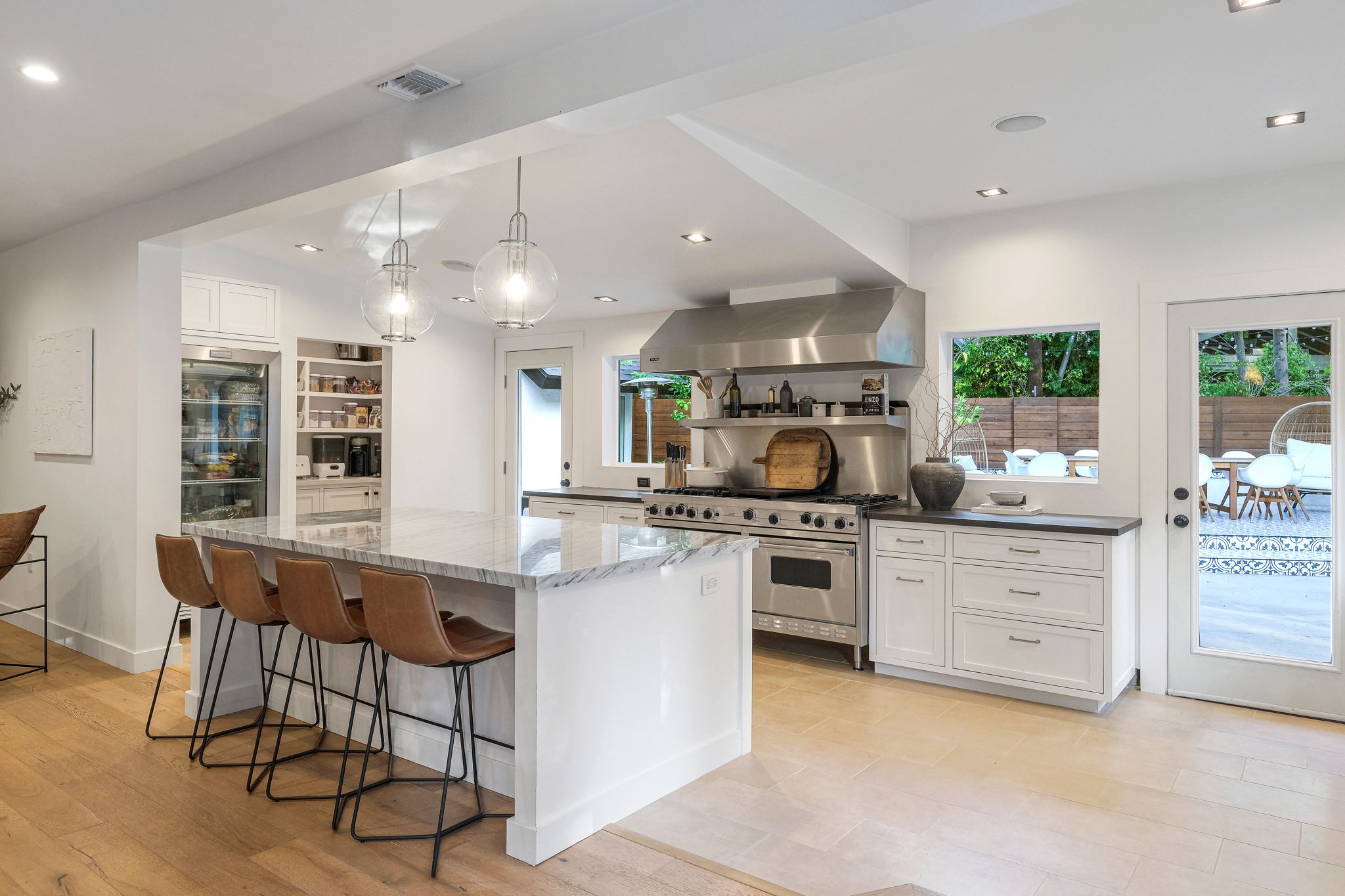 Set privately behind a gated driveway at the end of a quiet cul-de-sac street in the highly desirable Walnut Acres area, this stunning estate has been exquisitely renovated with designer finishes and the finest craftsmanship. This charming single-story home makes the most of its indoor/outdoor living spaces, boasting 4 large bedrooms and 3 fully updated bathrooms. A chef's kitchen featuring top-of-the-line appliances opens up to an adjacent living room, perfect for entertaining. The luxurious owner's suite comes replete with a walk-in closet as well as a spa-like bathroom with a large shower and soaking tub. The backyard features a saltwater swimming pool, enchanting dining and sitting areas, and a grassy yard with space to entertain. Superior smart home capabilities include Sonos, Lutron, a multi-access point wifi system, and smart thermostats. Included in the 3,804 total square feet is a 716 square foot converted garage space, separate from the main house, offers the perfect opportunity for a gym or home office. Additional attached 2-car garage complete this incredible property.