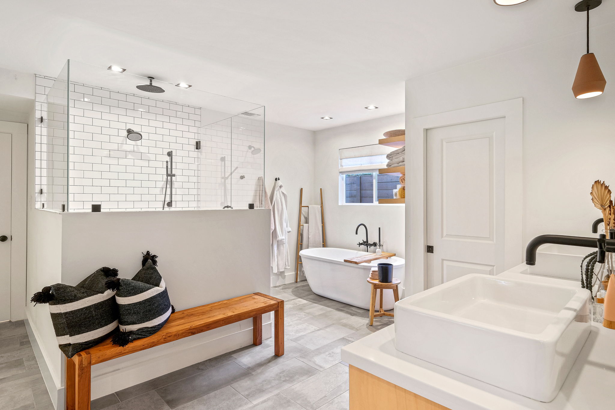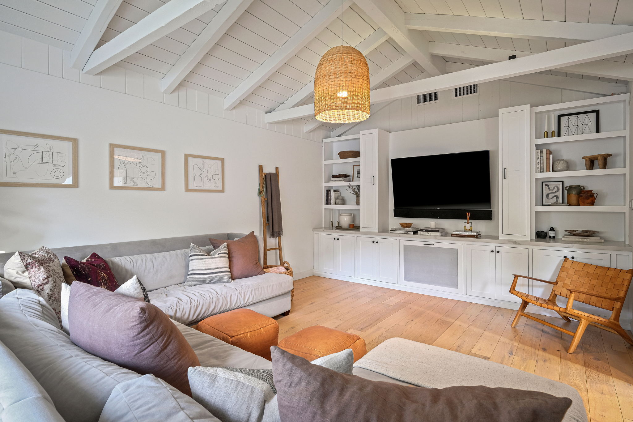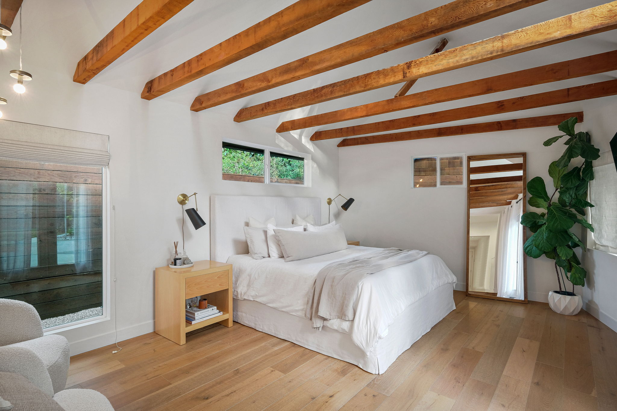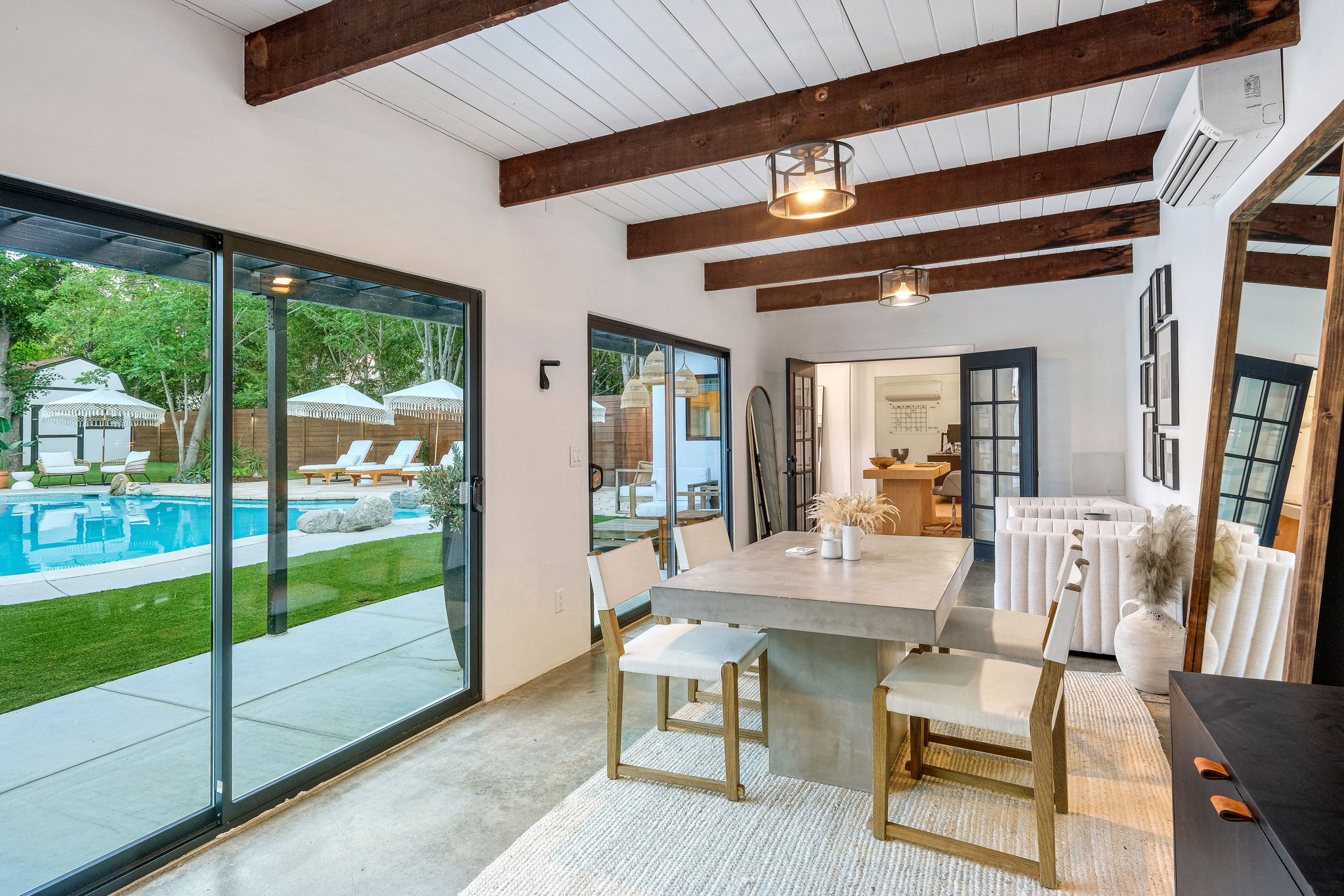 Set privately behind a gated driveway at the end of a quiet cul-de-sac street in the highly desirable Walnut Acres area, this stunning estate has been exquisitely renovated with designer finishes and the finest craftsmanship. This charming single-story home makes the most of its indoor/outdoor living spaces, boasting 4 large bedrooms and 3 fully updated bathrooms. A chef's kitchen featuring top-of-the-line appliances opens up to an adjacent living room, perfect for entertaining. The luxurious owner's suite comes replete with a walk-in closet as well as a spa-like bathroom with a large shower and soaking tub. The backyard features a saltwater swimming pool, enchanting dining and sitting areas, and a grassy yard with space to entertain. Superior smart home capabilities include Sonos, Lutron, a multi-access point wifi system, and smart thermostats. Included in the 3,804 total square feet is a 716 square foot converted garage space, separate from the main house, offers the perfect opportunity for a gym or home office. Additional attached 2-car garage complete this incredible property.