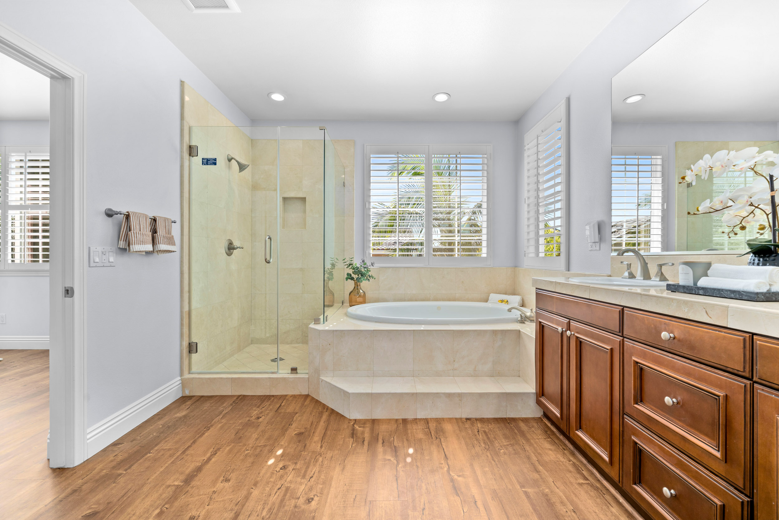 Discover this exquisite 4-bedroom, 3-bathroom residence that truly exemplifies pride of ownership. Featuring a convenient entry-level bedroom and full bath, this home impresses with its soaring two-story ceilings and an inviting open-concept living area. The gourmet kitchen is a chef’s dream, showcasing stunning quartz countertops, generous cabinet space, and a spacious walk-in pantry—ideal for both cooking and entertaining. Retreat to the expansive primary suite upstairs, complete with a luxurious en suite bathroom featuring dual sinks, a relaxing soaking tub, and a walk-in shower. This home is further enhanced by elegant hardwood flooring, plantation shutters, solar panels with battery backup, a comprehensive whole-house water filtration system, and an EV charger hookup. Step outside to the low-maintenance backyard, designed for relaxation, with two charming patio areas. Nestled in a premier gated community, residents enjoy resort-style amenities, including sparkling pools, a playground, and a basketball court. The location is unbeatable, with pristine beaches, exceptional shopping, award-winning golf courses, and top-rated schools all just minutes away. The San Joaquin Hills community offers an enviable lifestyle, featuring additional amenities such as a spa and a gated playground. Don’t miss this incredible opportunity to own a remarkable home in the exclusive San Joaquin Hills community—where luxury living meets convenience!