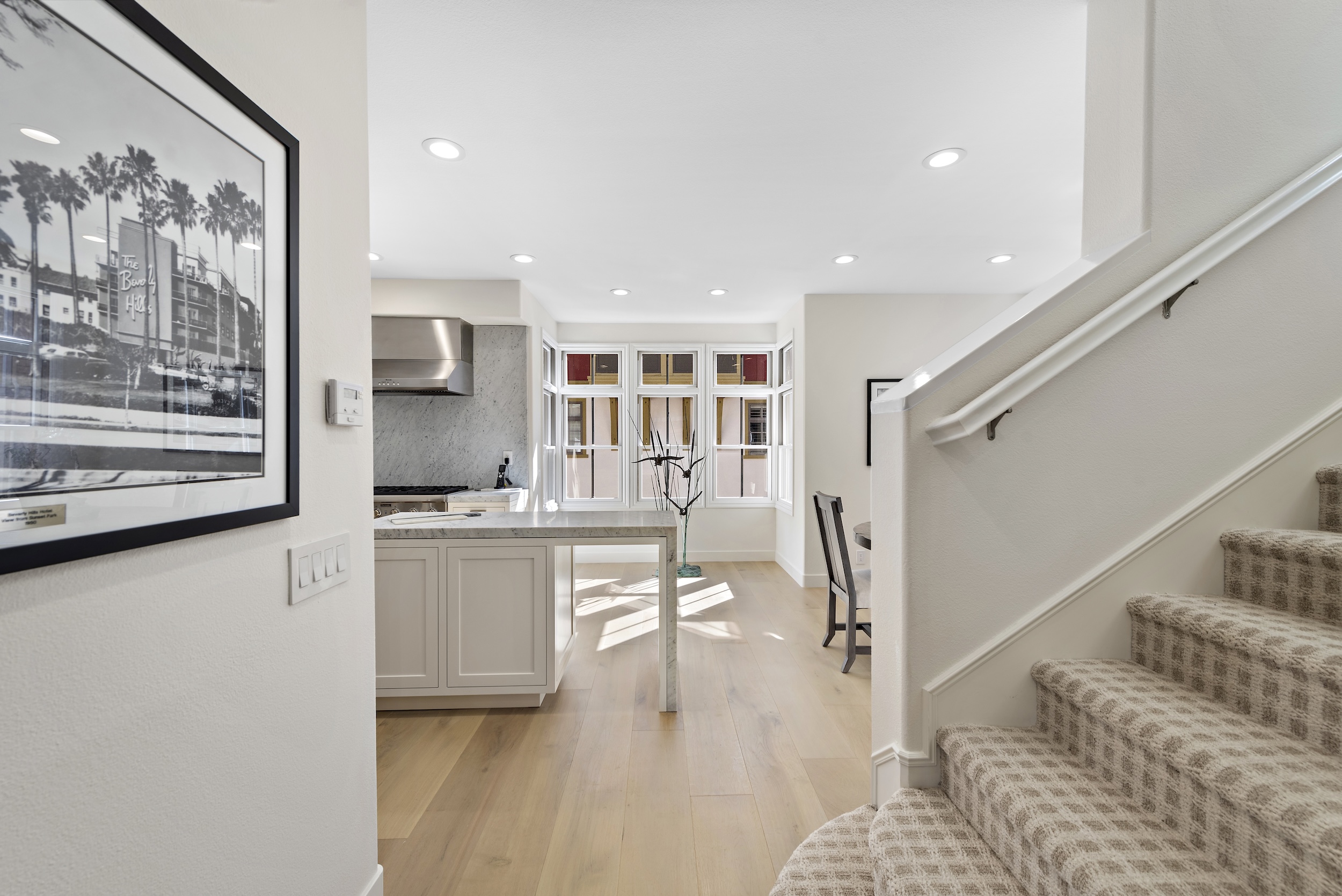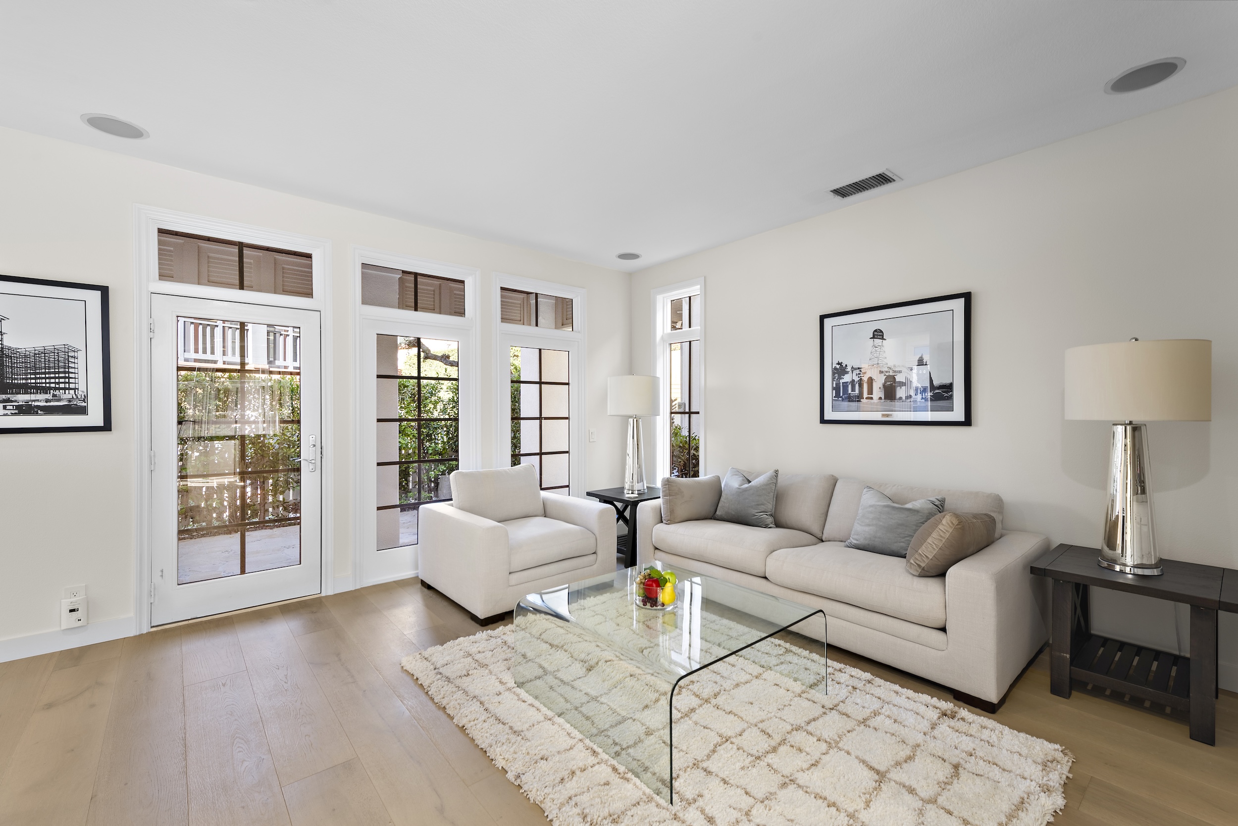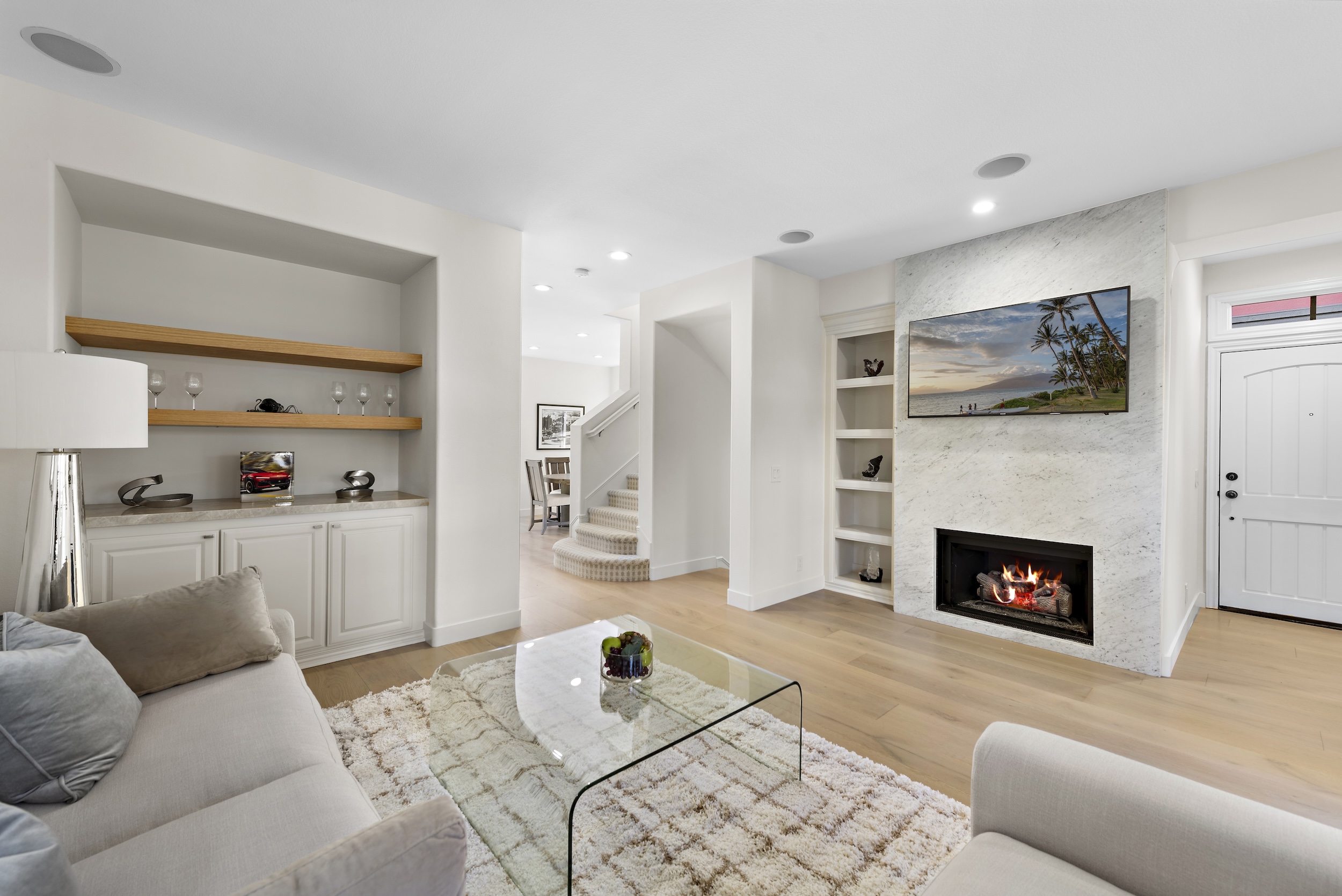 Located in the coveted Sailhouse community of Corona Del Mar, this move-in-ready former model home boasts 2 beds, 2 1/2 baths plus spacious den/office. This wonderful home enjoys incredible style, function, and livability. With finishes such as durable oak laminate floors, porcelain, stone, glass, and crown molding throughout, the sophisticated on-trend neutral interior sets the welcoming tone for this turnkey home. The kitchen features top-of-the-line appliances, Calacatta marble surfaces, and a custom waterfall island with seating with separate dining area. The oversized owner's suite showcases vaulted ceilings, large walk-in closet and the ensuite bath boasts dual vanities and walk-in shower. The additional, spacious ensuite bedroom with stunning bath, and office/den can also be found on the upper level of this beautiful property. A charming front patio, with room to entertain, is perfect to enjoy coastal breezes whilst relaxing in this quiet neighborhood. The ground floor has a large laundry room and direct access to the attached 2-car garage. Just minutes to upscale dining and shopping in the Village of Corona Del Mar, spectacular Fashion Island, and close to highly rated schools and the beach this stunning abode is one not to be missed.