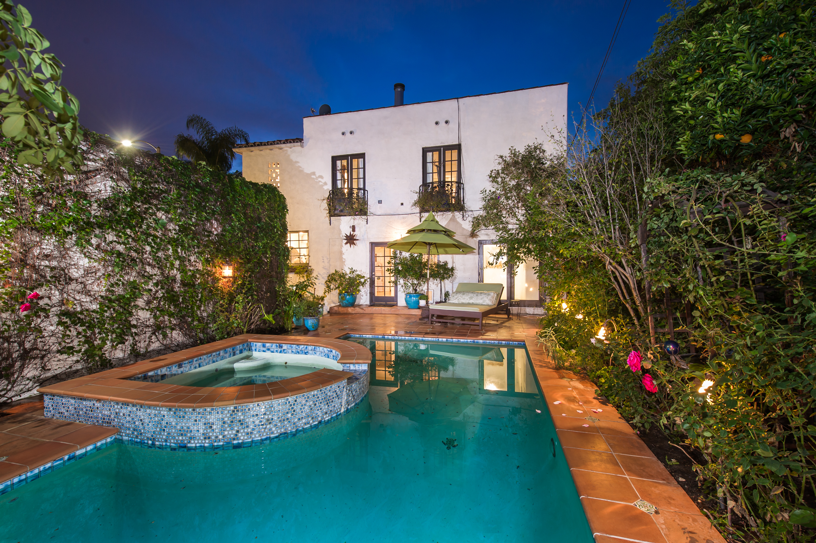 Located in prestigious Hancock Park is this exquisitely designed and remodeled duplex, with an expansive yard, private gates, and a pool. Each two-story unit is meticulously kept, with new central air and heat, and maintains its authentic Spanish charm and warmth. The South unit (owner occupied and delivered vacant) offers four bedrooms, a stunning chef's kitchen, an enormous yard and pool, with a beautiful outdoor eating area, and four fountains. The three-bedroom North unit enters privately from Orange Dr, past a front yard and garden, with it's own private patio, fountain and secluded privacy. Each unit has large walk-in closets, fireplaces, hardwood floors, beamed-ceilings, french doors, soaring ceilings, stainless steel and integrated appliances, and more.
