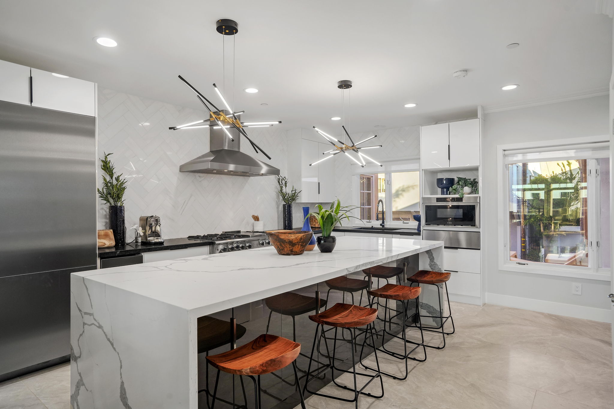 Located on a quiet cul-de-sac and just minutes away from the pier, this gorgeous multi-level home boasts impeccable design and breathtaking panoramic views of the ocean, city lights, Newport Harbor, and beyond. The entry level offers 2 guest bedrooms and one bath. On the second level, the open floor plan and large windows allow for an abundance of natural light, perfect for enjoying the sophisticated living and dining areas, and the chef’s kitchen with stone counter tops, center island, top-of-the-line appliances, wine cooler, and breakfast nook. On the top level, you will find the luxurious owner’s suite with awe-inspiring views of the bay from the bed, fireplace, built-in cabinetry, and a spa-like bath with large tub, walk-in shower, and dual vanity. From the owner’s suite, step into a private rooftop deck boasting expansive ocean and coastal views of Catalina Island, Balboa Peninsula, Newport Beach pier, and more; perfect for entertaining and enjoying the famed southern California sunsets. On the ground level, a 3-car garage with 3 additional parking spots on the driveway for a total of 6, which is unheard of in CDM. This beautiful home is located on the South side of PCH and is close to Corona del Mar Beach, China Cove, Corona del Mar Village, and some of the best shopping and dining in Southern California.