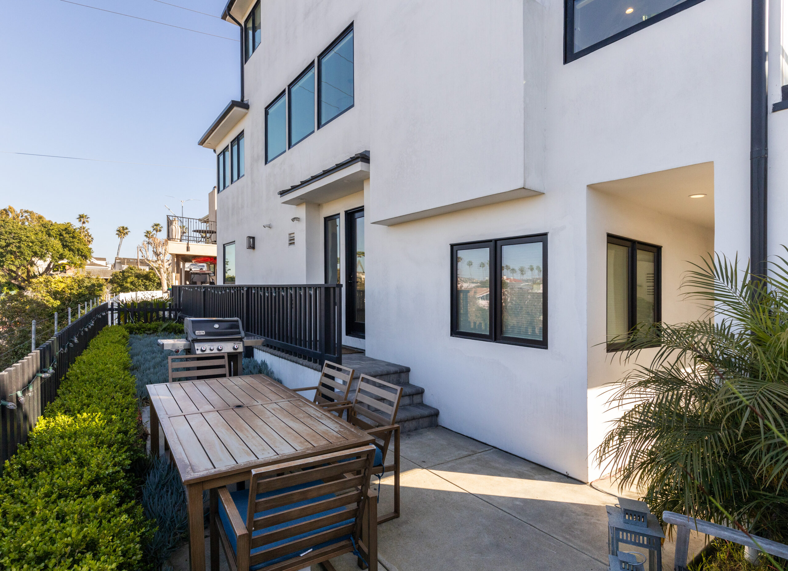 Masterfully designed by JF Carlson Architects, is ideally situated in the picturesque 300 block, just a stone's throw from the beach. This detached three-bedroom residence offers a blend of unique spaces, capturing both city and ocean vistas. A standout feature is its rare private entrance, complemented by convenient side-by-side parking for two cars. The home's interior boasts a spacious layout, accentuated by hardwood floors, abundant natural light, and towering ceilings. The state-of-the-art kitchen is a chef's dream, featuring premium appliances, extensive cabinetry, a six-burner stove, a microwave drawer, and a generous breakfast bar, perfect for casual meals, alongside a formal dining space for hosting. Outdoor entertaining is a breeze with a cozy patio and a primary balcony designed for taking in the views. The luxurious master suite offers serene ocean views, a cozy fireplace, a secluded patio, and an en-suite bathroom adorned with exquisite marble, a deep soaking tub, a walk-in shower, and dual walk-in closets. Embrace an exclusive lifestyle on a private street within the village, mere steps from pristine beaches, gourmet dining, boutique shopping, lush parks, and Fashion Island.