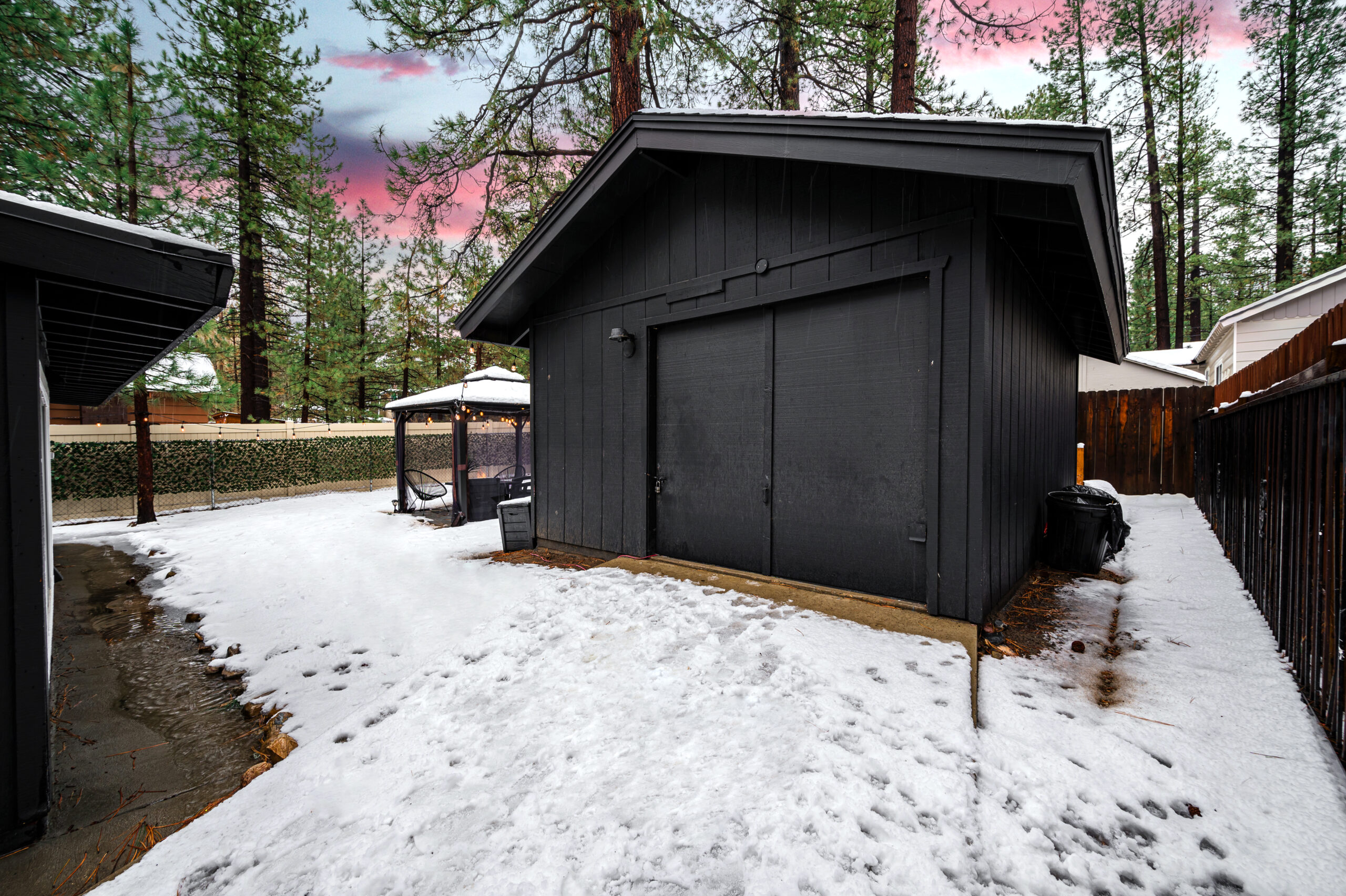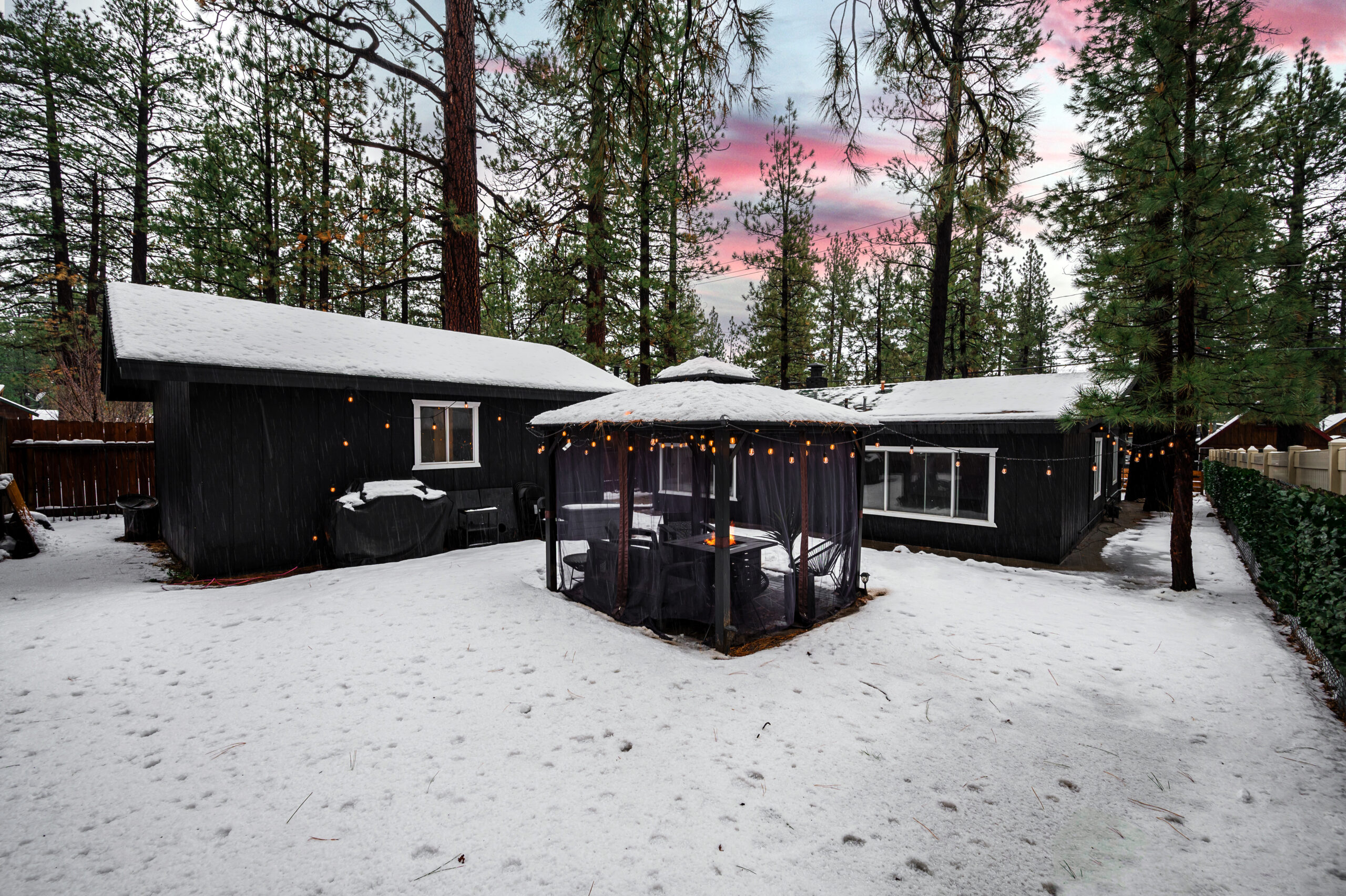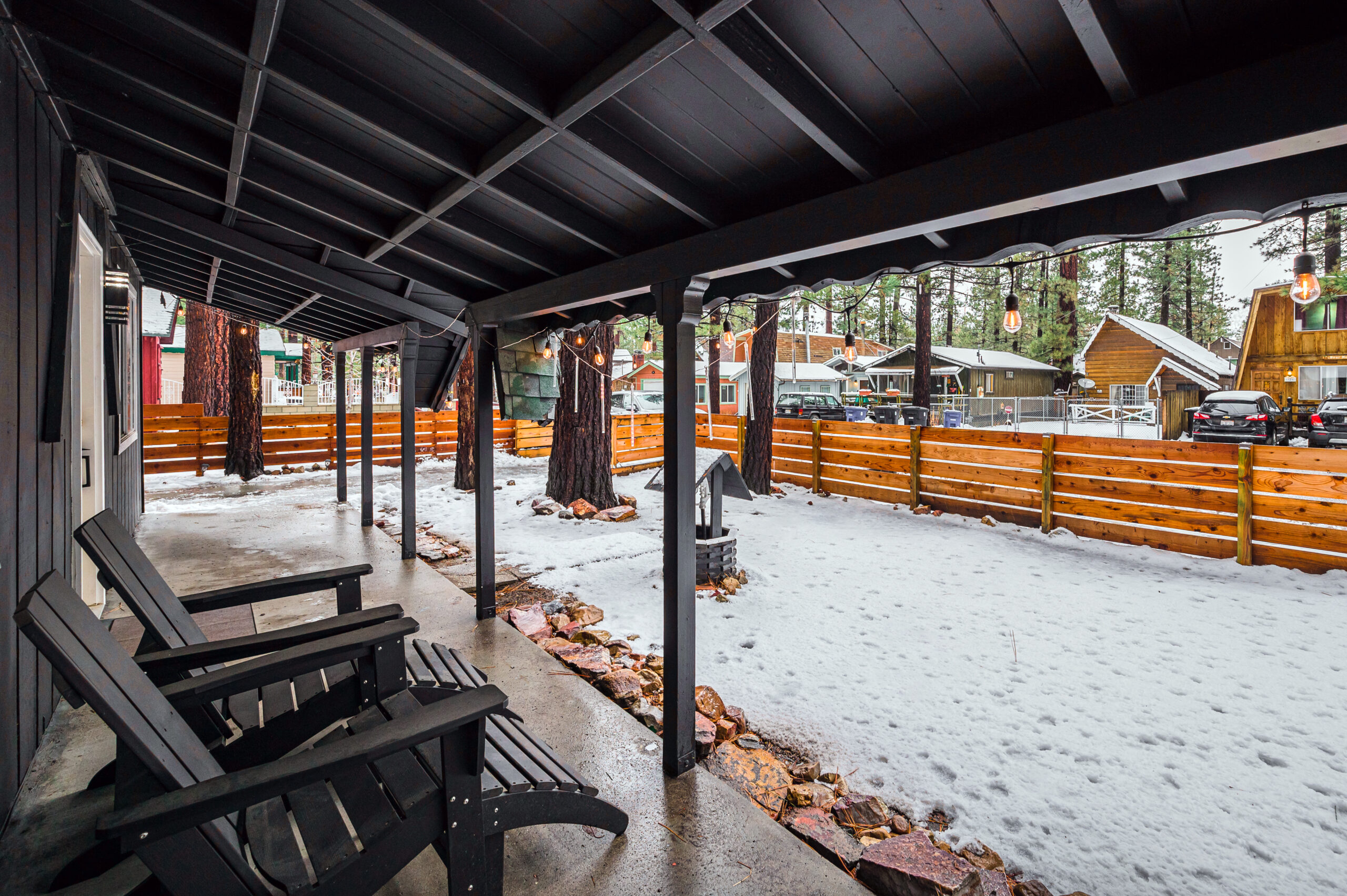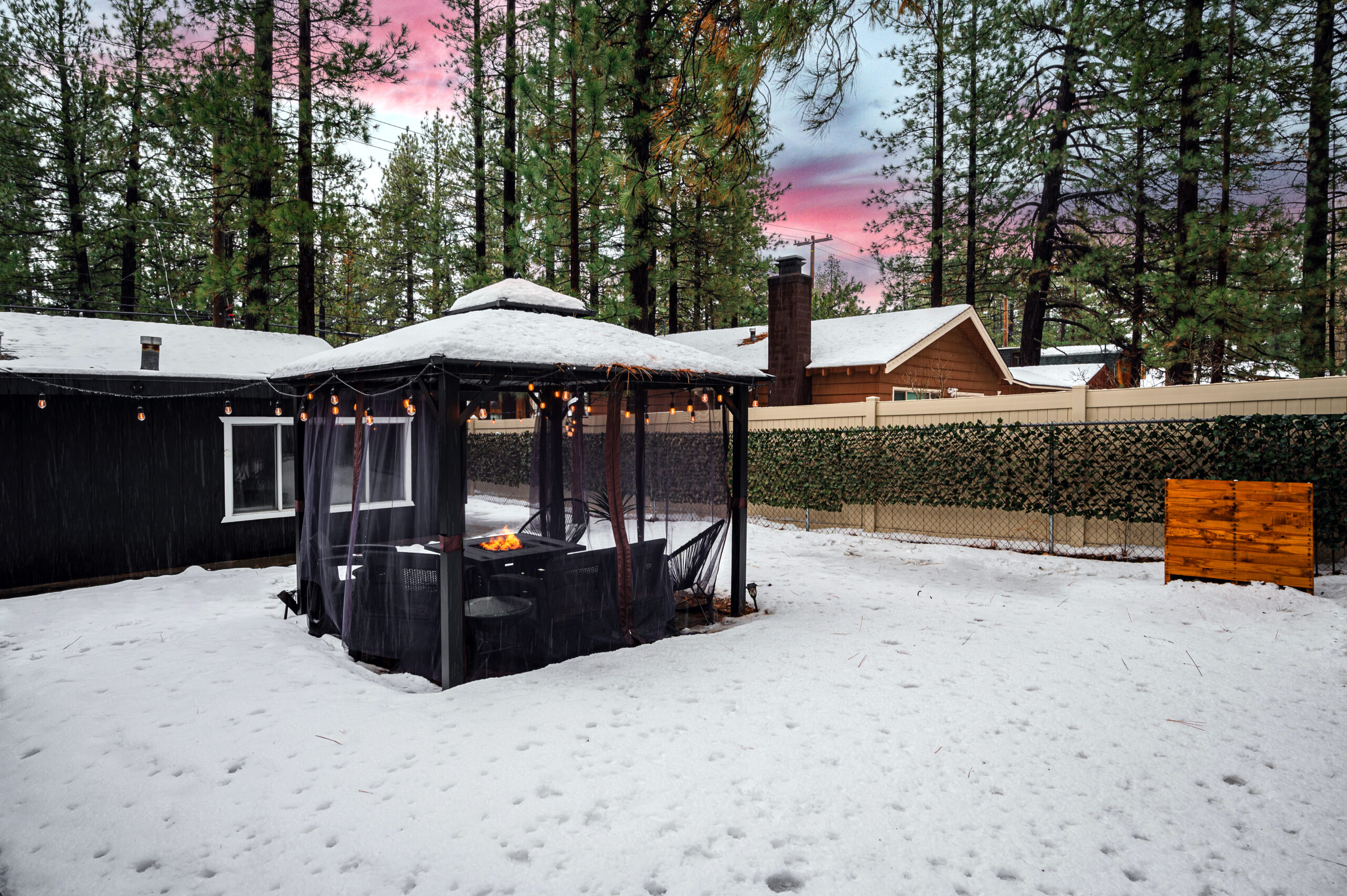 If you are looking for the perfect place to get away from the fast-paced city life, this is a stunning home currently functioning as a very successful Airbnb, earning a 7%+ return. This turnkey, exquisitely designed, and fully remodeled single-level mid-century home is centrally located in Big Bear City. Whether you are an outdoor enthusiast or just want to relax, Big Bear has it all, including skiing, snowboarding, tubing, hiking, mountain biking, boating on the lake, or shopping in the village. The open floor-plan and vaulted ceilings give you plenty of natural lighting throughout. The spacious living area is equipped with new vinyl wood flooring, new light fixtures, and a stunning, electric fireplace. The updated kitchen is complete with smart Samsung stainless steel appliances, a large farmhouse sink, and painted wood cabinets. Each bedroom includes a remote-controlled fireplace. Both bathrooms were artistically remodeled and the 3rd room is used as a theatre room but can be converted back into a 3rd bedroom. Sitting on a 5,000 sqft lot, relax after a long day, grill, or entertain, and enjoy the newly built gazebo complete with a cozy fireplace. The spacious detached garage has the ability to create an ADU and is complete with RV parking or extra parking space. A newly built Eichler fence creates a safe, enclosed yard if you have pets or small children. This ready-to-move-in home was completely gutted and just about everything inside is under 2 years old including the electric panel, furnace, and thermostat. Come see what this beautiful Big Bear home offers while it’s still available.