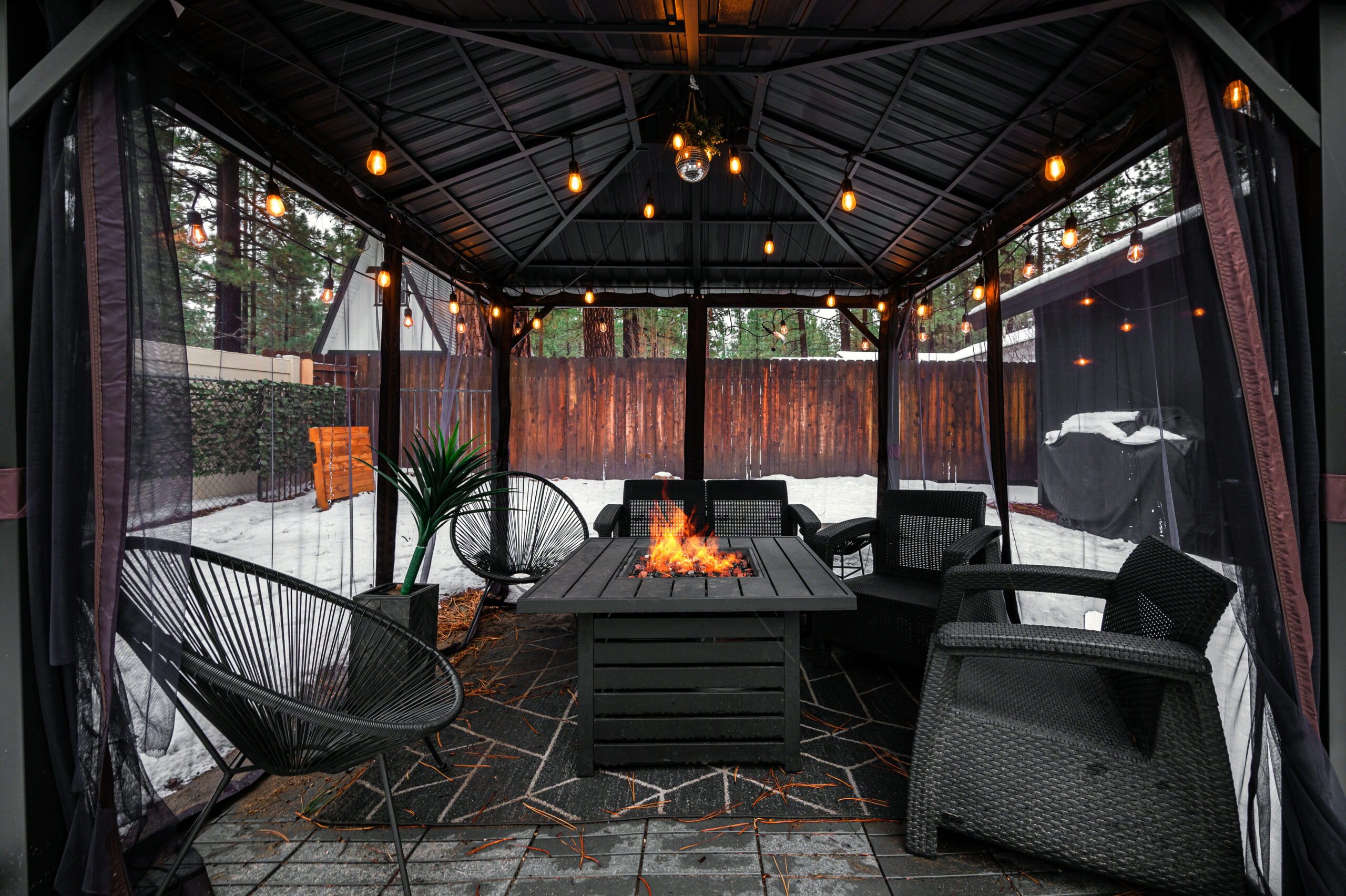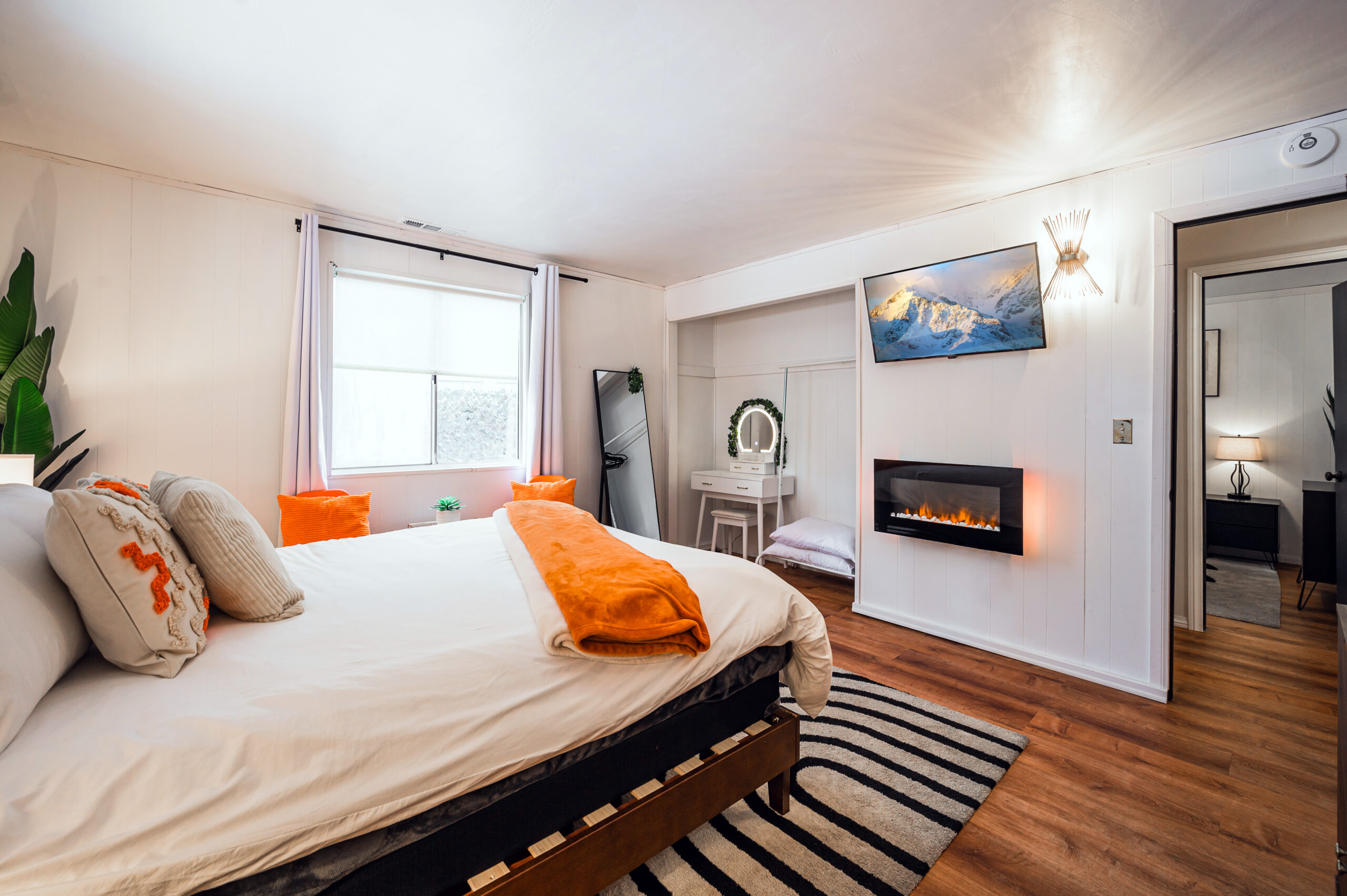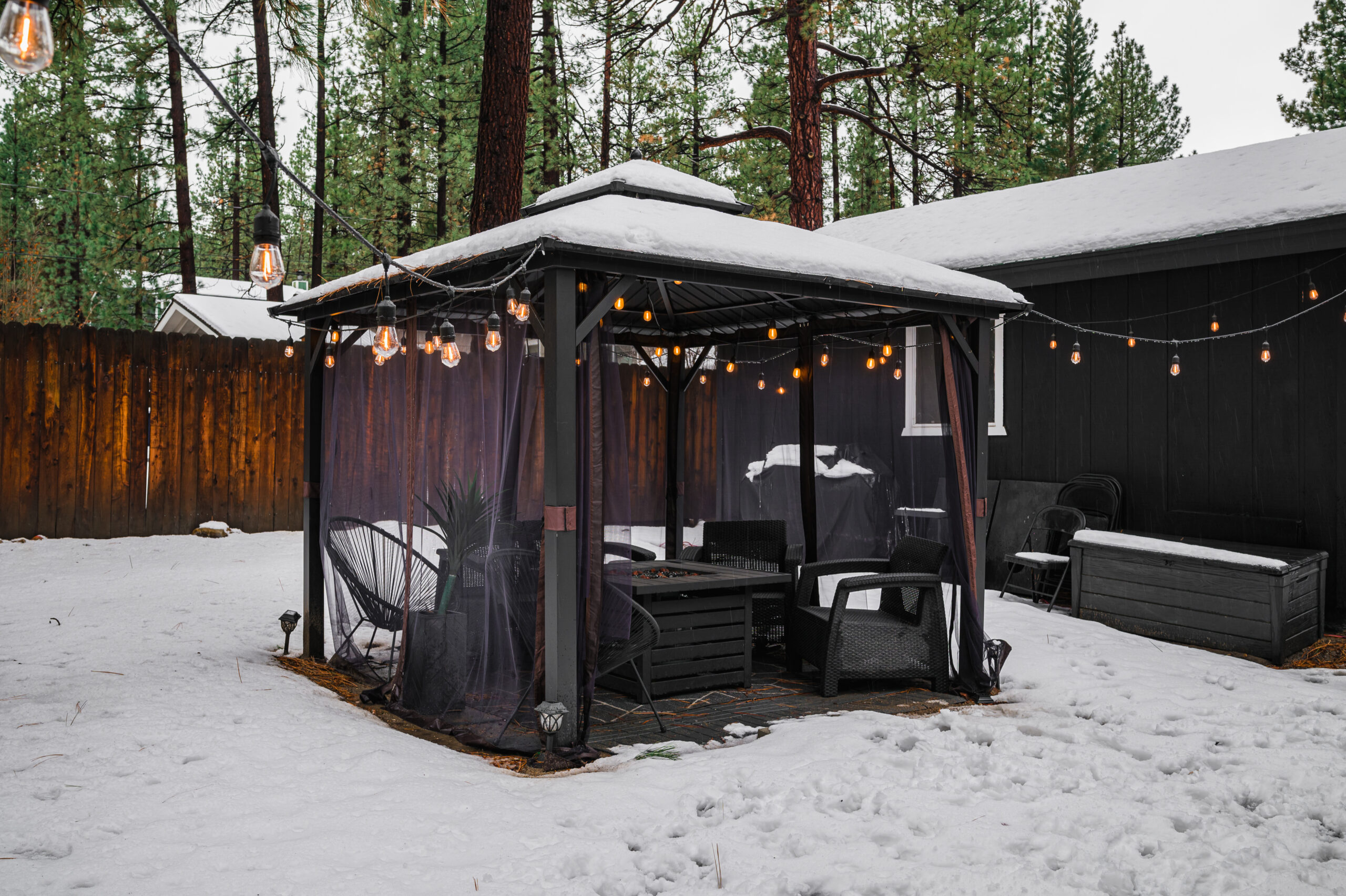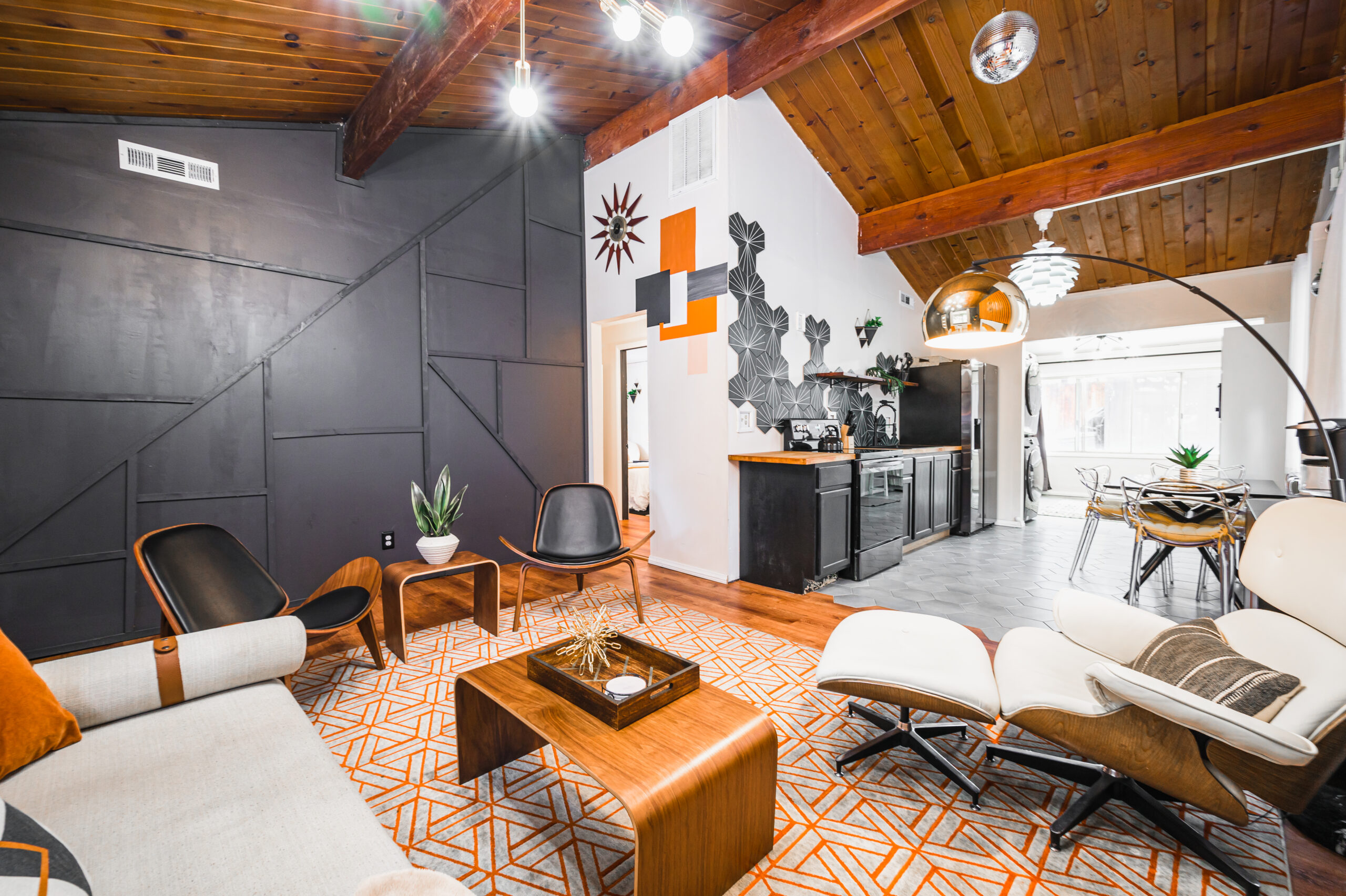 If you are looking for the perfect place to get away from the fast-paced city life, this is a stunning home currently functioning as a very successful Airbnb, earning a 7%+ return. This turnkey, exquisitely designed, and fully remodeled single-level mid-century home is centrally located in Big Bear City. Whether you are an outdoor enthusiast or just want to relax, Big Bear has it all, including skiing, snowboarding, tubing, hiking, mountain biking, boating on the lake, or shopping in the village. The open floor-plan and vaulted ceilings give you plenty of natural lighting throughout. The spacious living area is equipped with new vinyl wood flooring, new light fixtures, and a stunning, electric fireplace. The updated kitchen is complete with smart Samsung stainless steel appliances, a large farmhouse sink, and painted wood cabinets. Each bedroom includes a remote-controlled fireplace. Both bathrooms were artistically remodeled and the 3rd room is used as a theatre room but can be converted back into a 3rd bedroom. Sitting on a 5,000 sqft lot, relax after a long day, grill, or entertain, and enjoy the newly built gazebo complete with a cozy fireplace. The spacious detached garage has the ability to create an ADU and is complete with RV parking or extra parking space. A newly built Eichler fence creates a safe, enclosed yard if you have pets or small children. This ready-to-move-in home was completely gutted and just about everything inside is under 2 years old including the electric panel, furnace, and thermostat. Come see what this beautiful Big Bear home offers while it’s still available.