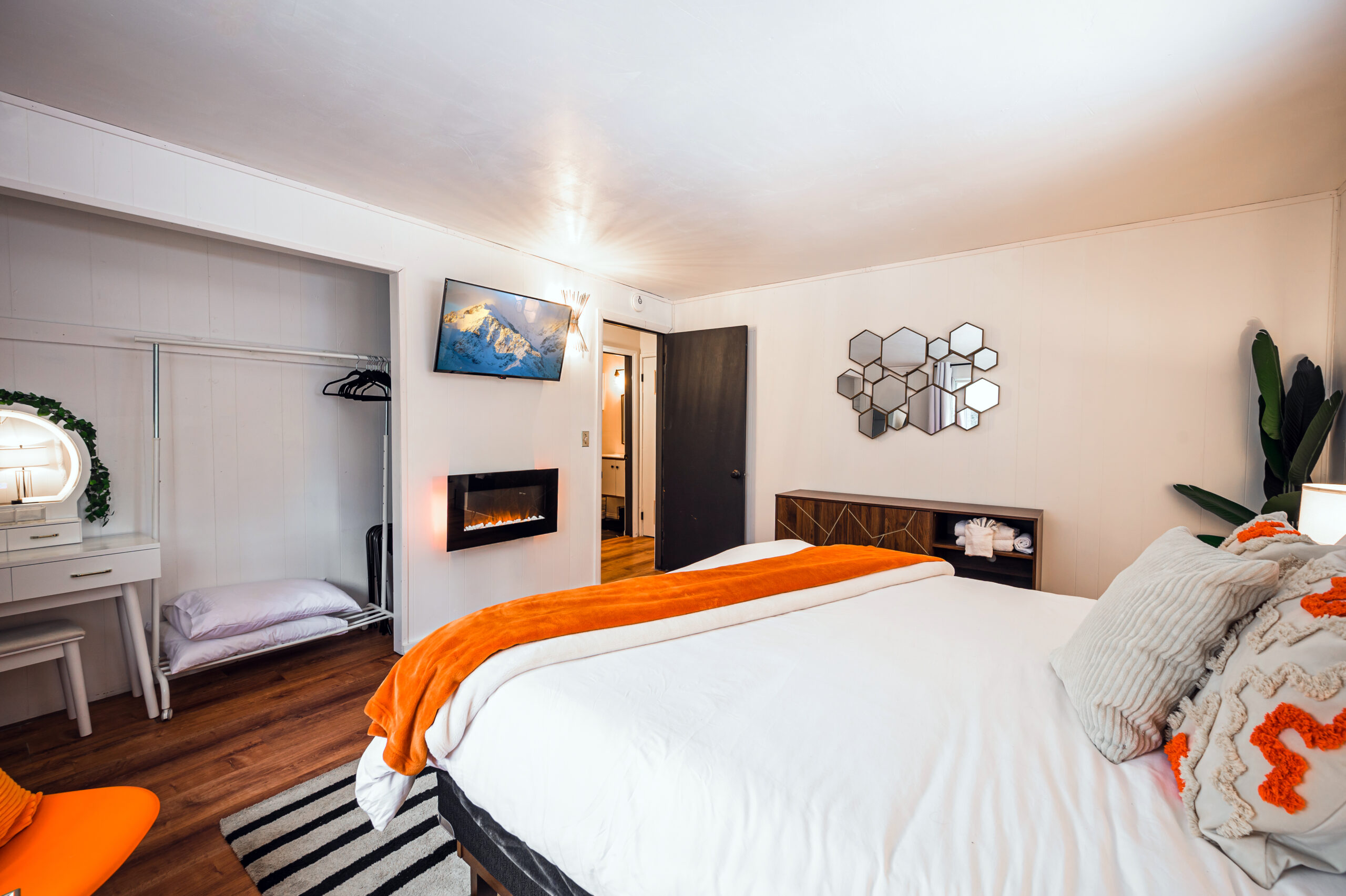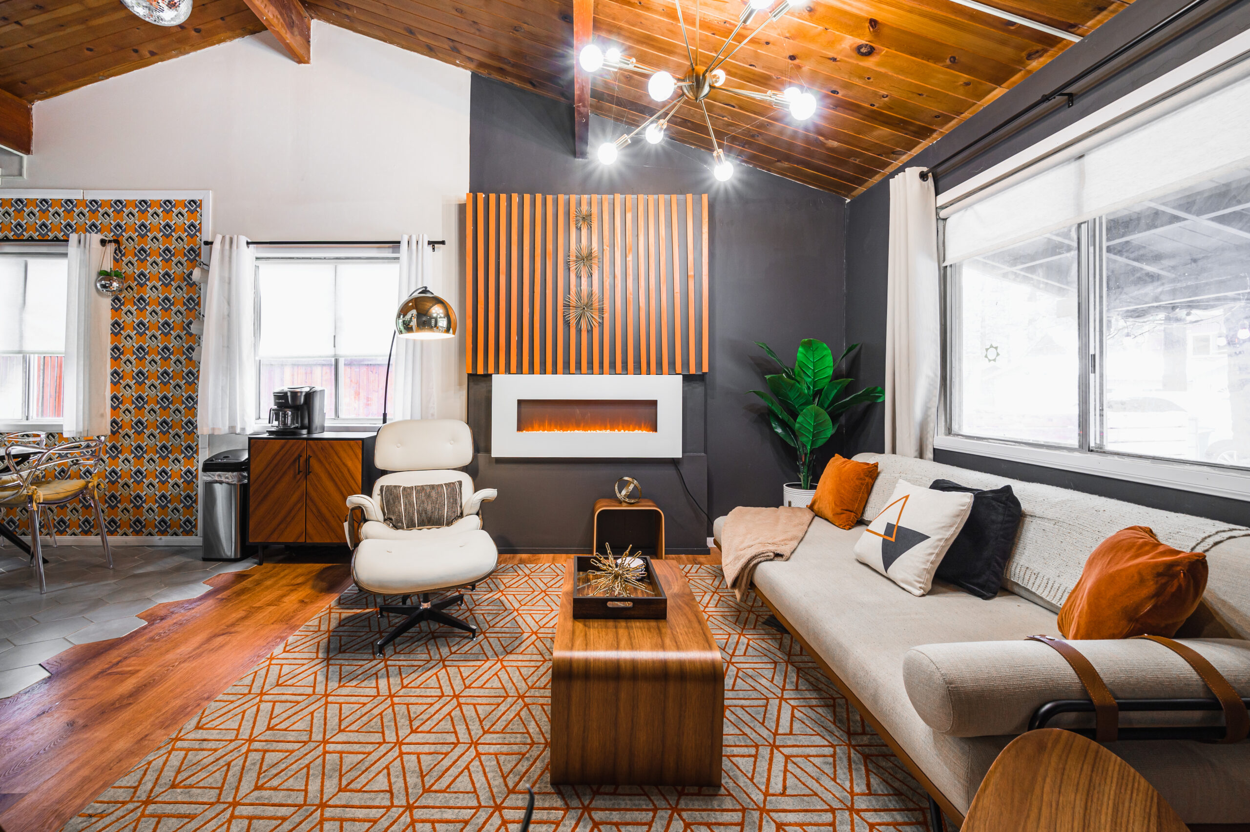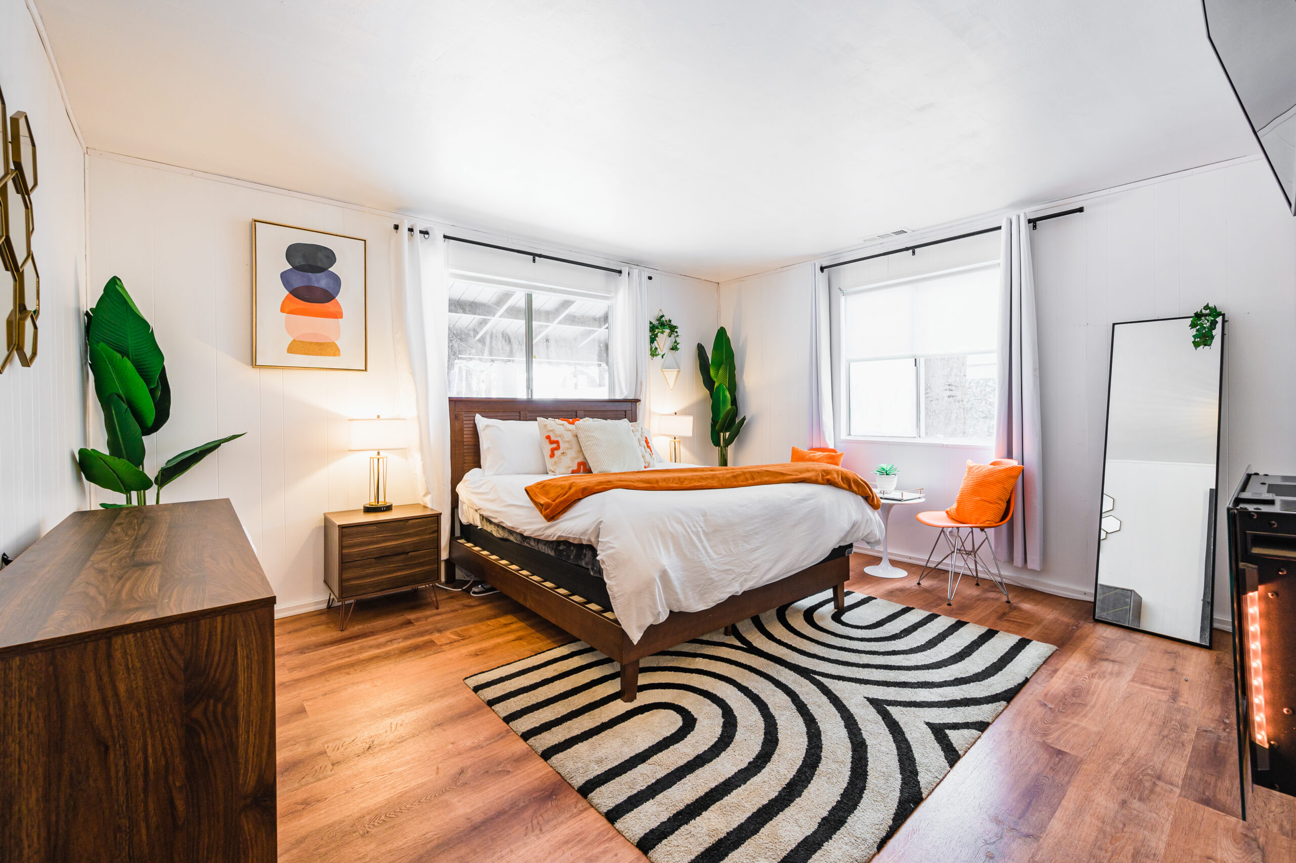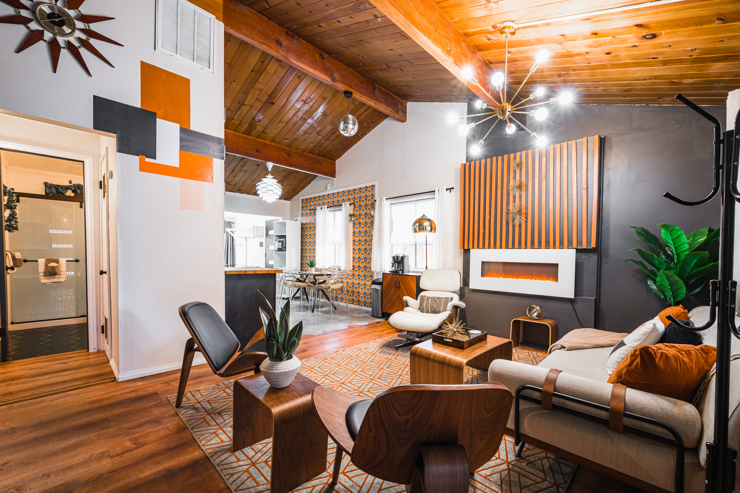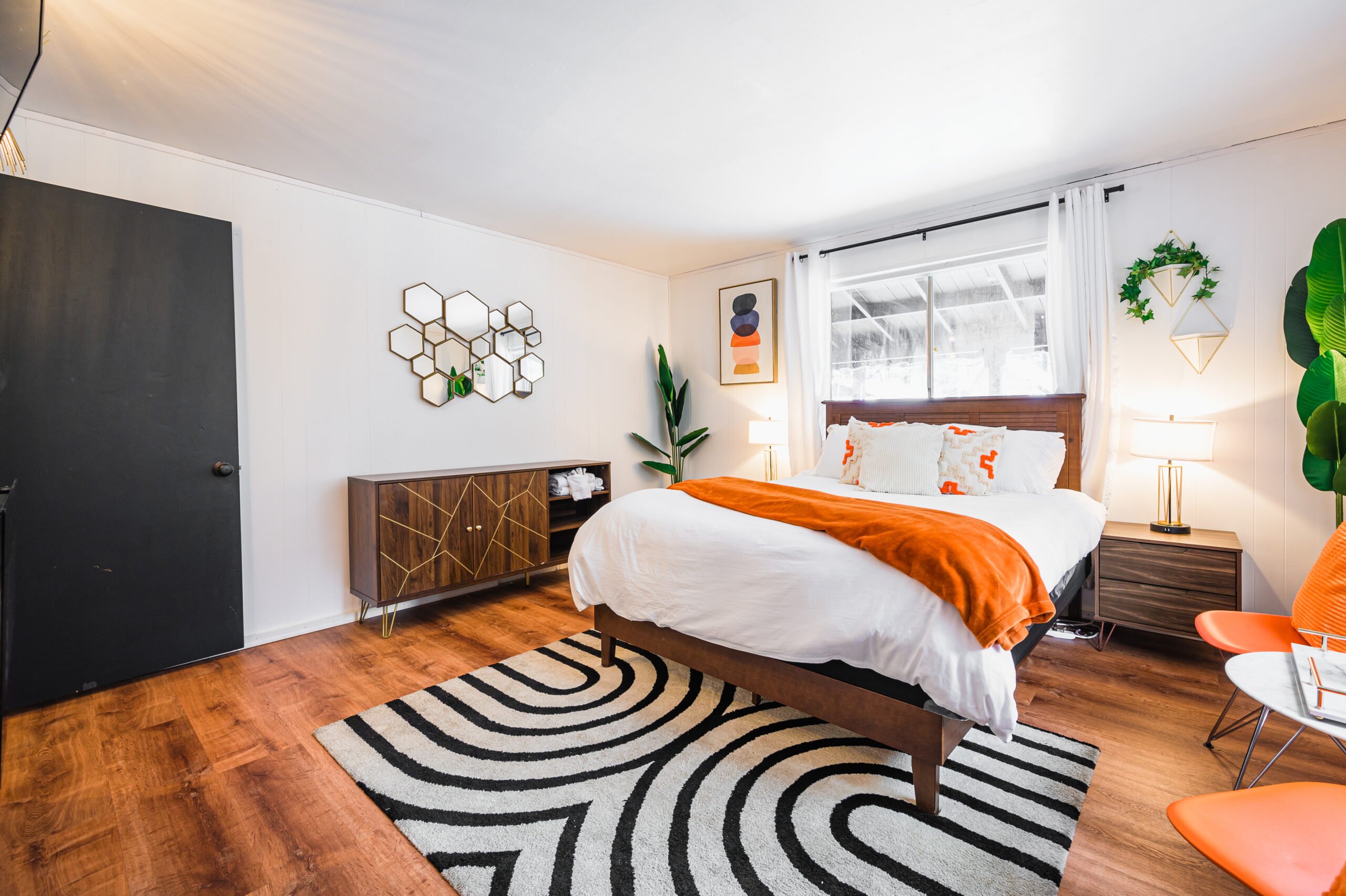 If you are looking for the perfect place to get away from the fast-paced city life, this is a stunning home currently functioning as a very successful Airbnb, earning a 7%+ return. This turnkey, exquisitely designed, and fully remodeled single-level mid-century home is centrally located in Big Bear City. Whether you are an outdoor enthusiast or just want to relax, Big Bear has it all, including skiing, snowboarding, tubing, hiking, mountain biking, boating on the lake, or shopping in the village. The open floor-plan and vaulted ceilings give you plenty of natural lighting throughout. The spacious living area is equipped with new vinyl wood flooring, new light fixtures, and a stunning, electric fireplace. The updated kitchen is complete with smart Samsung stainless steel appliances, a large farmhouse sink, and painted wood cabinets. Each bedroom includes a remote-controlled fireplace. Both bathrooms were artistically remodeled and the 3rd room is used as a theatre room but can be converted back into a 3rd bedroom. Sitting on a 5,000 sqft lot, relax after a long day, grill, or entertain, and enjoy the newly built gazebo complete with a cozy fireplace. The spacious detached garage has the ability to create an ADU and is complete with RV parking or extra parking space. A newly built Eichler fence creates a safe, enclosed yard if you have pets or small children. This ready-to-move-in home was completely gutted and just about everything inside is under 2 years old including the electric panel, furnace, and thermostat. Come see what this beautiful Big Bear home offers while it’s still available.