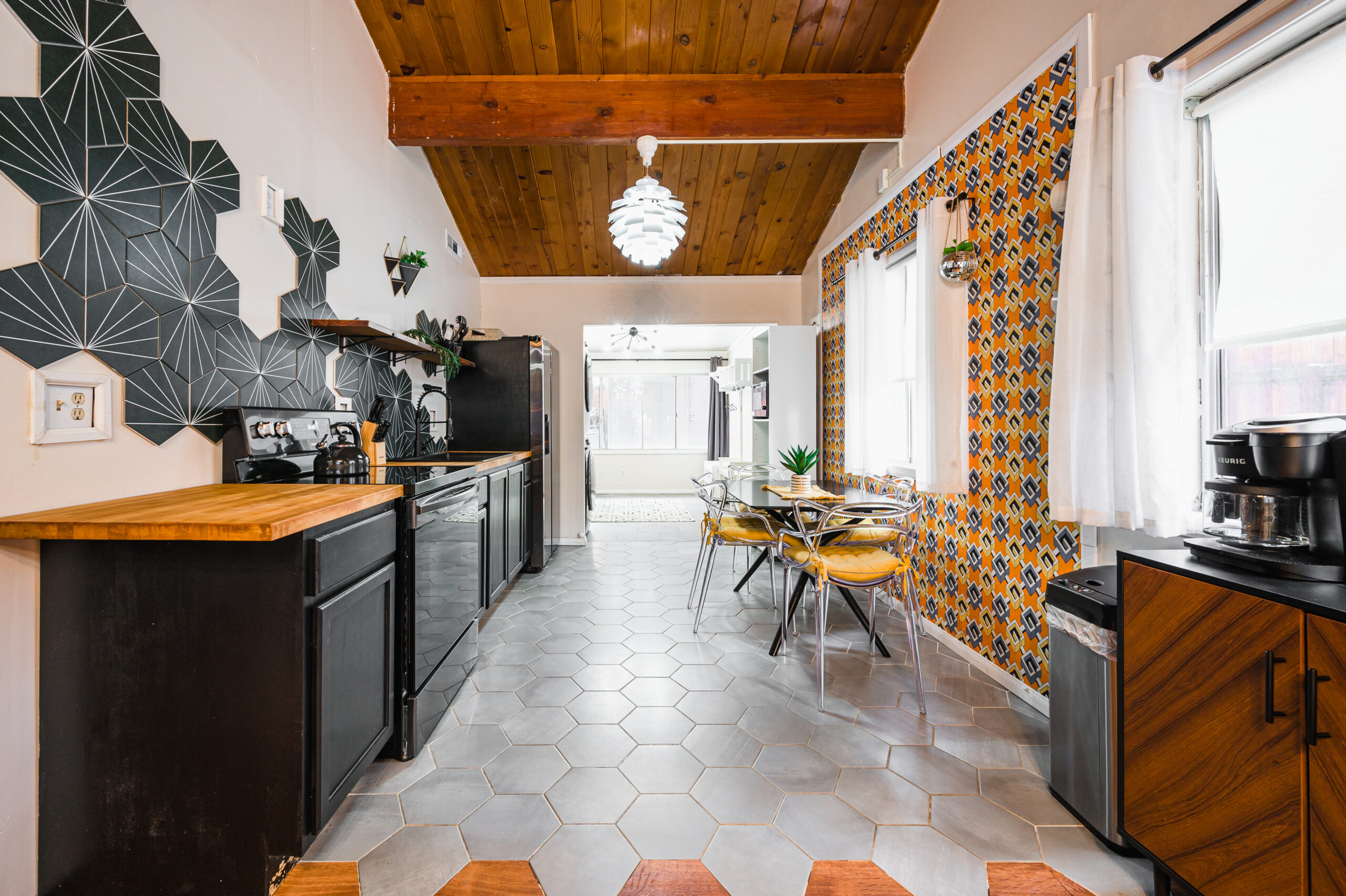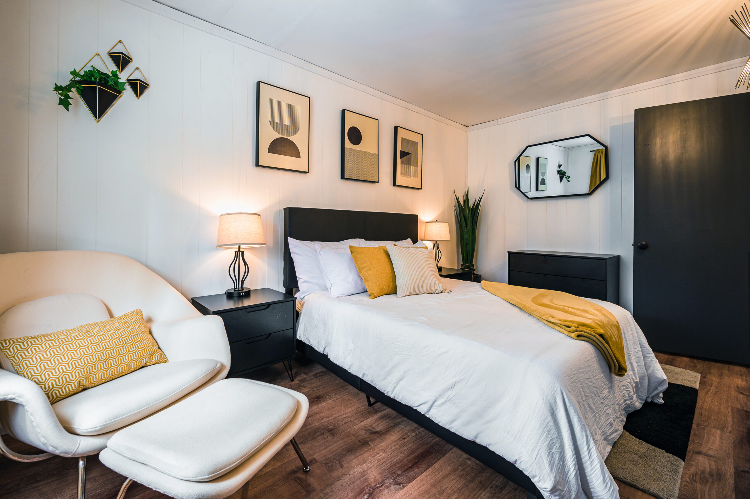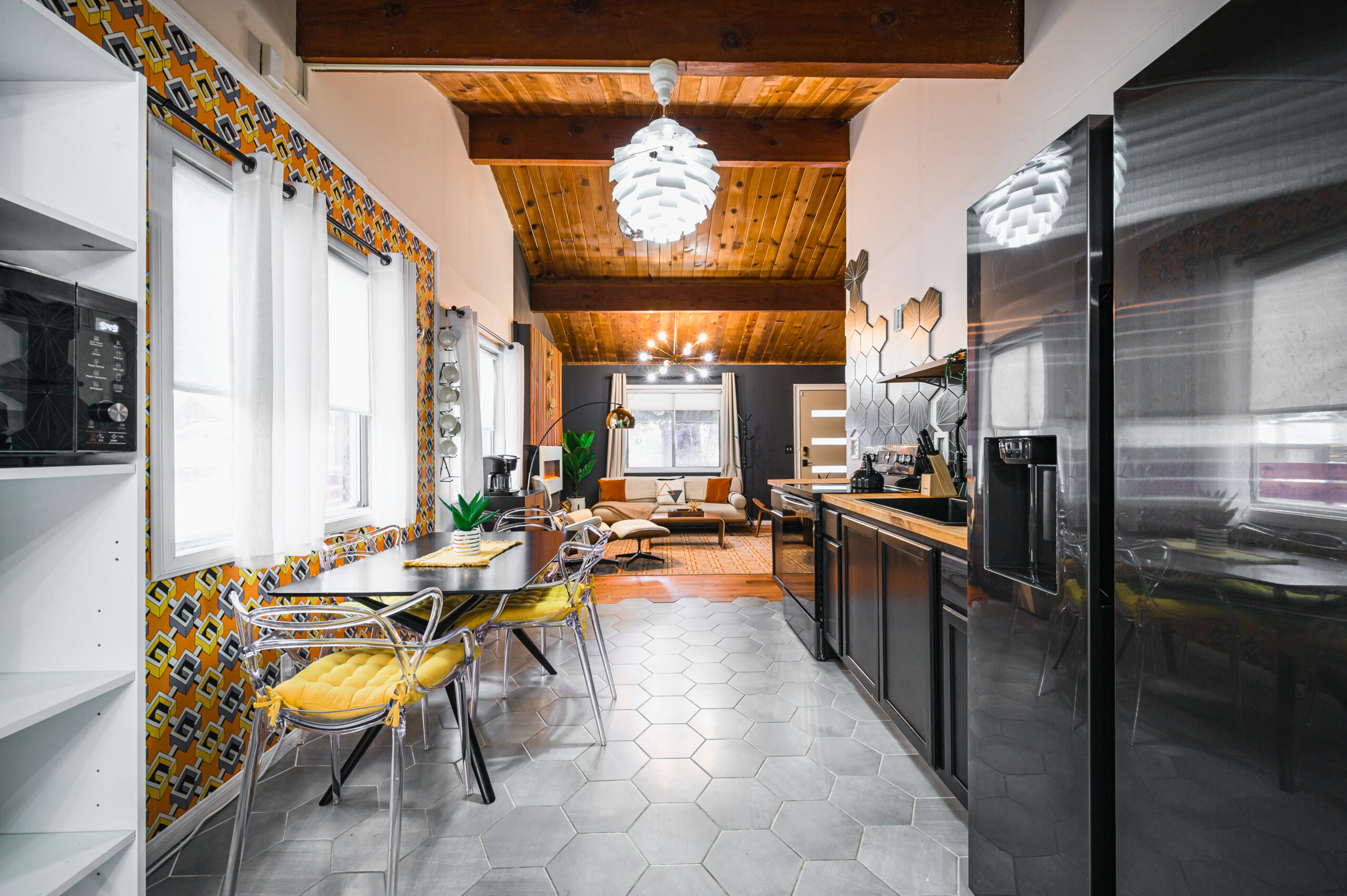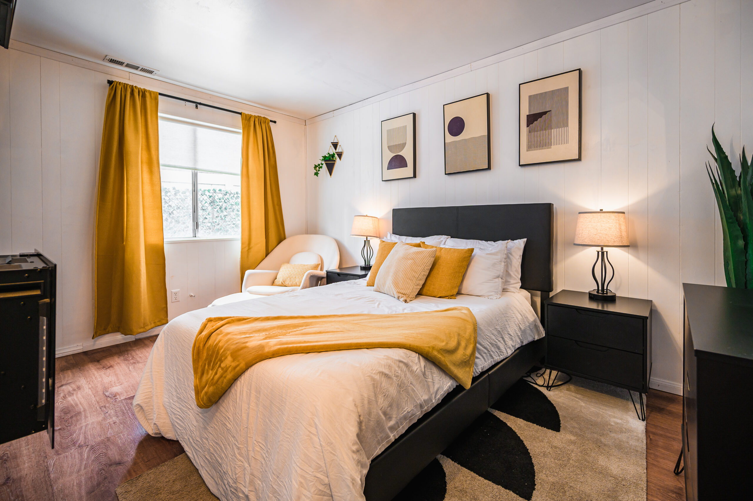 If you are looking for the perfect place to get away from the fast-paced city life, this is a stunning home currently functioning as a very successful Airbnb, earning a 7%+ return. This turnkey, exquisitely designed, and fully remodeled single-level mid-century home is centrally located in Big Bear City. Whether you are an outdoor enthusiast or just want to relax, Big Bear has it all, including skiing, snowboarding, tubing, hiking, mountain biking, boating on the lake, or shopping in the village. The open floor-plan and vaulted ceilings give you plenty of natural lighting throughout. The spacious living area is equipped with new vinyl wood flooring, new light fixtures, and a stunning, electric fireplace. The updated kitchen is complete with smart Samsung stainless steel appliances, a large farmhouse sink, and painted wood cabinets. Each bedroom includes a remote-controlled fireplace. Both bathrooms were artistically remodeled and the 3rd room is used as a theatre room but can be converted back into a 3rd bedroom. Sitting on a 5,000 sqft lot, relax after a long day, grill, or entertain, and enjoy the newly built gazebo complete with a cozy fireplace. The spacious detached garage has the ability to create an ADU and is complete with RV parking or extra parking space. A newly built Eichler fence creates a safe, enclosed yard if you have pets or small children. This ready-to-move-in home was completely gutted and just about everything inside is under 2 years old including the electric panel, furnace, and thermostat. Come see what this beautiful Big Bear home offers while it’s still available.